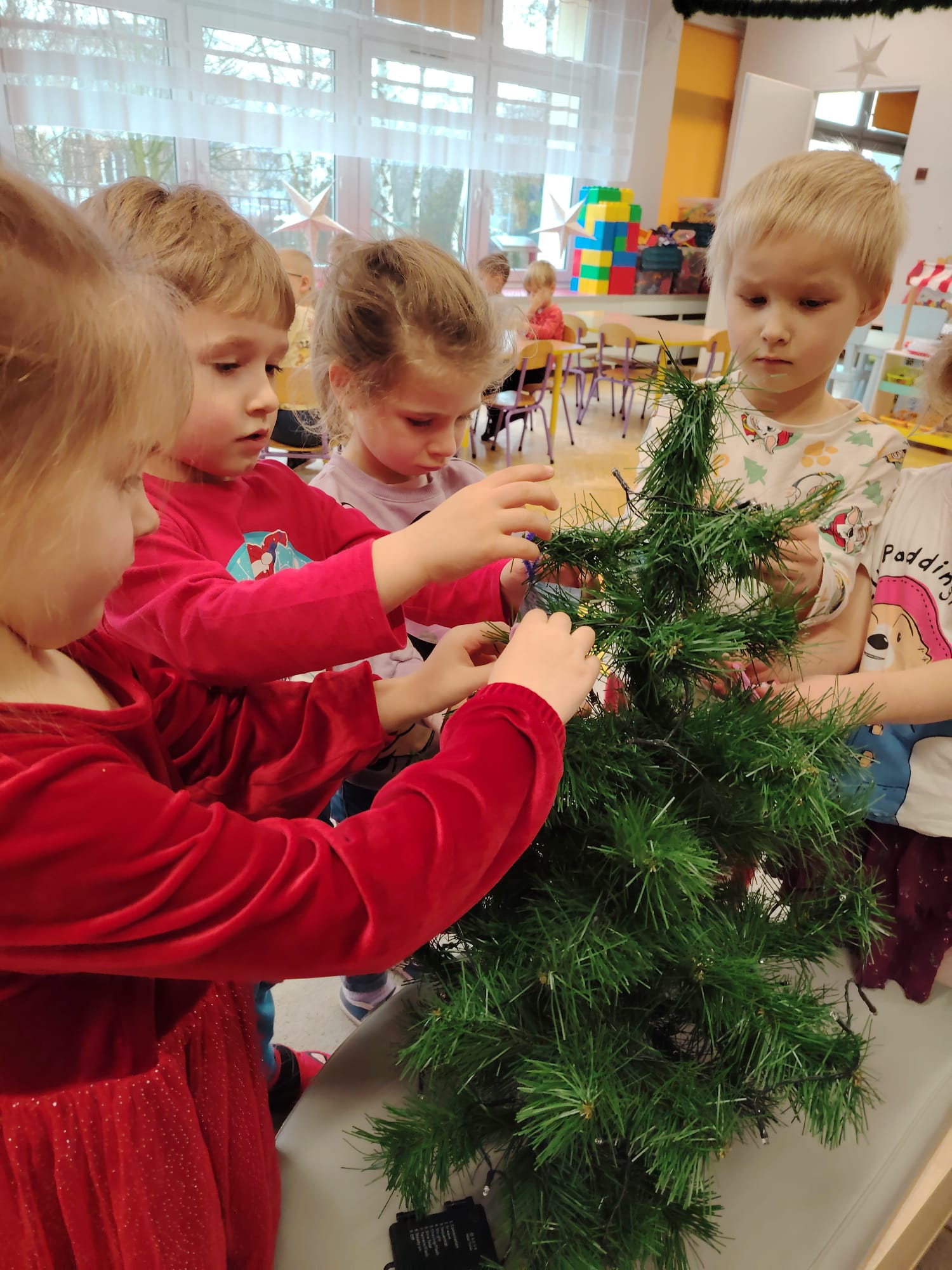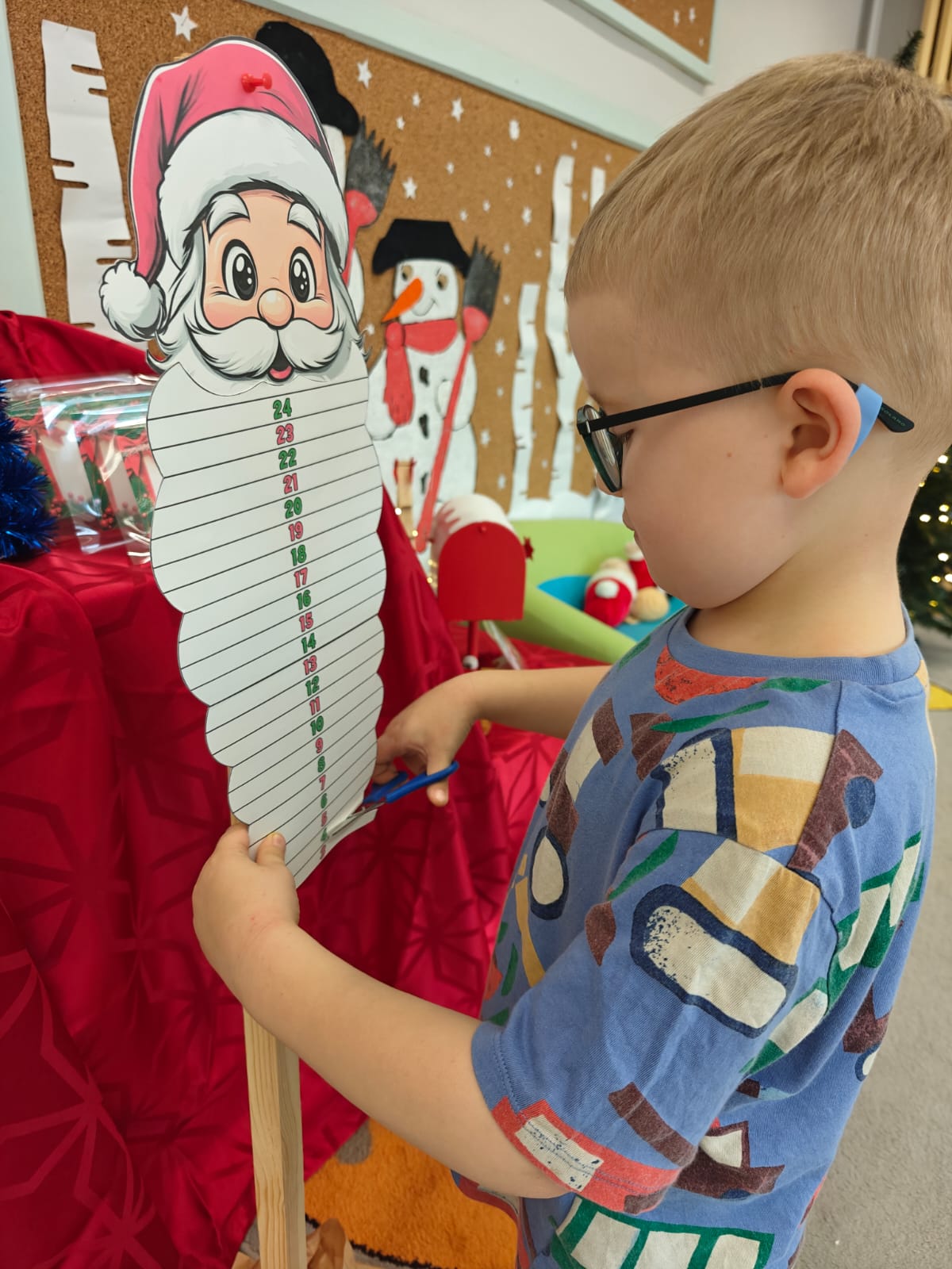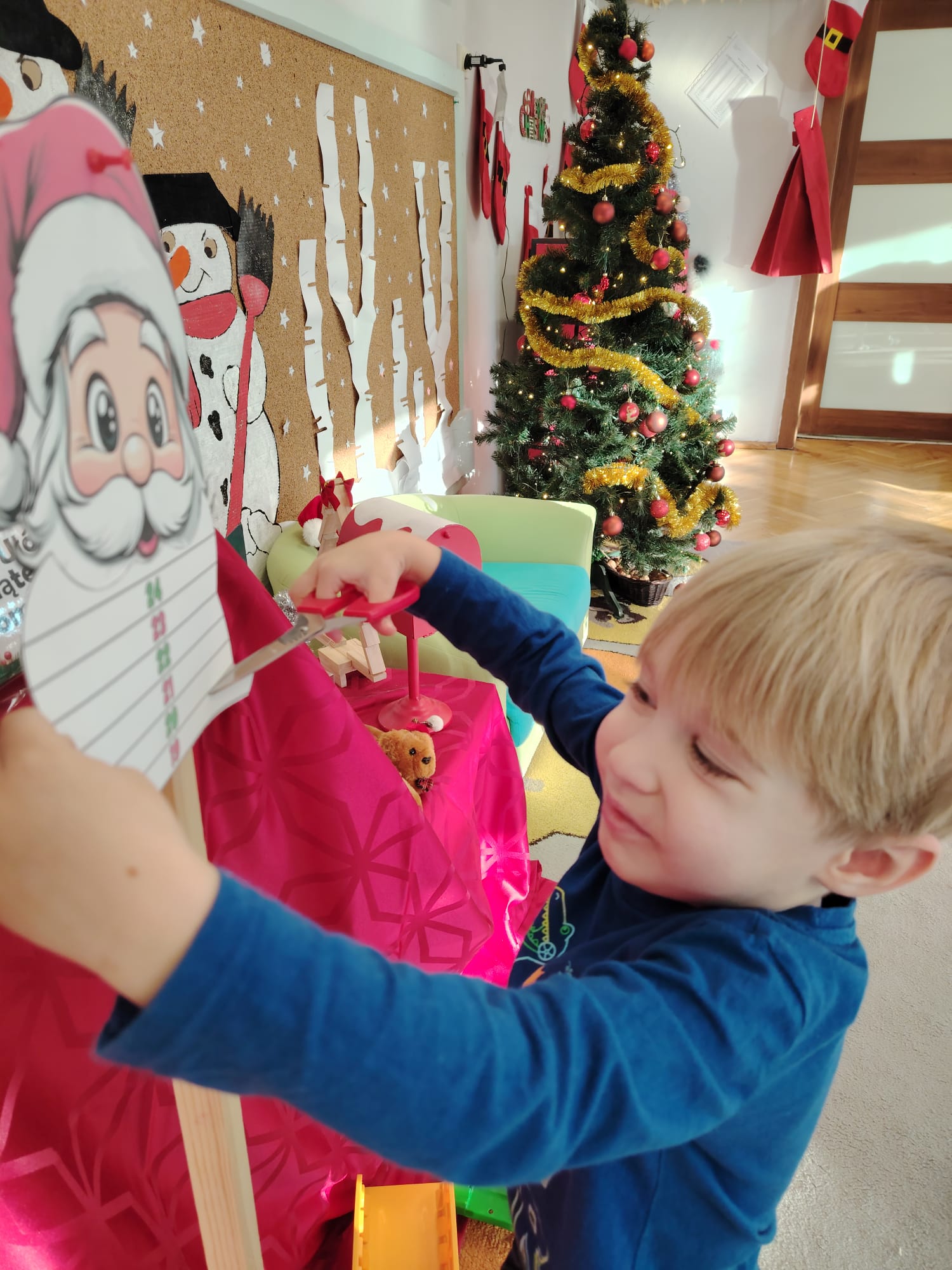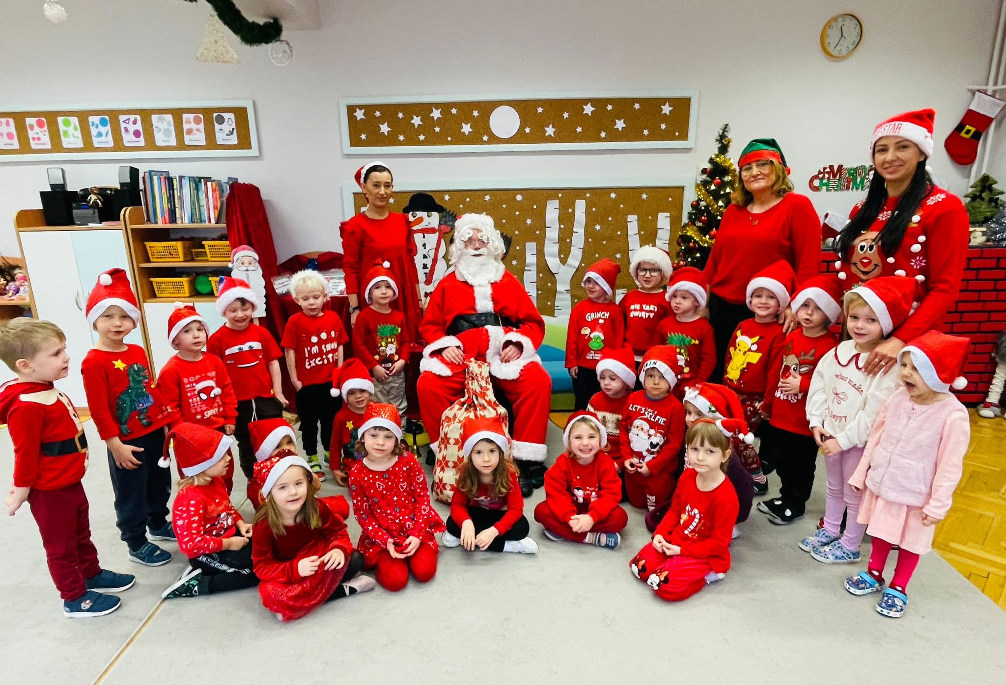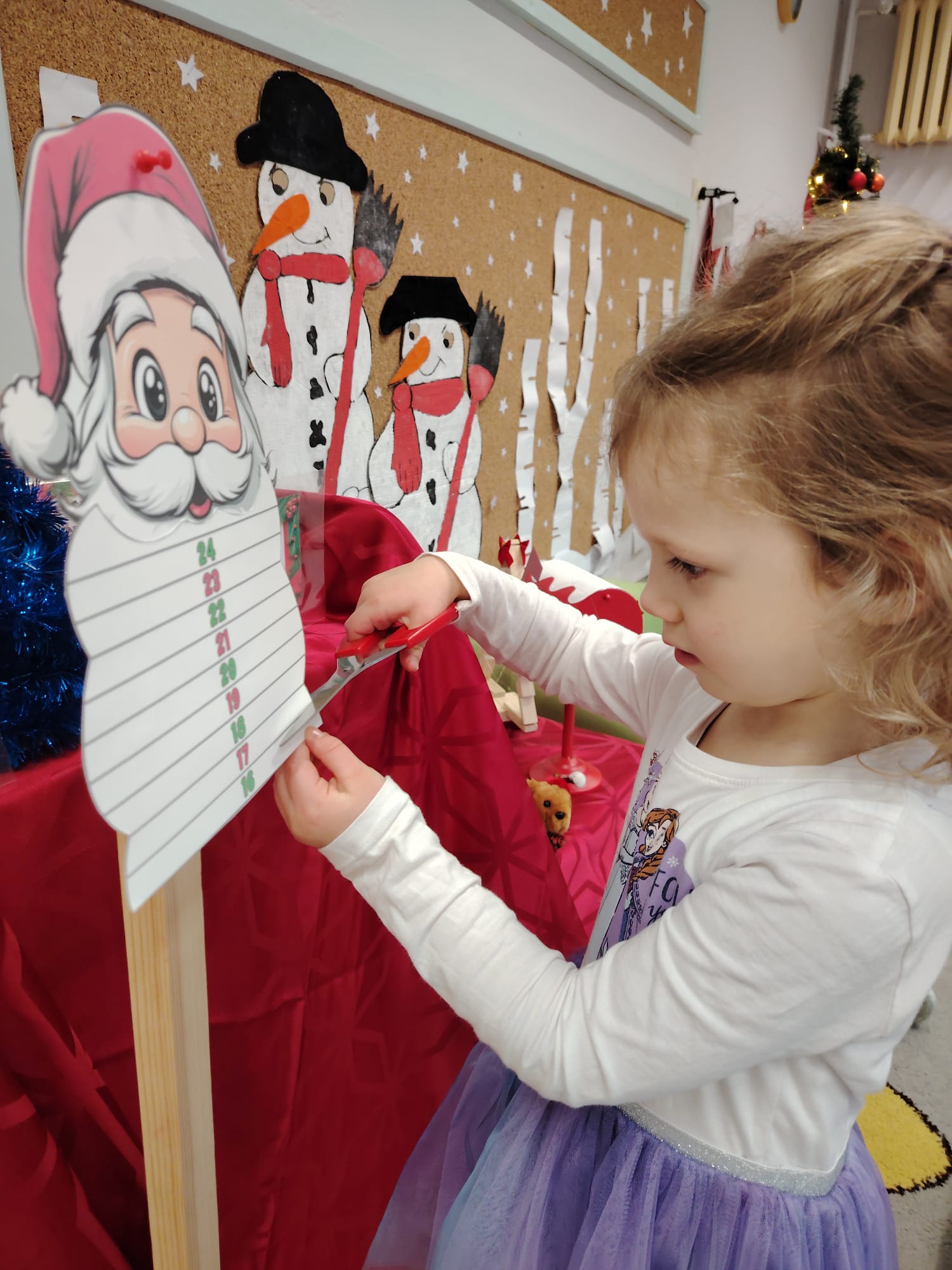 Grudzień w naszym przedszkolu był wyjątkowym czasem radosnego oczekiwania na Święta Bożego Narodzenia. Każdego dnia dzieci z wielkim zaciekawieniem odkrywały kolejne zadania ukryte w kalendarzu adwentowym. Codzienne niespodzianki wprowadzały wszystkich w świąteczny nastrój i sprawiały, że poranki rozpoczynały się z uśmiechem i entuzjazmem. Zadania adwentowe miały różnorodny charakter – były to zajęcia plastyczne, ruchowe, muzyczne oraz związane z rozwijaniem empatii i współpracy w grupie. Dzieci z ogromnym zaangażowaniem podejmowały wyzwania, rozwijając swoją kreatywność, samodzielność oraz umiejętność działania zespołowego. Wspólne wykonywanie zadań sprzyjało integracji grupy i budowaniu pozytywnych relacji rówieśniczych. Kalendarz adwentowy stanowił także doskonałą okazję do przybliżenia dzieciom tradycji i zwyczajów związanych z okresem świątecznym. Poprzez rozmowy, wspólne działania i zabawy dzieci uczyły się okazywania życzliwości, dzielenia się radością oraz dostrzegania potrzeb innych. Istotnym celem było również budowanie pozytywnych emocji związanych z oczekiwaniem, a nie tylko z samym dniem świąt. Czas spędzony z kalendarzem adwentowym był nie tylko atrakcyjną formą zabawy, ale również wartościowym doświadczeniem edukacyjnym i wychowawczym, które na długo pozostanie w pamięci dzieci, jako okres pełen magii, uśmiechów i wspólnych, pięknych chwil. Grupa II świątecznie zaprasza do galerii.