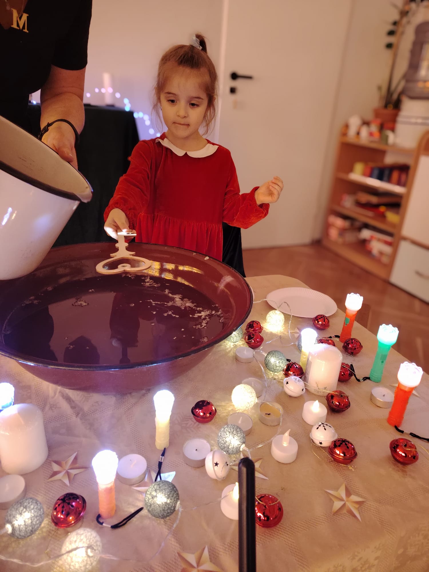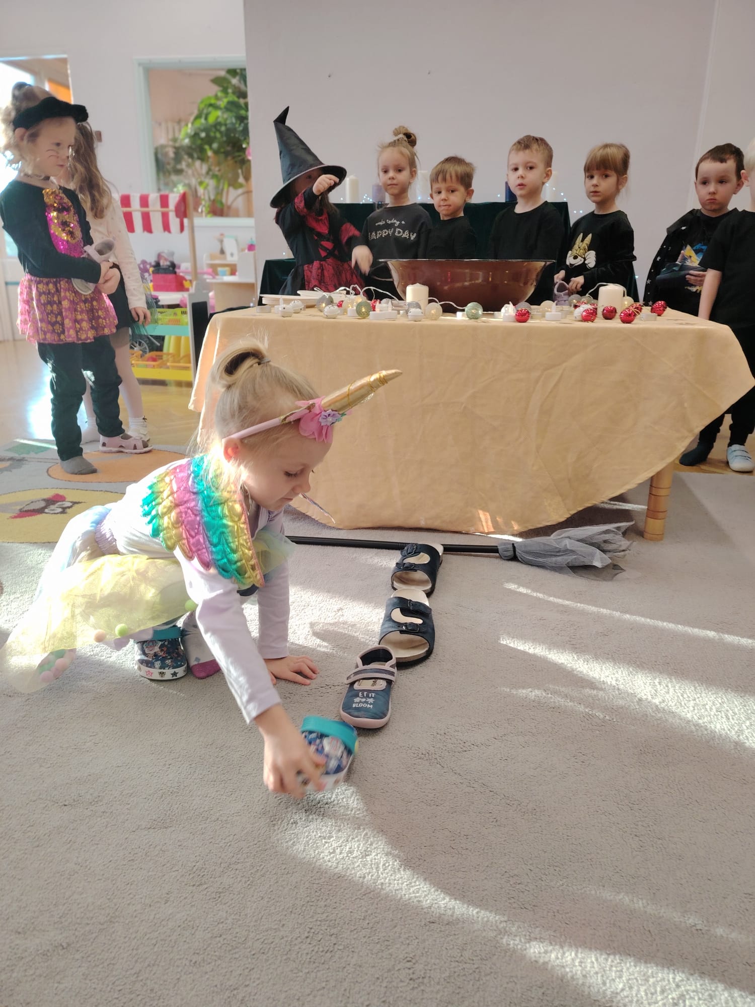 W piątkowy poranek w naszym przedszkolu magia zagościła, bo pora Andrzejek właśnie nadeszła miła! Były wróżby, zabawy i śmiechu bez liku, a tajemnicze czary słychać było w każdym kąciku. Wosk się lał przez klucze stare, powstawały kształty – czary nie do wiary! Buty w rzędzie dzielnie stały, czyje do drzwi dotrą – dzieci zgadywały. Wróżki, czarodzieje i postacie bajkowe, uczyniły ten dzień wręcz wyjątkowym! Tańce, śpiew i uśmiechy szerokie, rozświetliły naszą salę jak gwiazdy wysokie. To był dzień pełen radości, magii i wrażeń, spełnionych dziecięcych marzeń. Takie chwile w pamięci na długo zostają, bo Andrzejki w przedszkolu serca rozgrzewają! Zapraszamy do obejrzenia zdjęć z naszej magicznej zabawy!