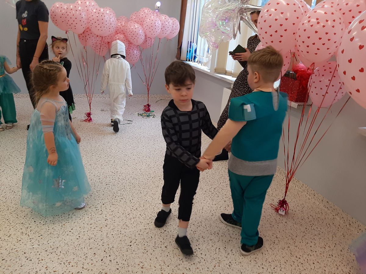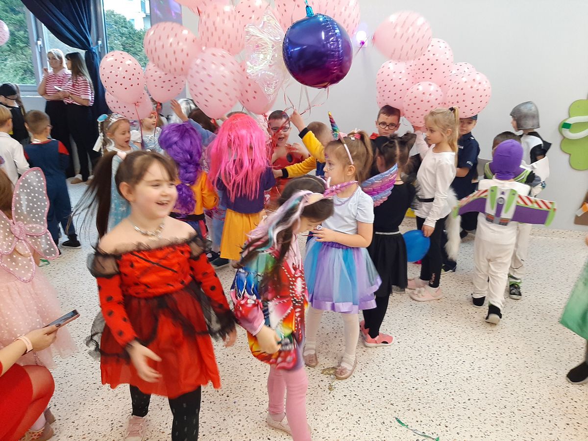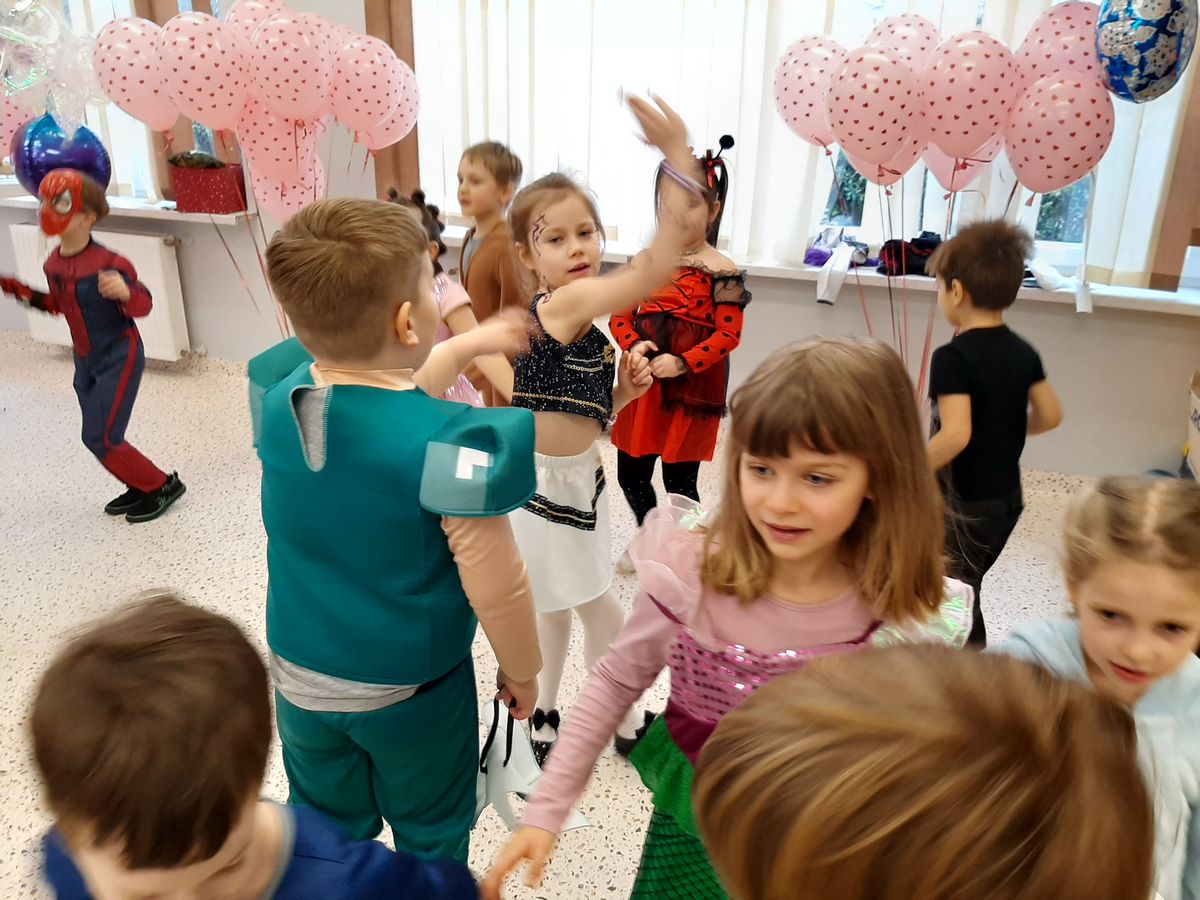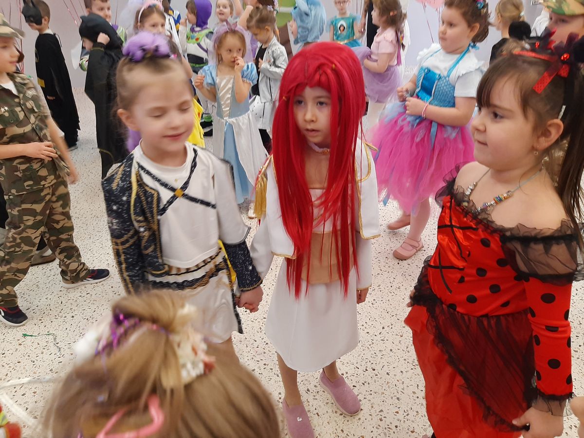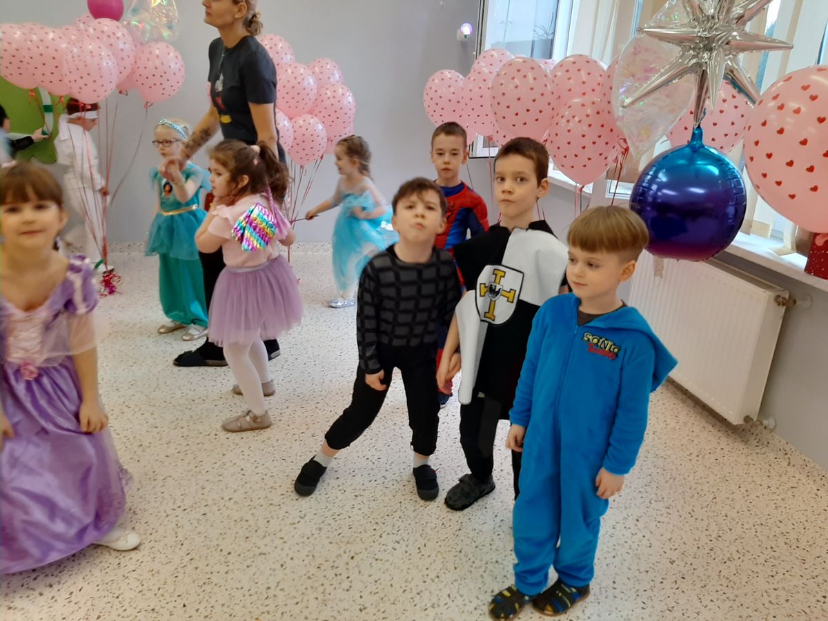 W tym roku obchodziliśmy niezwykły bal karnawałowy, ponieważ został on połączony z Walentynkami. Od samego rana w przedszkolu zrobiło się kolorowo – progi naszej sali przekroczyły wróżki, księżniczki, biedronki, a także rycerze, policjanci i strażacy. Dzieci z dumą prezentowały stroje ulubionych bajkowych bohaterów. Walentynkowe dekoracje sali stworzyły wyjątkowy klimat. Było mnóstwo śmiechu, ciekawych konkursów i tańców przy największych przebojach. Po zabawie na przedszkolaków czekał poczęstunek przygotowany przez rodziców – bardzo dziękujemy.