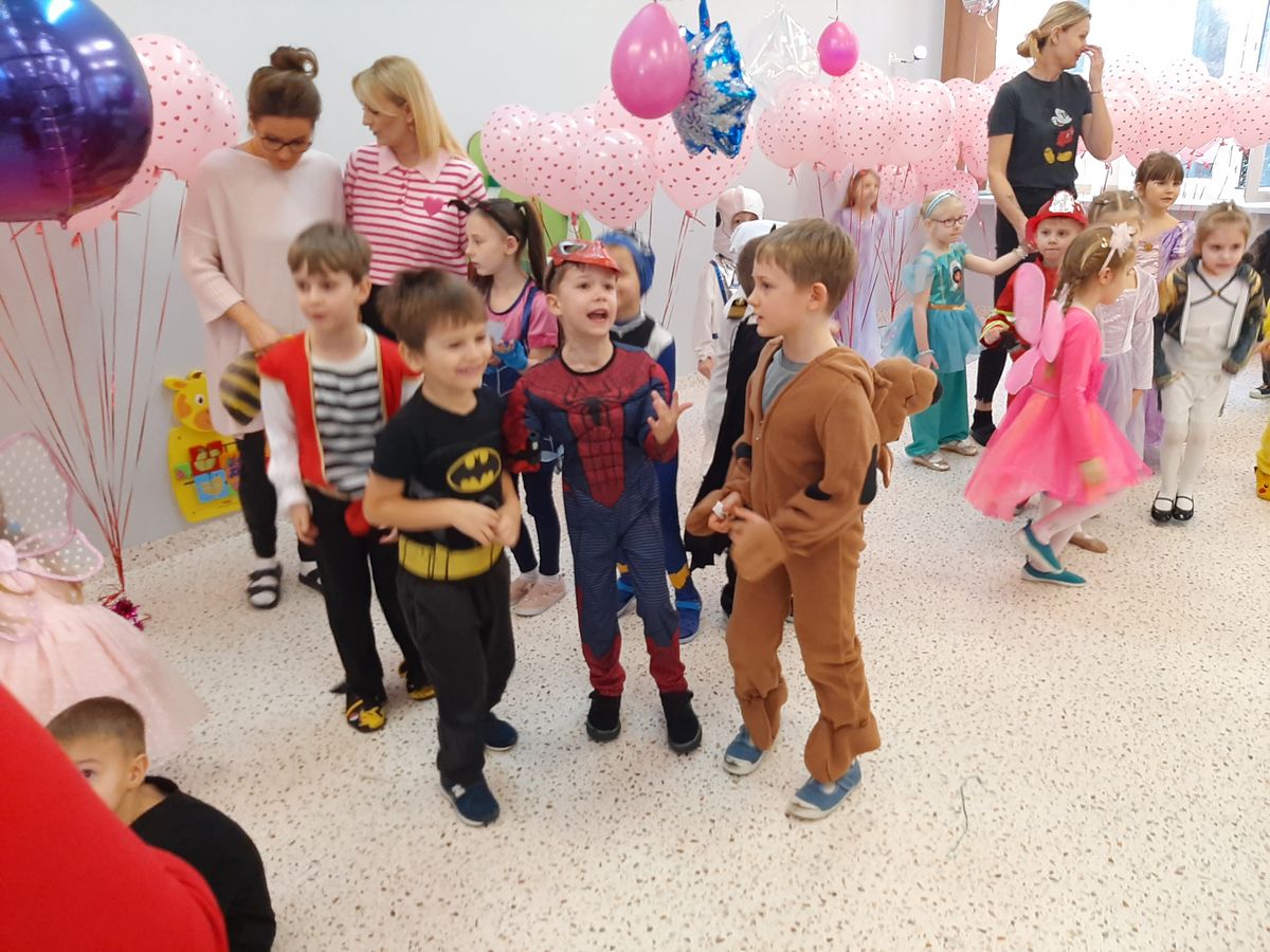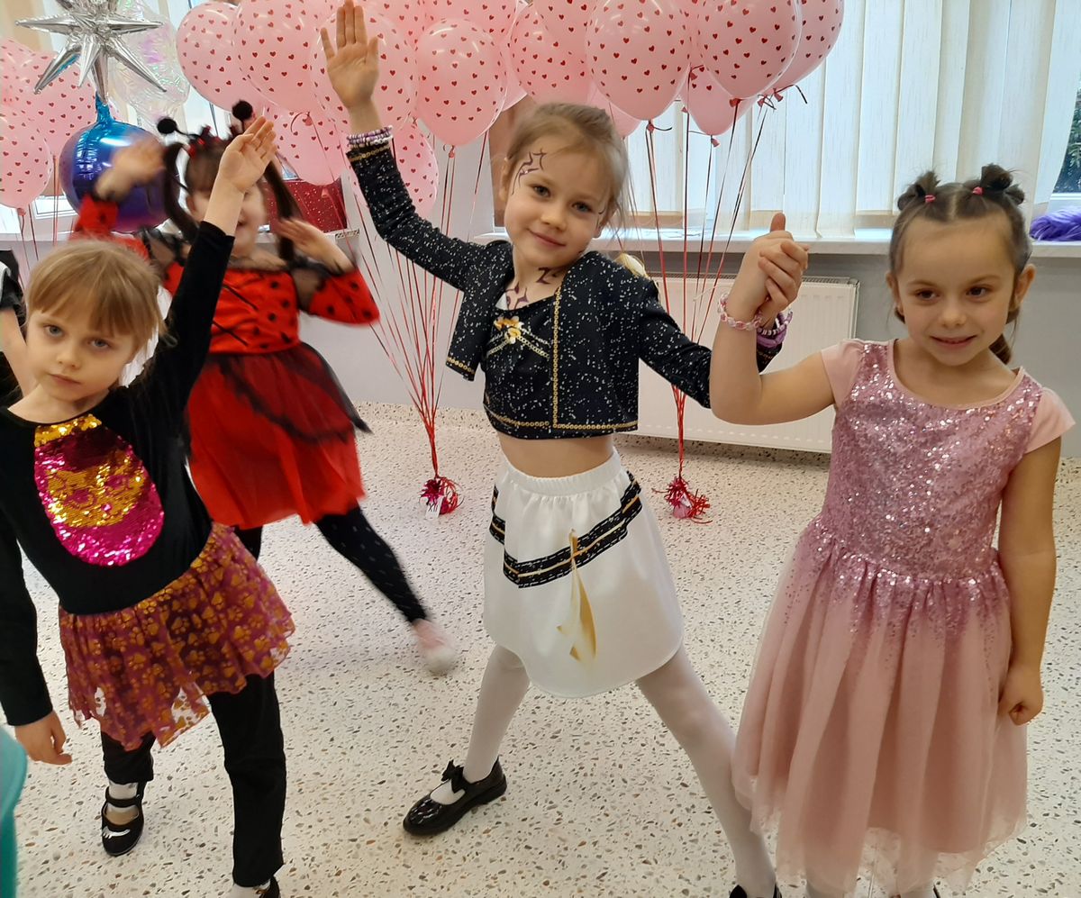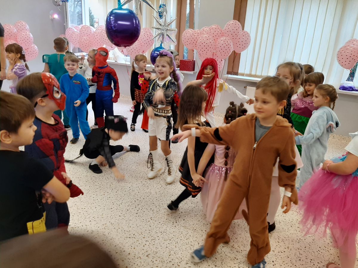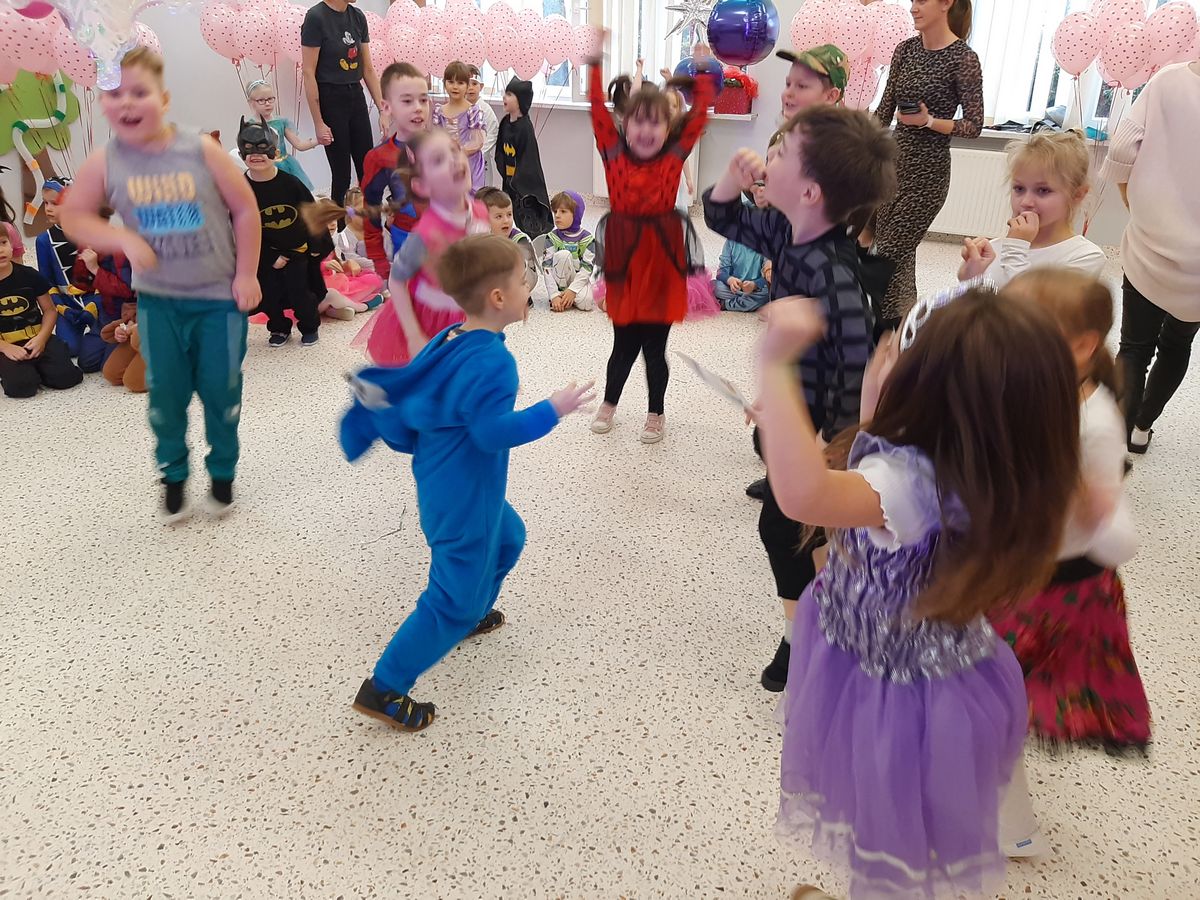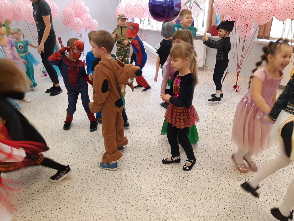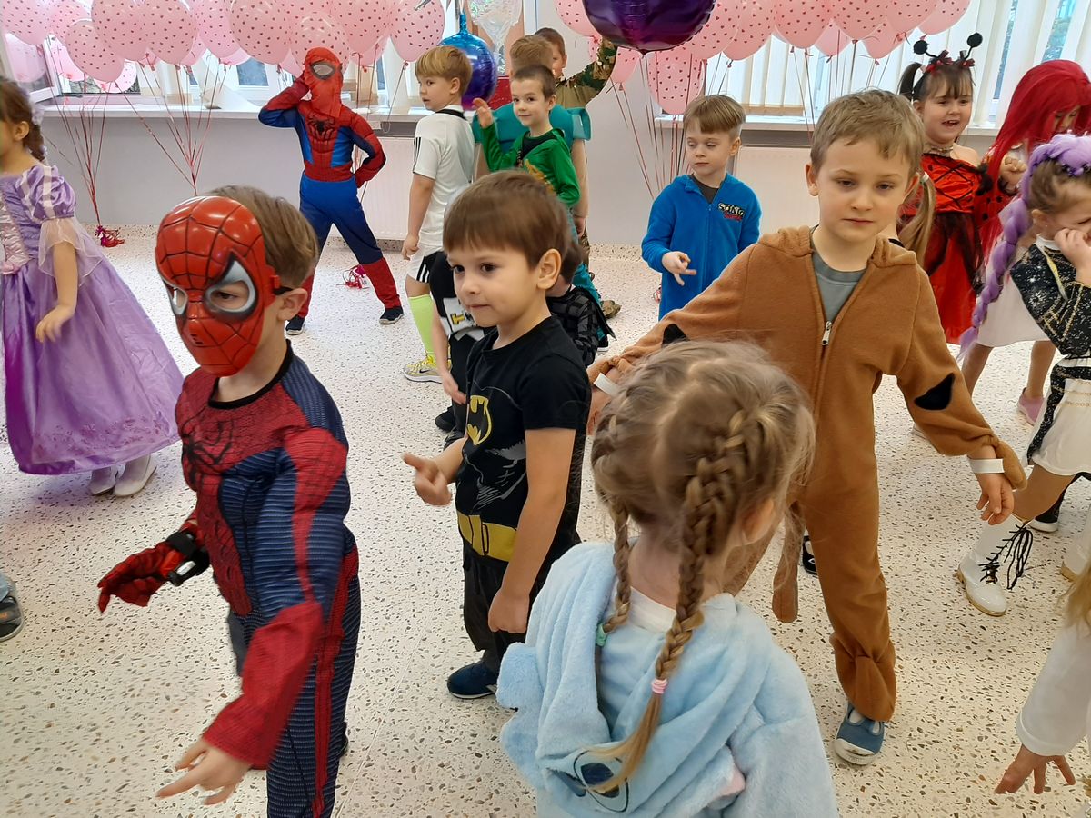 W tym roku obchodziliśmy niezwykły bal karnawałowy, ponieważ został on połączony z Walentynkami. Od samego rana w przedszkolu zrobiło się kolorowo – progi naszej sali przekroczyły wróżki, księżniczki, biedronki, a także rycerze, policjanci i strażacy. Dzieci z dumą prezentowały stroje ulubionych bajkowych bohaterów. Walentynkowe dekoracje sali stworzyły wyjątkowy klimat. Było mnóstwo śmiechu, ciekawych konkursów i tańców przy największych przebojach. Po zabawie na przedszkolaków czekał poczęstunek przygotowany przez rodziców – bardzo dziękujemy.