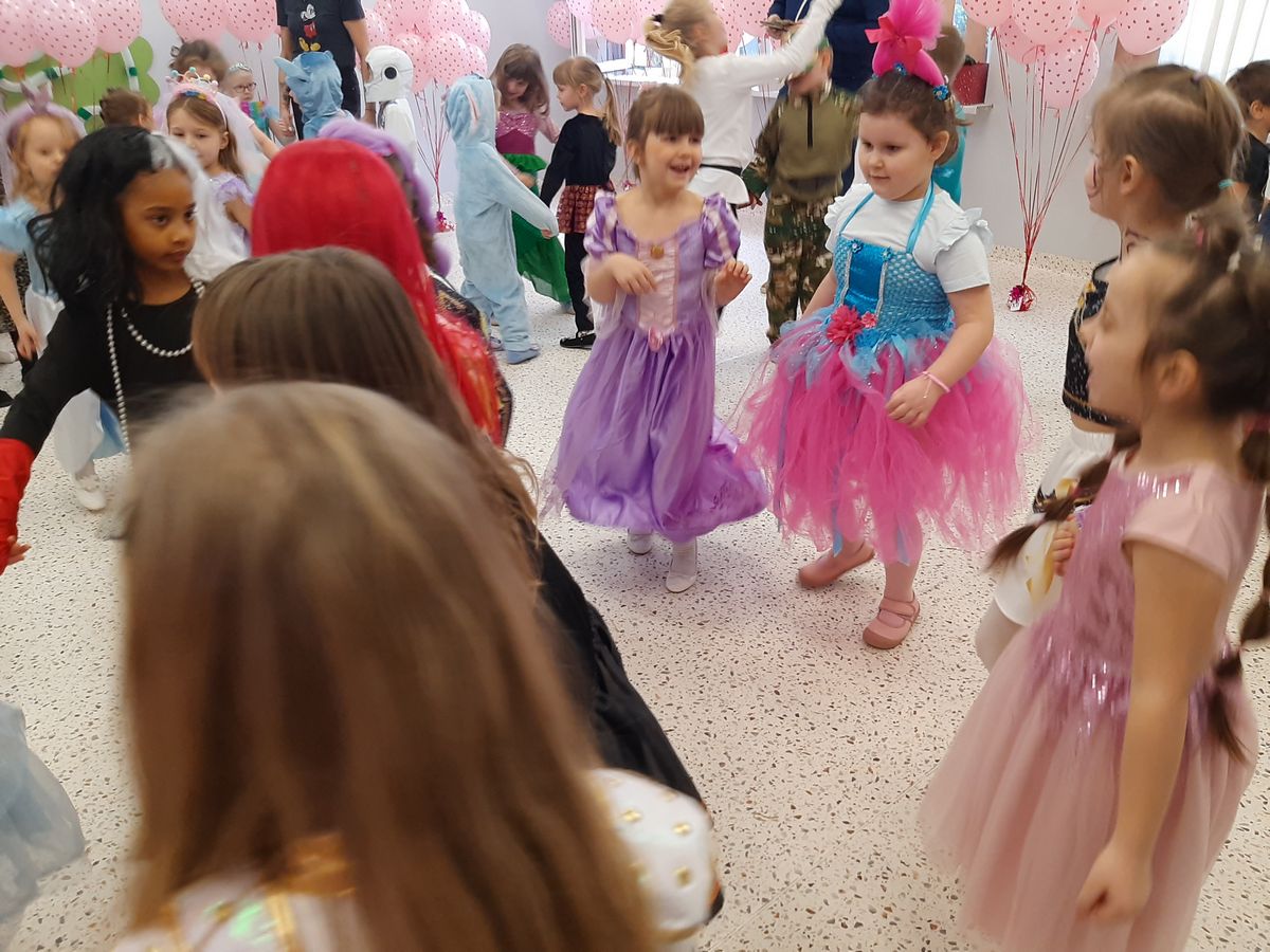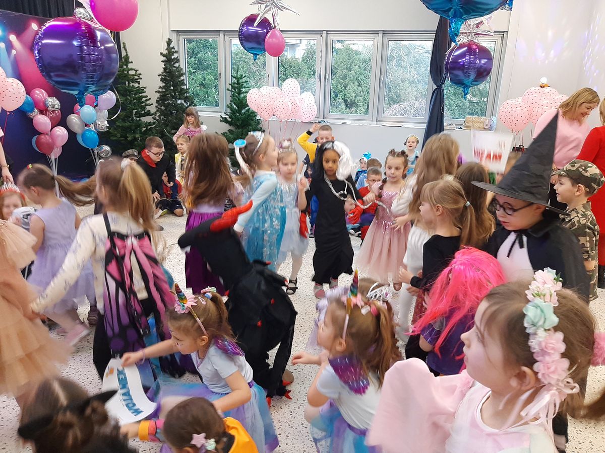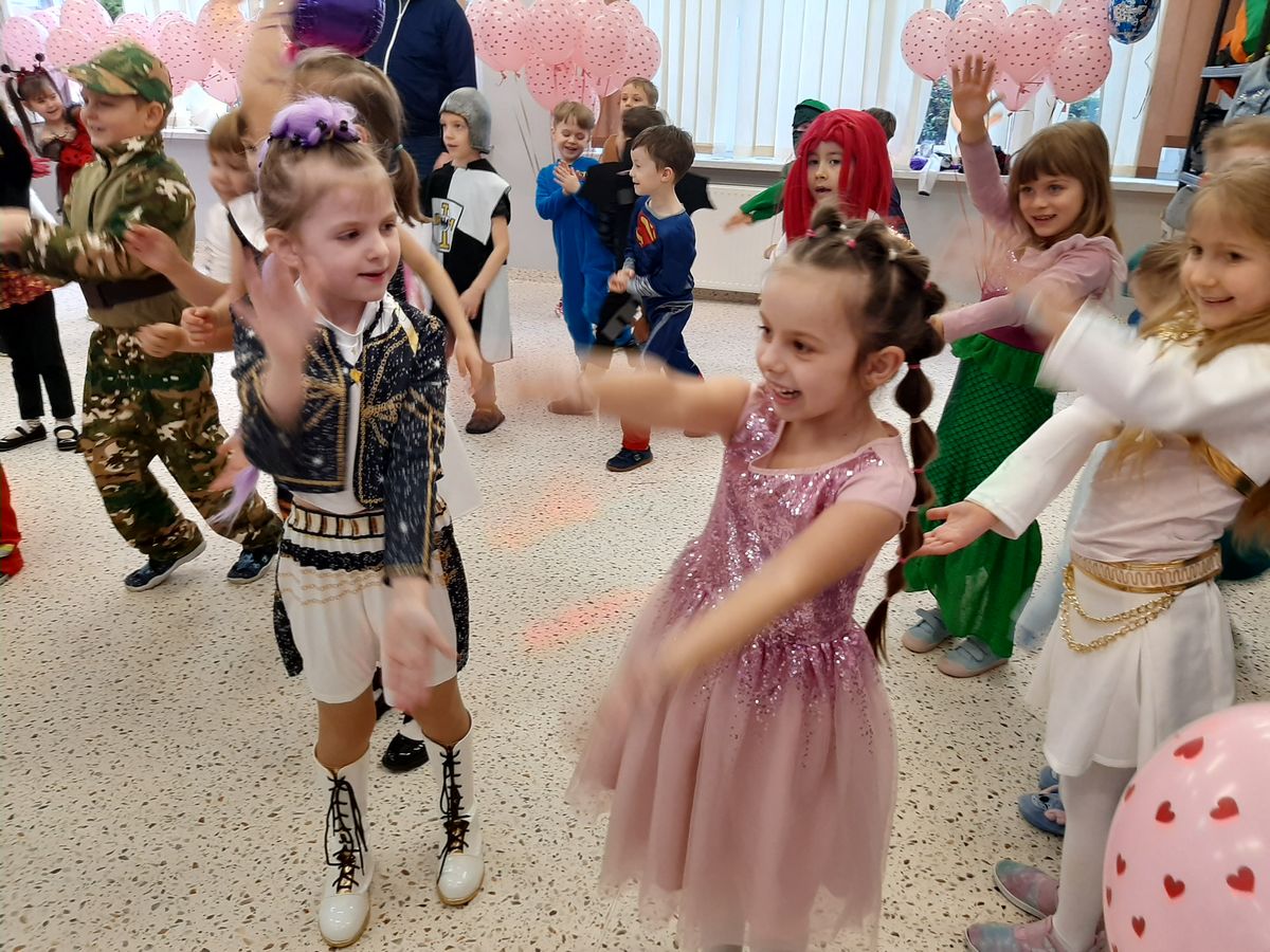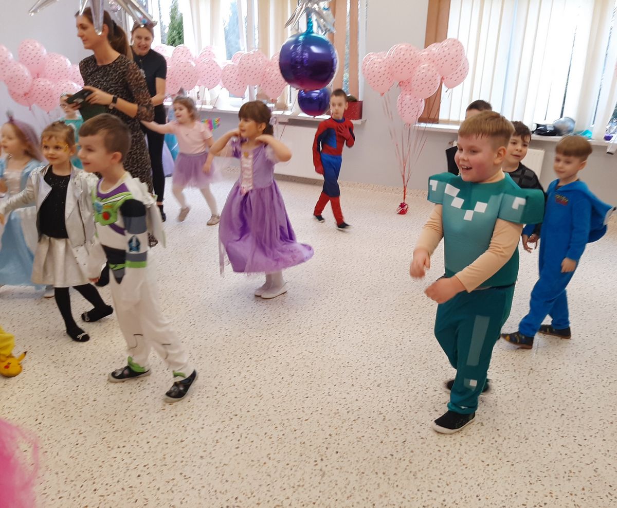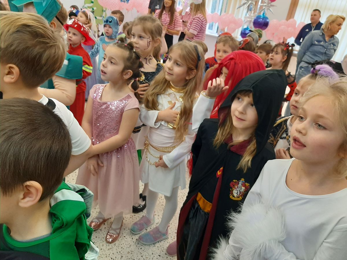 W tym roku obchodziliśmy niezwykły bal karnawałowy, ponieważ został on połączony z Walentynkami. Od samego rana w przedszkolu zrobiło się kolorowo – progi naszej sali przekroczyły wróżki, księżniczki, biedronki, a także rycerze, policjanci i strażacy. Dzieci z dumą prezentowały stroje ulubionych bajkowych bohaterów. Walentynkowe dekoracje sali stworzyły wyjątkowy klimat. Było mnóstwo śmiechu, ciekawych konkursów i tańców przy największych przebojach. Po zabawie na przedszkolaków czekał poczęstunek przygotowany przez rodziców – bardzo dziękujemy.