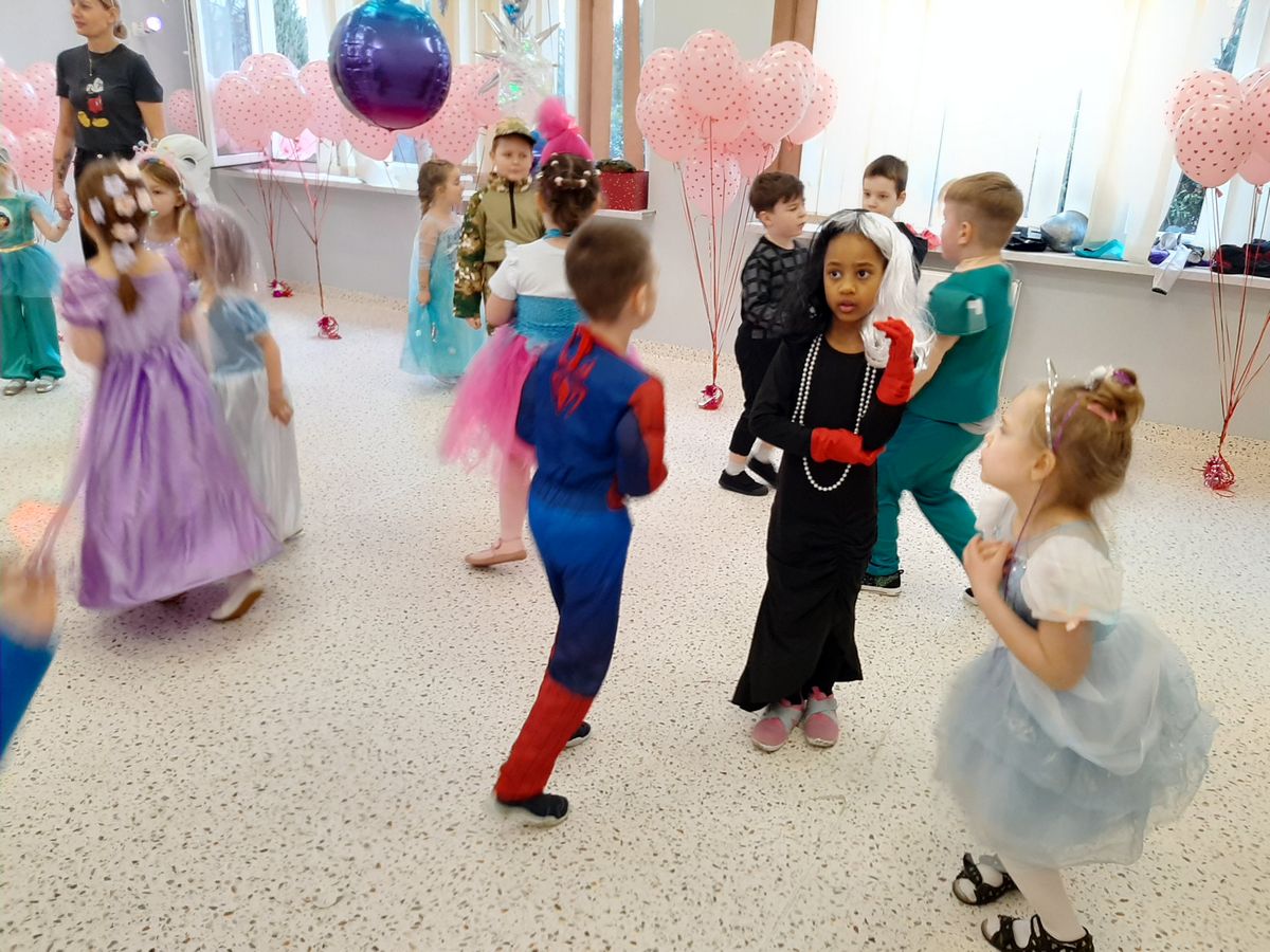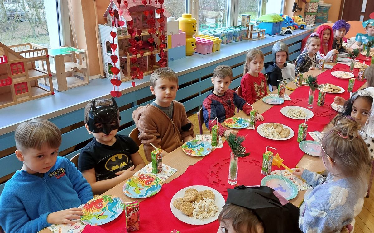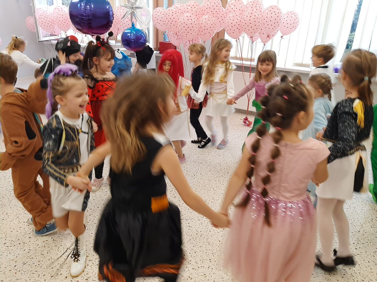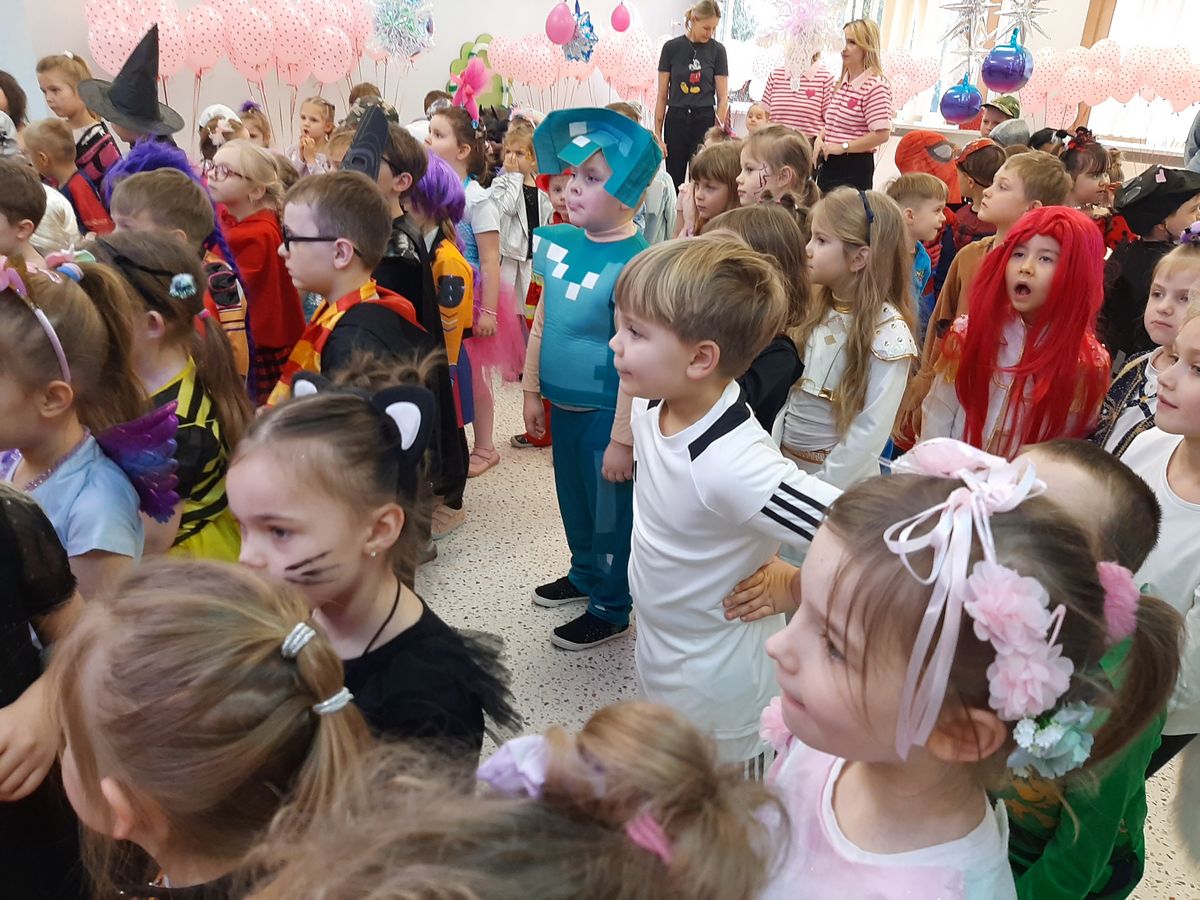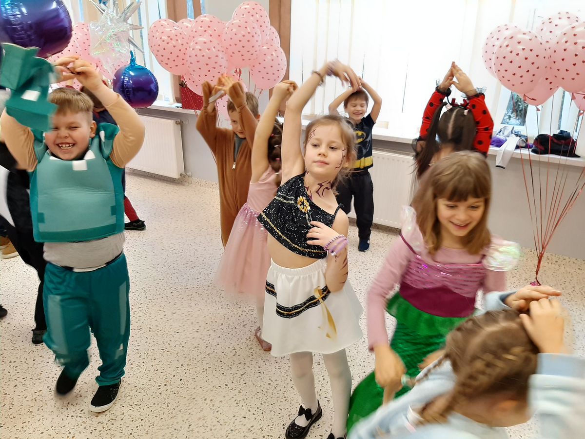 W tym roku obchodziliśmy niezwykły bal karnawałowy, ponieważ został on połączony z Walentynkami. Od samego rana w przedszkolu zrobiło się kolorowo – progi naszej sali przekroczyły wróżki, księżniczki, biedronki, a także rycerze, policjanci i strażacy. Dzieci z dumą prezentowały stroje ulubionych bajkowych bohaterów. Walentynkowe dekoracje sali stworzyły wyjątkowy klimat. Było mnóstwo śmiechu, ciekawych konkursów i tańców przy największych przebojach. Po zabawie na przedszkolaków czekał poczęstunek przygotowany przez rodziców – bardzo dziękujemy.