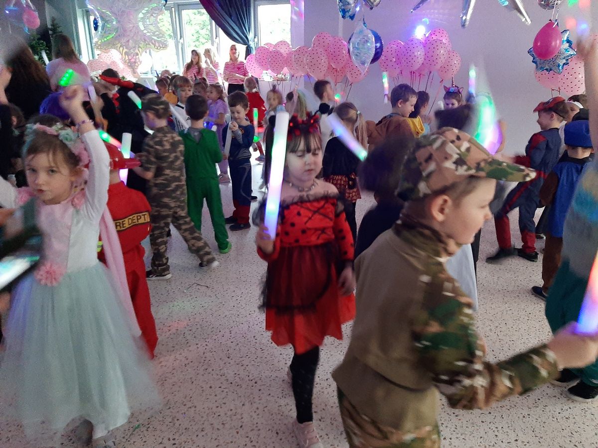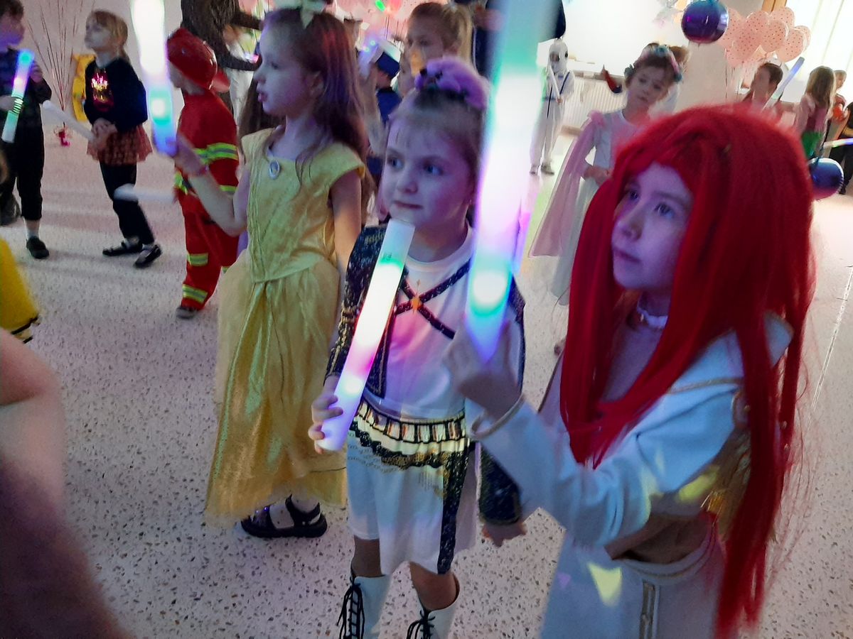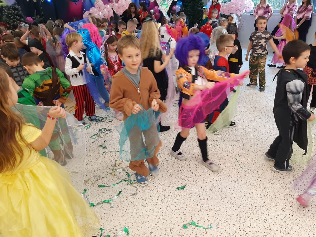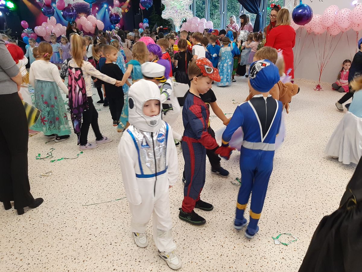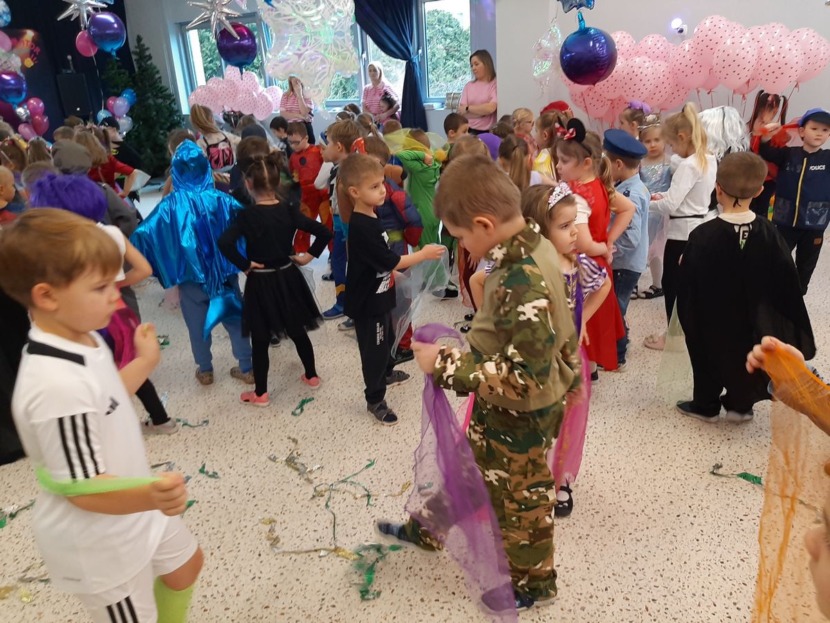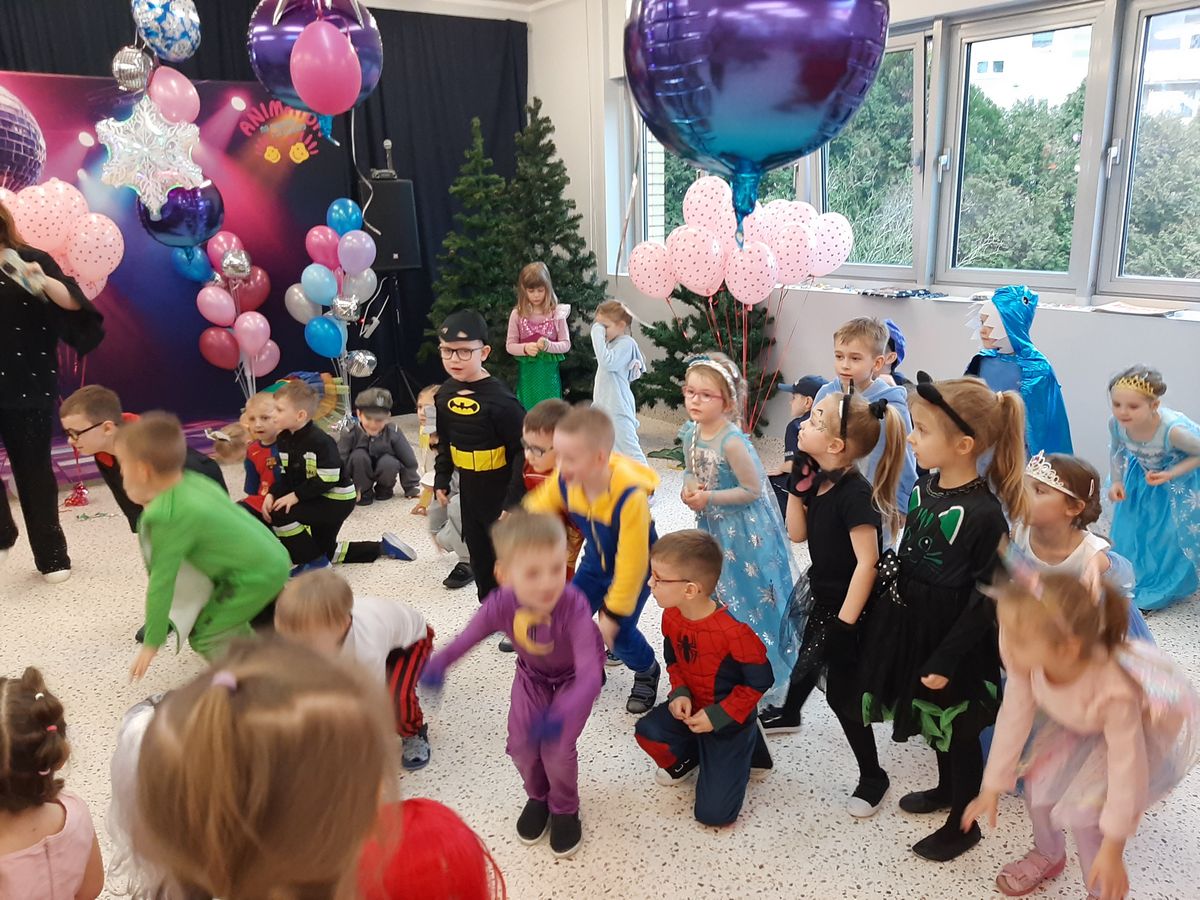 W tym roku obchodziliśmy niezwykły bal karnawałowy, ponieważ został on połączony z Walentynkami. Od samego rana w przedszkolu zrobiło się kolorowo – progi naszej sali przekroczyły wróżki, księżniczki, biedronki, a także rycerze, policjanci i strażacy. Dzieci z dumą prezentowały stroje ulubionych bajkowych bohaterów. Walentynkowe dekoracje sali stworzyły wyjątkowy klimat. Było mnóstwo śmiechu, ciekawych konkursów i tańców przy największych przebojach. Po zabawie na przedszkolaków czekał poczęstunek przygotowany przez rodziców – bardzo dziękujemy.