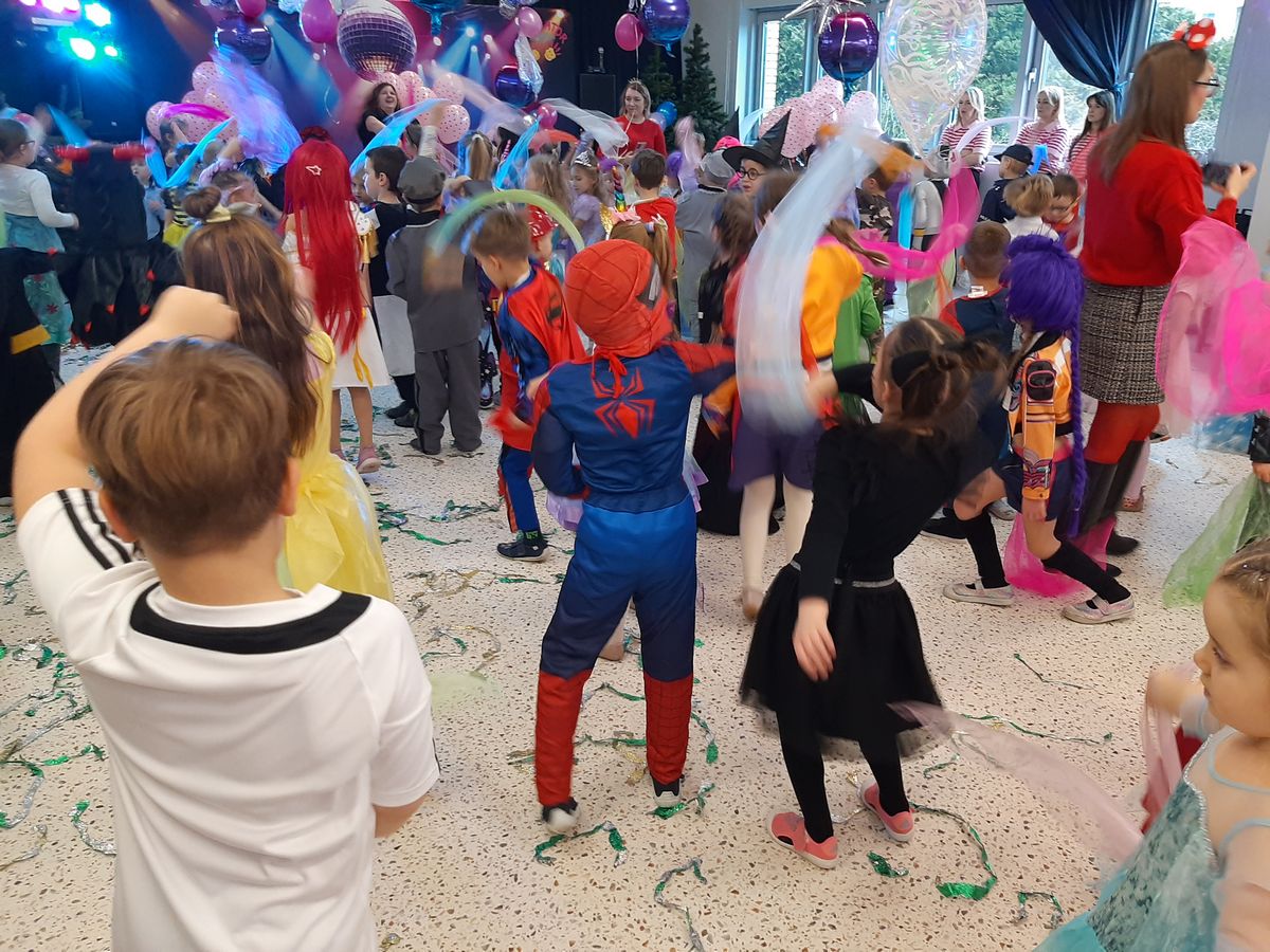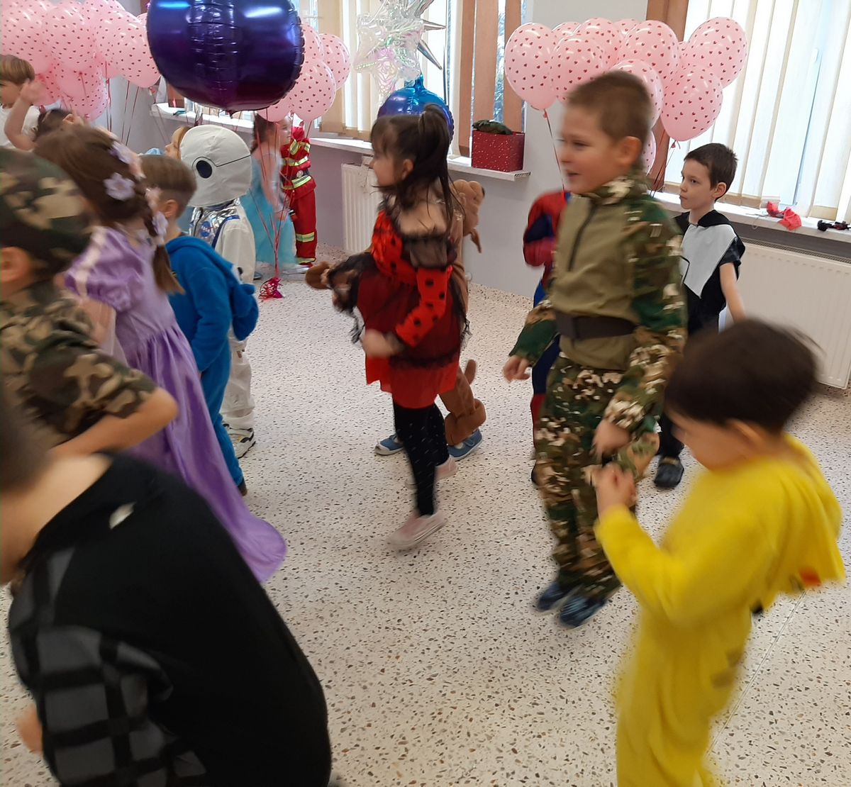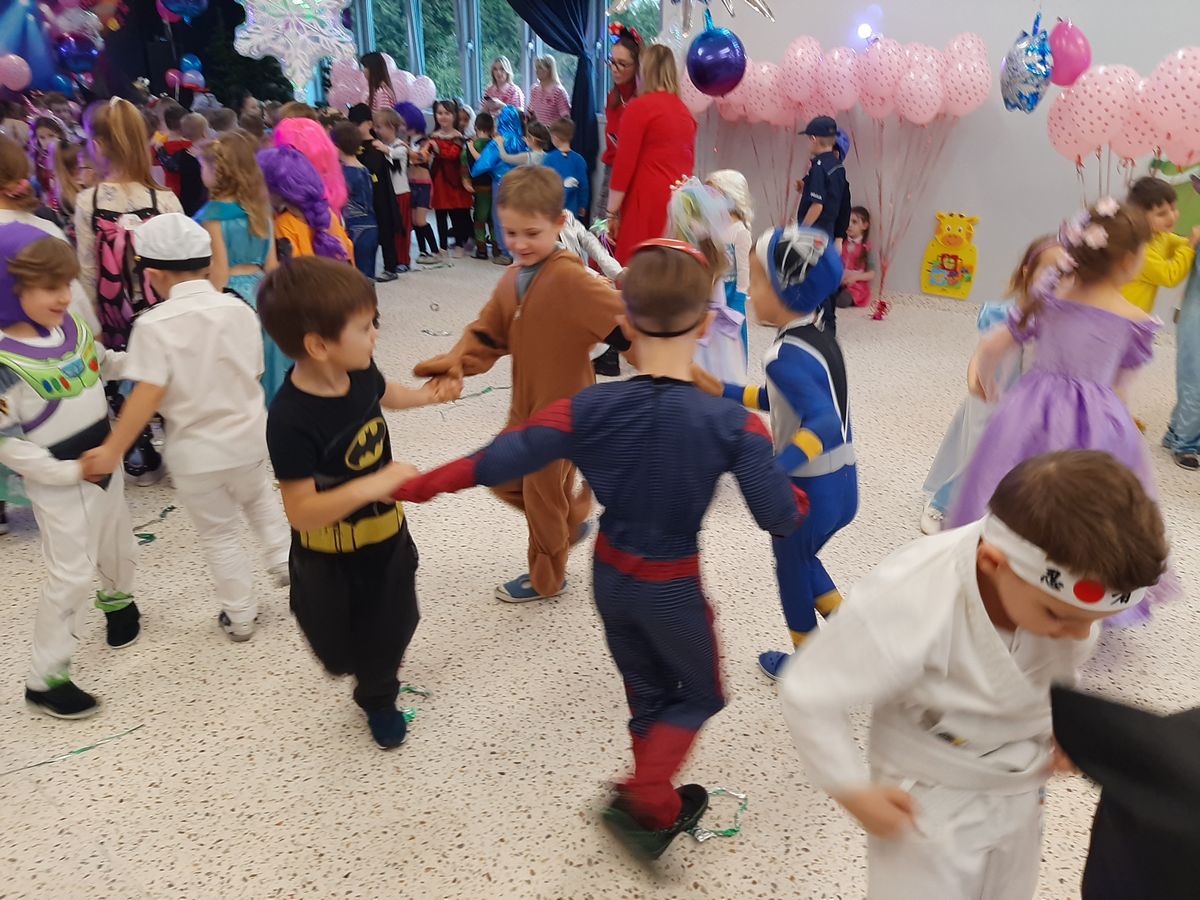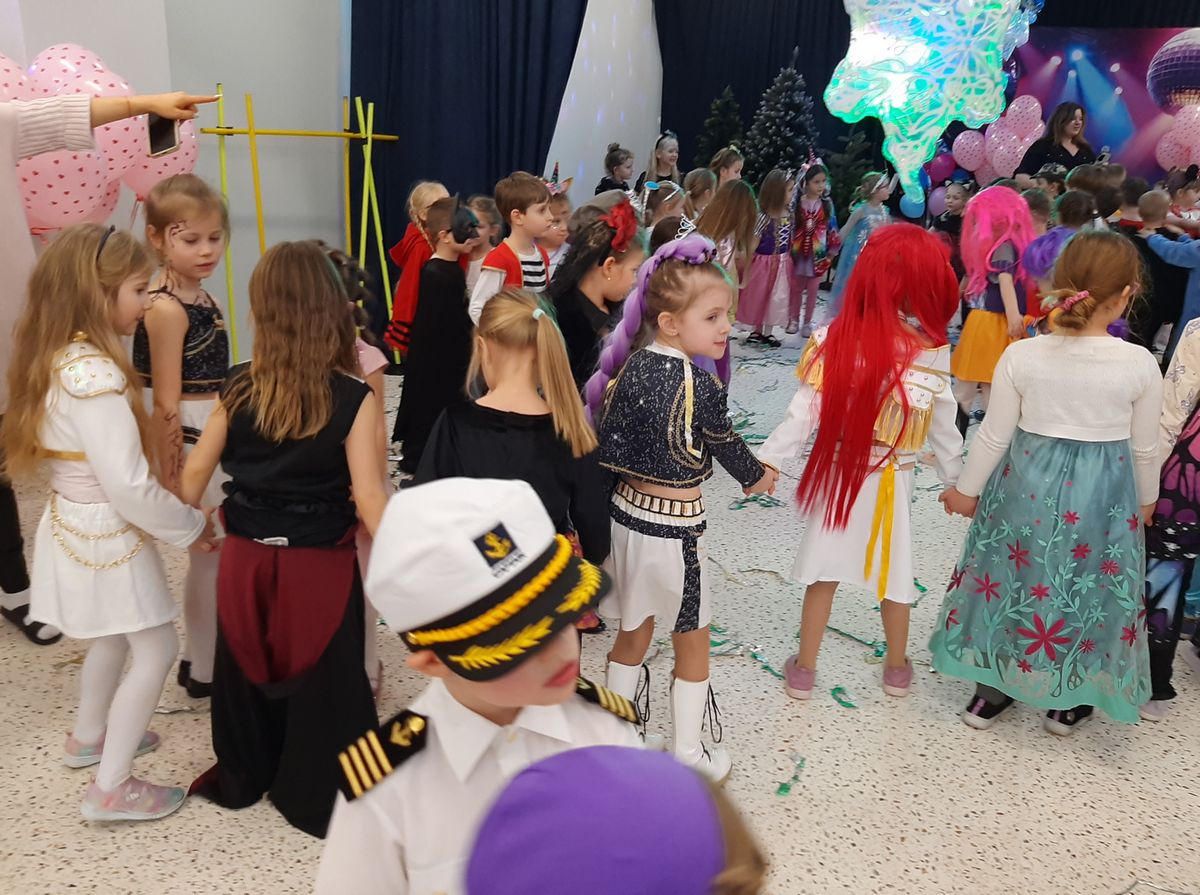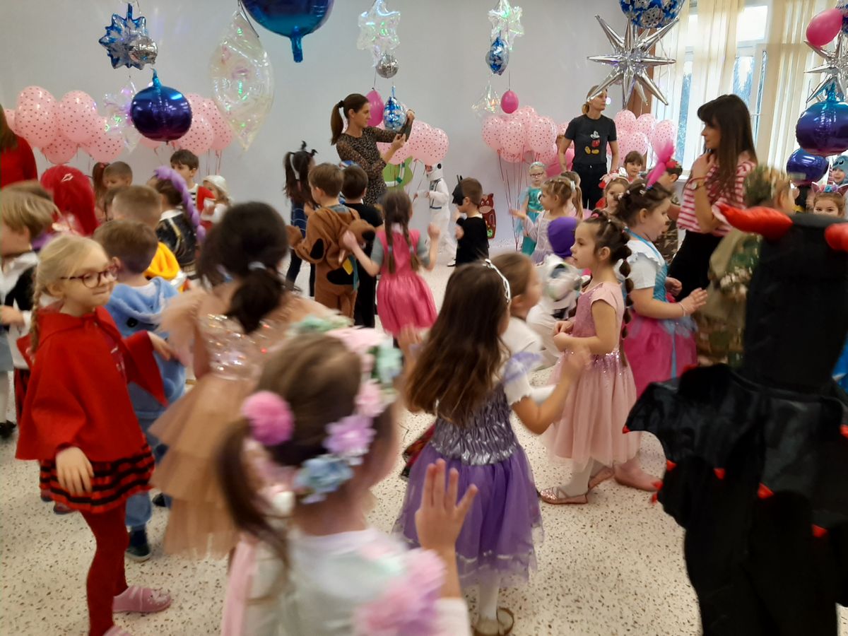 W tym roku obchodziliśmy niezwykły bal karnawałowy, ponieważ został on połączony z Walentynkami. Od samego rana w przedszkolu zrobiło się kolorowo – progi naszej sali przekroczyły wróżki, księżniczki, biedronki, a także rycerze, policjanci i strażacy. Dzieci z dumą prezentowały stroje ulubionych bajkowych bohaterów. Walentynkowe dekoracje sali stworzyły wyjątkowy klimat. Było mnóstwo śmiechu, ciekawych konkursów i tańców przy największych przebojach. Po zabawie na przedszkolaków czekał poczęstunek przygotowany przez rodziców – bardzo dziękujemy.