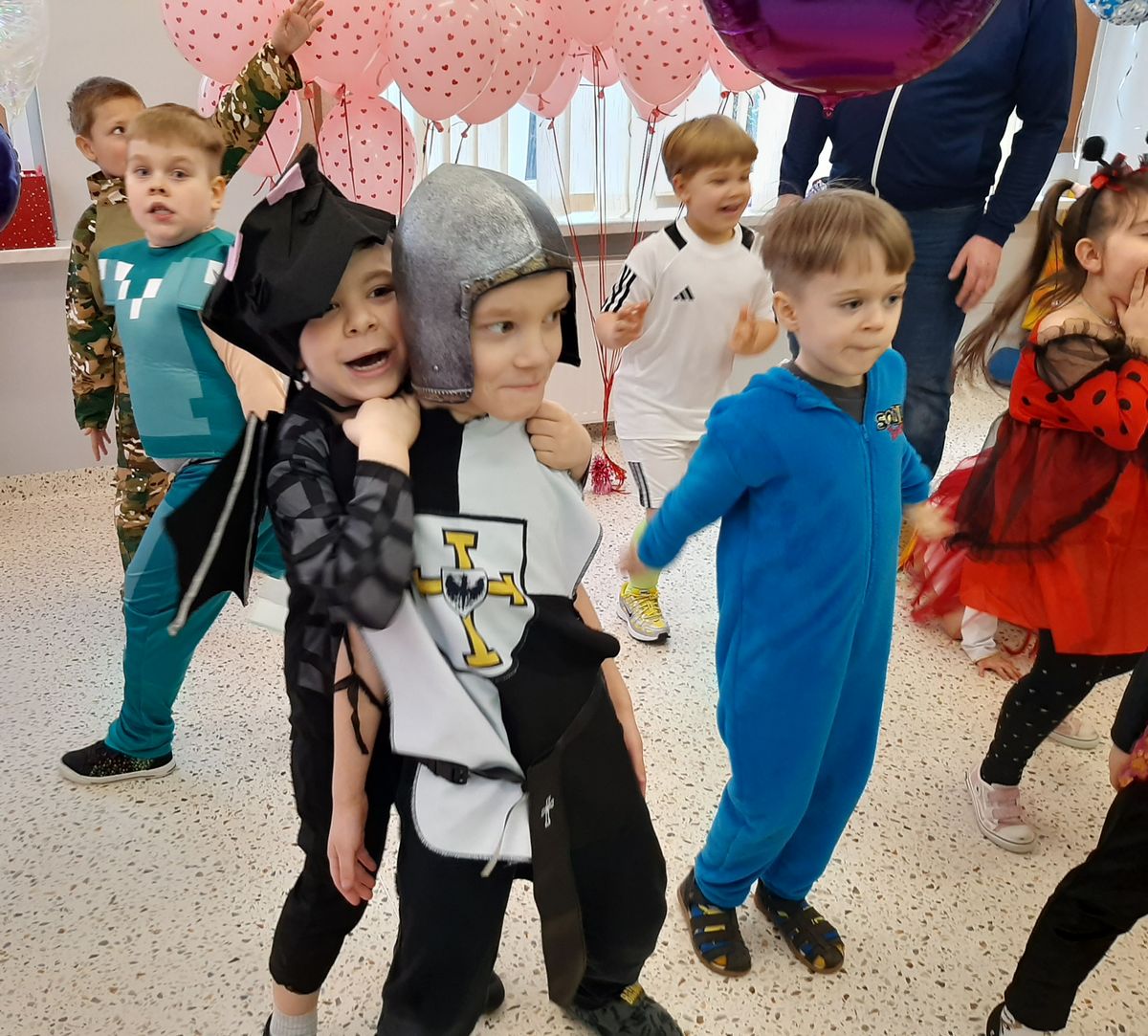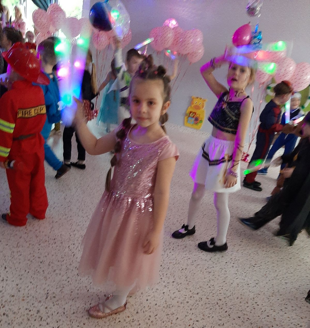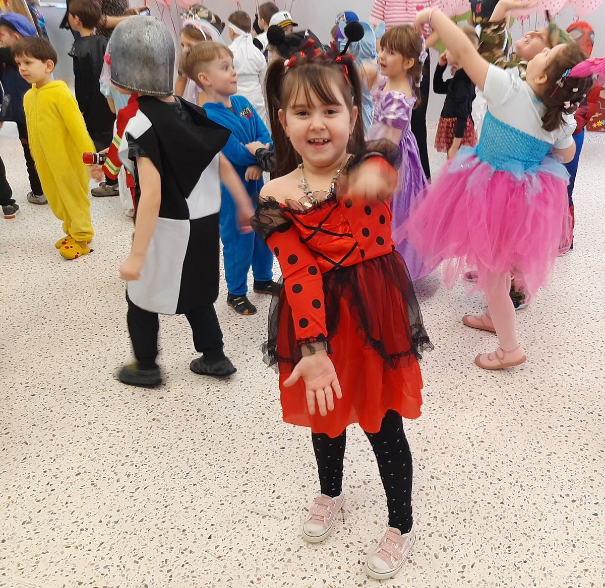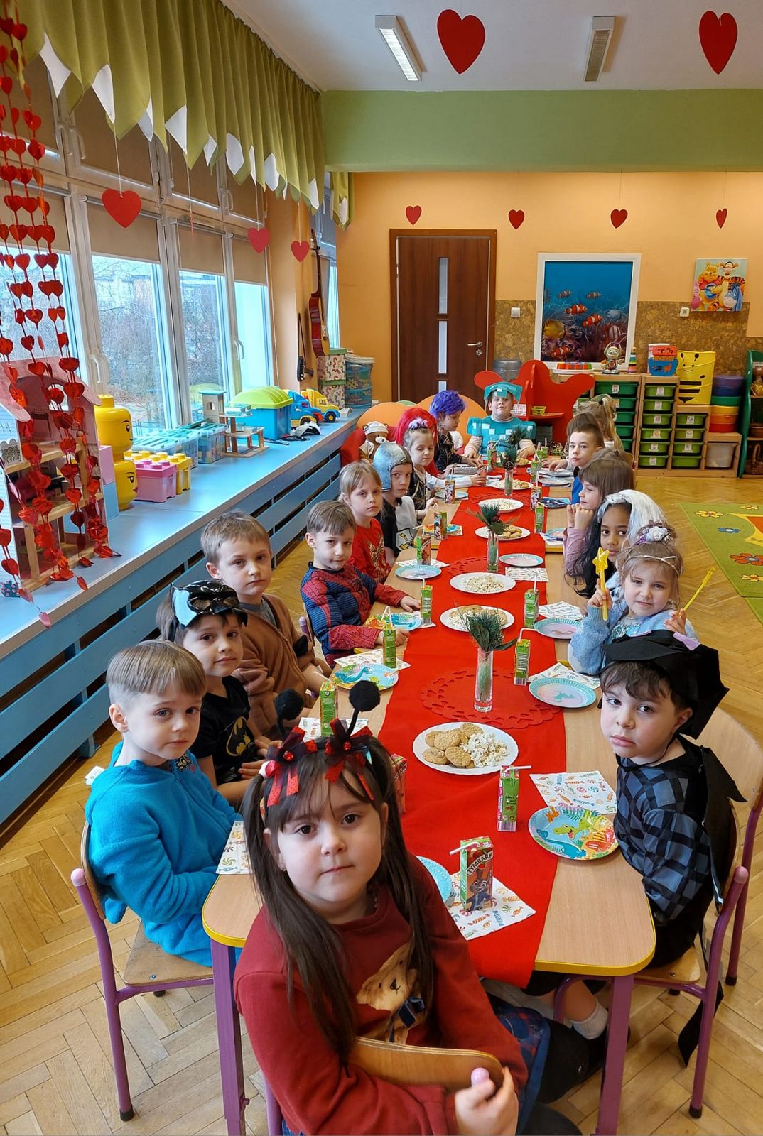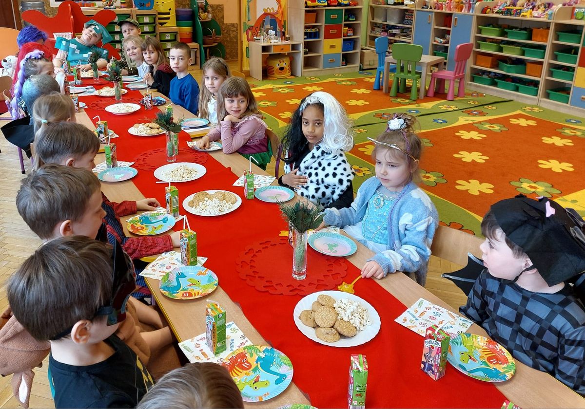 W tym roku obchodziliśmy niezwykły bal karnawałowy, ponieważ został on połączony z Walentynkami. Od samego rana w przedszkolu zrobiło się kolorowo – progi naszej sali przekroczyły wróżki, księżniczki, biedronki, a także rycerze, policjanci i strażacy. Dzieci z dumą prezentowały stroje ulubionych bajkowych bohaterów. Walentynkowe dekoracje sali stworzyły wyjątkowy klimat. Było mnóstwo śmiechu, ciekawych konkursów i tańców przy największych przebojach. Po zabawie na przedszkolaków czekał poczęstunek przygotowany przez rodziców – bardzo dziękujemy.