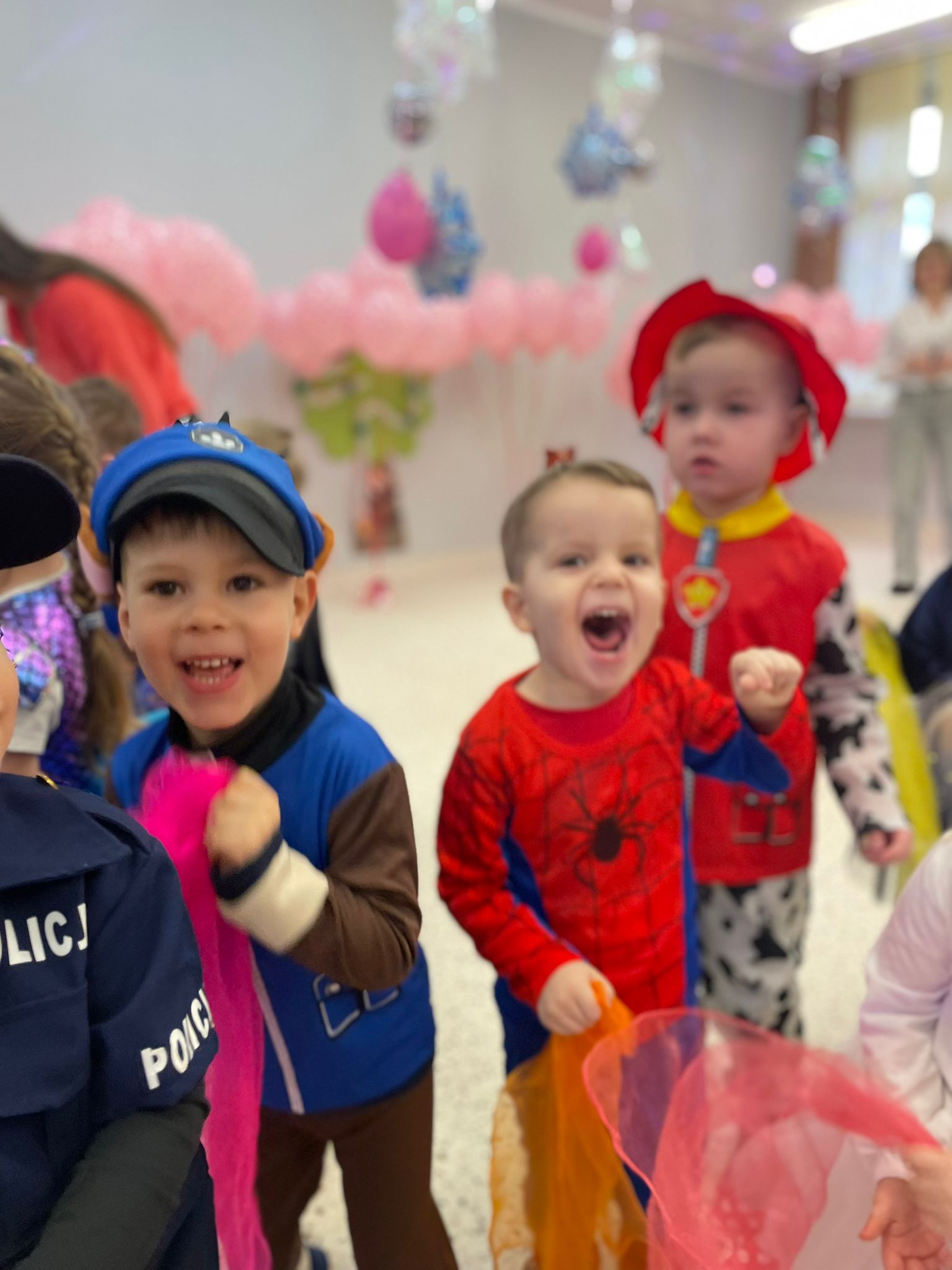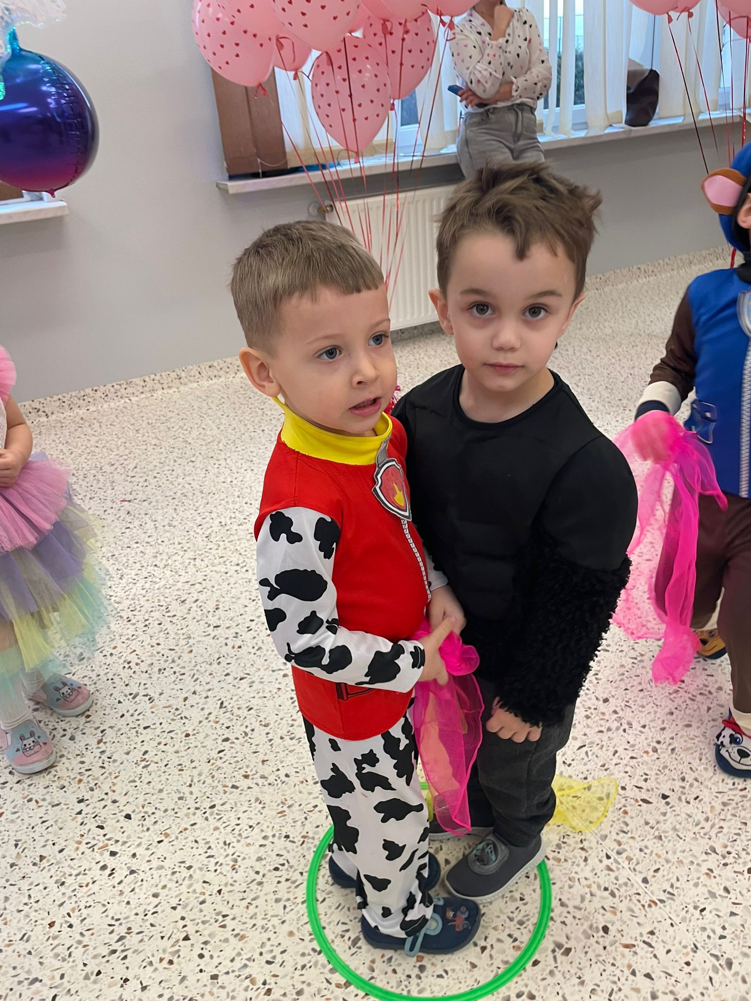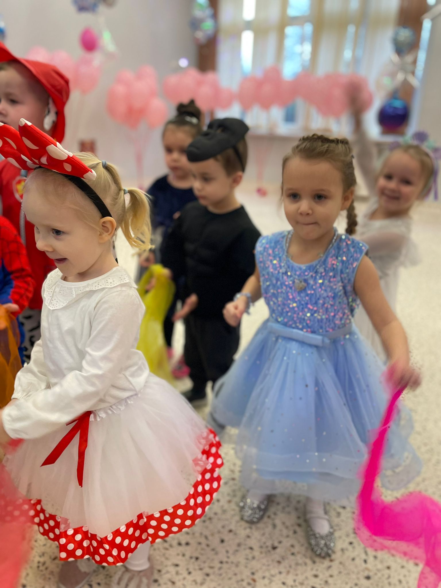 13 lutego, w naszym przedszkolu zapanowała wyjątkowa atmosfera za sprawą balu karnawałowo-walentynkowego, na który z niecierpliwością czekały maluszki z grupy VII. Spotkanie miało na celu nie tylko uczczenie karnawału oraz Dnia Świętego Walentego, lecz także sprzyjało budowaniu relacji oraz wspólnemu przeżywaniu radosnych chwil. Mali uczestnicy pojawili się w sali w barwnych przebraniach. Można było spotkać bajkowe postacie, księżniczki, prehistoryczne stwory, a nawet dzielnego policjanta. Podczas zabawy dzieci chętnie tańczyły i brały udział w animacjach, a z każdej strony słychać było śmiech i entuzjazm. Na zakończenie każdy przedszkolak otrzymał balon w walentynkowym stylu oraz dyplom. Dzieci opuszczały przedszkole w doskonałych humorach, bogatsze o nowe doświadczenia i piękne wspomnienia.