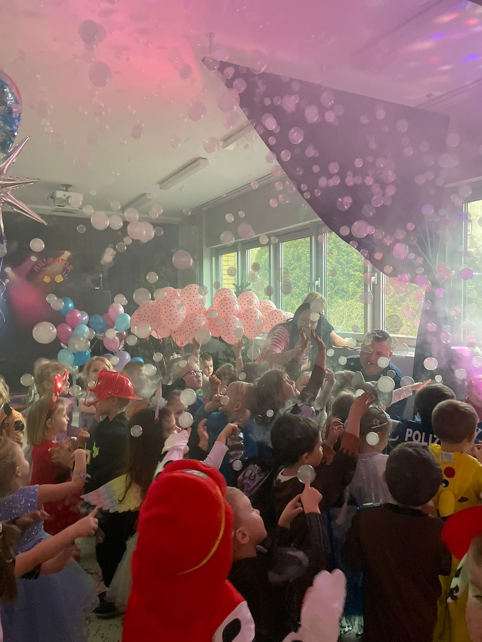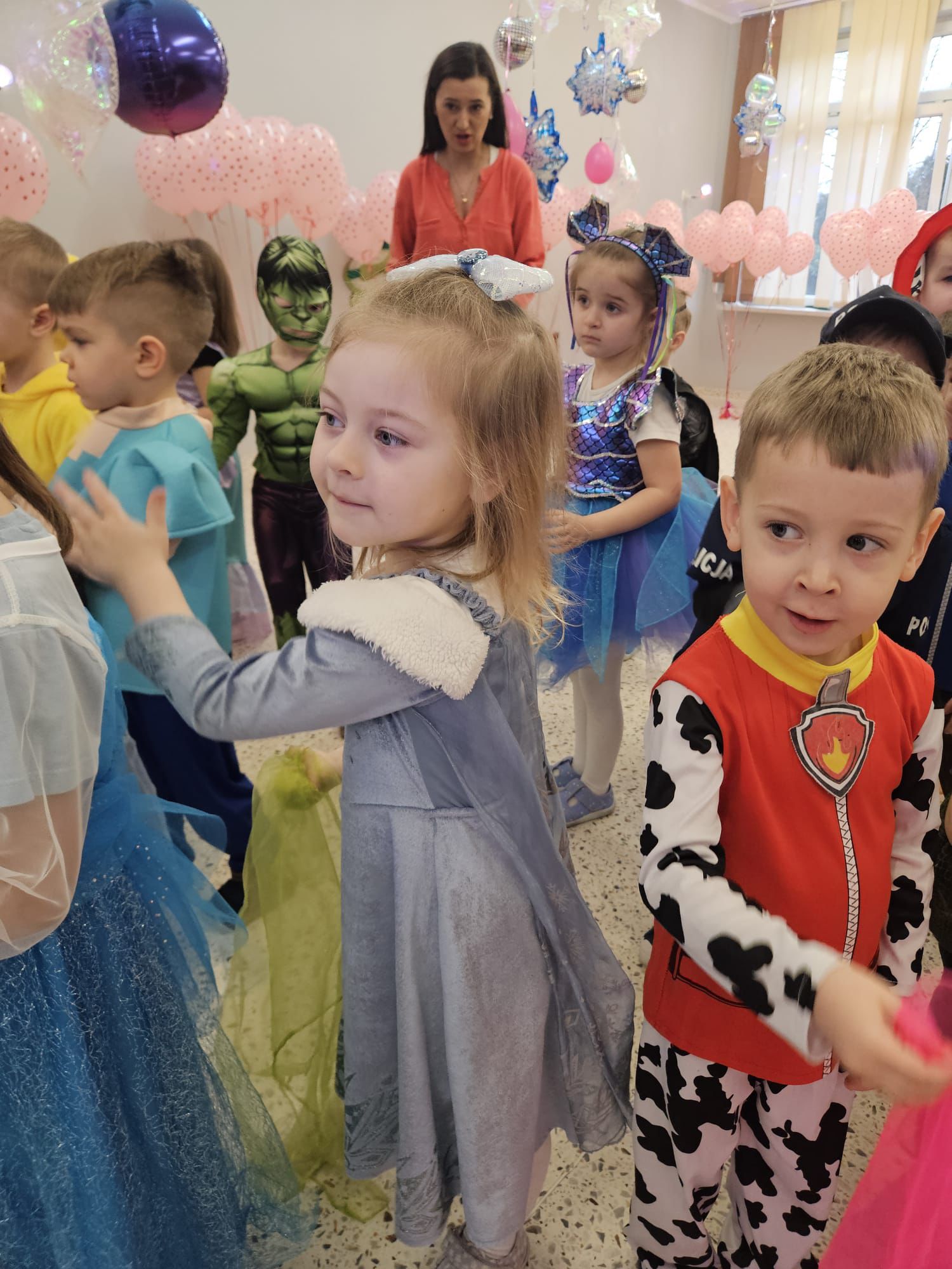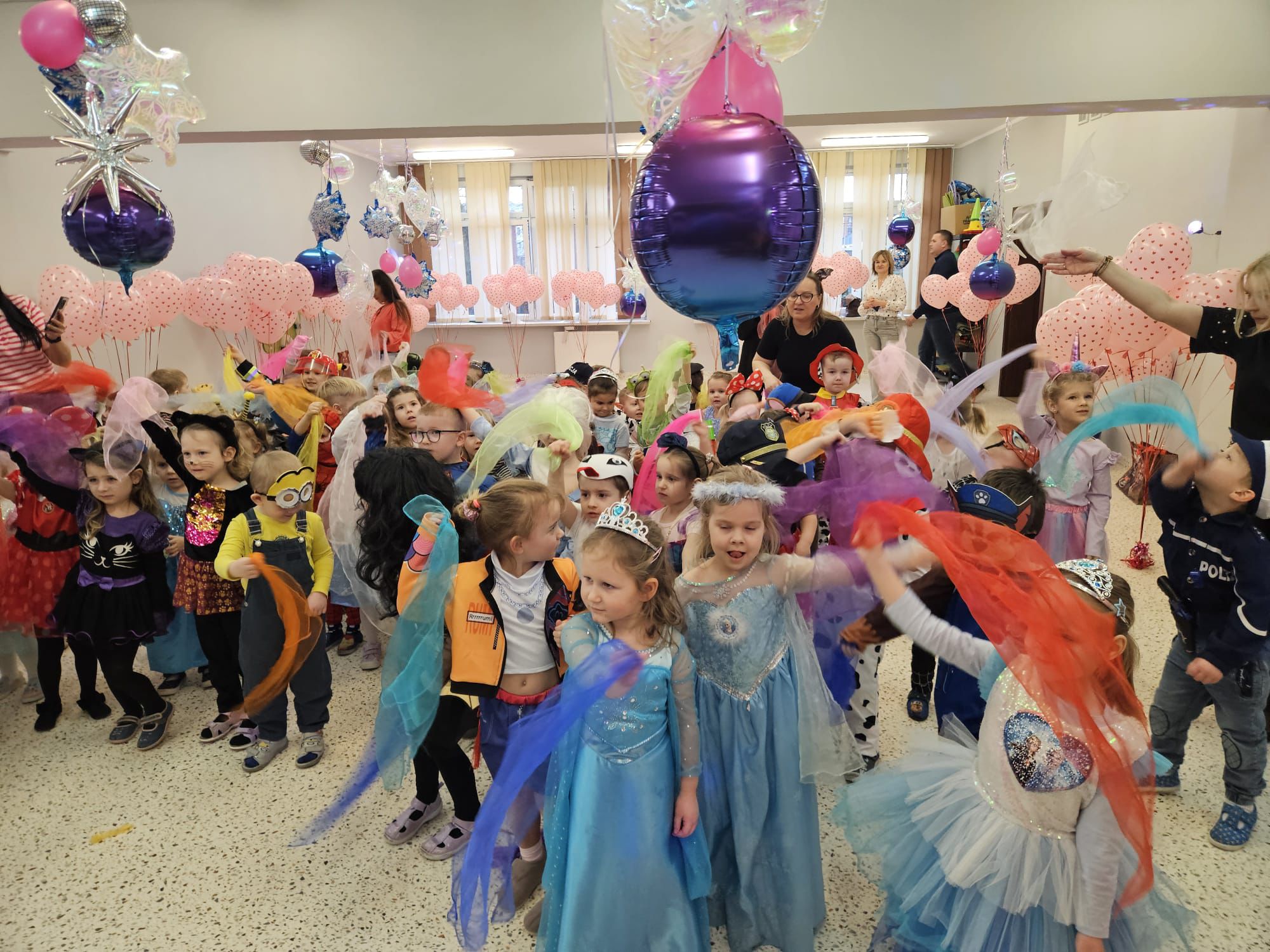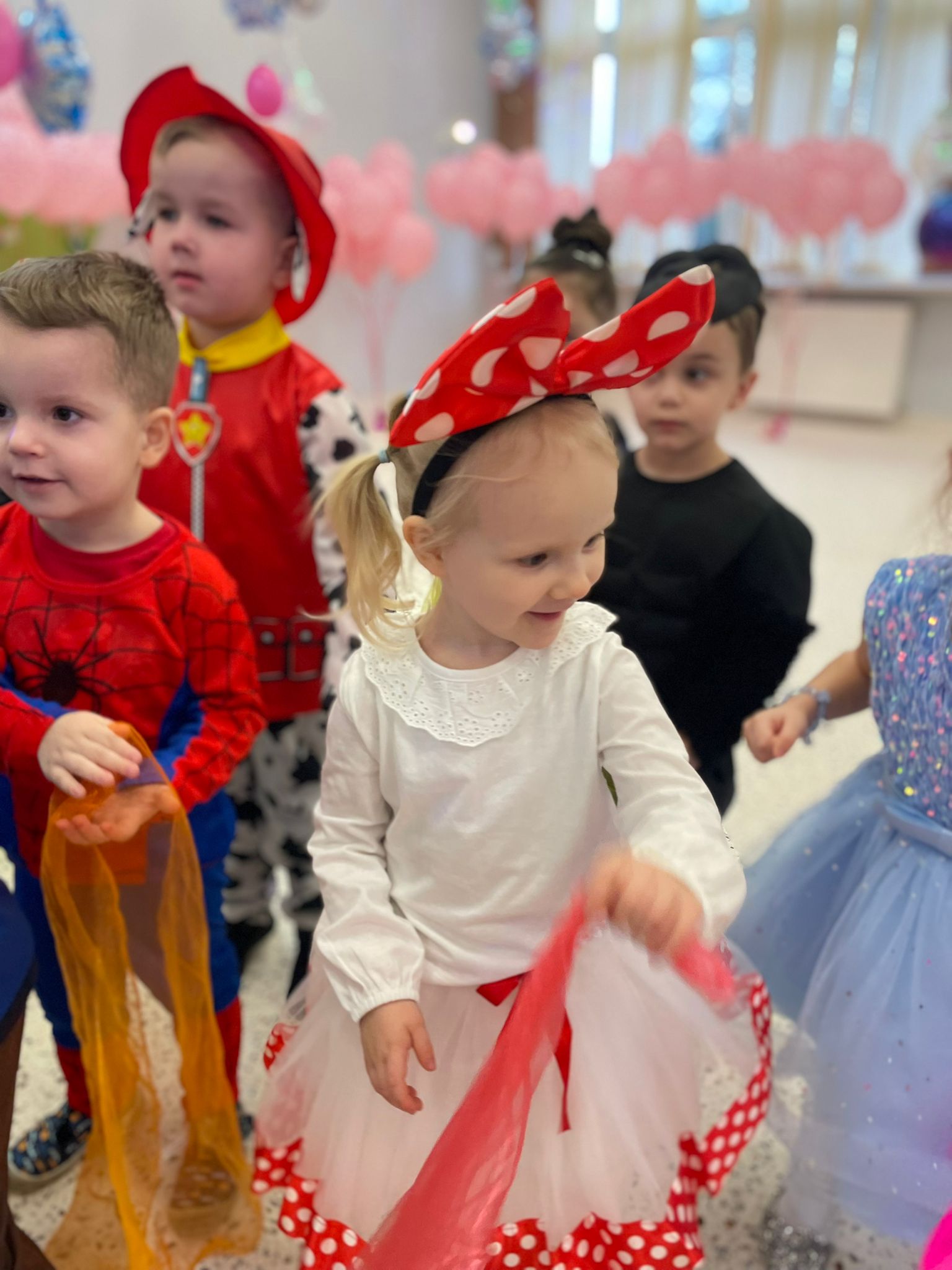 13 lutego, w naszym przedszkolu zapanowała wyjątkowa atmosfera za sprawą balu karnawałowo-walentynkowego, na który z niecierpliwością czekały maluszki z grupy VII. Spotkanie miało na celu nie tylko uczczenie karnawału oraz Dnia Świętego Walentego, lecz także sprzyjało budowaniu relacji oraz wspólnemu przeżywaniu radosnych chwil. Mali uczestnicy pojawili się w sali w barwnych przebraniach. Można było spotkać bajkowe postacie, księżniczki, prehistoryczne stwory, a nawet dzielnego policjanta. Podczas zabawy dzieci chętnie tańczyły i brały udział w animacjach, a z każdej strony słychać było śmiech i entuzjazm. Na zakończenie każdy przedszkolak otrzymał balon w walentynkowym stylu oraz dyplom. Dzieci opuszczały przedszkole w doskonałych humorach, bogatsze o nowe doświadczenia i piękne wspomnienia.