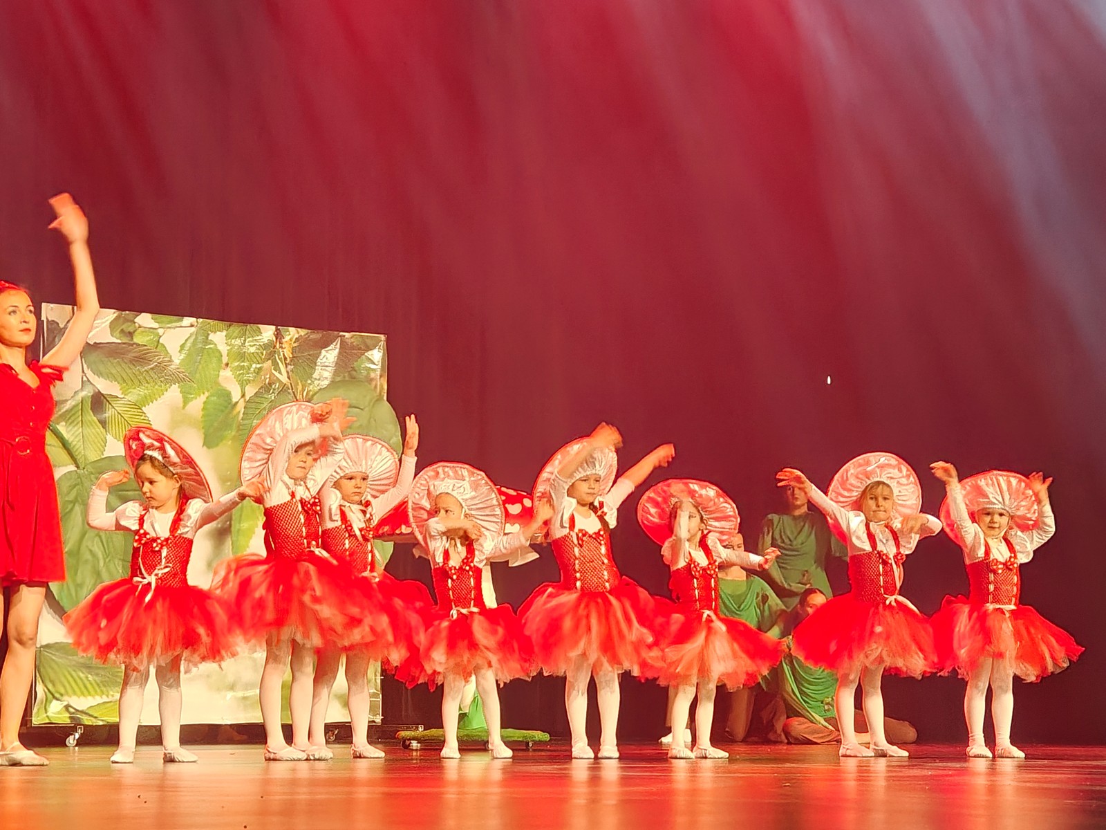 W dniu 8 grudnia przedszkolaki z grupy II i VI uczestniczyły w wyjątkowym spektaklu pt. "Bella i Bestia" inspirowany baśnią „Piękna i Bestia” z okazji 35-lecia działalności Studia Tańca Rytmix z Konina. Na scenie ożyły postacie z zaczarowanego zamku, a widzowie przeżyli wzruszającą historię miłości, odwagi i przemiany serca. To było niezwykle taneczne widowisko pełne emocji, piękna i magii… a tym bardziej ważne dla nas, ponieważ udział brały nasze koleżanki z przedszkola: Oliwka z grupy II i Zuzia z grupy VI. Jesteśmy z Was bardzo dumni i serdecznie gratulujemy cudownego występu! Brawo!