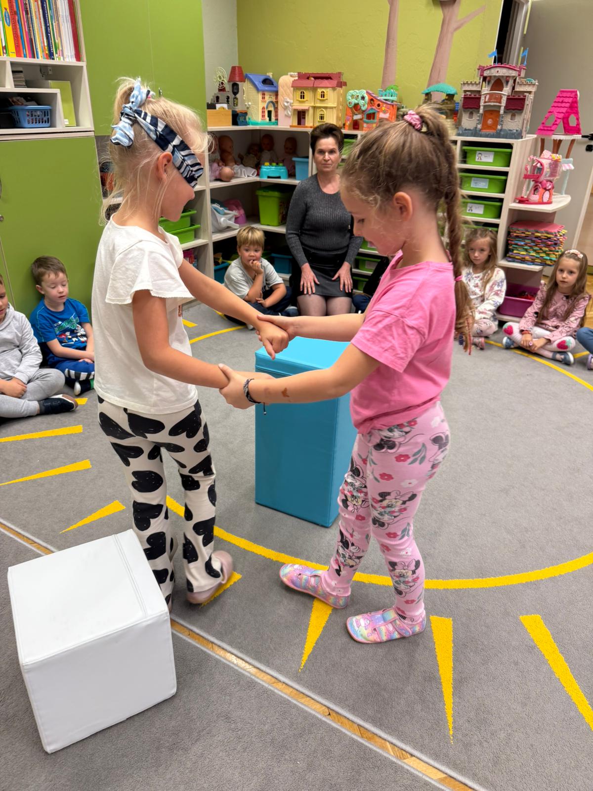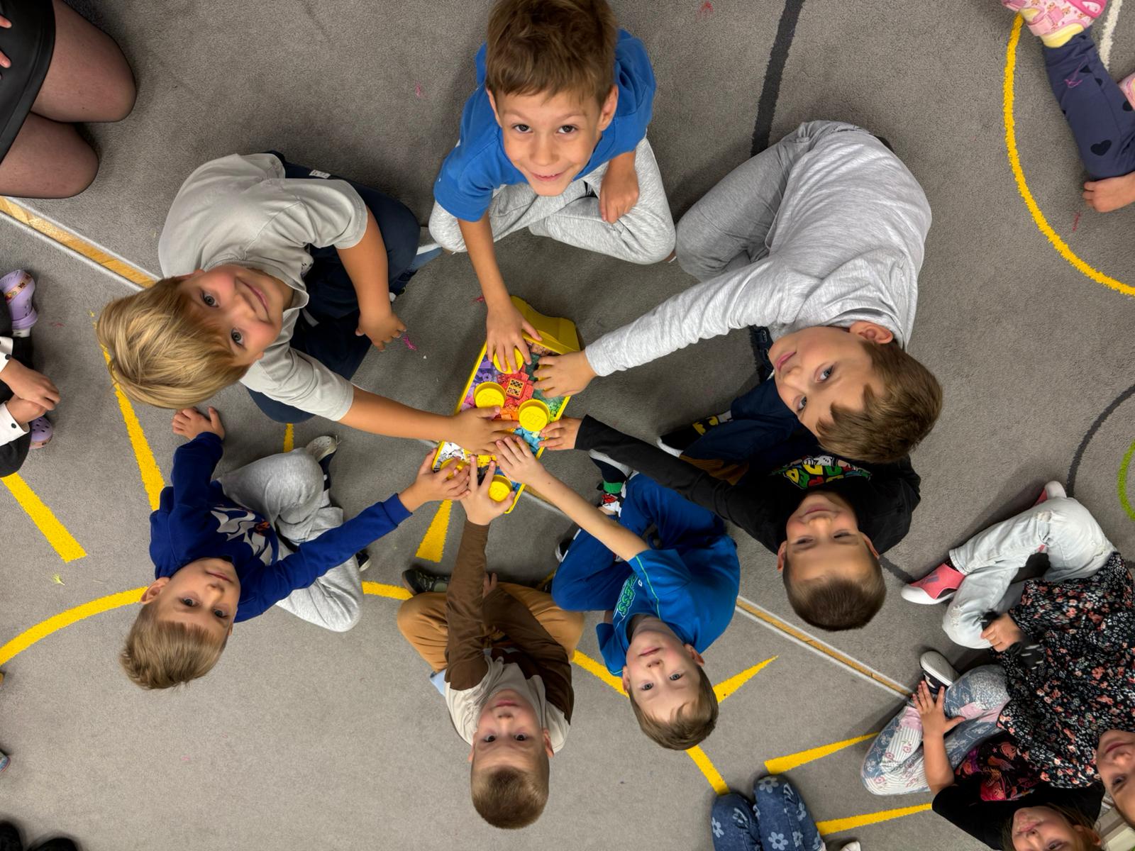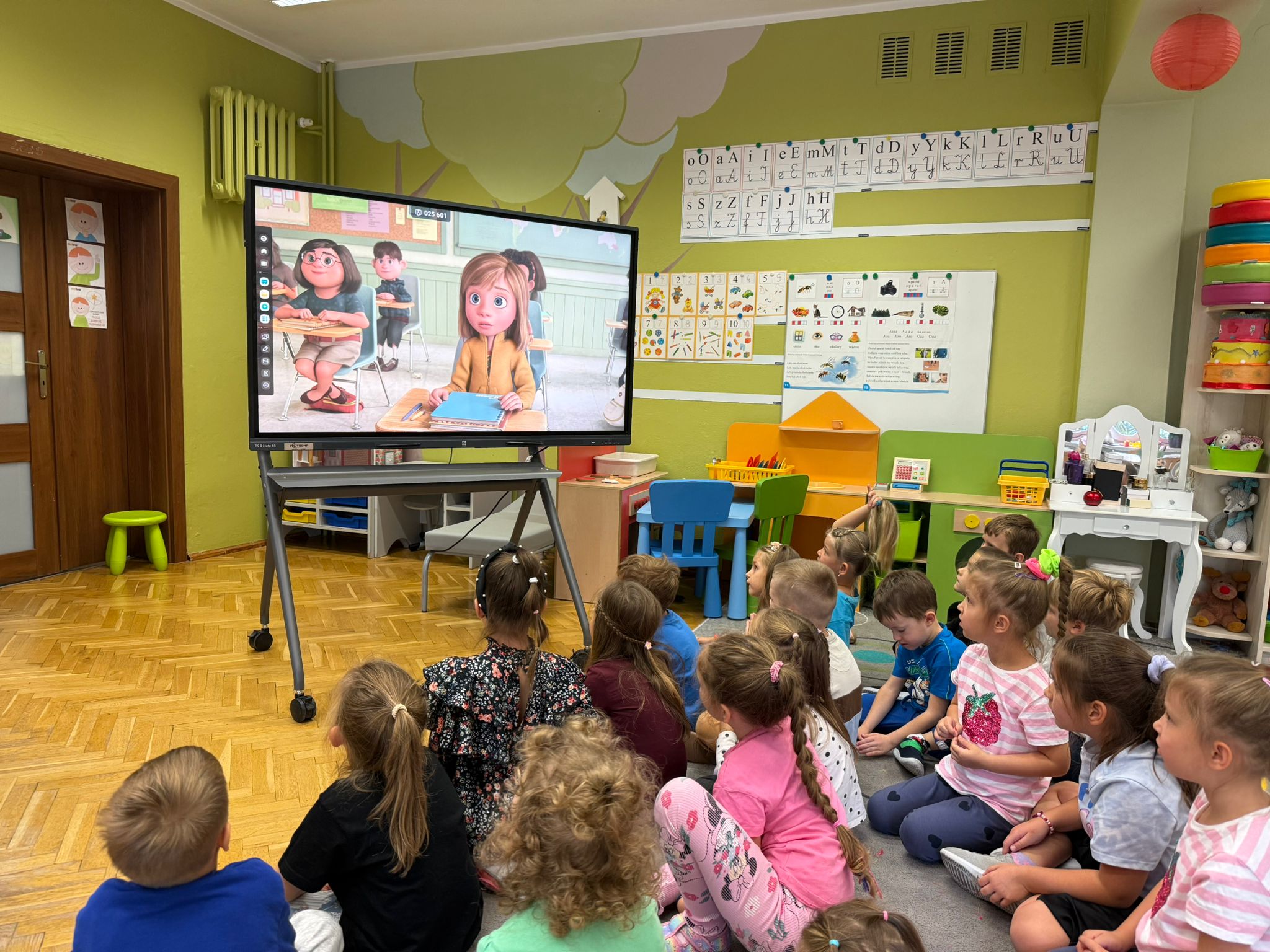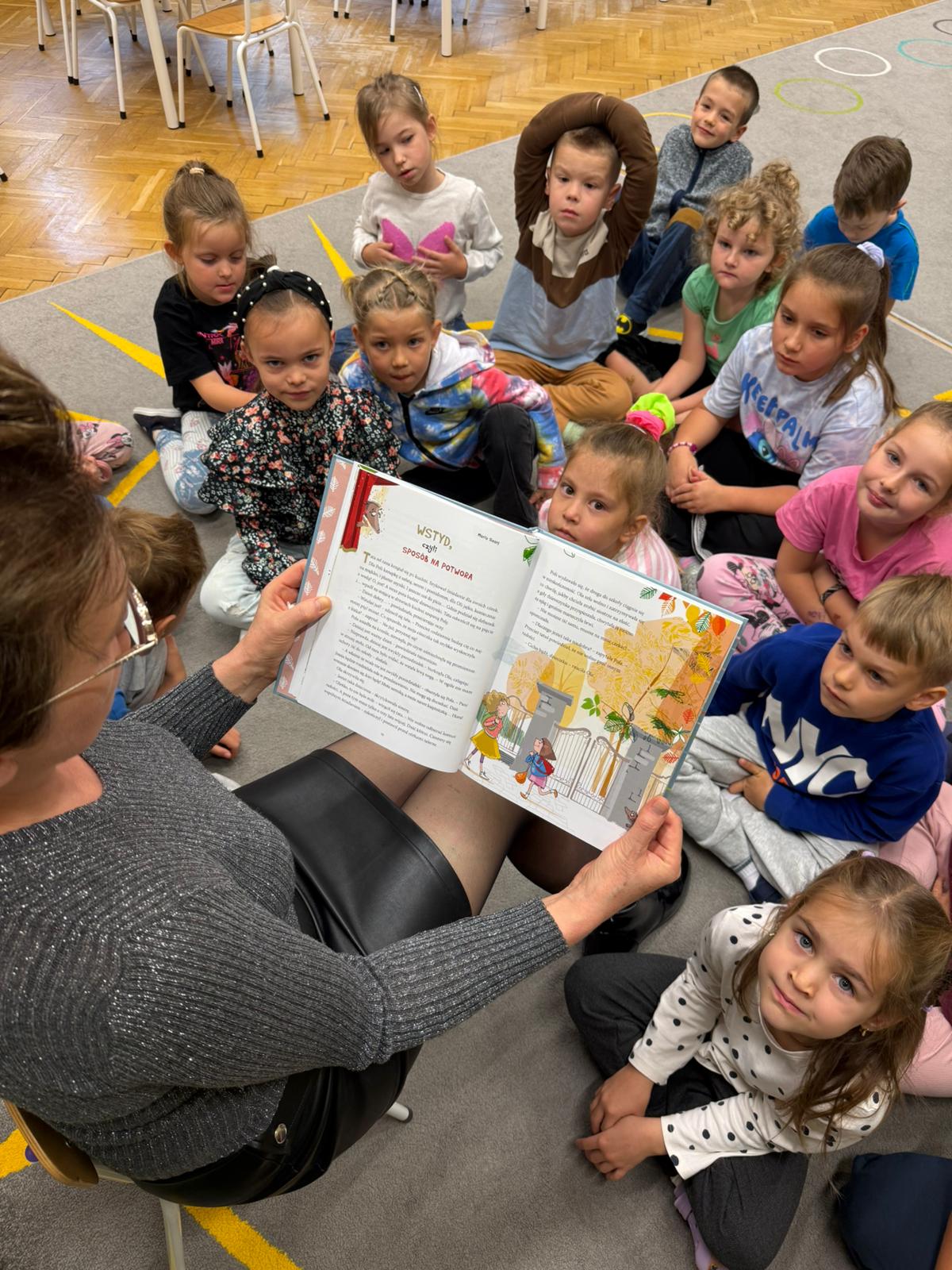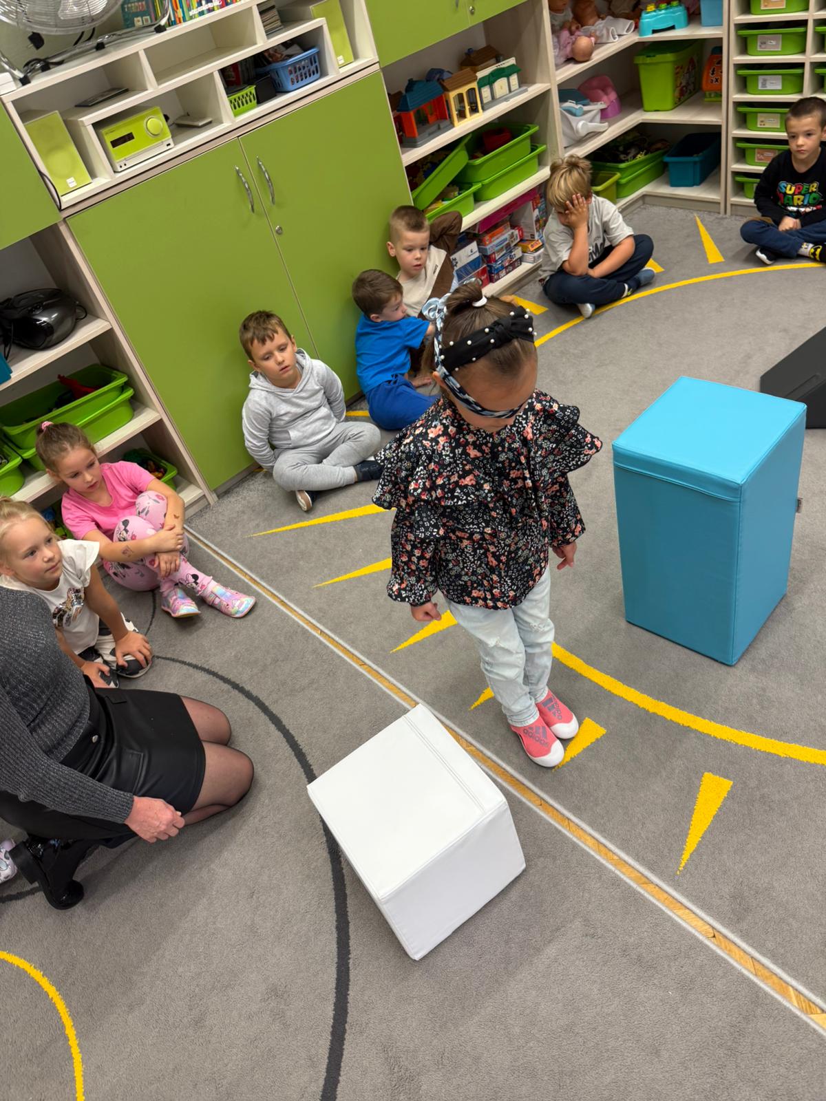 Relacja była słowem kluczem naszych zajęć. Celem spotkania było rozwijanie empatii wśród dzieci, umiejętności rozumienia i nazywania emocji oraz budowanie pozytywnych więzi w grupie. Na początku dzieci wysłuchały opowiadania pt. „Przygoda Małego Misia Empatka”, które pokazało, jak ważne jest dostrzeganie uczuć innych i reagowanie na nie wrażliwie. Następnie obejrzały film animowany – edukacyjny, który w przystępny sposób przybliżył temat emocji i ich roli w codziennym życiu. Kolejnym etapem były zabawy integracyjne. W ćwiczeniu „Kładka” dzieci uczyły się współpracy i zaufania, natomiast zabawa „Serce” pozwoliła im okazywać sobie nawzajem ciepło i troskę. Dużo radości przyniosła także zabawa w parach, podczas której dzieci podrzucały w rytm muzyki kolorowe piórka na zwiewnych chustach, ucząc się współdziałania i uważności na partnera. Nie zabrakło też ćwiczeń na rozpoznawanie i naśladowanie różnych emocji, takich jak radość, smutek, złość, zdziwienie, duma, zaskoczenie. Na zakończenie przedszkolaki wzięły udział w zabawie z zawiązanymi oczami, w której musiały zaufać kolegom i pozwolić się bezpiecznie poprowadzić pomiędzy przeszkodami. Dzieci aktywnie uczestniczyły w każdym etapie, z zaangażowaniem rozpoznawały emocje, uczyły się je nazywać i wyrażać, a także wspierały się nawzajem. Dzięki temu cała grupa mogła jeszcze lepiej zrozumieć, jak ważna jest empatia i jak buduje się dobre relacje.