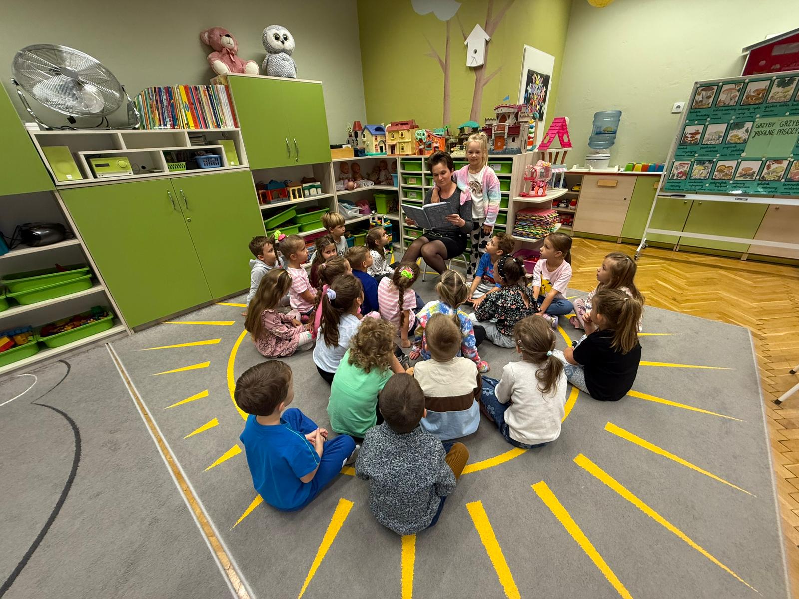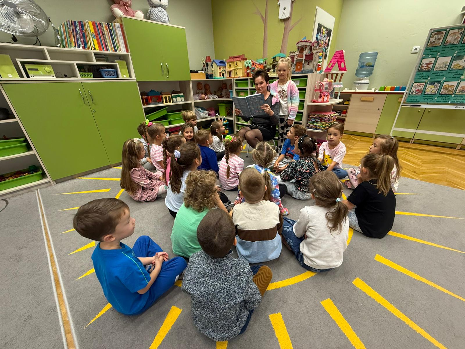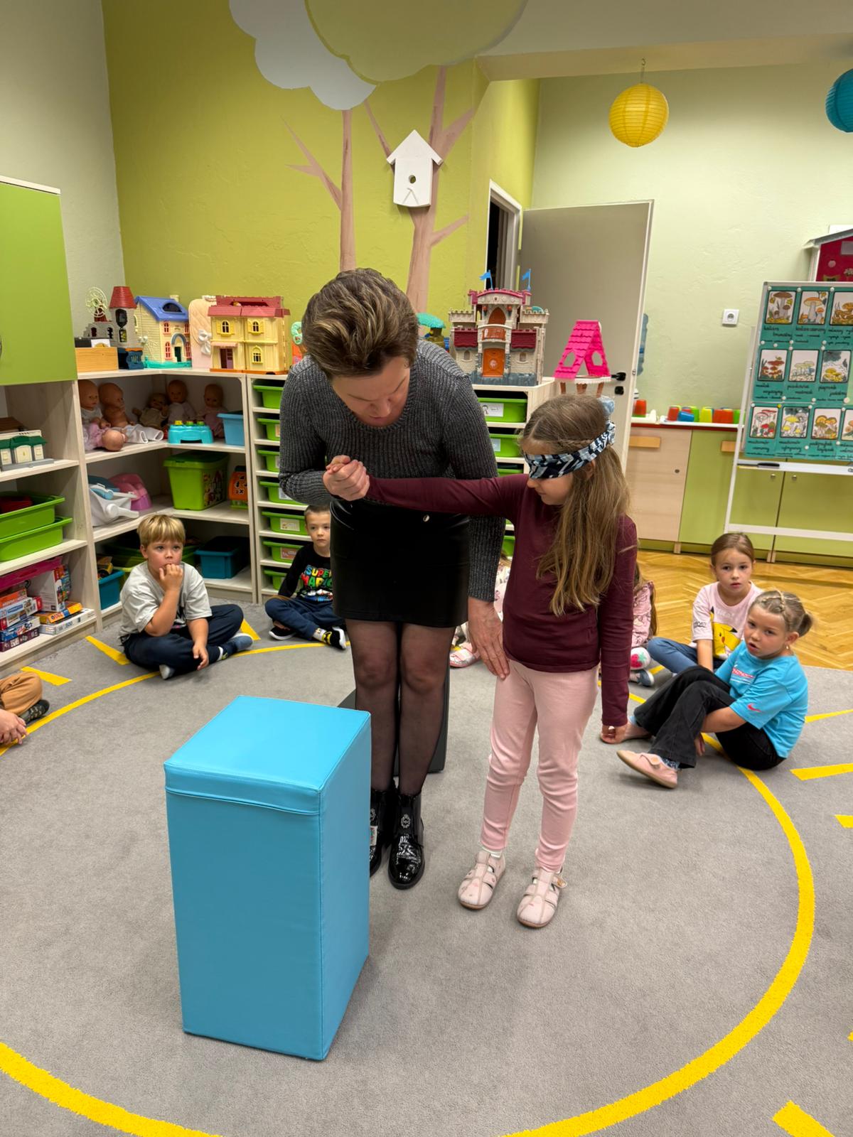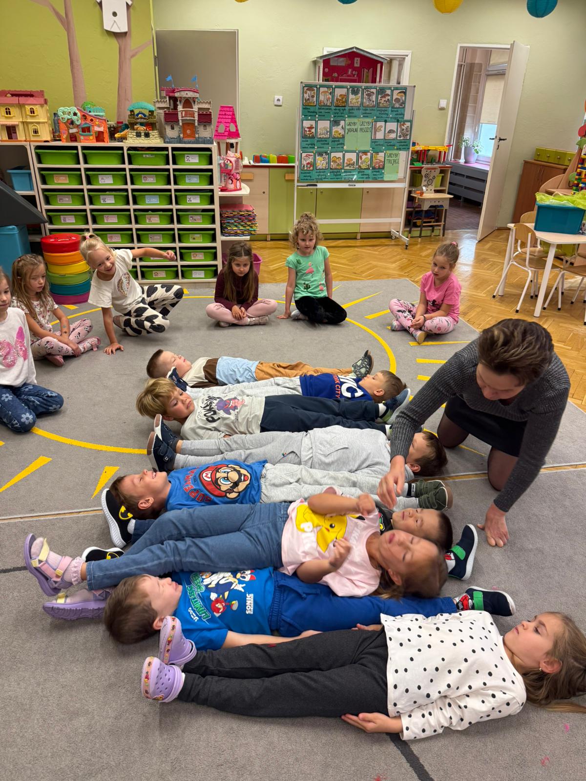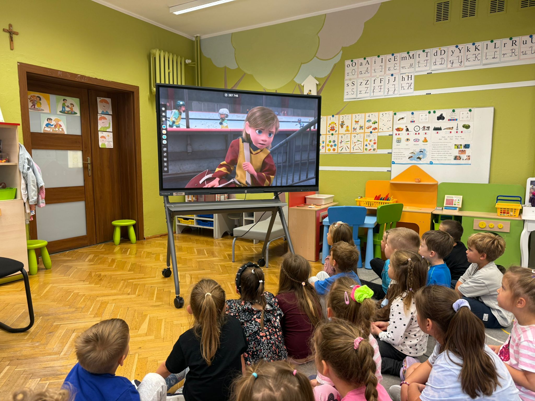 Relacja była słowem kluczem naszych zajęć. Celem spotkania było rozwijanie empatii wśród dzieci, umiejętności rozumienia i nazywania emocji oraz budowanie pozytywnych więzi w grupie. Na początku dzieci wysłuchały opowiadania pt. „Przygoda Małego Misia Empatka”, które pokazało, jak ważne jest dostrzeganie uczuć innych i reagowanie na nie wrażliwie. Następnie obejrzały film animowany – edukacyjny, który w przystępny sposób przybliżył temat emocji i ich roli w codziennym życiu. Kolejnym etapem były zabawy integracyjne. W ćwiczeniu „Kładka” dzieci uczyły się współpracy i zaufania, natomiast zabawa „Serce” pozwoliła im okazywać sobie nawzajem ciepło i troskę. Dużo radości przyniosła także zabawa w parach, podczas której dzieci podrzucały w rytm muzyki kolorowe piórka na zwiewnych chustach, ucząc się współdziałania i uważności na partnera. Nie zabrakło też ćwiczeń na rozpoznawanie i naśladowanie różnych emocji, takich jak radość, smutek, złość, zdziwienie, duma, zaskoczenie. Na zakończenie przedszkolaki wzięły udział w zabawie z zawiązanymi oczami, w której musiały zaufać kolegom i pozwolić się bezpiecznie poprowadzić pomiędzy przeszkodami. Dzieci aktywnie uczestniczyły w każdym etapie, z zaangażowaniem rozpoznawały emocje, uczyły się je nazywać i wyrażać, a także wspierały się nawzajem. Dzięki temu cała grupa mogła jeszcze lepiej zrozumieć, jak ważna jest empatia i jak buduje się dobre relacje.
