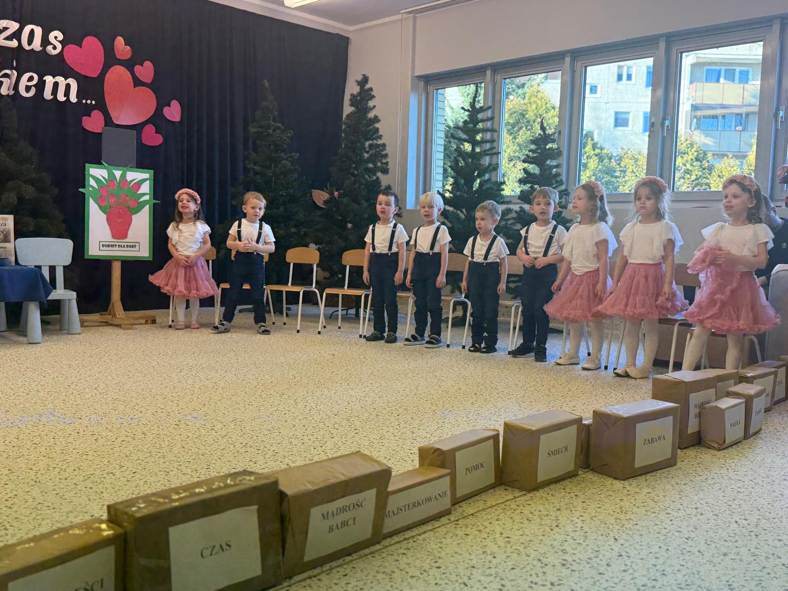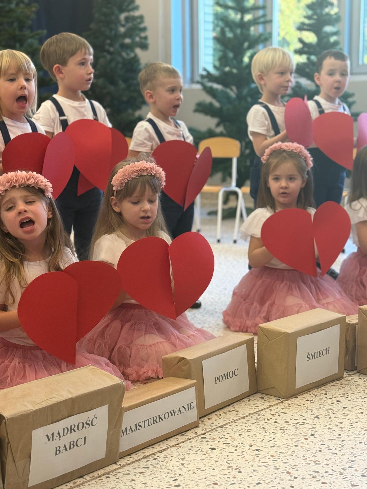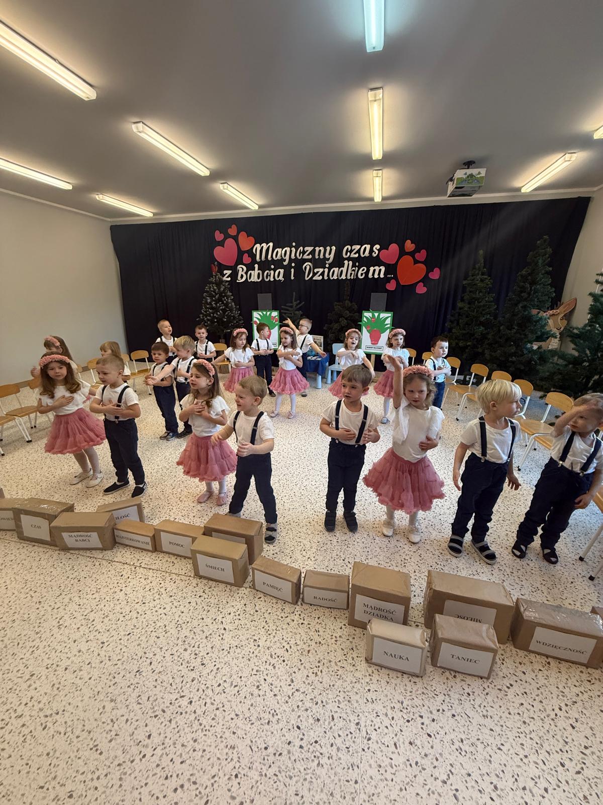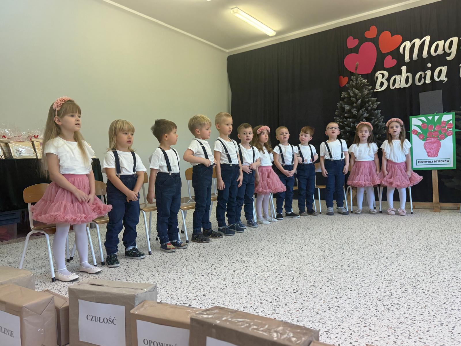 Z okazji Dnia Babci i Dziadka w naszym przedszkolu odbyło się wyjątkowe i pełne wzruszeń przedstawienie przygotowane przez dzieci z grupy II. Mali artyści z wielkim zaangażowaniem zaprezentowali wiersze, piosenki oraz krótkie scenki teatralne, wyrażając w ten sposób swoją miłość, wdzięczność i szacunek dla ukochanych Babć i Dziadków. Dziadkowie odgrywają niezwykle ważną rolę w wychowaniu wnuków — są źródłem bezwarunkowej miłości, cierpliwości, mądrości życiowej oraz wsparcia. Przekazują wartości, uczą tradycji, poświęcają czas i budują poczucie bezpieczeństwa, tak ważne w rozwoju dziecka. To właśnie dzięki nim dzieci uczą się empatii, szacunku i rodzinnych więzi. Dlatego też przedszkolaki z ogromną radością i dumą przygotowały występy artystyczne, aby w szczególny sposób podziękować swoim Babciom i Dziadkom za codzienną troskę, obecność i miłość. Uroczystość przebiegała w serdecznej, rodzinnej atmosferze, pełnej uśmiechów i wzruszeń. Występy dzieci zostały nagrodzone gromkimi brawami, a zaproszeni goście z dumą podziwiali talenty swoich wnucząt. Na zakończenie dzieci wręczyły własnoręcznie przygotowane upominki oraz złożyły serdeczne życzenia. Dziękujemy wszystkim Babciom i Dziadkom za tak liczne przybycie i wspólnie spędzony, niezapomniany czas. Był to dzień pełen ciepła, radości i pięknych emocji!