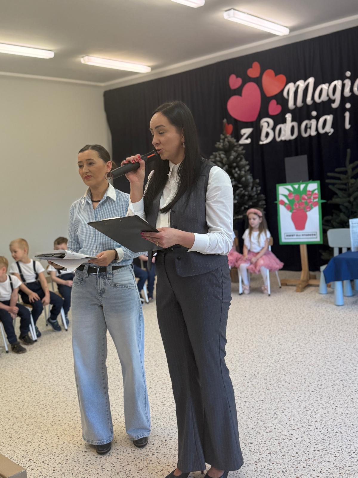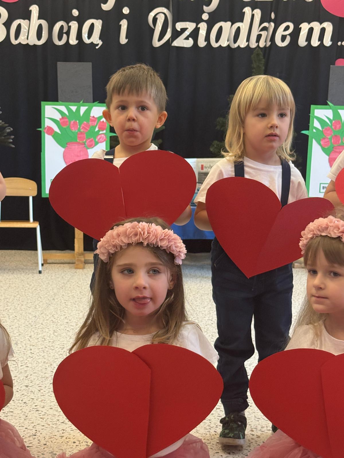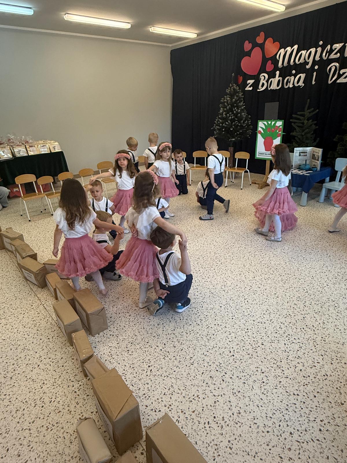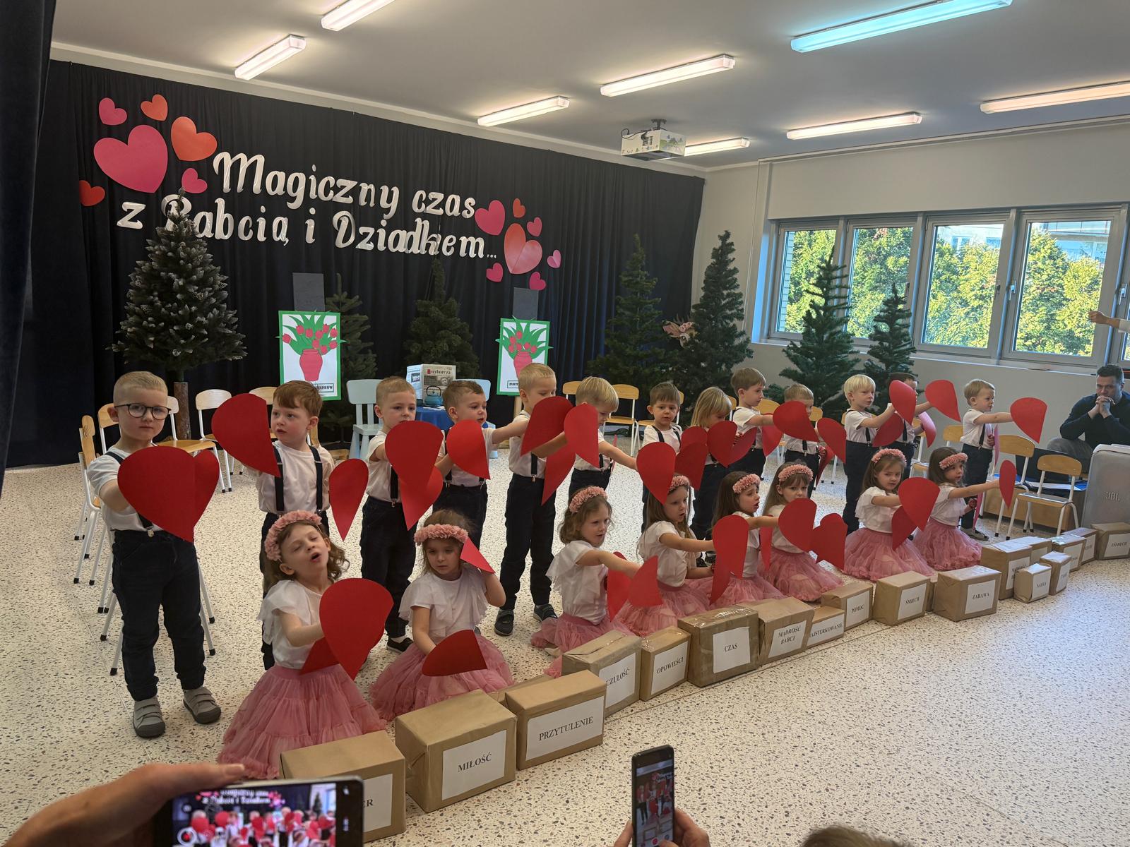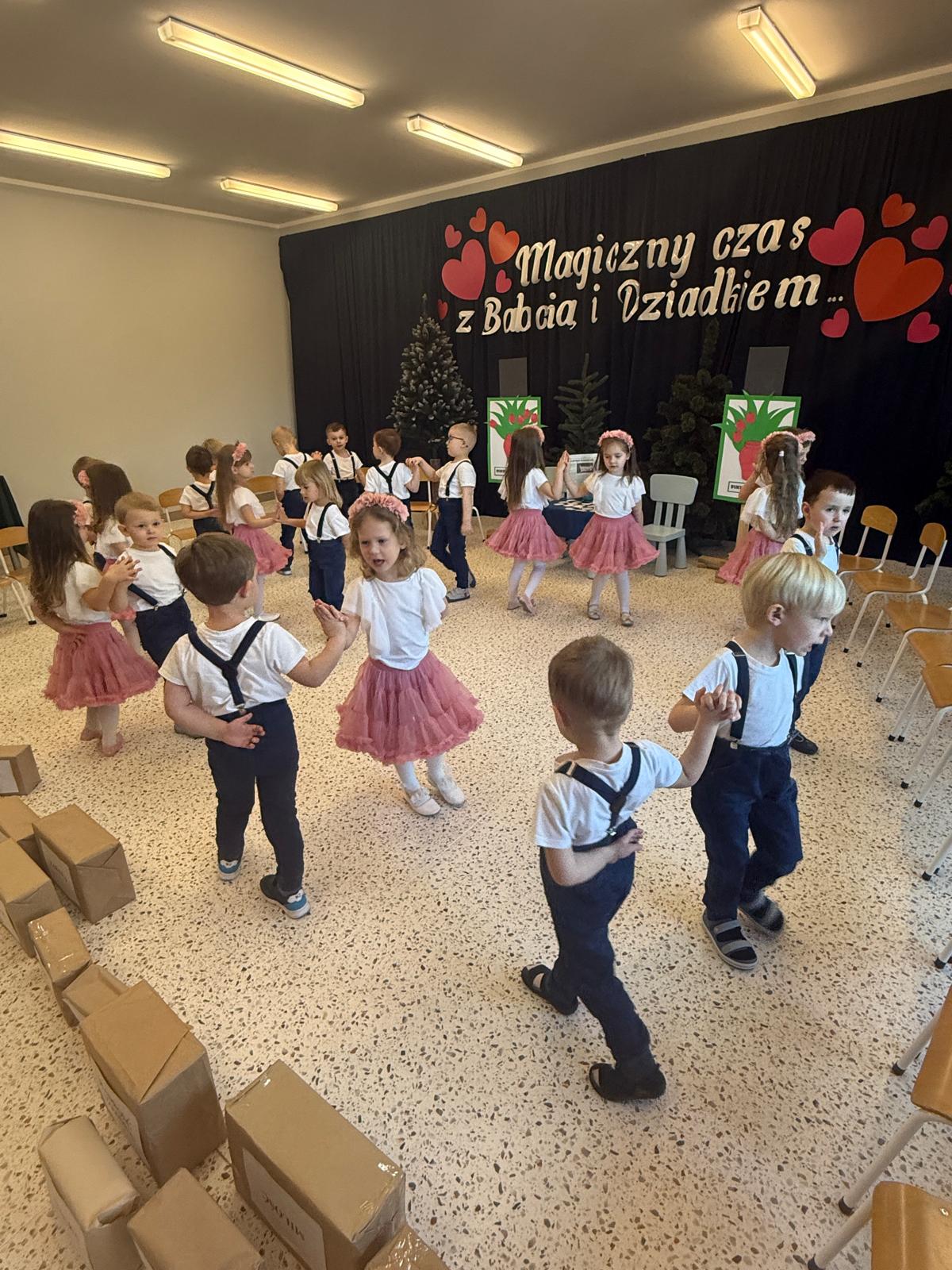 Z okazji Dnia Babci i Dziadka w naszym przedszkolu odbyło się wyjątkowe i pełne wzruszeń przedstawienie przygotowane przez dzieci z grupy II. Mali artyści z wielkim zaangażowaniem zaprezentowali wiersze, piosenki oraz krótkie scenki teatralne, wyrażając w ten sposób swoją miłość, wdzięczność i szacunek dla ukochanych Babć i Dziadków. Dziadkowie odgrywają niezwykle ważną rolę w wychowaniu wnuków — są źródłem bezwarunkowej miłości, cierpliwości, mądrości życiowej oraz wsparcia. Przekazują wartości, uczą tradycji, poświęcają czas i budują poczucie bezpieczeństwa, tak ważne w rozwoju dziecka. To właśnie dzięki nim dzieci uczą się empatii, szacunku i rodzinnych więzi. Dlatego też przedszkolaki z ogromną radością i dumą przygotowały występy artystyczne, aby w szczególny sposób podziękować swoim Babciom i Dziadkom za codzienną troskę, obecność i miłość. Uroczystość przebiegała w serdecznej, rodzinnej atmosferze, pełnej uśmiechów i wzruszeń. Występy dzieci zostały nagrodzone gromkimi brawami, a zaproszeni goście z dumą podziwiali talenty swoich wnucząt. Na zakończenie dzieci wręczyły własnoręcznie przygotowane upominki oraz złożyły serdeczne życzenia. Dziękujemy wszystkim Babciom i Dziadkom za tak liczne przybycie i wspólnie spędzony, niezapomniany czas. Był to dzień pełen ciepła, radości i pięknych emocji!