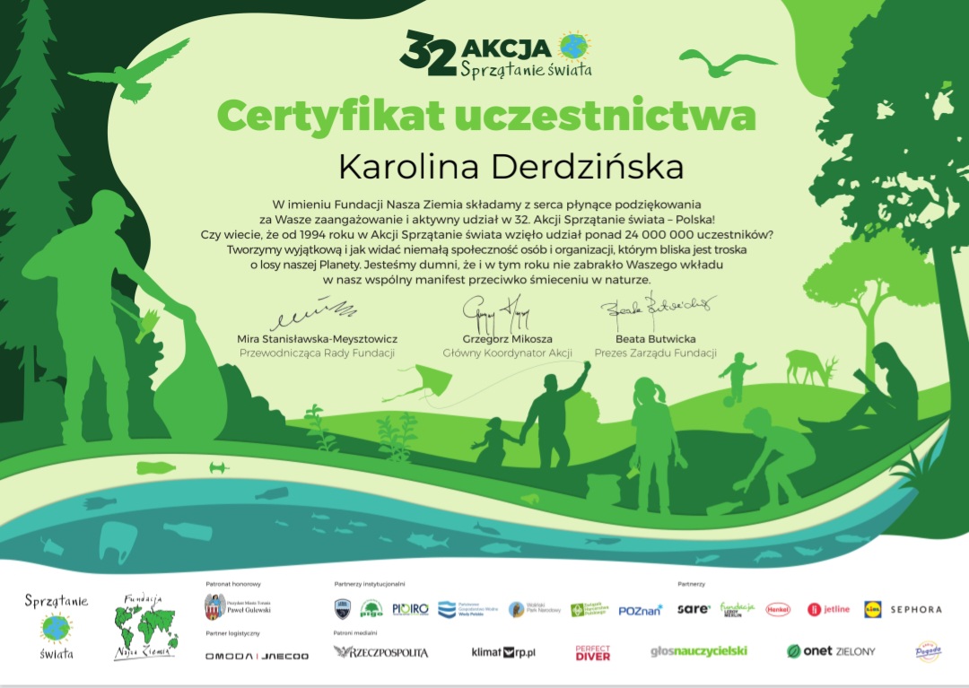Certyfikaty 32. Akcji Sprzątanie świata - Polska