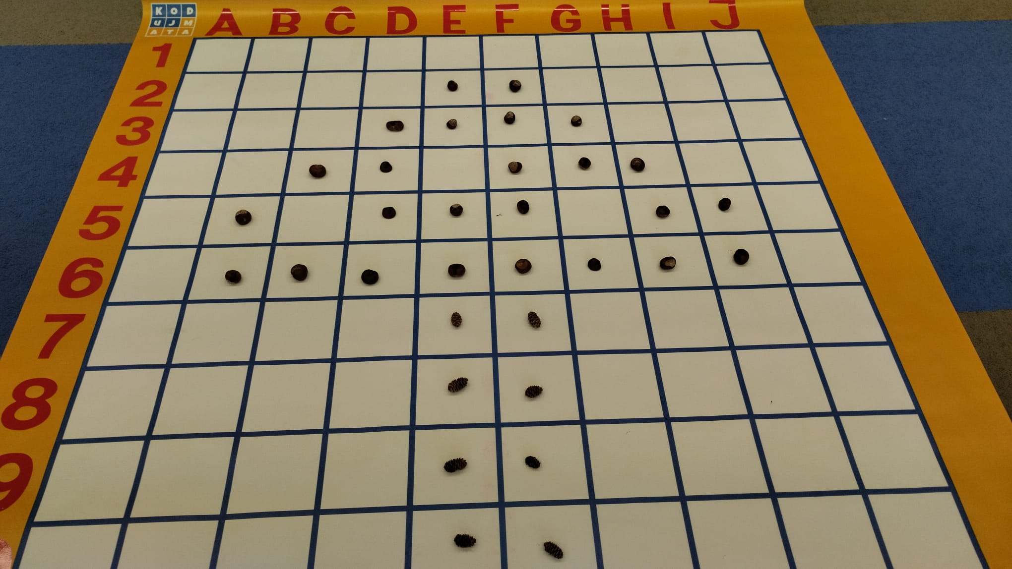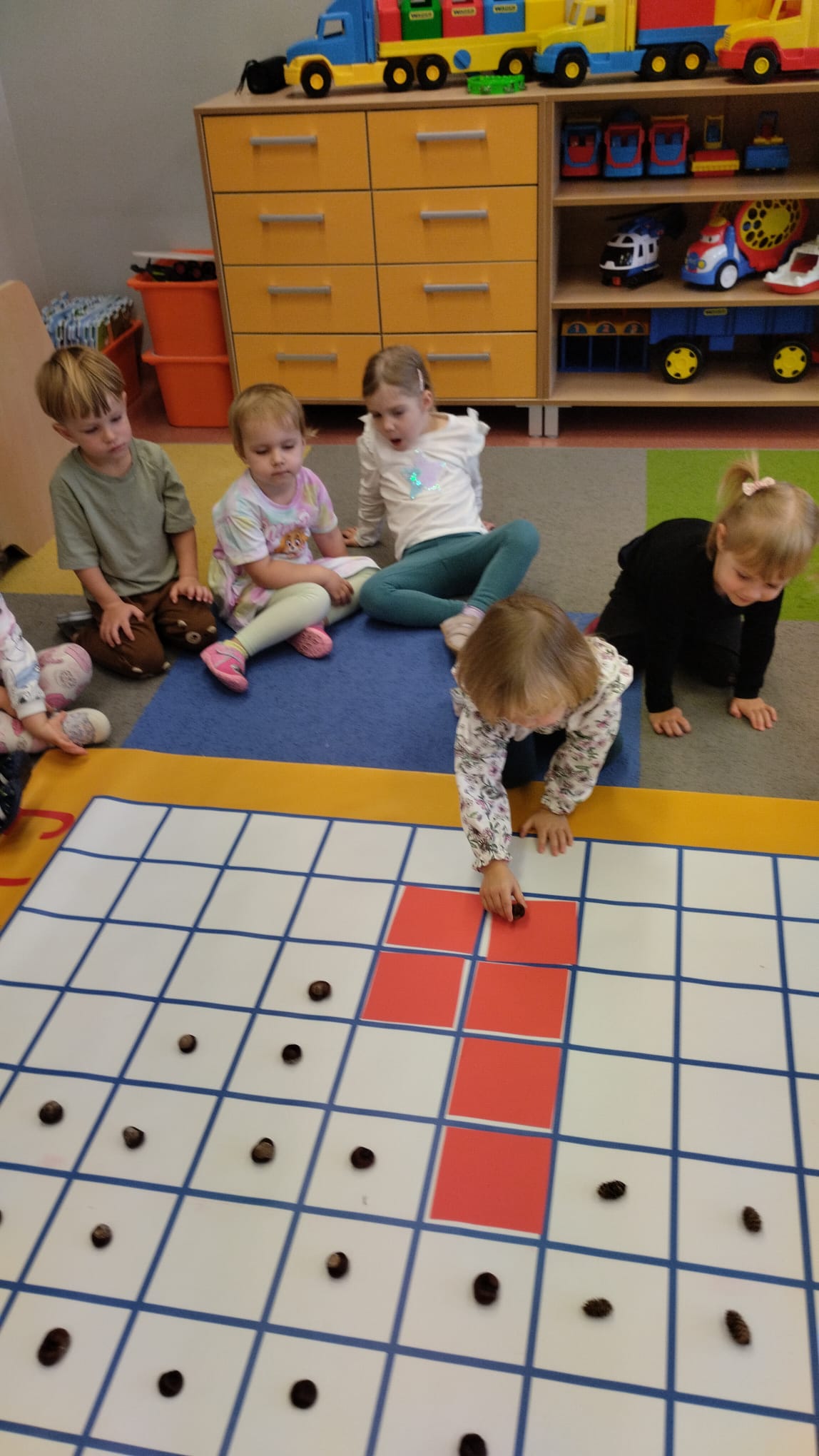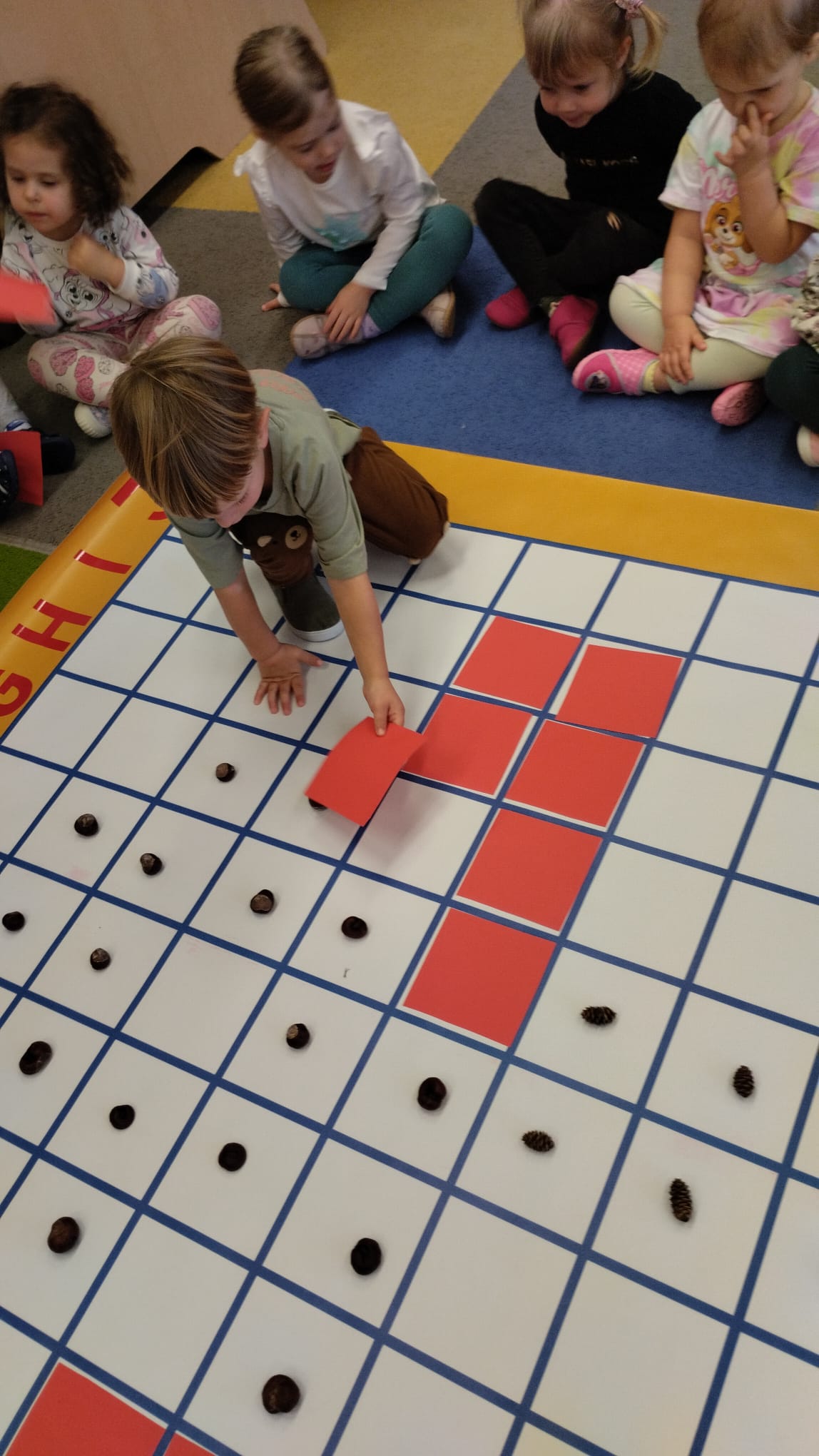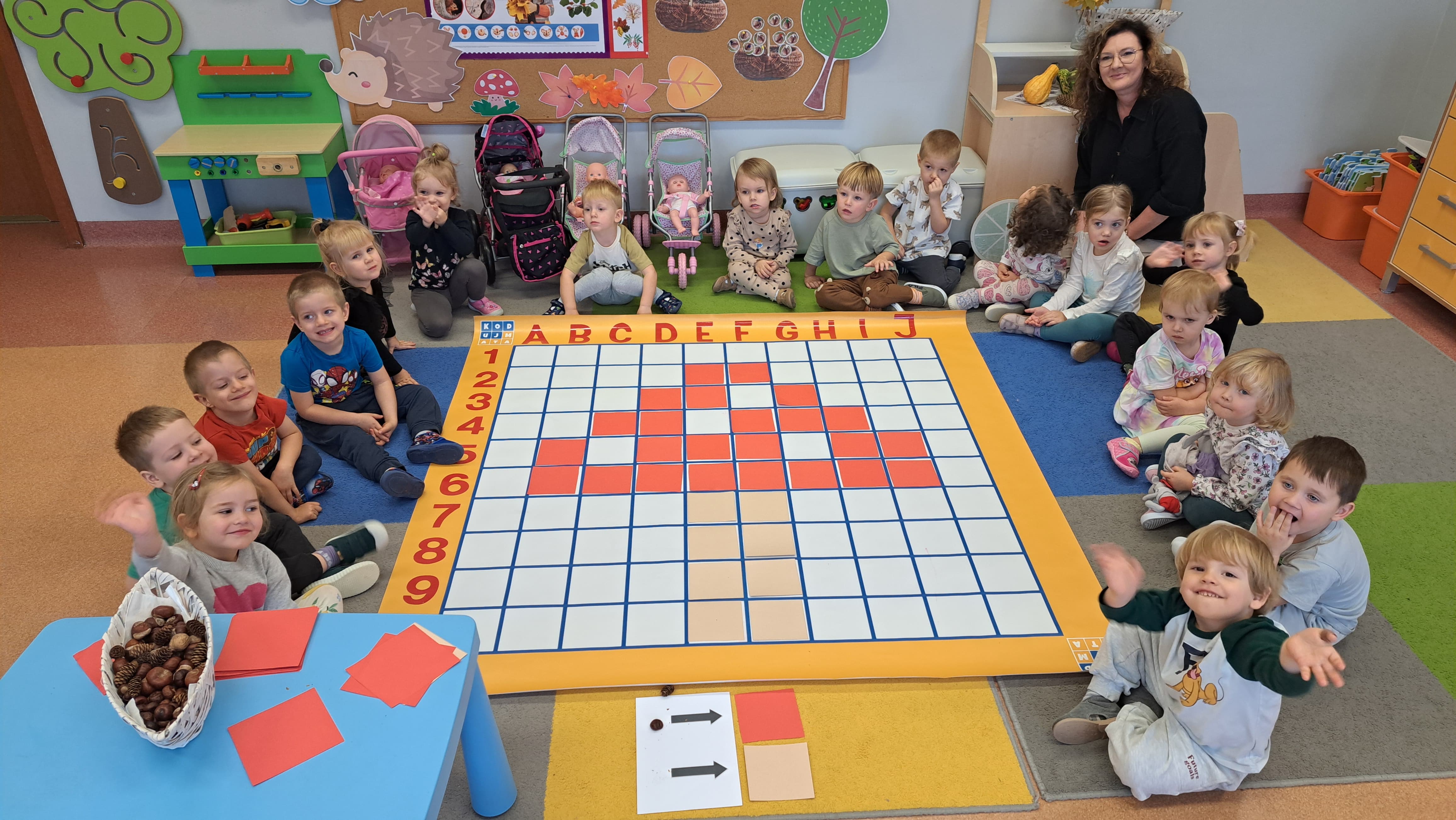 Maluszki z grupy IX z dużą przyjemnością wzięły po raz pierwszy udział w kodowaniu na dywanie. Wykorzystując specjalną matę ruszyły na kodowane „grzybobranie”… Ćwiczyły spostrzegawczość zastępując materiał przyrodniczy kartonikiem w odpowiednim kolorze.