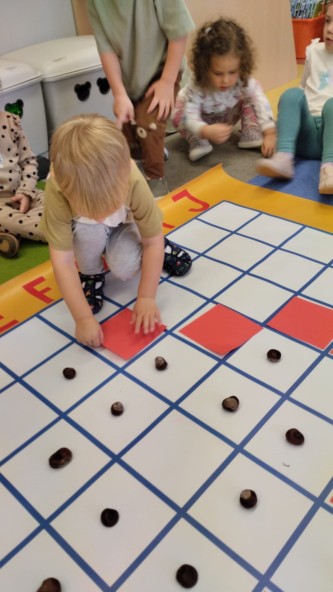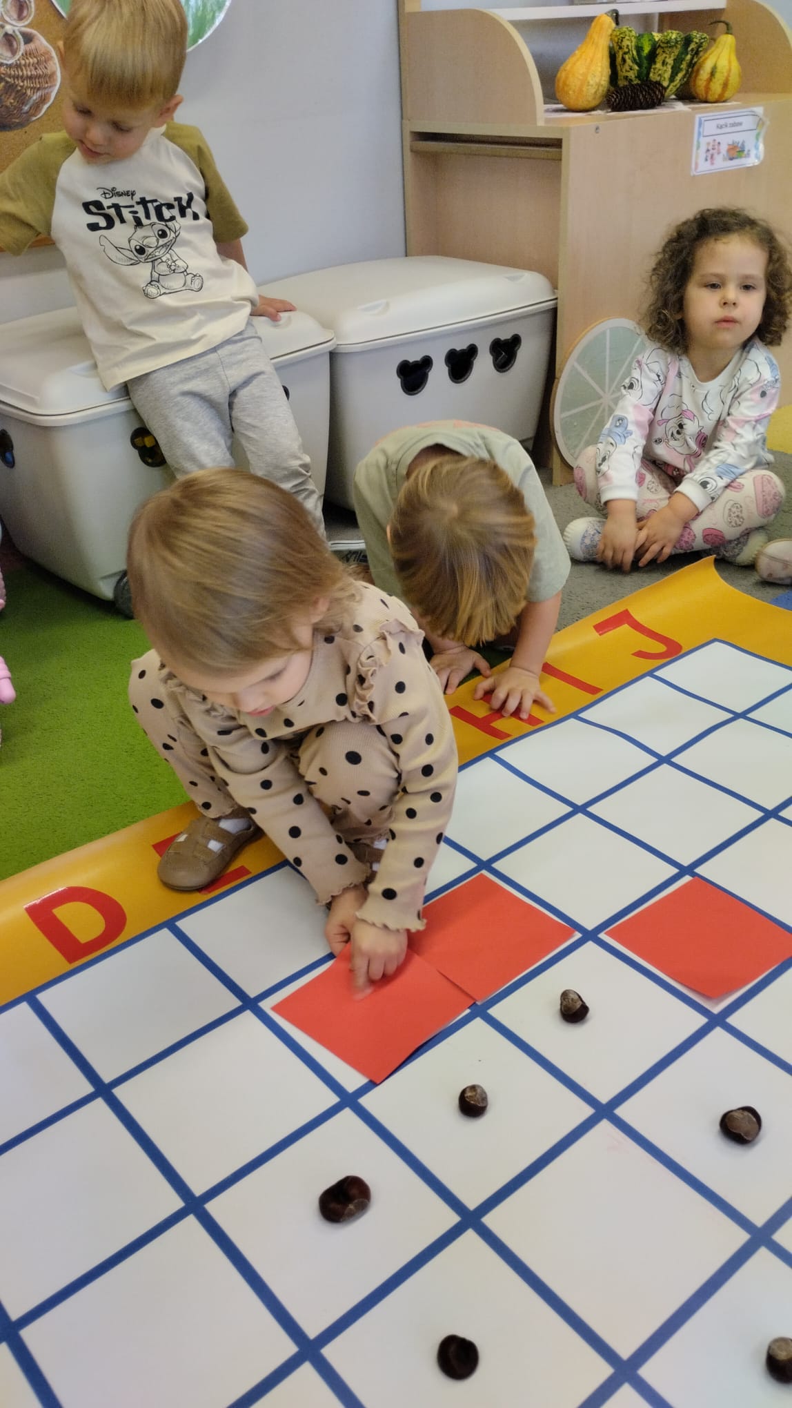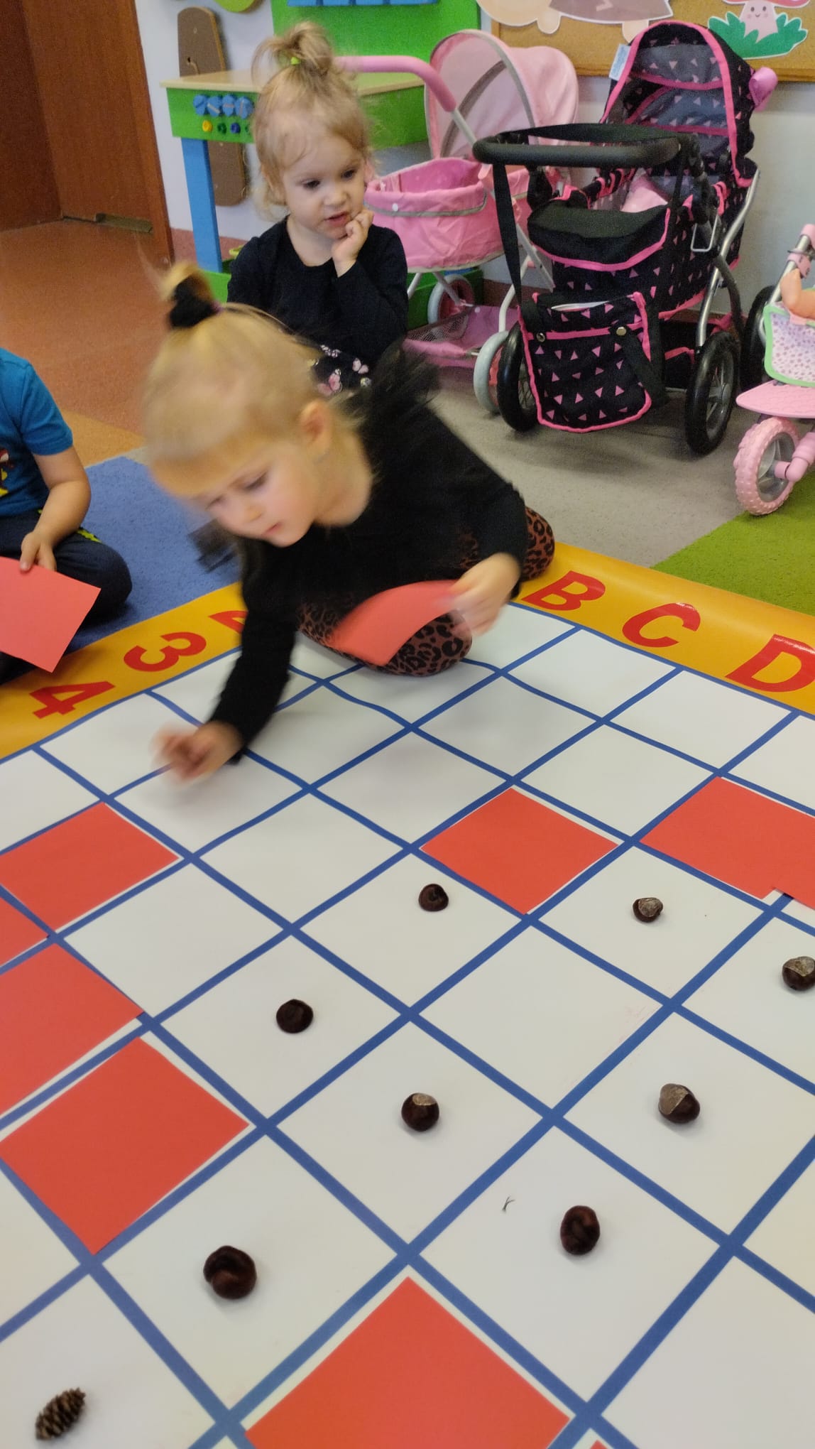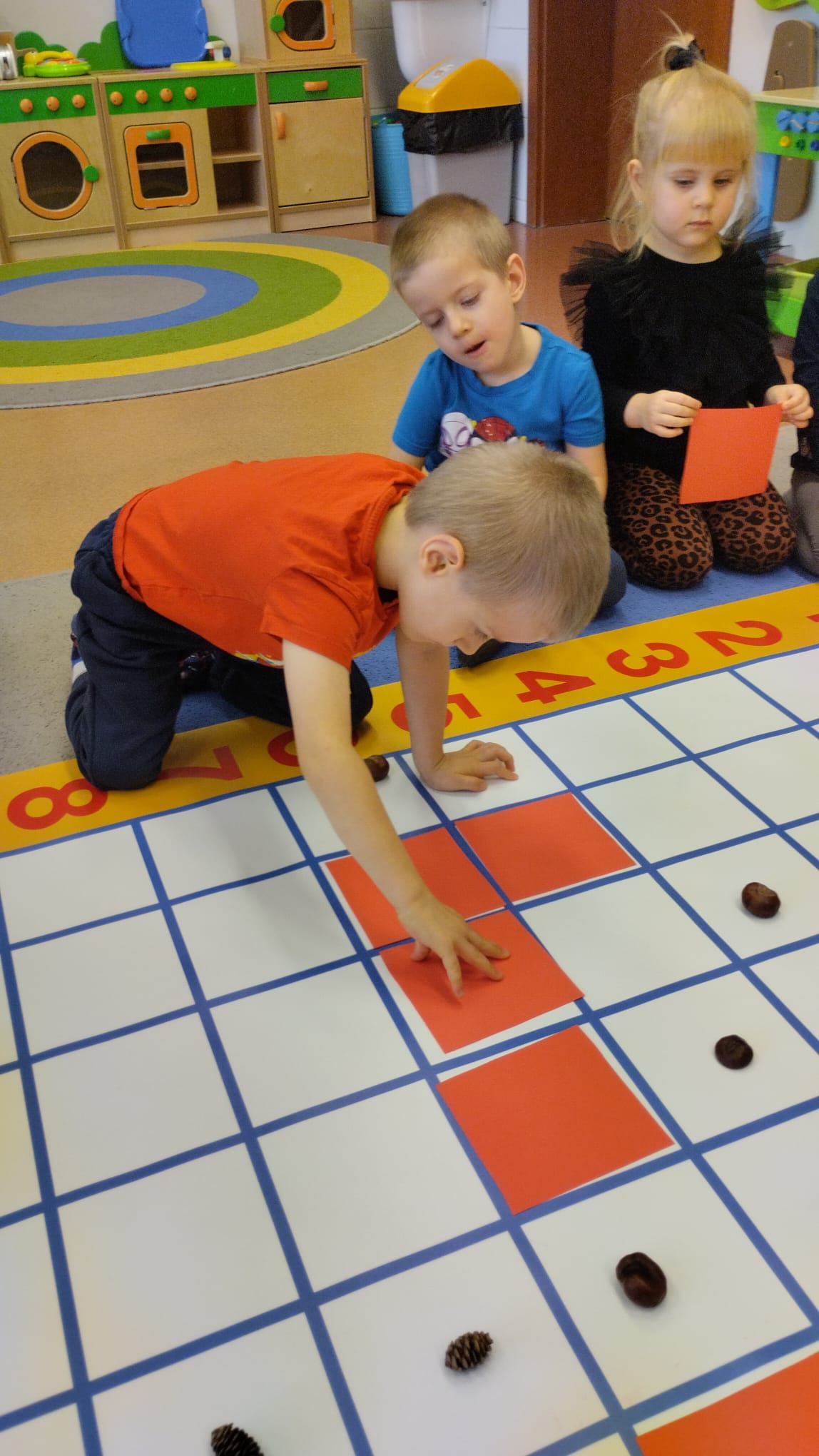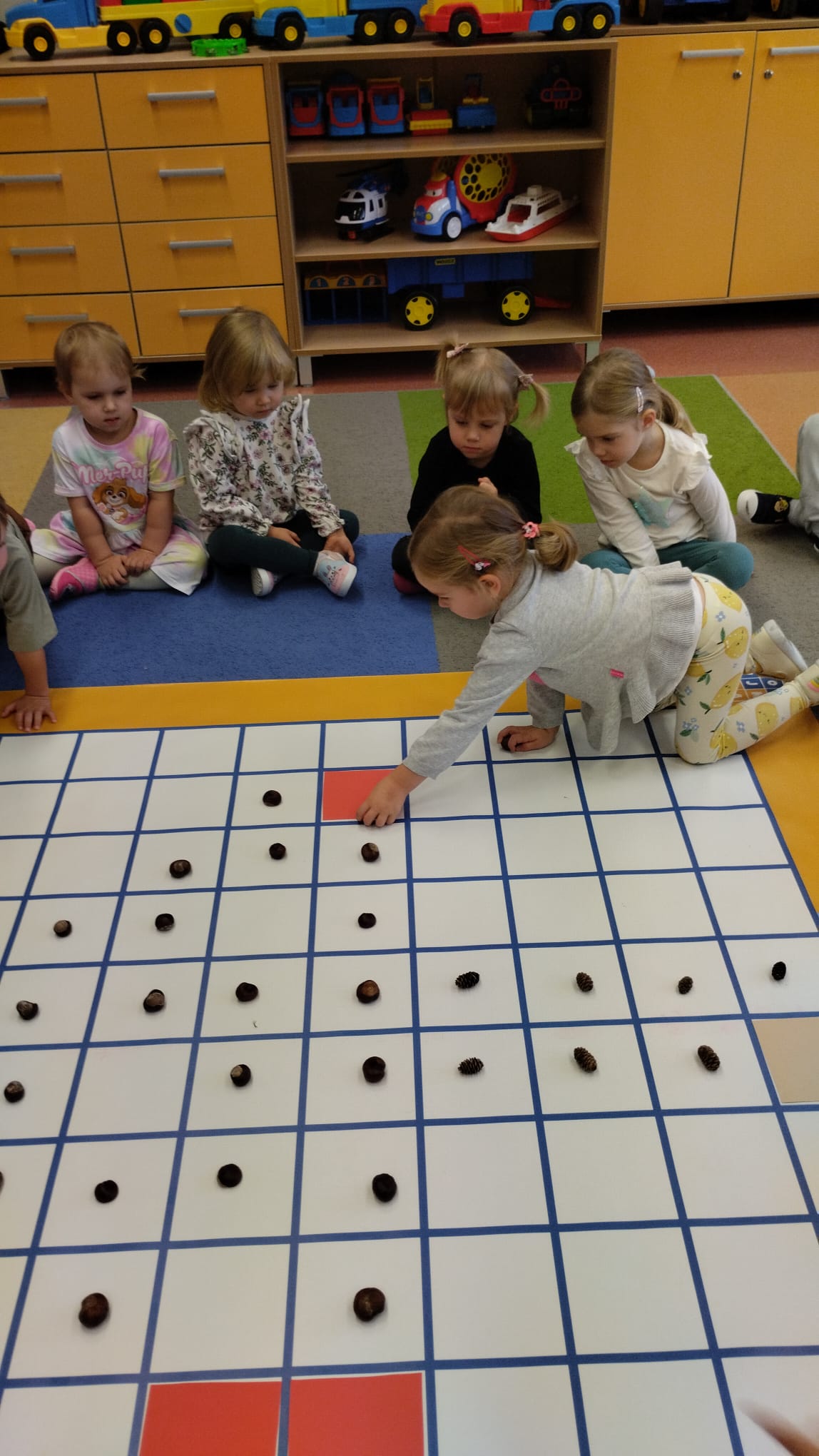 Maluszki z grupy IX z dużą przyjemnością wzięły po raz pierwszy udział w kodowaniu na dywanie. Wykorzystując specjalną matę ruszyły na kodowane „grzybobranie”… Ćwiczyły spostrzegawczość zastępując materiał przyrodniczy kartonikiem w odpowiednim kolorze.