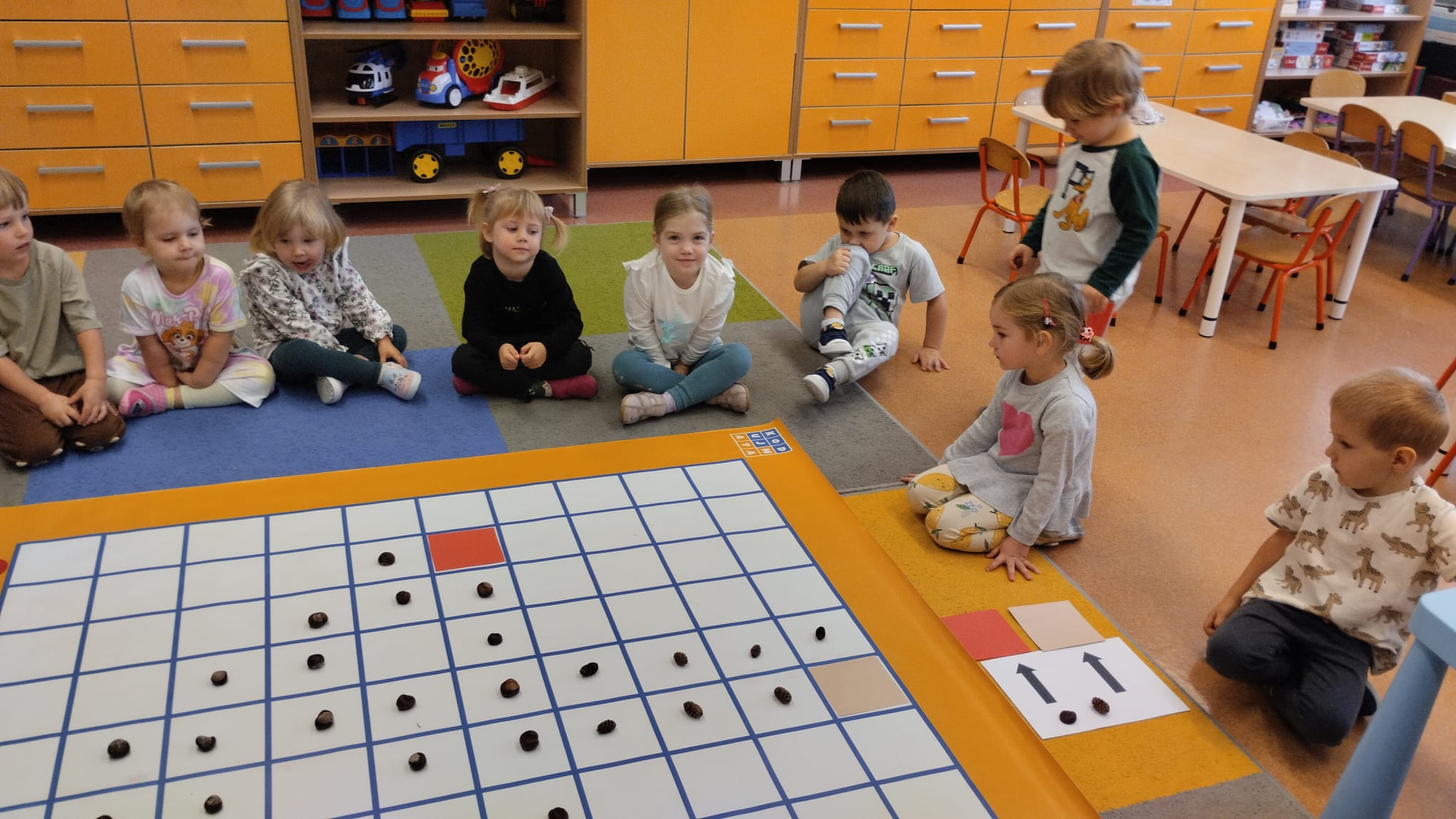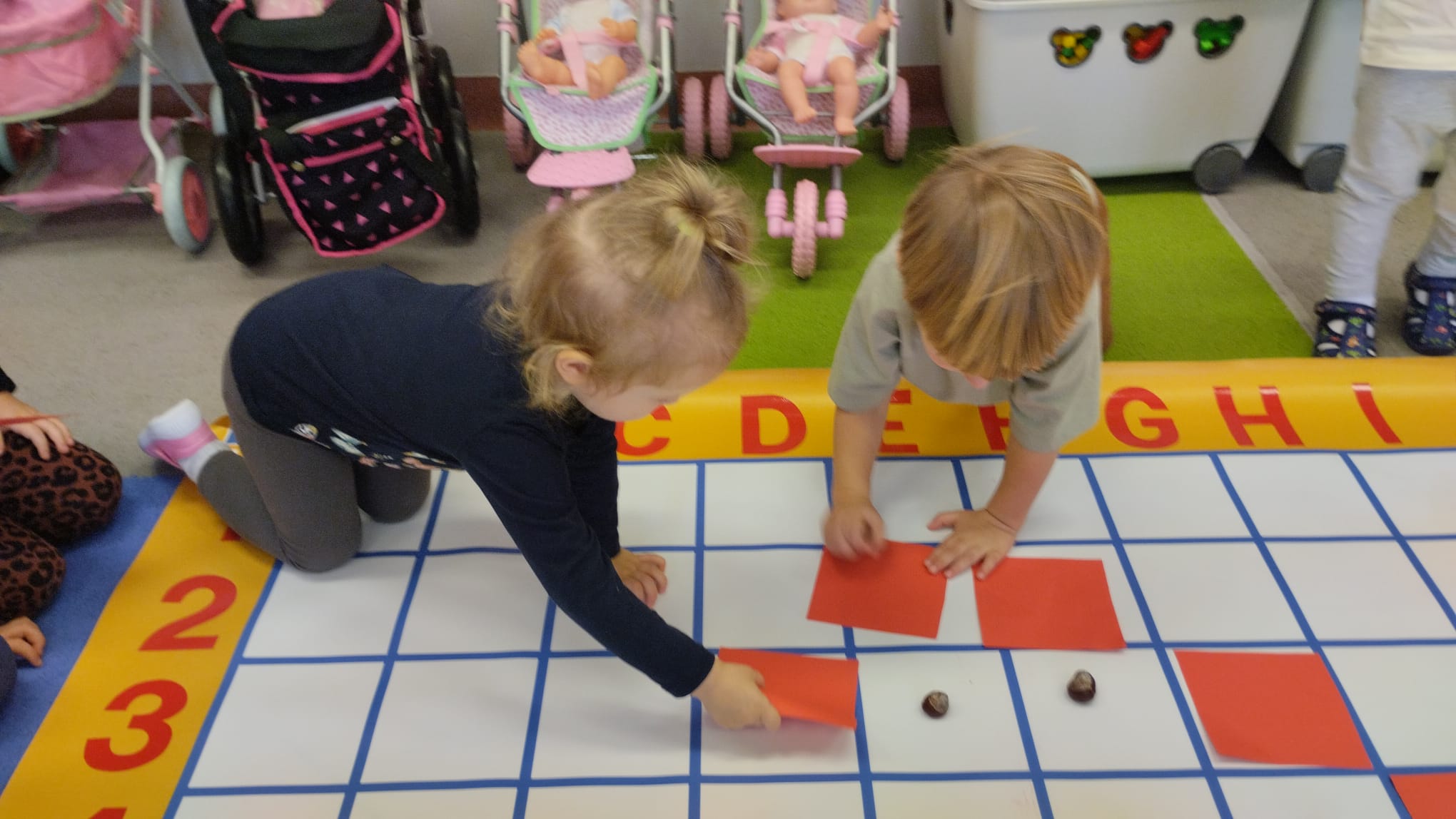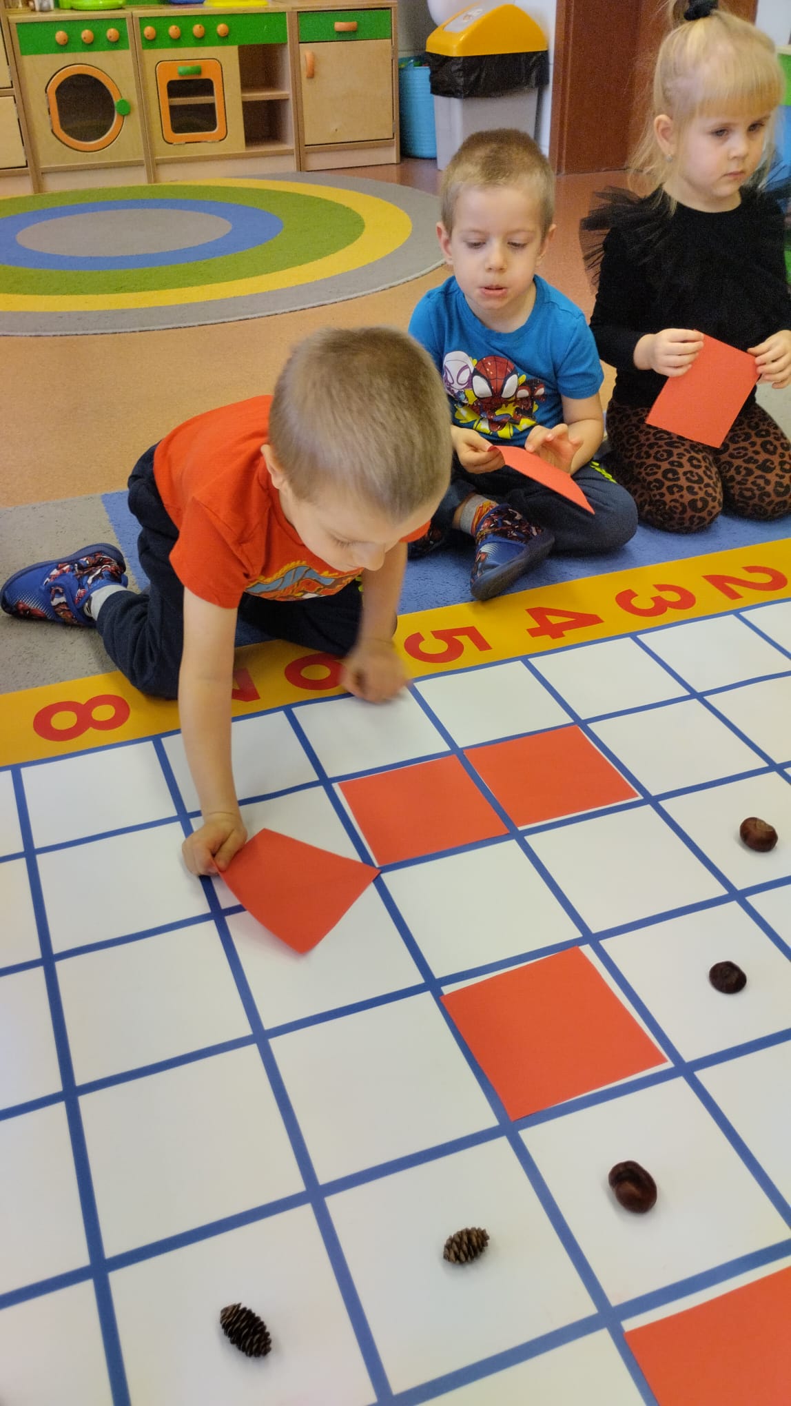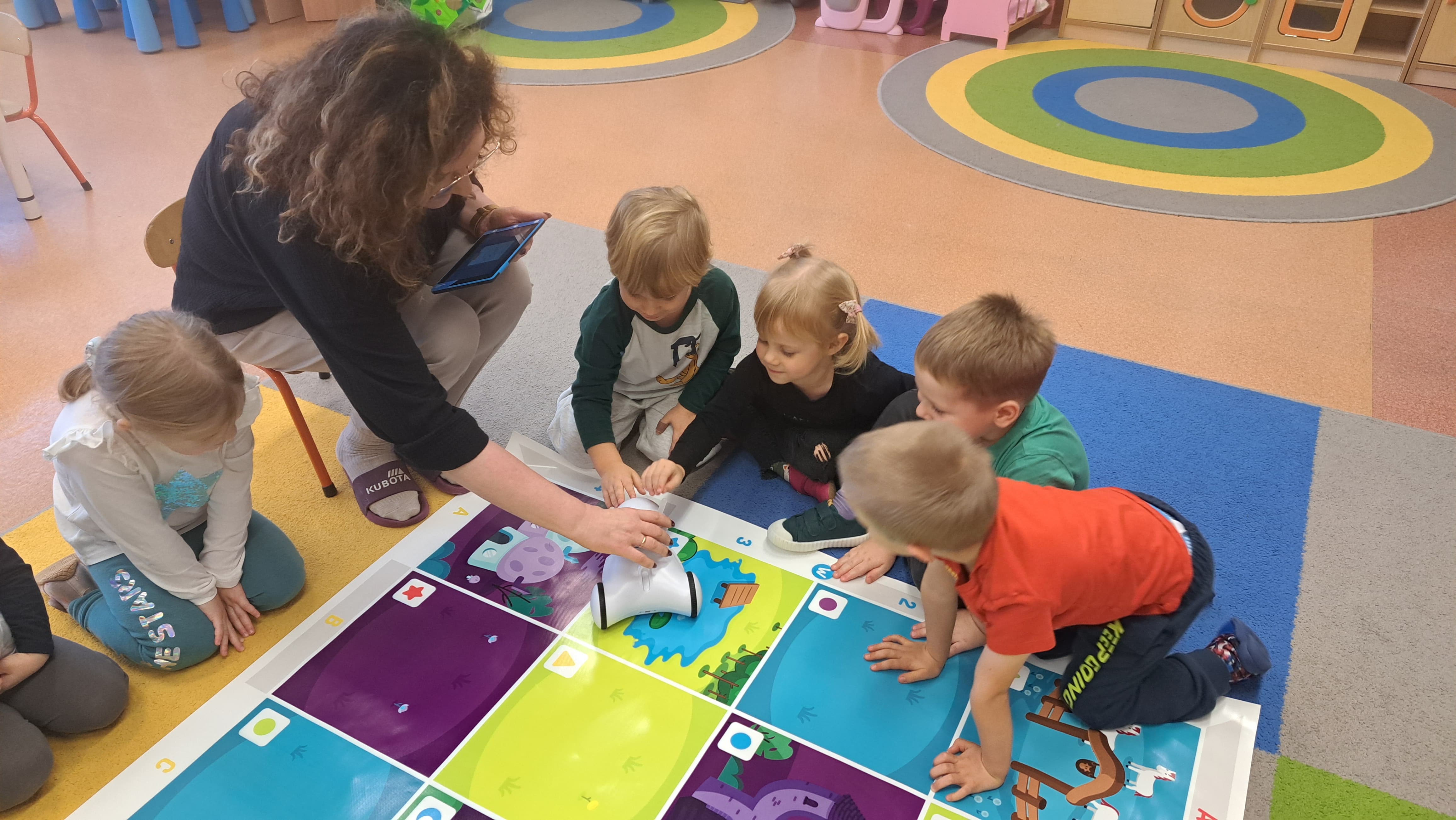 Maluszki z grupy IX z dużą przyjemnością wzięły po raz pierwszy udział w kodowaniu na dywanie. Wykorzystując specjalną matę ruszyły na kodowane „grzybobranie”… Ćwiczyły spostrzegawczość zastępując materiał przyrodniczy kartonikiem w odpowiednim kolorze.