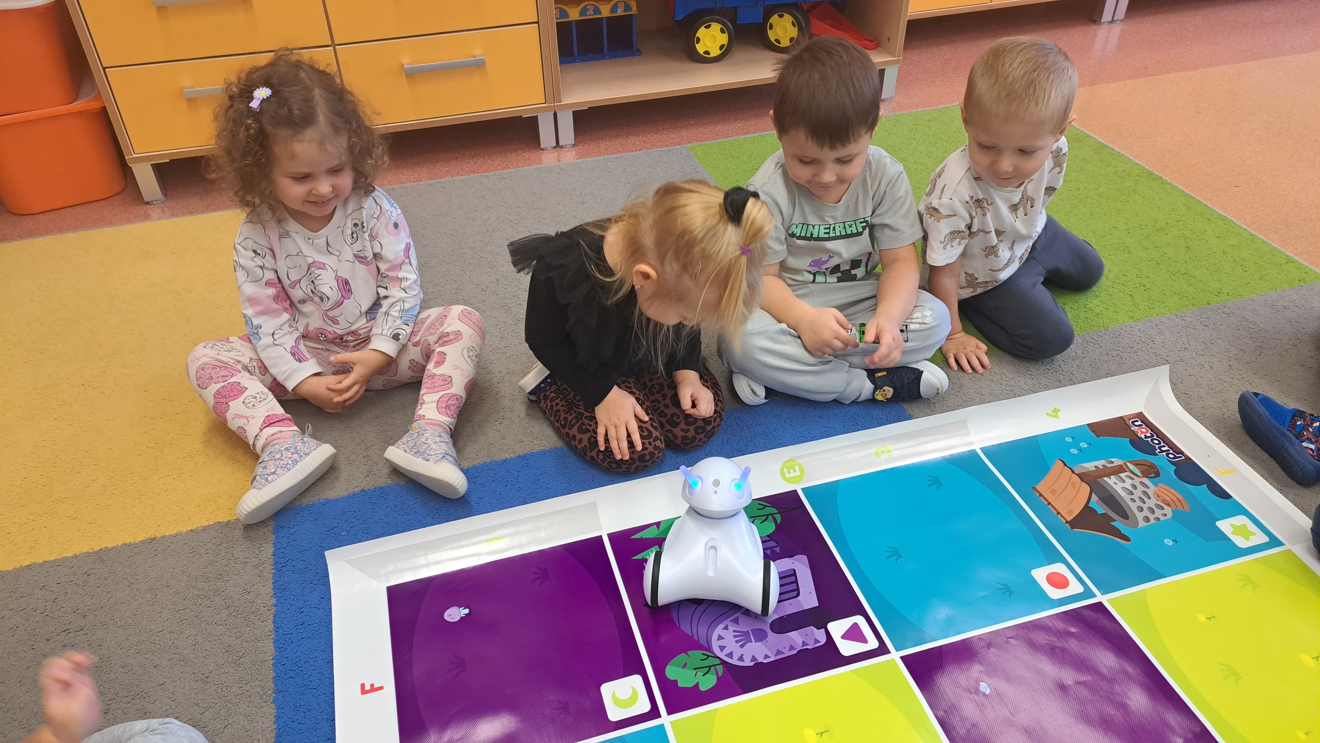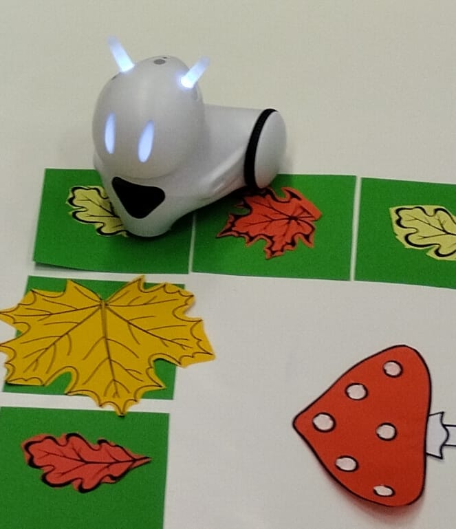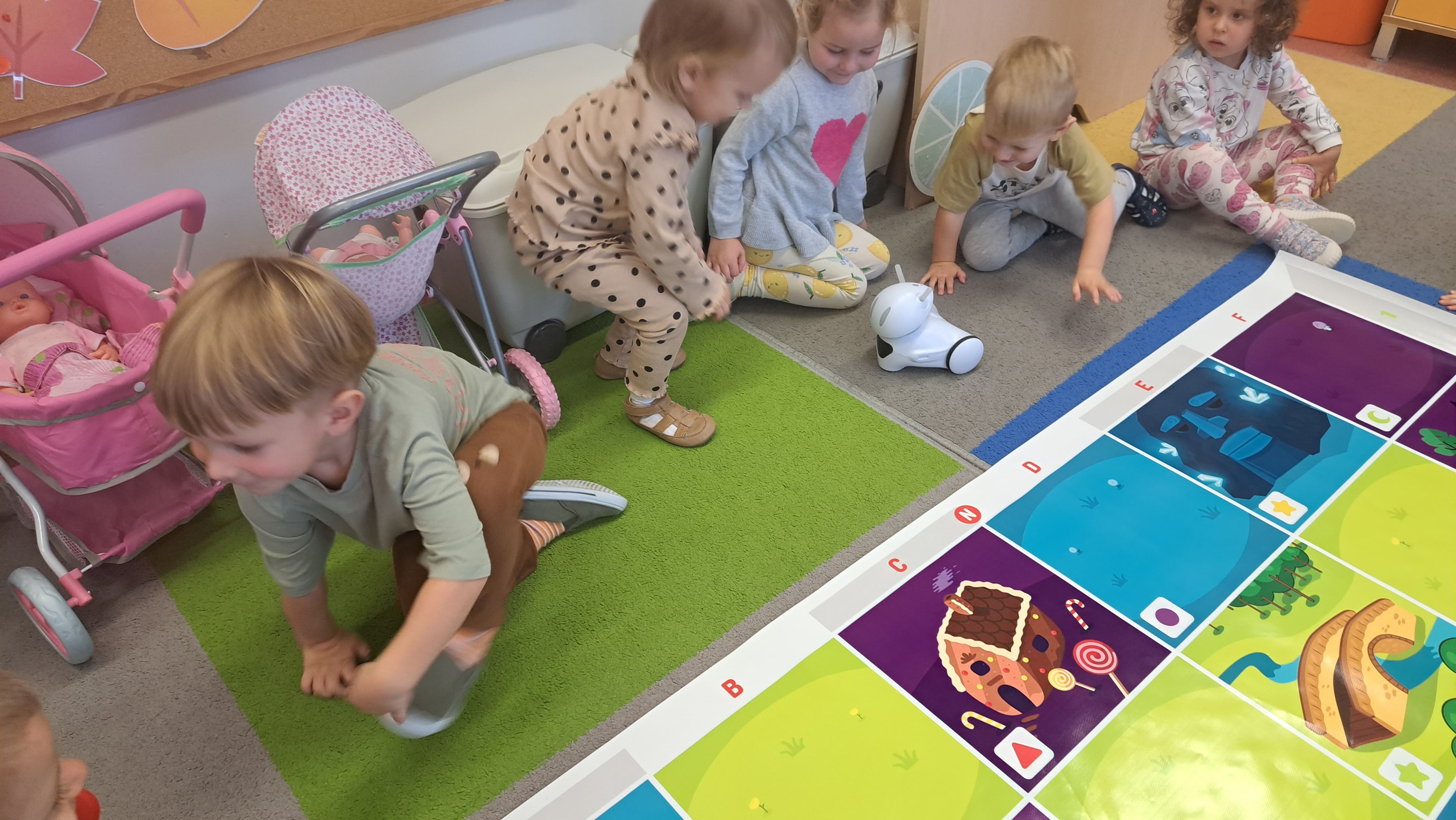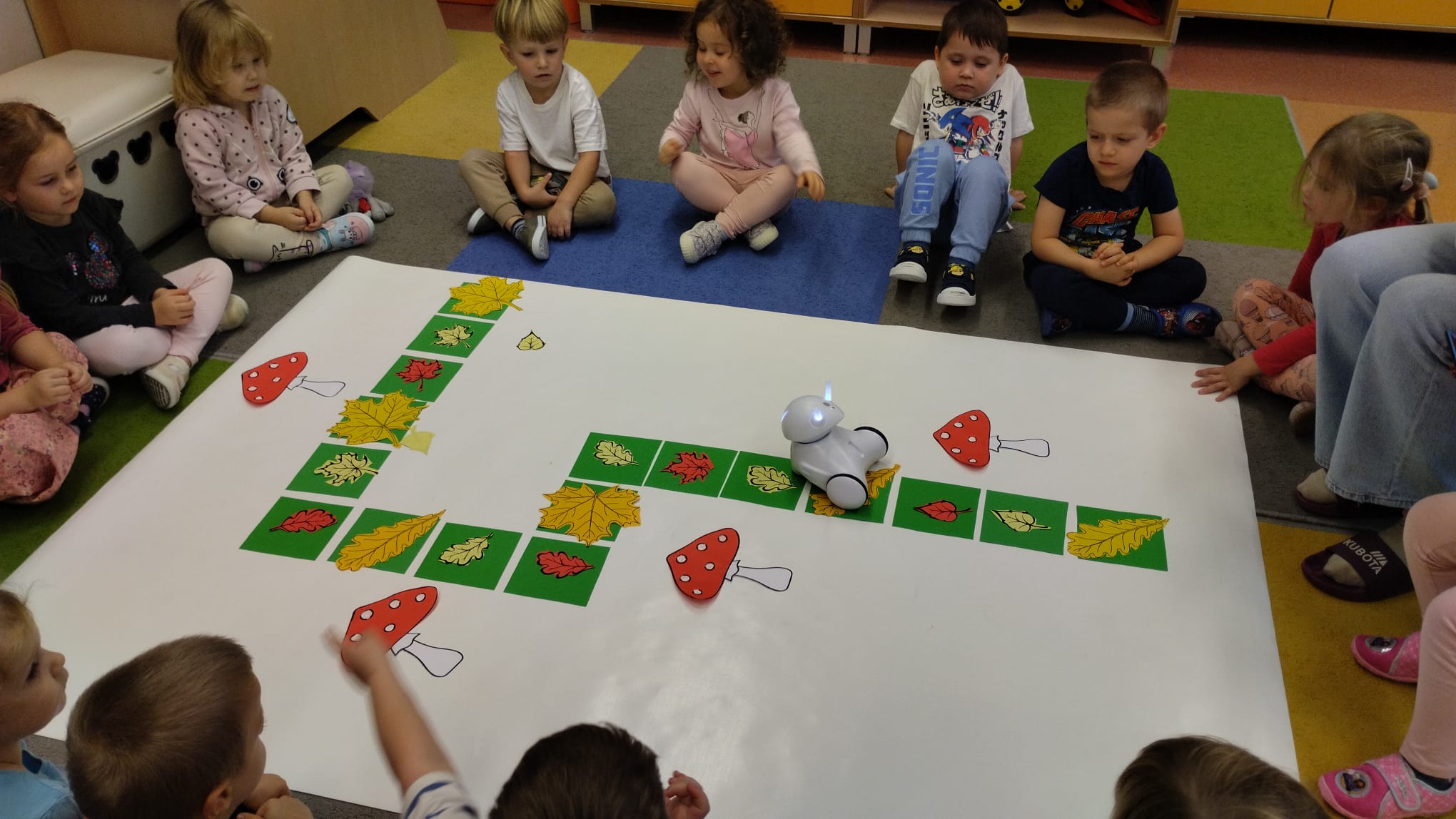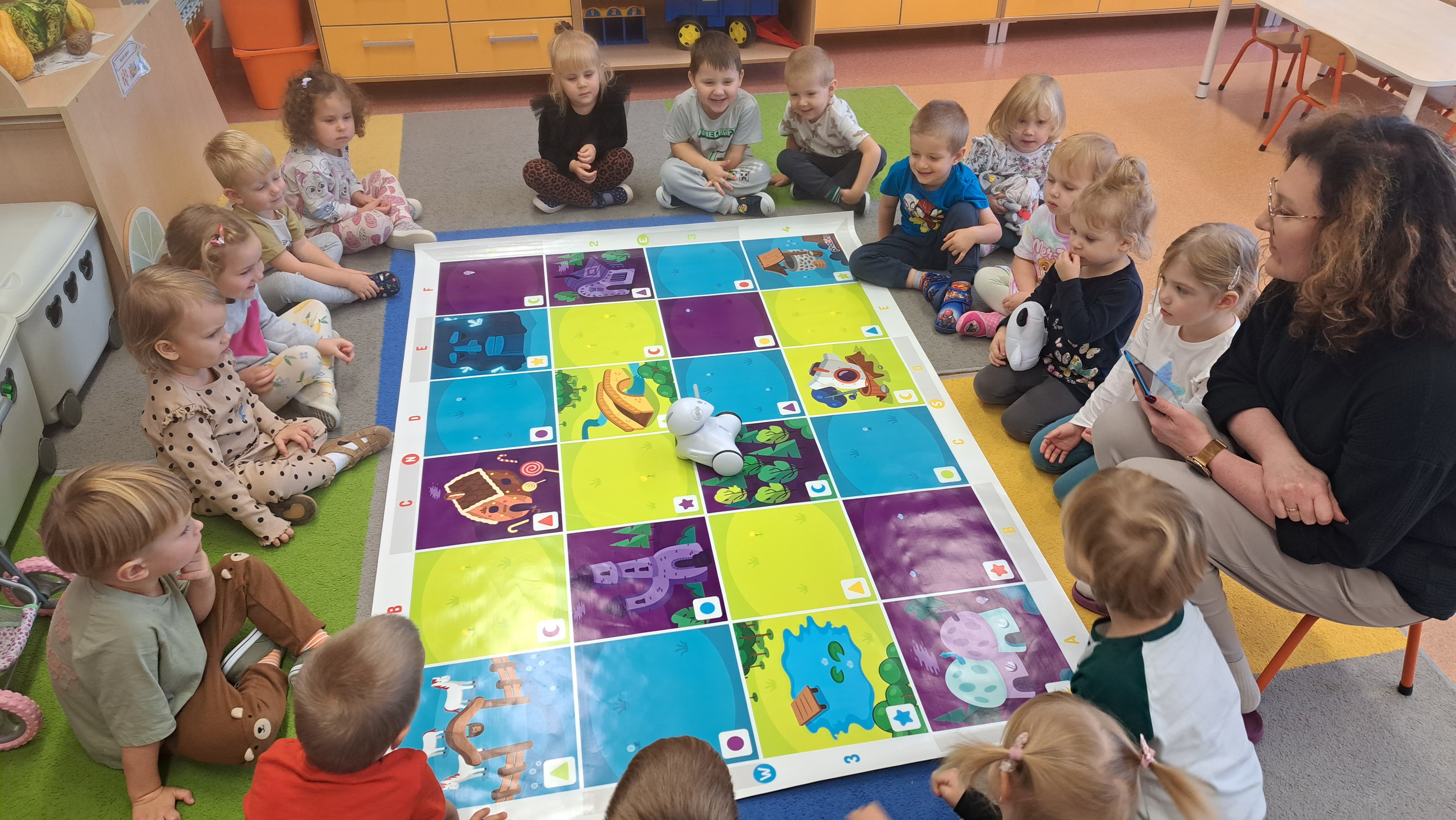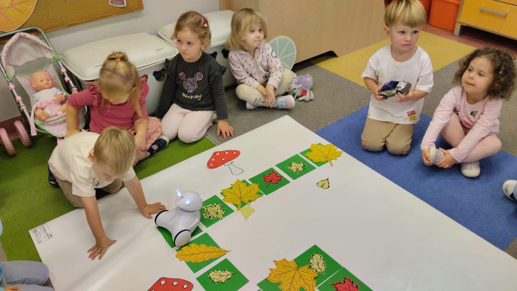 Niewątpliwą atrakcją było pierwsze spotkanie z Photonem - interaktywnym robotem edukacyjnym. Dzieci uczyły go poruszania się w określonych kierunkach, ćwicząc orientację w przestrzeni. Zabawy w kodowanie były doskonałą okazją do wzbogacenia wiedzy o jesieni i jej darach. Sprawiły też dzieciom dużą frajdę, dlatego z pewnością będziemy kontynuować przygodę z kodowaniem przez kolejne miesiące.