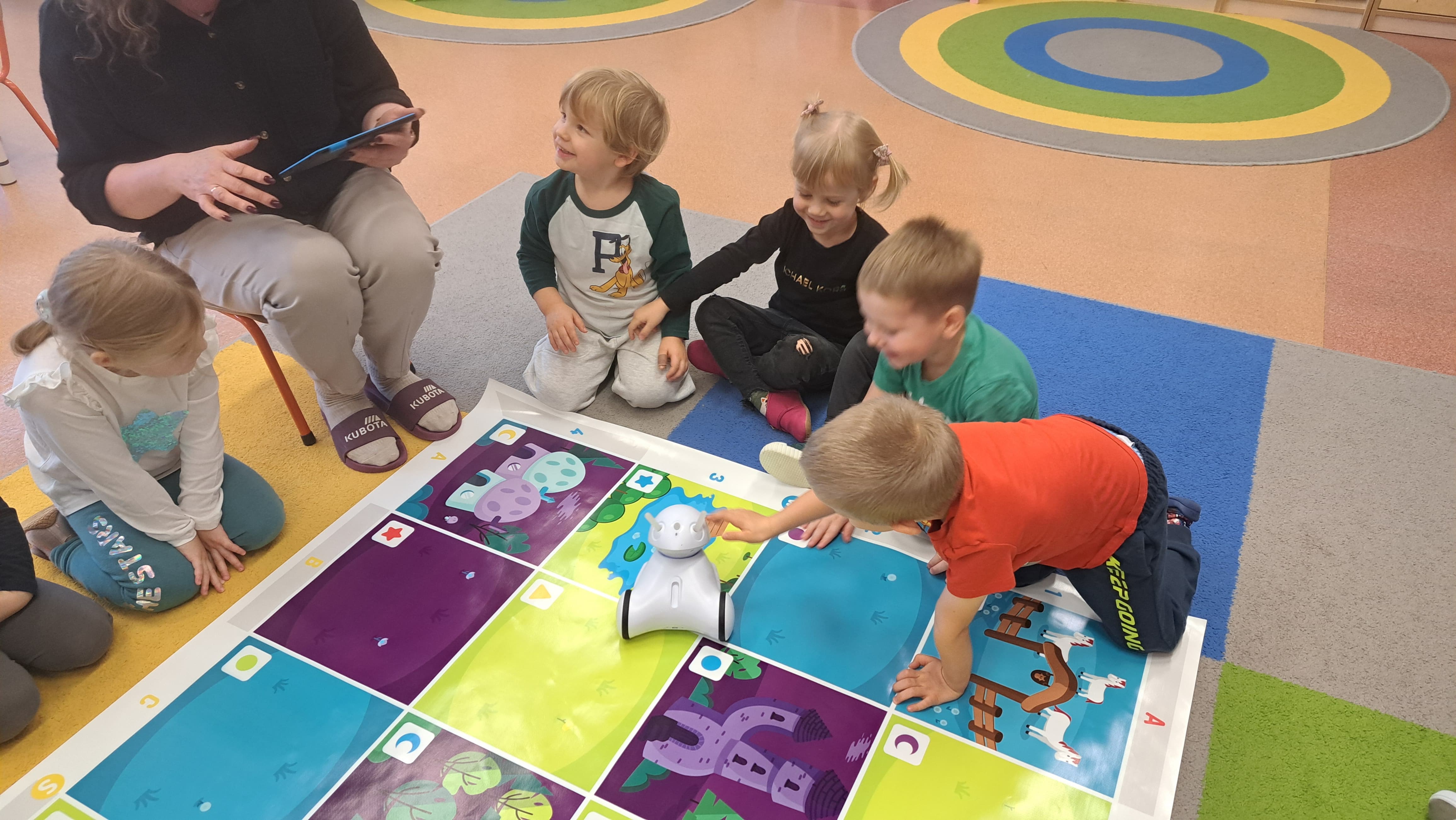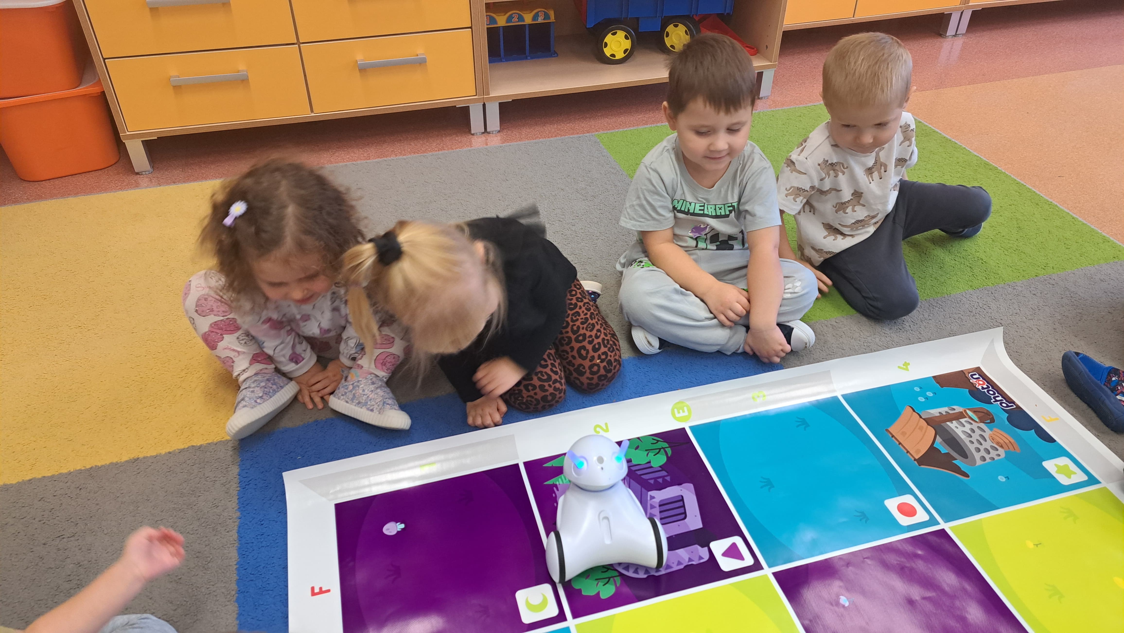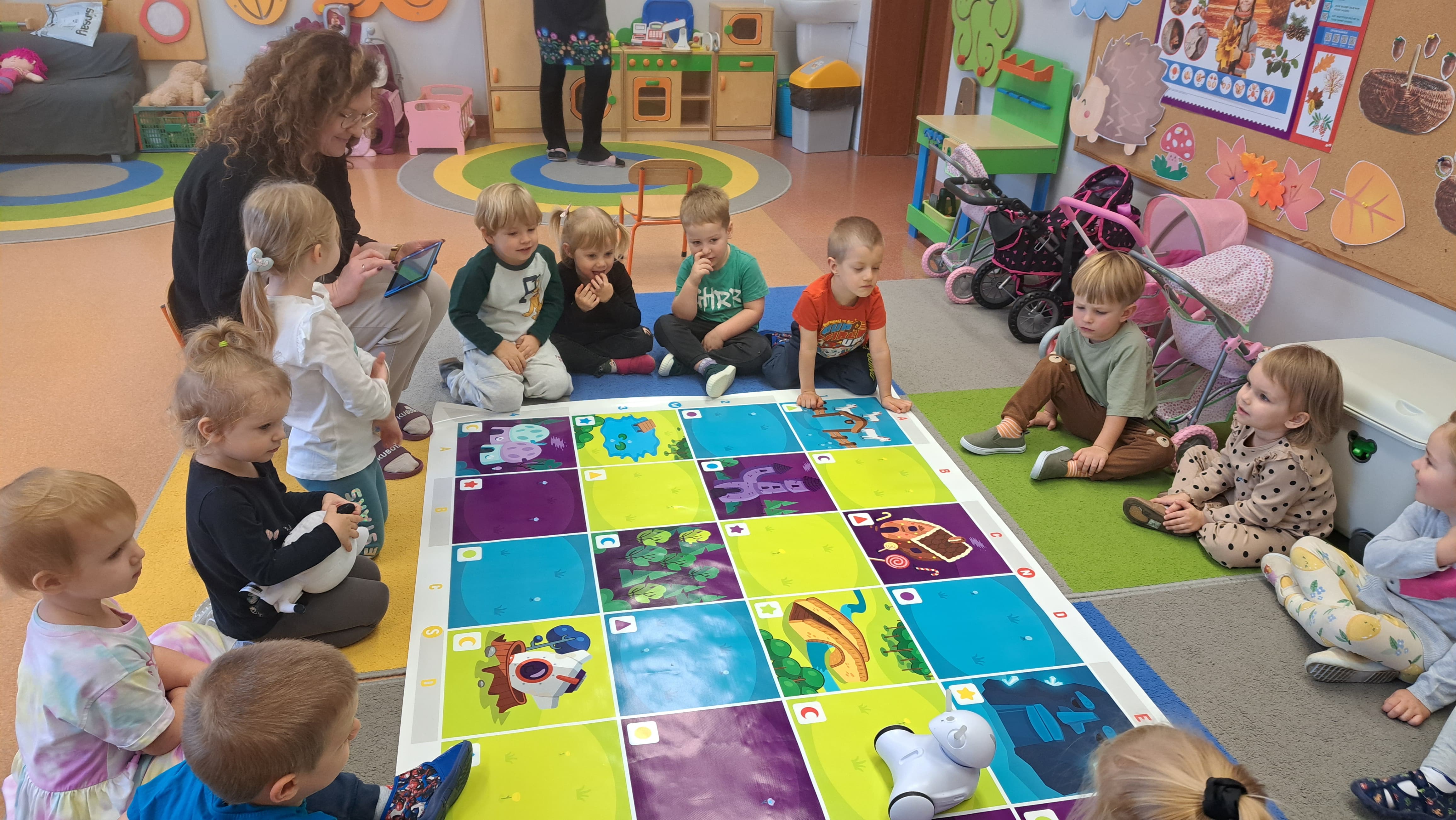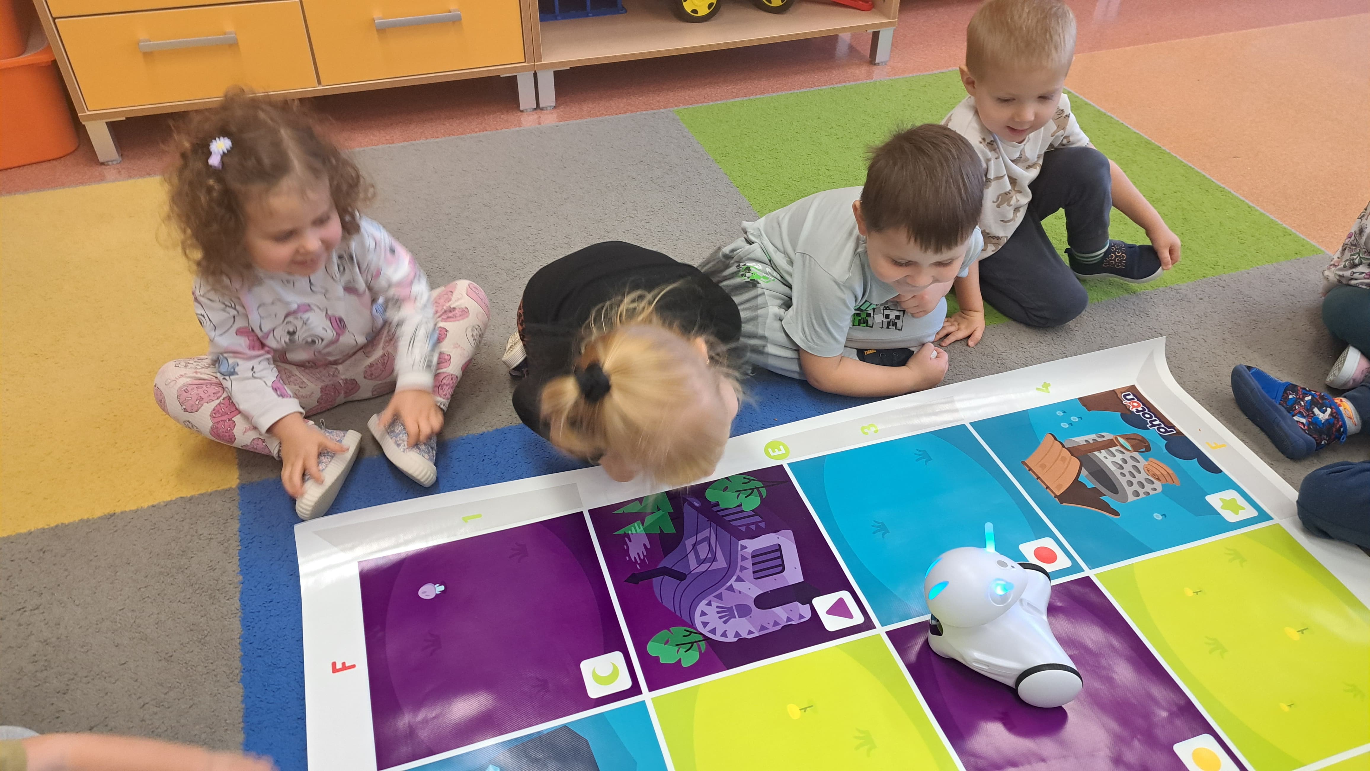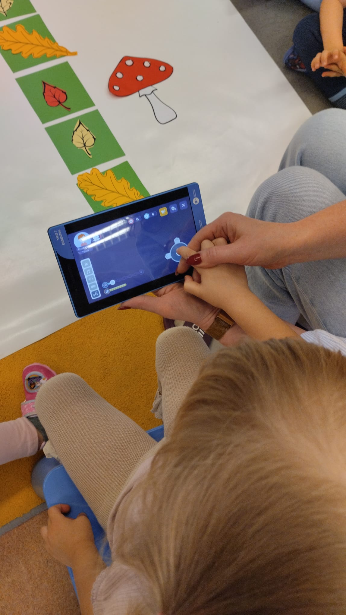 Niewątpliwą atrakcją było pierwsze spotkanie z Photonem - interaktywnym robotem edukacyjnym. Dzieci uczyły go poruszania się w określonych kierunkach, ćwicząc orientację w przestrzeni. Zabawy w kodowanie były doskonałą okazją do wzbogacenia wiedzy o jesieni i jej darach. Sprawiły też dzieciom dużą frajdę, dlatego z pewnością będziemy kontynuować przygodę z kodowaniem przez kolejne miesiące.