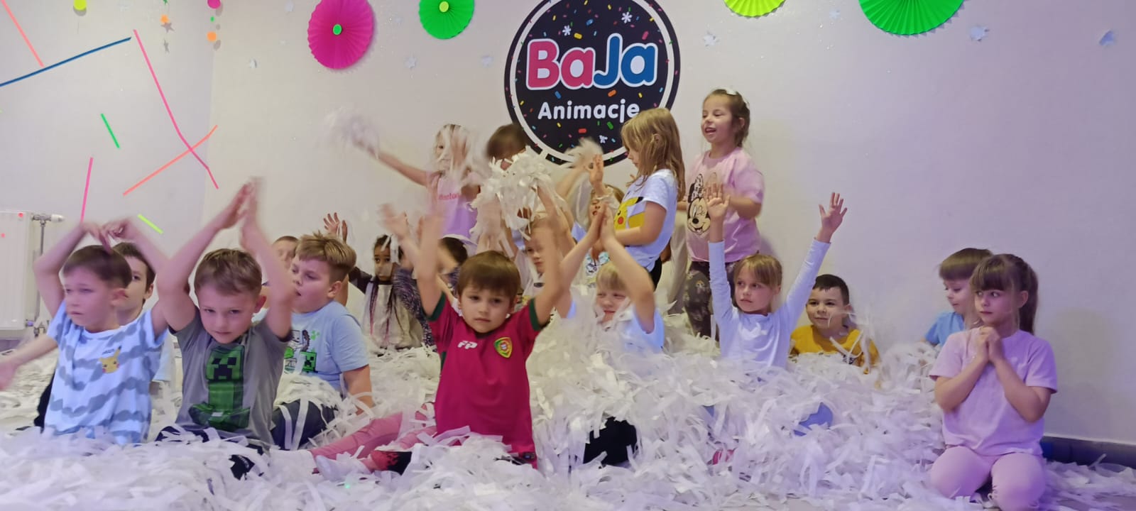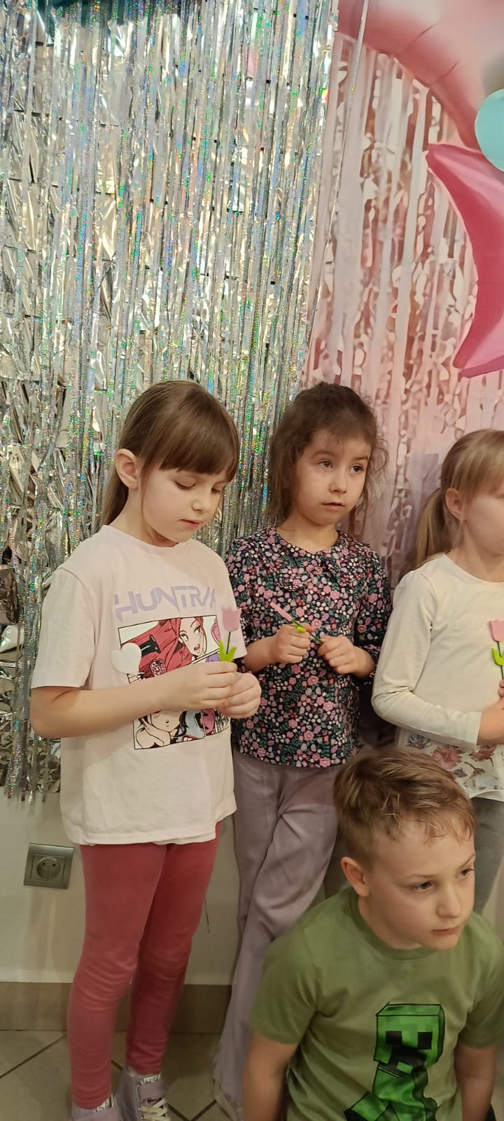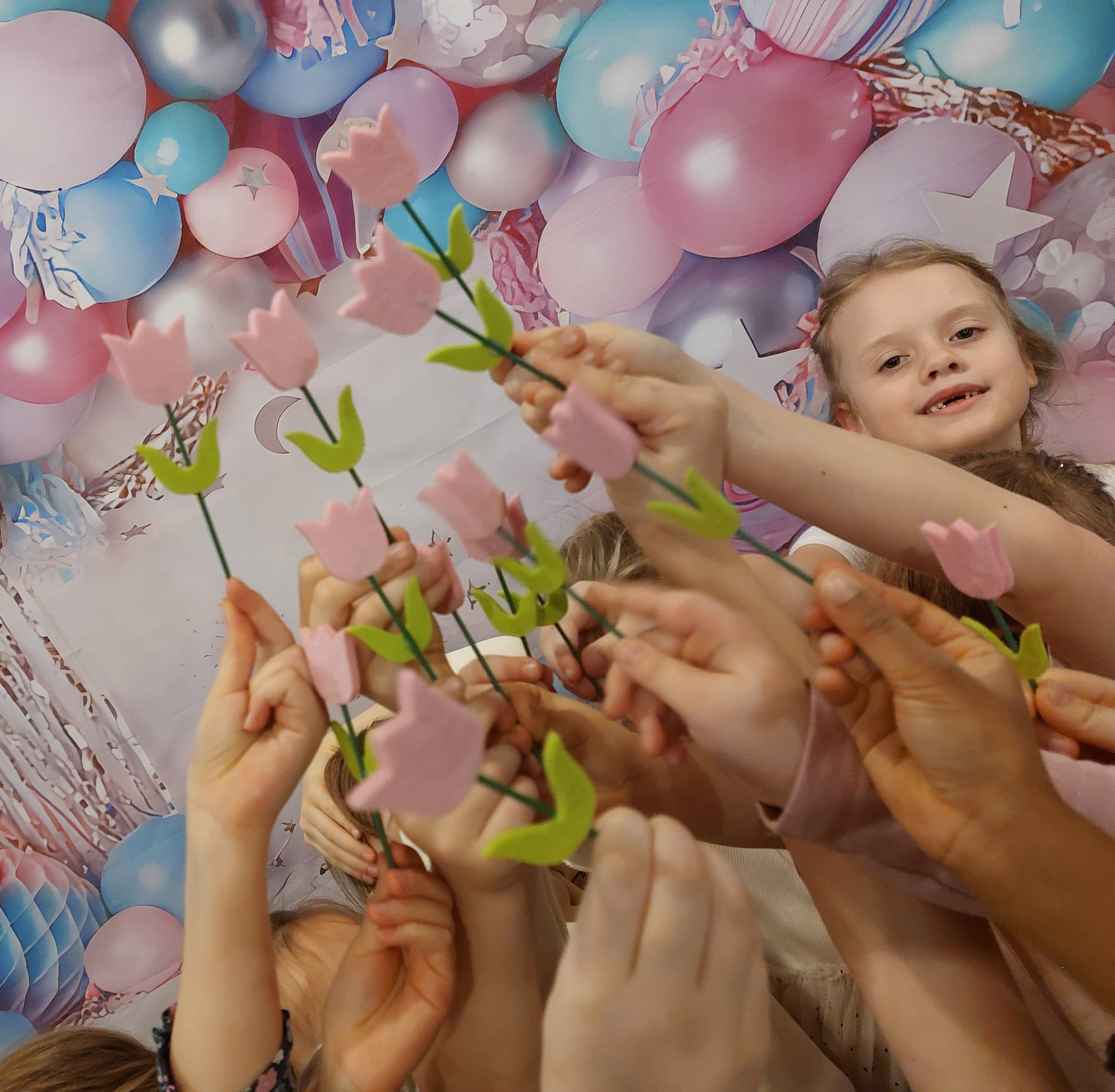 Dzień Kobiet w przedszkolu to wyjątkowa okazja do budowania wśród najmłodszych postaw szacunku, życzliwości i empatii. Choć 8 marca kojarzy się głównie z kwiatami i drobnymi upominkami, w przestrzeni przedszkolnej może stać się inspirującym dniem pełnym rozmów, zabawy i twórczych aktywności. Dziewczynki i chłopcy z grupy V dziś wybrały się do sali animacyjnej BaJa w Koninie. Był to dzień pełen wrażeń, wspólnych atrakcji i świetnej muzycznej zabawy. Dzieci wykonały swojego piankoslajma, którego mogły zabrać do domu, była biała taneczna dyskoteka, zabawy z piłkami i ,,różową panterą”, na koniec chłopcy złożyli dziewczynkom serdeczne życzenia i wręczyli im pięknego tulipanka. Był to bardzo miły moment, który wywołał wiele uśmiechów. Dzień Kobie to nie tylko święto dziewczynek, ale moment, w którym uczymy dzieci wzajemnego doceniania, współpracy i uprzejmości wobec siebie nawzajem. Ten dzień na pewno na długo zostanie w pamięci starszaków.