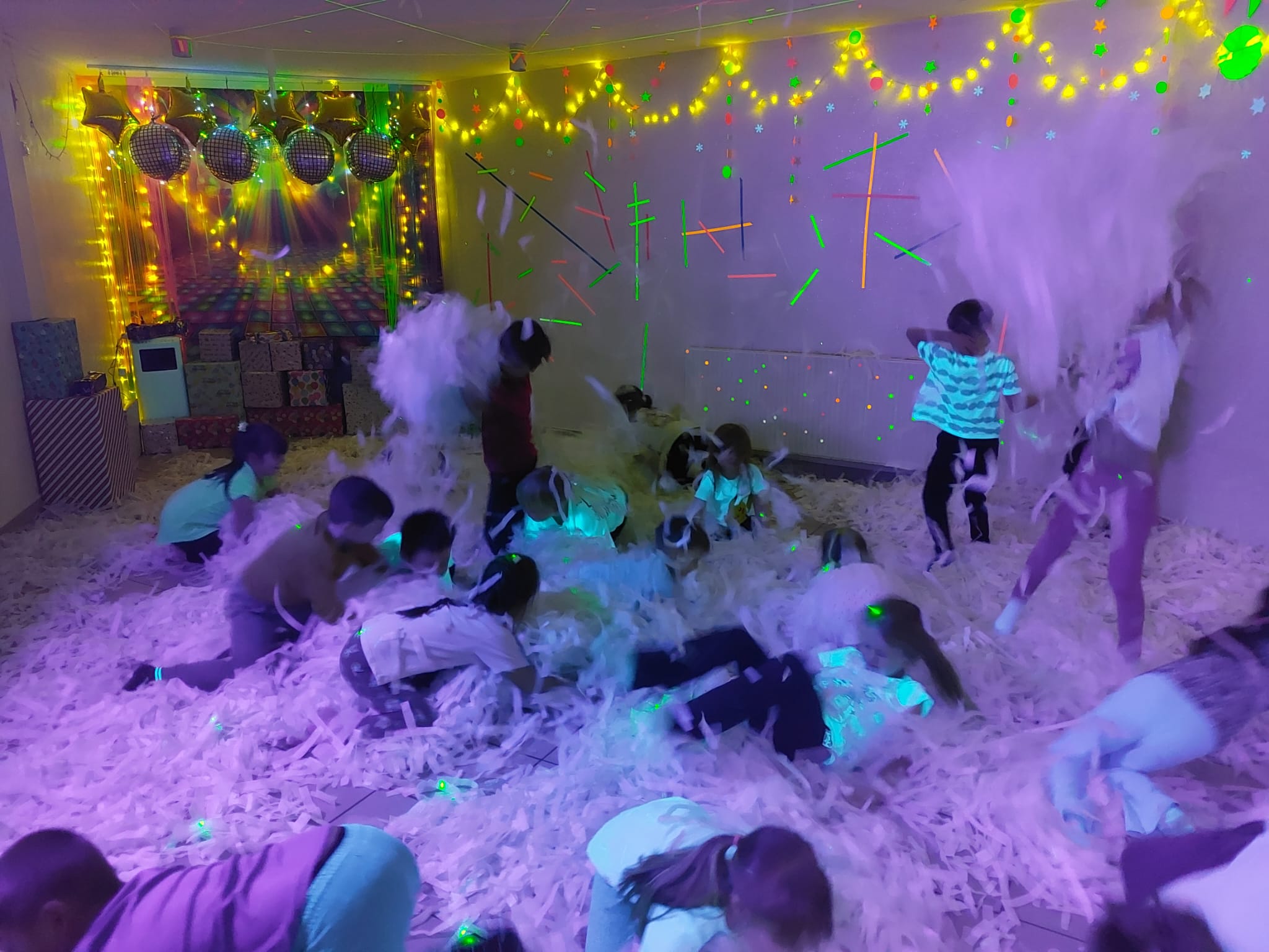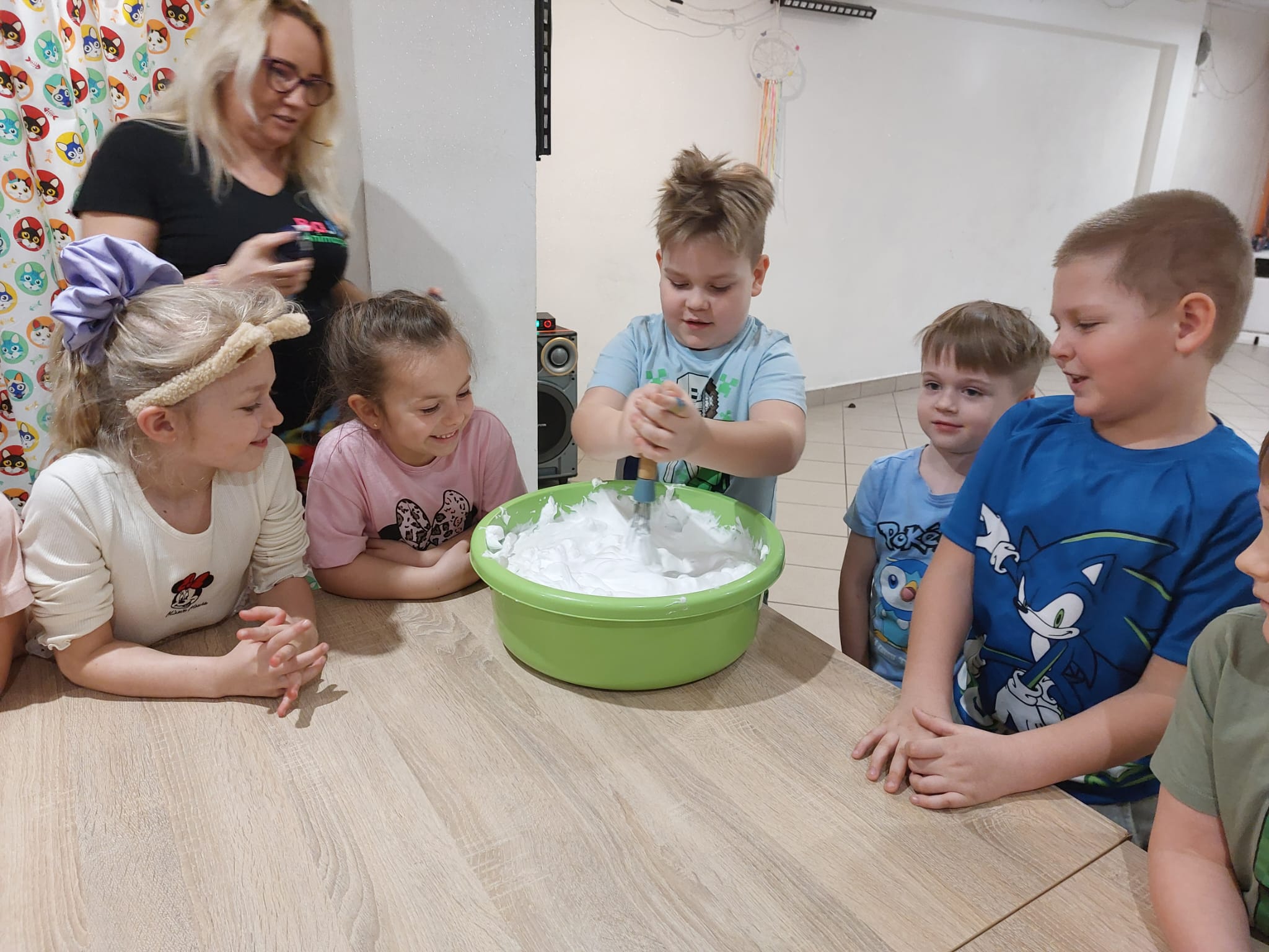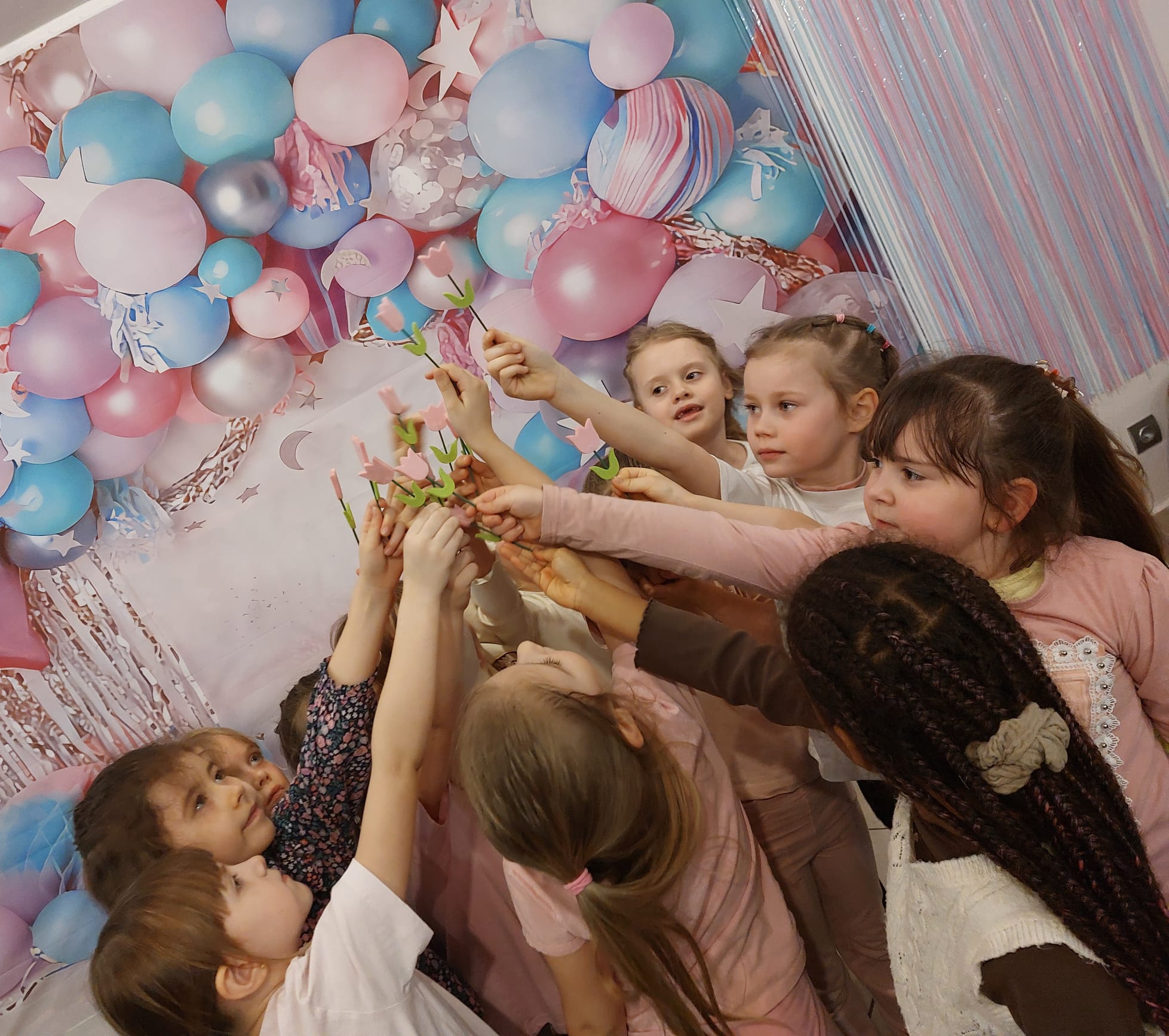 Dzień Kobiet w przedszkolu to wyjątkowa okazja do budowania wśród najmłodszych postaw szacunku, życzliwości i empatii. Choć 8 marca kojarzy się głównie z kwiatami i drobnymi upominkami, w przestrzeni przedszkolnej może stać się inspirującym dniem pełnym rozmów, zabawy i twórczych aktywności. Dziewczynki i chłopcy z grupy V dziś wybrały się do sali animacyjnej BaJa w Koninie. Był to dzień pełen wrażeń, wspólnych atrakcji i świetnej muzycznej zabawy. Dzieci wykonały swojego piankoslajma, którego mogły zabrać do domu, była biała taneczna dyskoteka, zabawy z piłkami i ,,różową panterą”, na koniec chłopcy złożyli dziewczynkom serdeczne życzenia i wręczyli im pięknego tulipanka. Był to bardzo miły moment, który wywołał wiele uśmiechów. Dzień Kobie to nie tylko święto dziewczynek, ale moment, w którym uczymy dzieci wzajemnego doceniania, współpracy i uprzejmości wobec siebie nawzajem. Ten dzień na pewno na długo zostanie w pamięci starszaków.