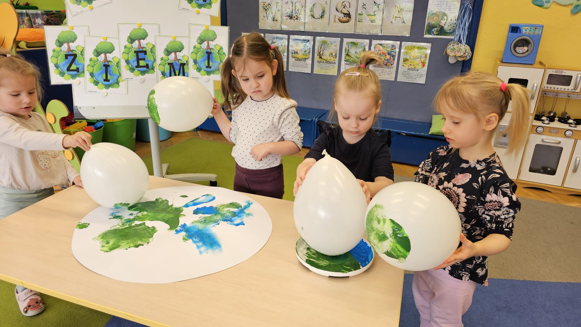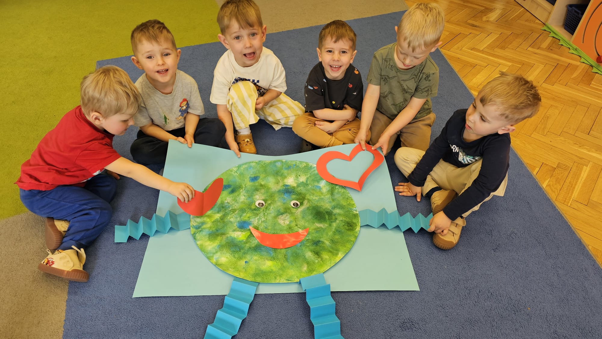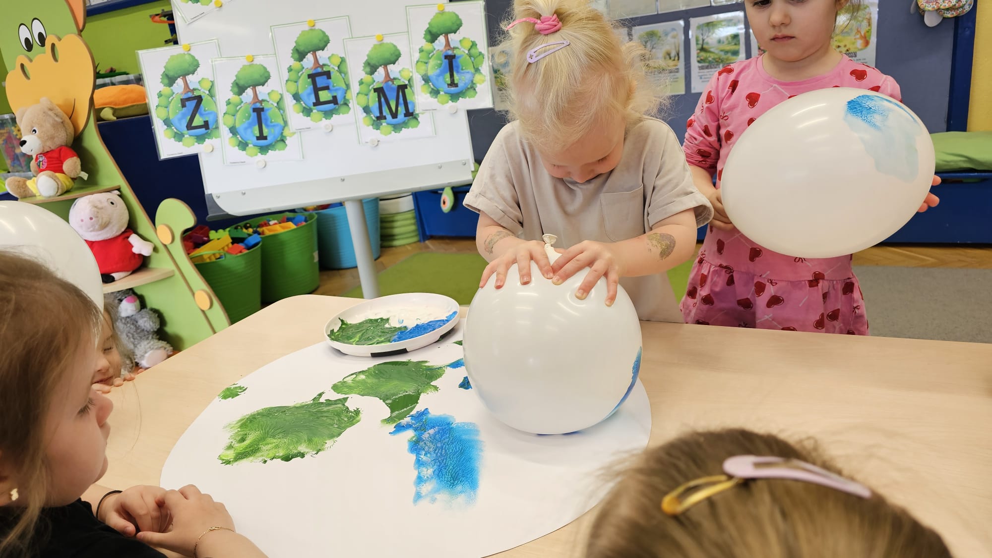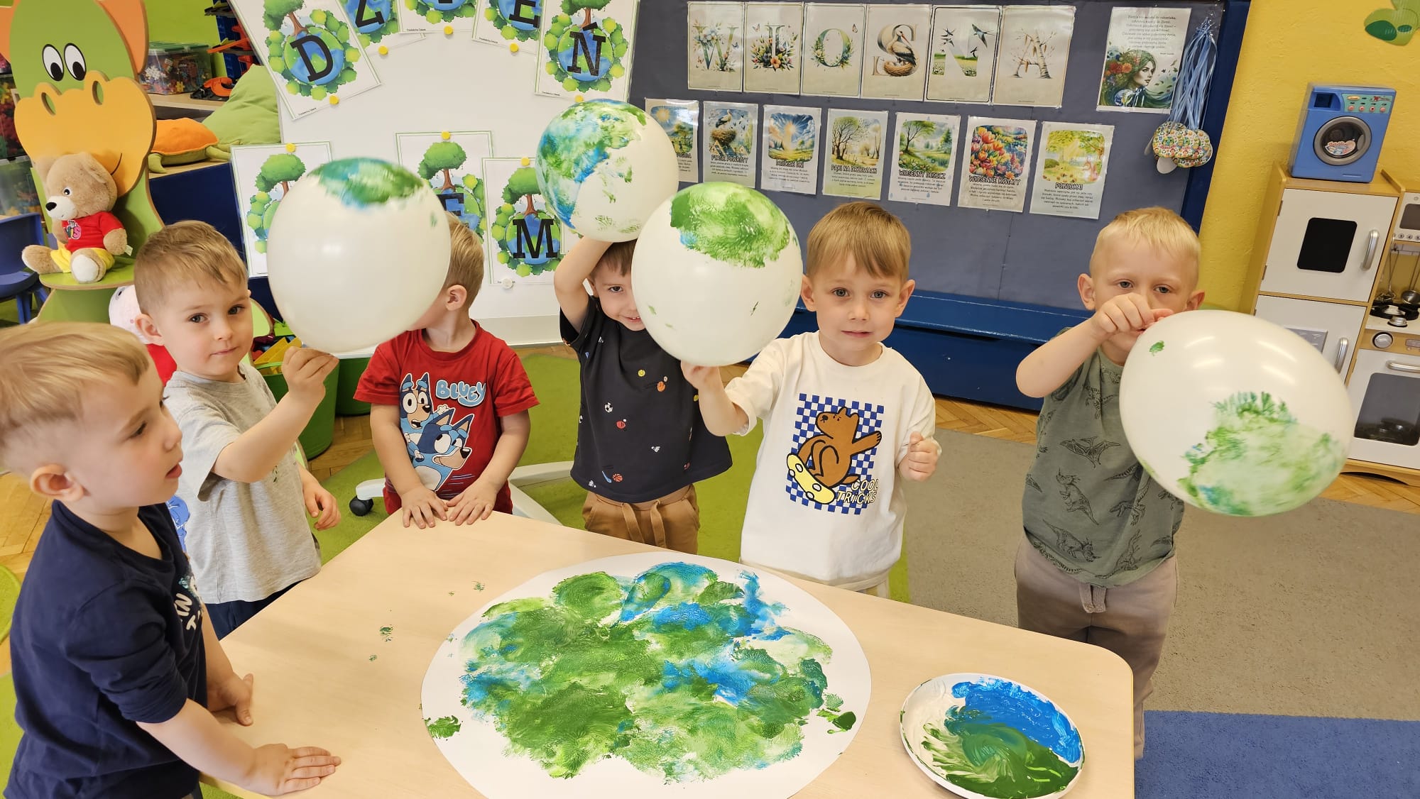 Z okazji obchodów Dnia Ziemi dzieci grupy I maluszków wzięły udział w zajęciach poświęconych trosce o naszą planetę. Przedszkolaki zastanawiały się, co lubi Ziemia, a czego nie oraz wspólnie stworzyły kodeks małego ekologa, ucząc się, jak dbać o środowisko w codziennym życiu. Zajęcia zostały urozmaicone działaniami plastycznymi. Dzieci lepiły kulę ziemską z plasteliny, a także malowały przy użyciu balonów, rozwijając swoją kreatywność i sprawność manualną. Nie zabrakło również aktywności ruchowej. „Ziemia” zaprosiła dzieci do wspólnych ćwiczeń, które dostarczyły wiele radości i energii. Główne cele zajęć to: kształtowanie postaw proekologicznych u dzieci, rozwijanie świadomości dotyczącej ochrony środowiska, poznanie zasad dbania o Ziemię (kodeks małego ekologa), rozwijanie umiejętności wypowiadania się na określony temat, wspieranie kreatywności poprzez działania plastyczne, rozwijanie sprawności manualnej, zachęcanie do aktywności fizycznej i ruchu oraz integracja grupy poprzez wspólne działania. To był dzień pełen zabawy, nauki i refleksji nad tym, jak każdy z nas może dbać o naszą planetę.