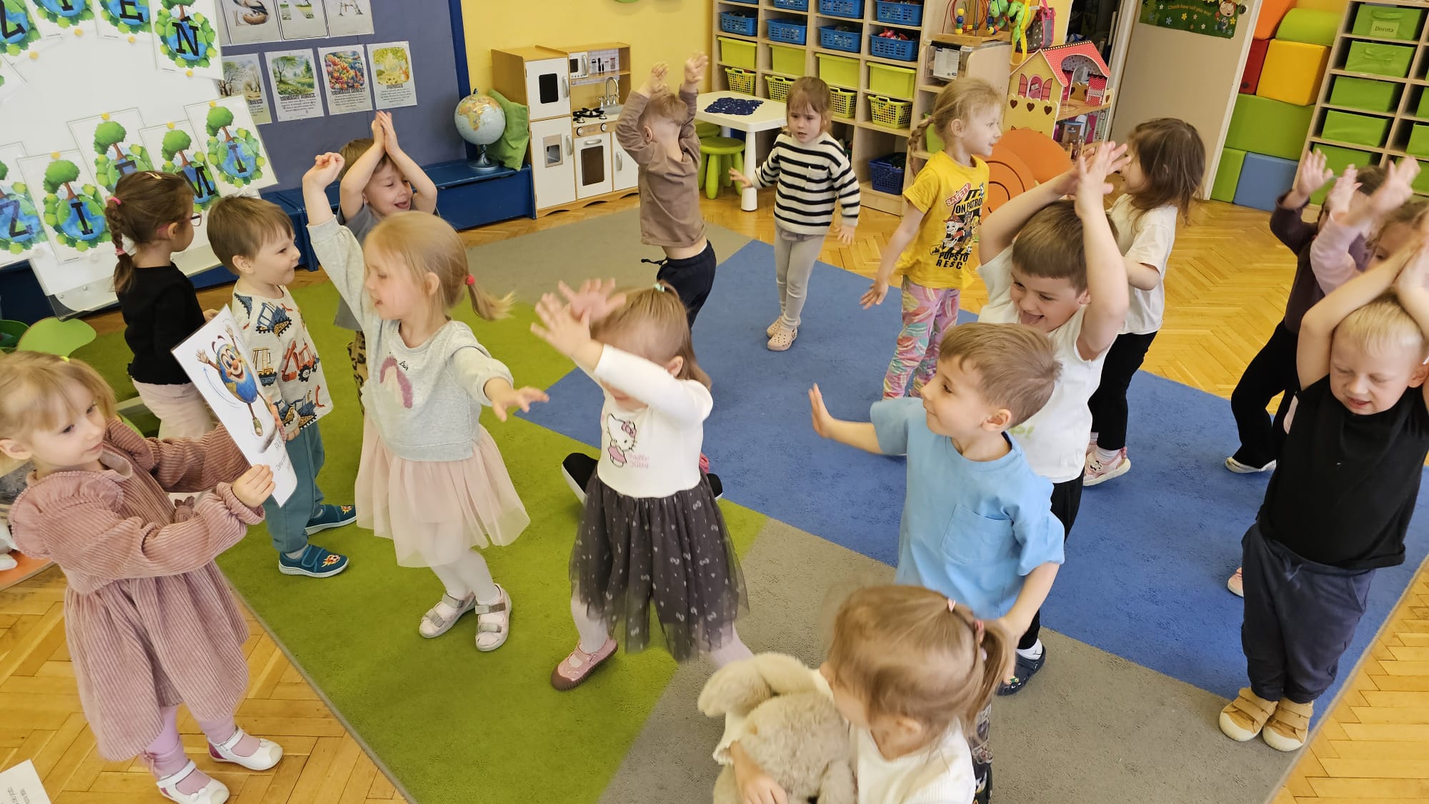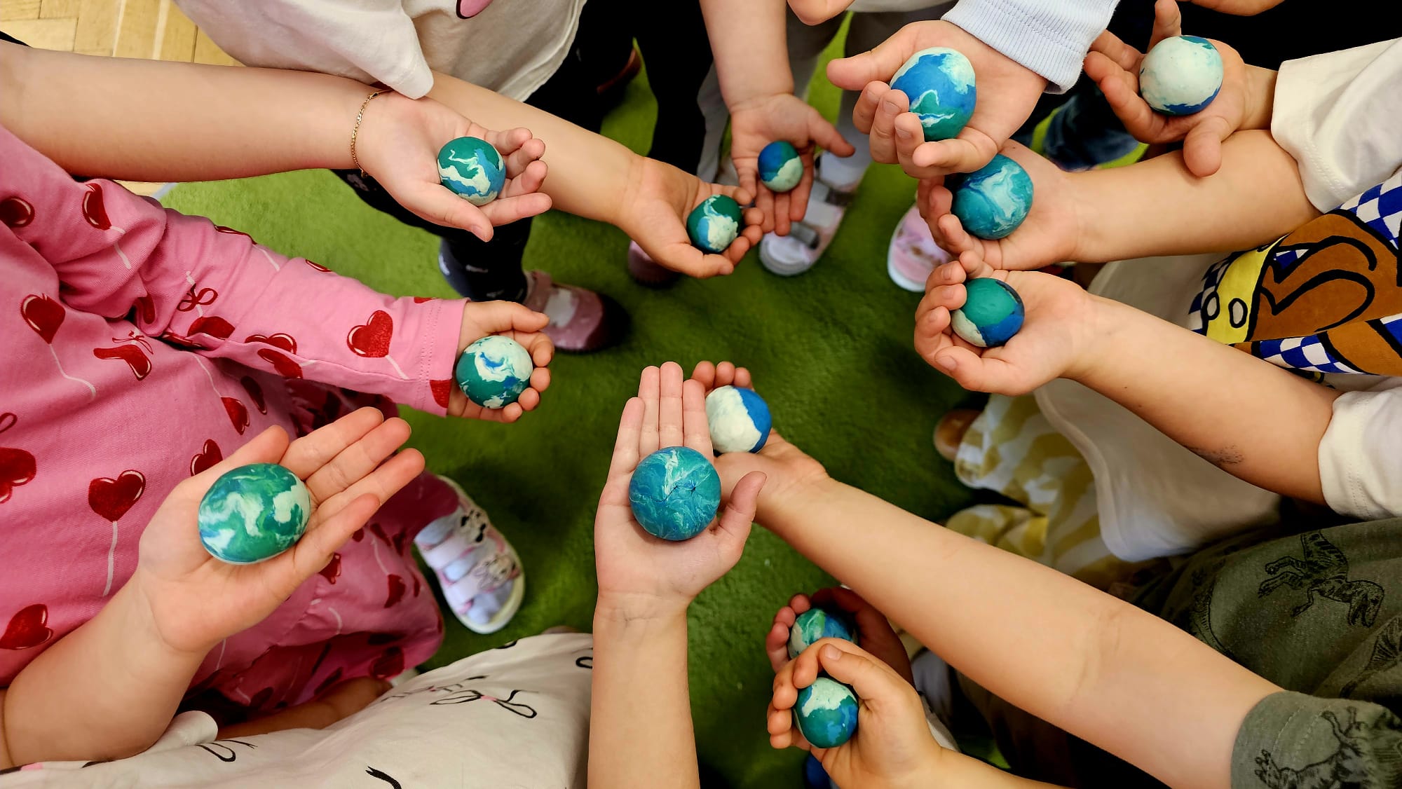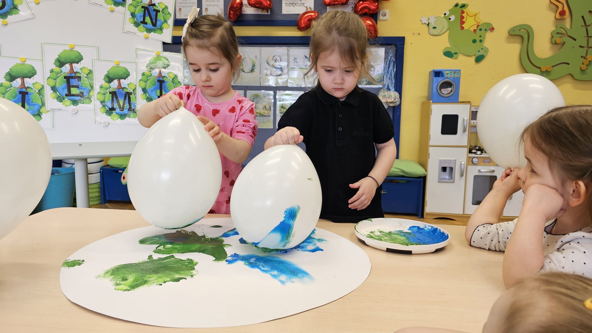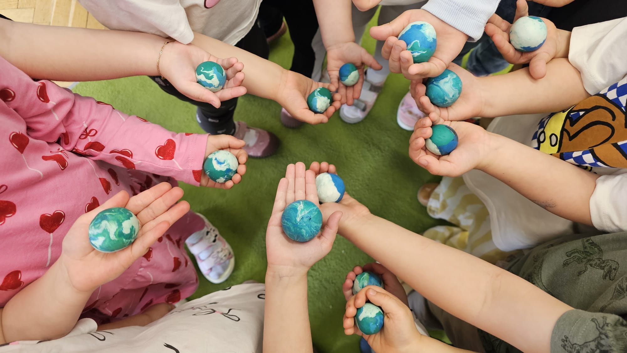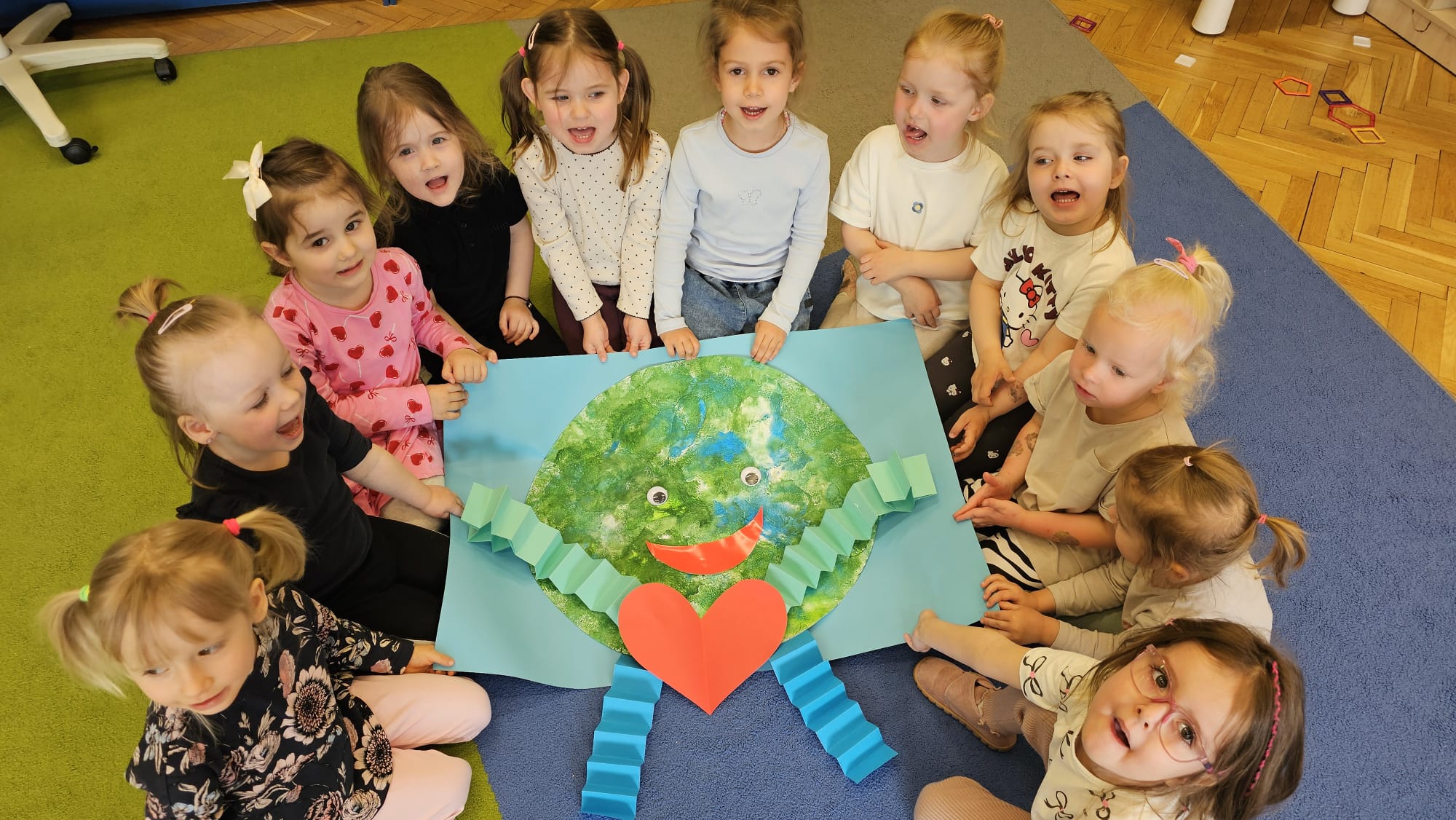 Z okazji obchodów Dnia Ziemi dzieci grupy I maluszków wzięły udział w zajęciach poświęconych trosce o naszą planetę. Przedszkolaki zastanawiały się, co lubi Ziemia, a czego nie oraz wspólnie stworzyły kodeks małego ekologa, ucząc się, jak dbać o środowisko w codziennym życiu. Zajęcia zostały urozmaicone działaniami plastycznymi. Dzieci lepiły kulę ziemską z plasteliny, a także malowały przy użyciu balonów, rozwijając swoją kreatywność i sprawność manualną. Nie zabrakło również aktywności ruchowej. „Ziemia” zaprosiła dzieci do wspólnych ćwiczeń, które dostarczyły wiele radości i energii. Główne cele zajęć to: kształtowanie postaw proekologicznych u dzieci, rozwijanie świadomości dotyczącej ochrony środowiska, poznanie zasad dbania o Ziemię (kodeks małego ekologa), rozwijanie umiejętności wypowiadania się na określony temat, wspieranie kreatywności poprzez działania plastyczne, rozwijanie sprawności manualnej, zachęcanie do aktywności fizycznej i ruchu oraz integracja grupy poprzez wspólne działania. To był dzień pełen zabawy, nauki i refleksji nad tym, jak każdy z nas może dbać o naszą planetę.