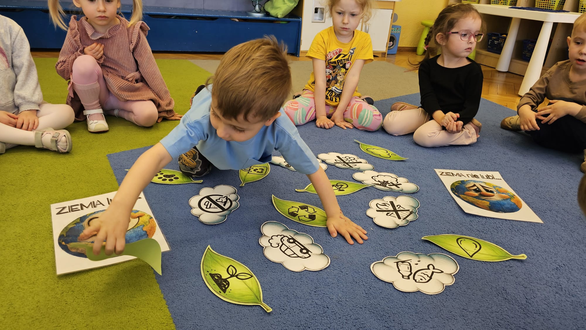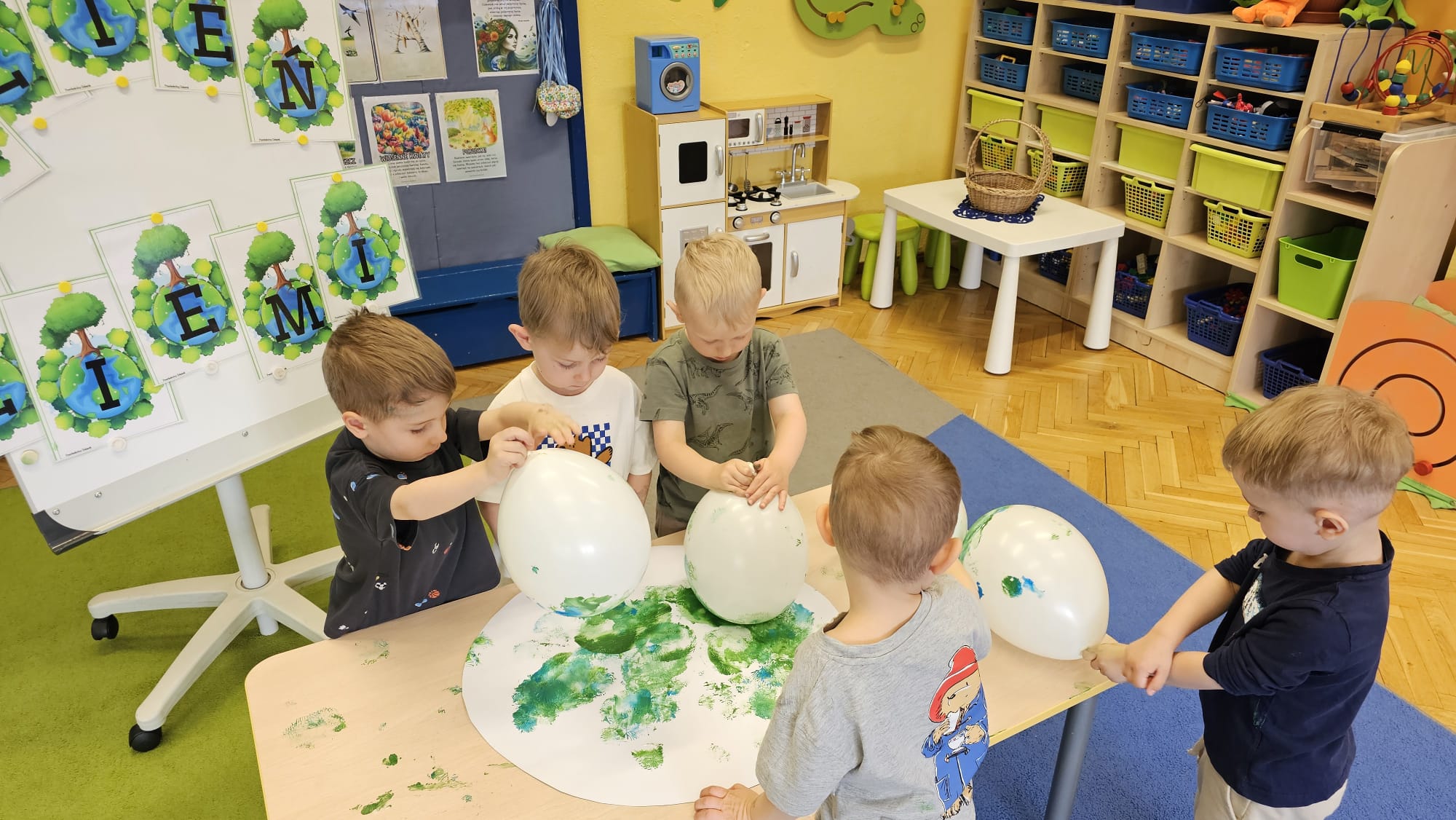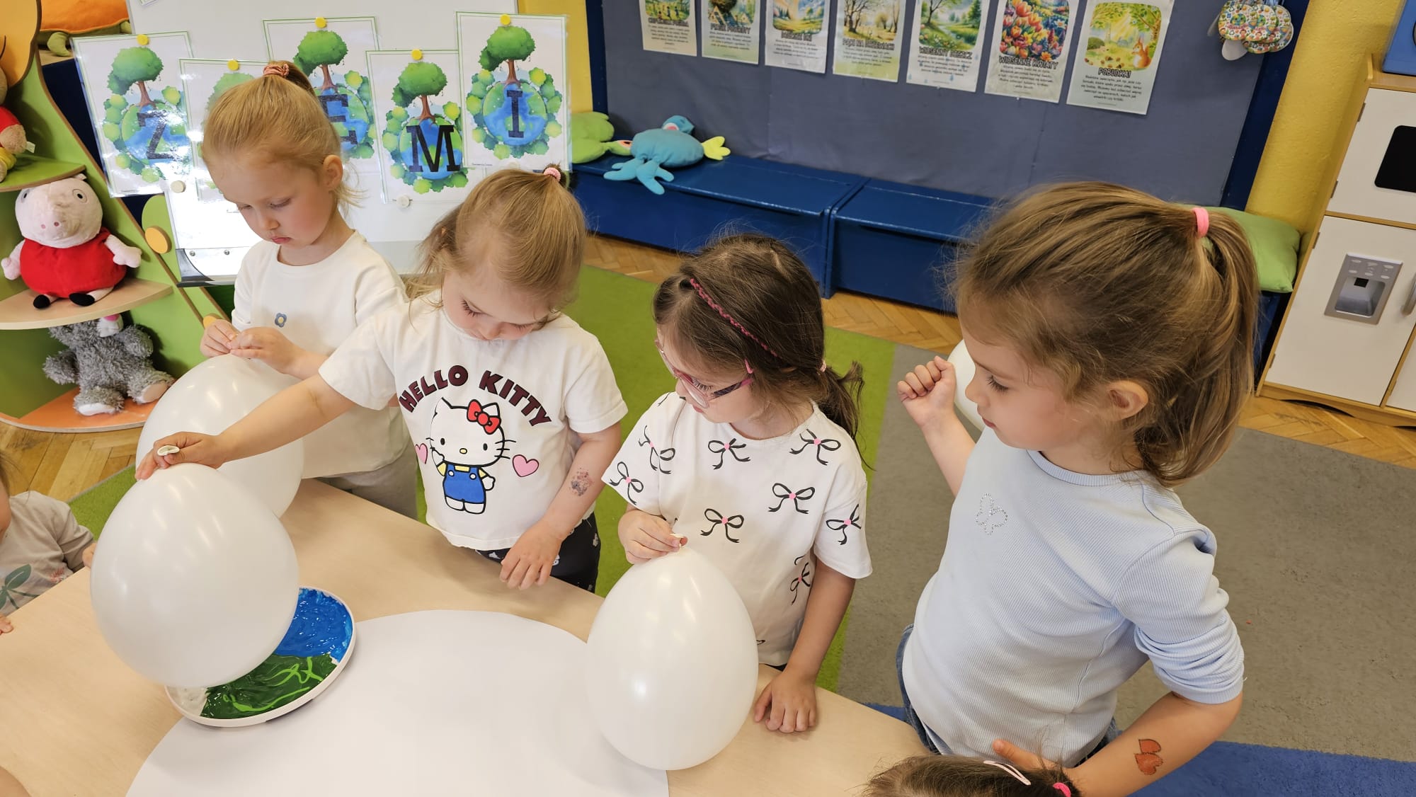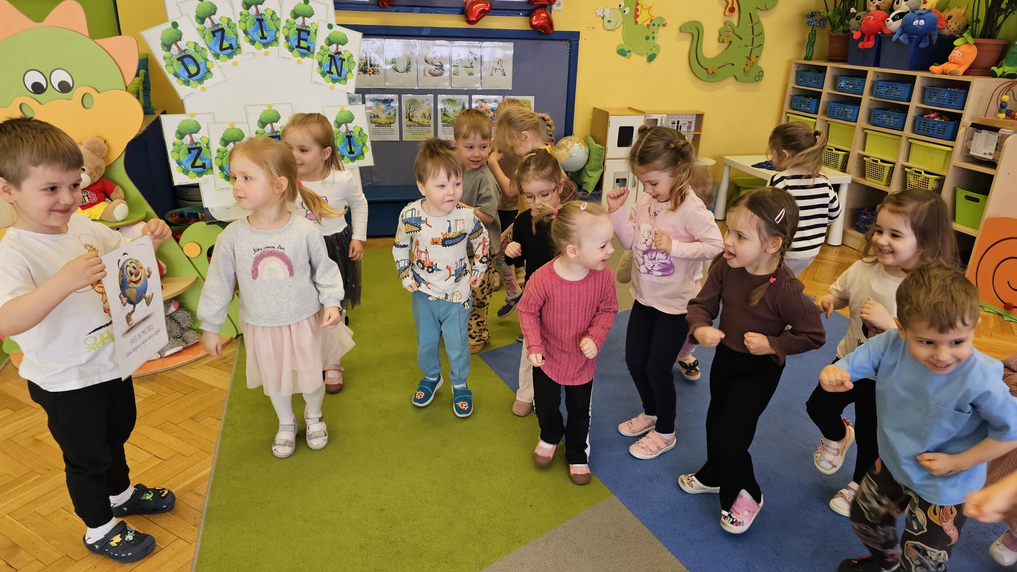 Z okazji obchodów Dnia Ziemi dzieci grupy I maluszków wzięły udział w zajęciach poświęconych trosce o naszą planetę. Przedszkolaki zastanawiały się, co lubi Ziemia, a czego nie oraz wspólnie stworzyły kodeks małego ekologa, ucząc się, jak dbać o środowisko w codziennym życiu. Zajęcia zostały urozmaicone działaniami plastycznymi. Dzieci lepiły kulę ziemską z plasteliny, a także malowały przy użyciu balonów, rozwijając swoją kreatywność i sprawność manualną. Nie zabrakło również aktywności ruchowej. „Ziemia” zaprosiła dzieci do wspólnych ćwiczeń, które dostarczyły wiele radości i energii. Główne cele zajęć to: kształtowanie postaw proekologicznych u dzieci, rozwijanie świadomości dotyczącej ochrony środowiska, poznanie zasad dbania o Ziemię (kodeks małego ekologa), rozwijanie umiejętności wypowiadania się na określony temat, wspieranie kreatywności poprzez działania plastyczne, rozwijanie sprawności manualnej, zachęcanie do aktywności fizycznej i ruchu oraz integracja grupy poprzez wspólne działania. To był dzień pełen zabawy, nauki i refleksji nad tym, jak każdy z nas może dbać o naszą planetę.
