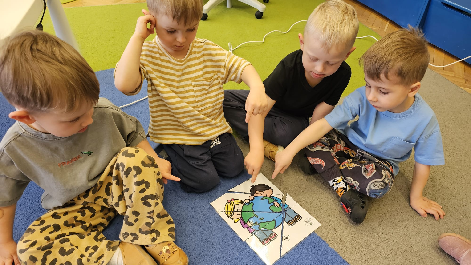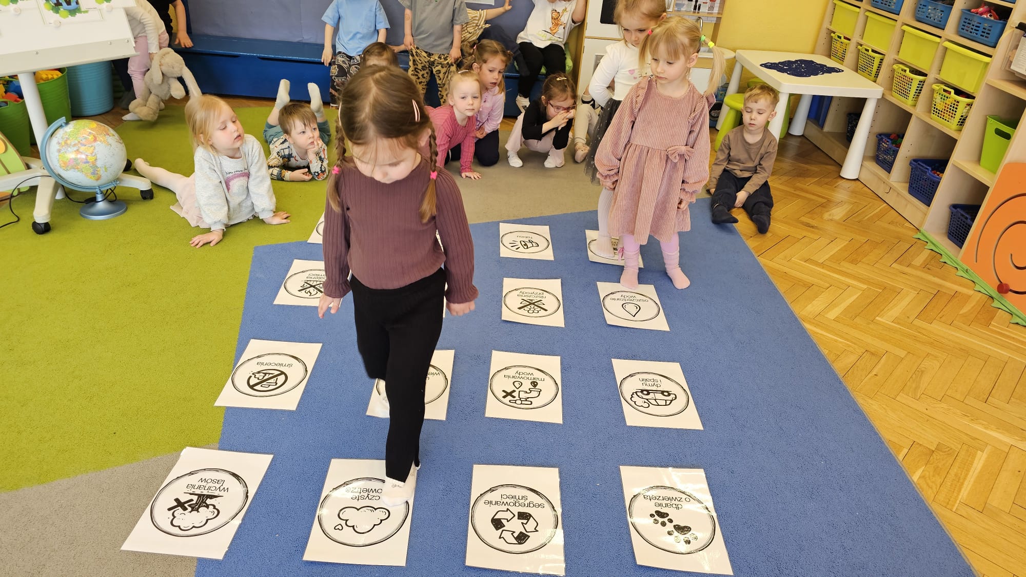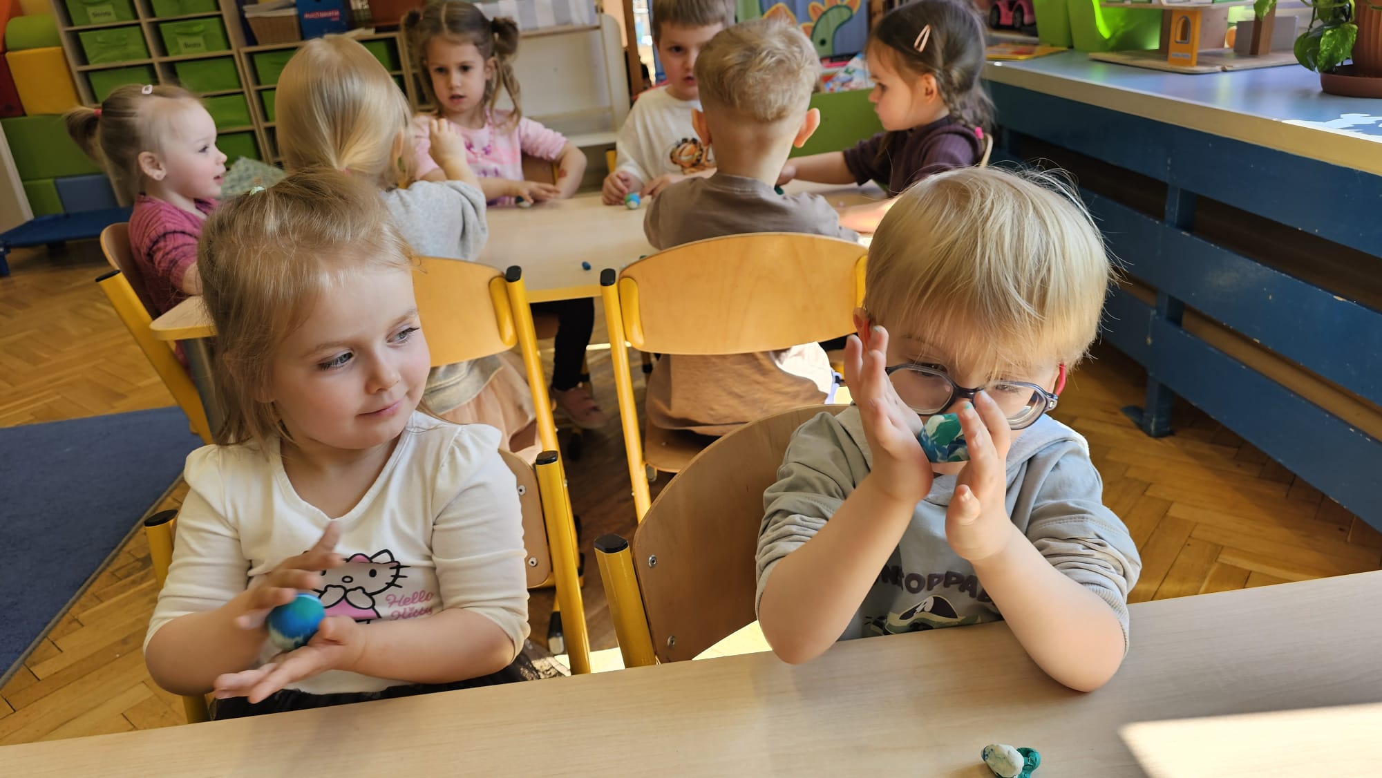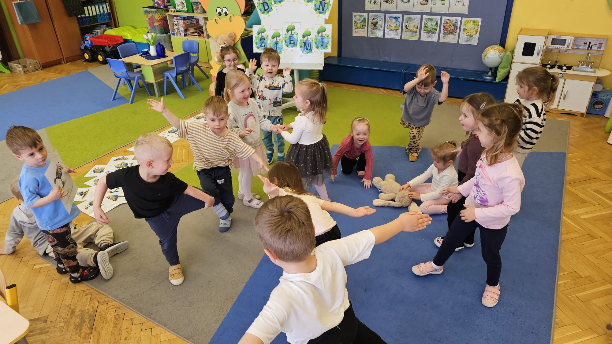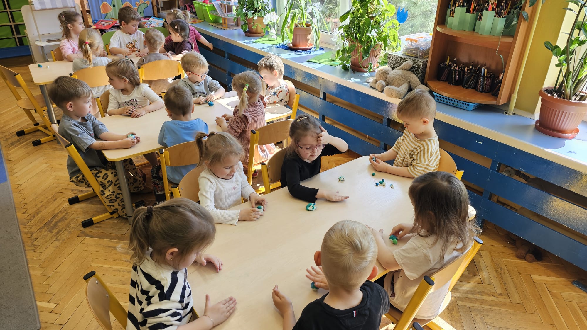 Z okazji obchodów Dnia Ziemi dzieci grupy I maluszków wzięły udział w zajęciach poświęconych trosce o naszą planetę. Przedszkolaki zastanawiały się, co lubi Ziemia, a czego nie oraz wspólnie stworzyły kodeks małego ekologa, ucząc się, jak dbać o środowisko w codziennym życiu. Zajęcia zostały urozmaicone działaniami plastycznymi. Dzieci lepiły kulę ziemską z plasteliny, a także malowały przy użyciu balonów, rozwijając swoją kreatywność i sprawność manualną. Nie zabrakło również aktywności ruchowej. „Ziemia” zaprosiła dzieci do wspólnych ćwiczeń, które dostarczyły wiele radości i energii. Główne cele zajęć to: kształtowanie postaw proekologicznych u dzieci, rozwijanie świadomości dotyczącej ochrony środowiska, poznanie zasad dbania o Ziemię (kodeks małego ekologa), rozwijanie umiejętności wypowiadania się na określony temat, wspieranie kreatywności poprzez działania plastyczne, rozwijanie sprawności manualnej, zachęcanie do aktywności fizycznej i ruchu oraz integracja grupy poprzez wspólne działania. To był dzień pełen zabawy, nauki i refleksji nad tym, jak każdy z nas może dbać o naszą planetę.