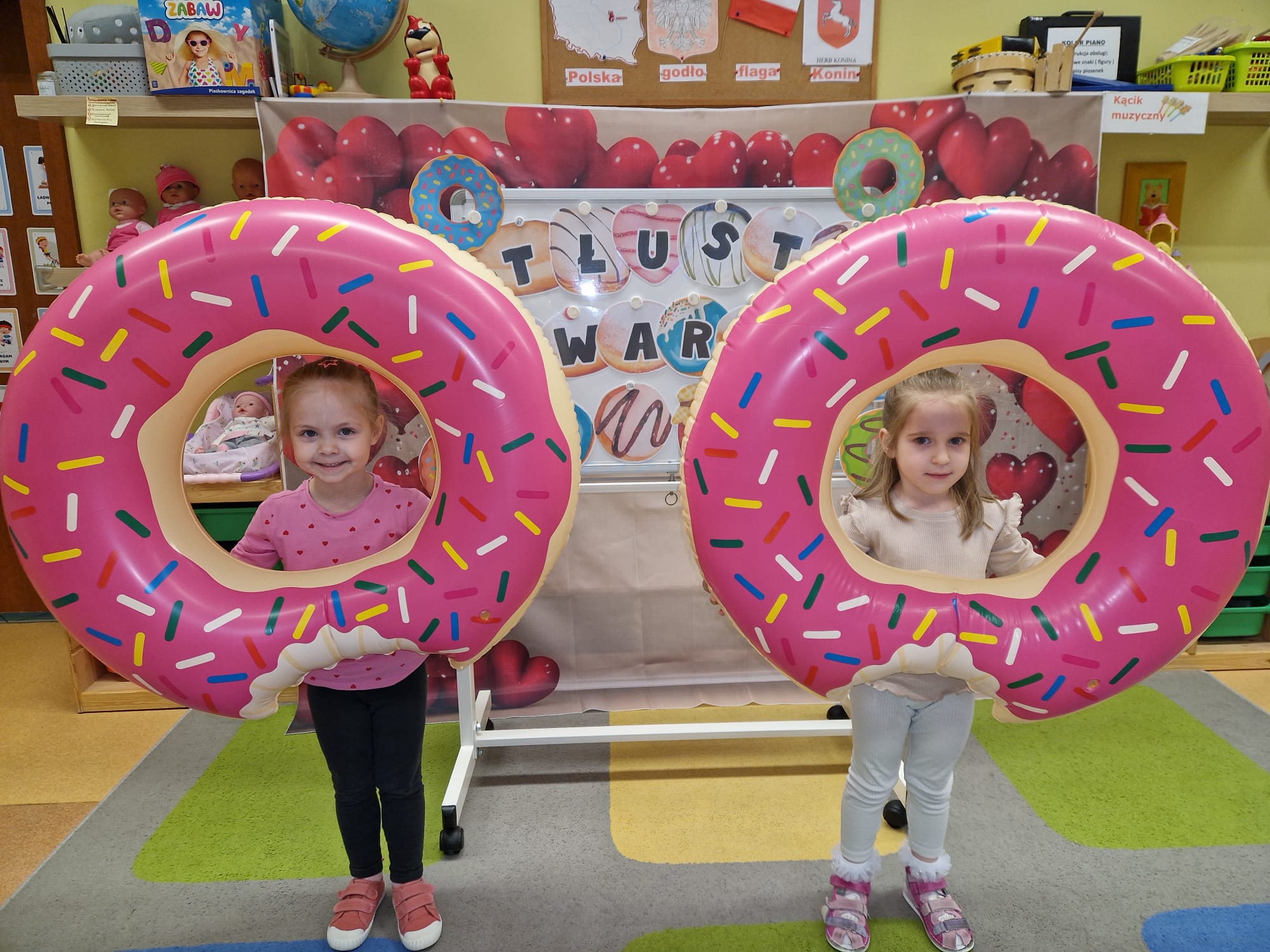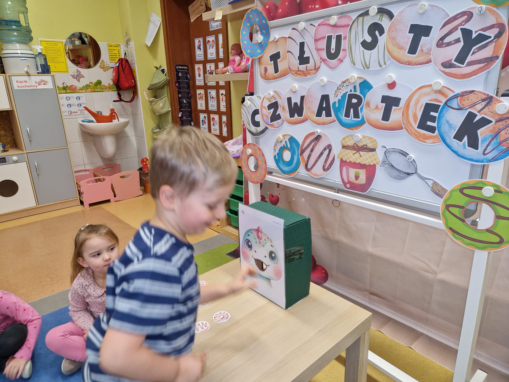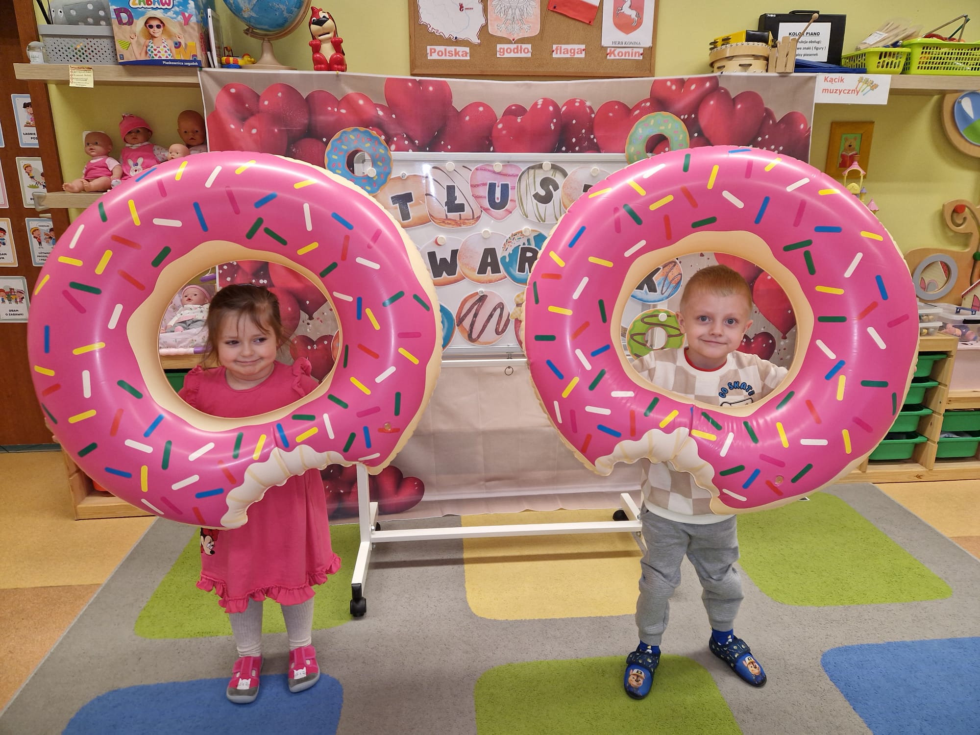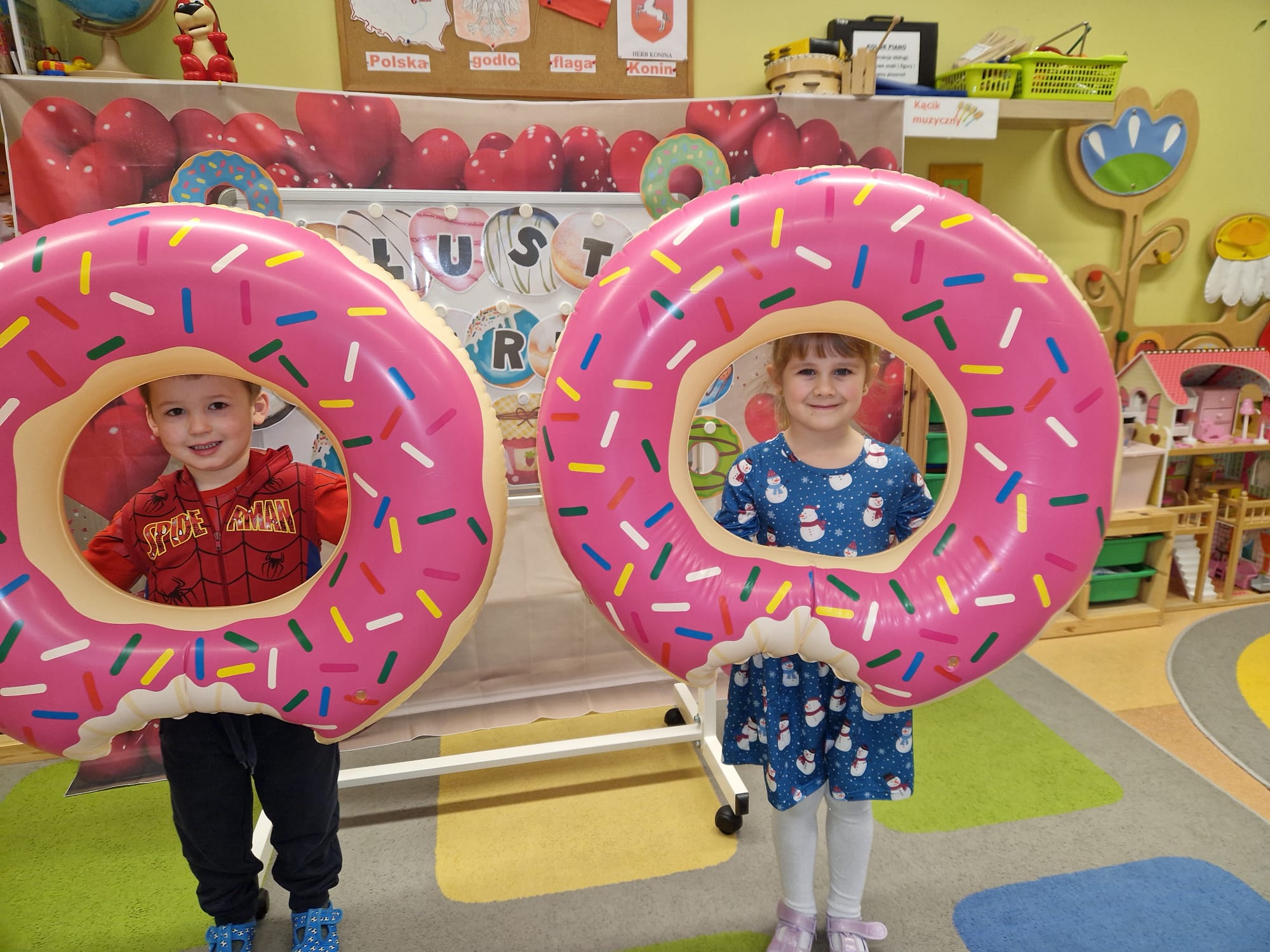 „ Pączki i pączusie swe brzuszki wypinają, przymilając się – o Tłustym Czwartku nam przypominają!” … taką oto rymowanką, 12. 02. 2026 średniaki z grupy X rozpoczęły celebrowania najsłodszego dnia w roku - Tłustego Czwartku. Tego dnia wszystkim naszym działaniom patronował KRÓL PĄCZEK w wielu swoich odmianach, a wszystko po to, aby poprzez zabawę przybliżyć dzieciom staropolską tradycję Tłustego Czwartku. Nie zabrakło zatem pączkowych zajęć takich jak; słodka zgaduj- zgadula, zabawa matematyczna, sprawnościowa i taneczna. Zwieńczeniem zaaranżowanych aktywności edukacyjnych była zabawy sensoryczna, podczas której dzieci z masy solnej wykonały swojego wymarzonego pączka … w polewie malinowej lub czekoladowej - do wyboru. Na koniec przedszkolaki ozdobiły swego pączka kolorową, cukierkową posypką, Pączusie wyglądały baaardzo realistycznie, aż szkoda, że były tylko dziełem plastycznym. A prawdziwego, słodziutkiego pączusia średniaki degustowały podczas podwieczorku.... To był naprawdę słodki dzień.