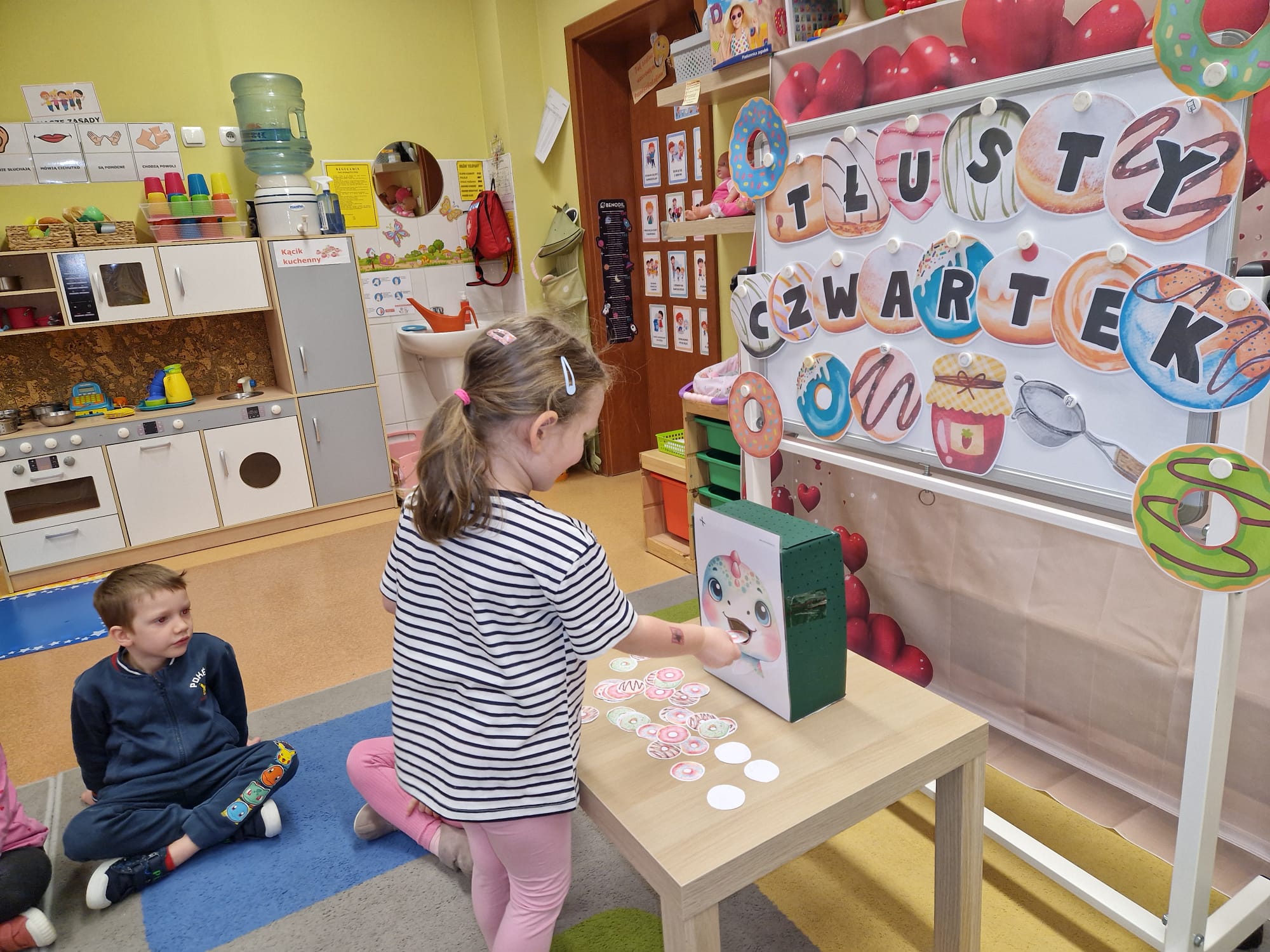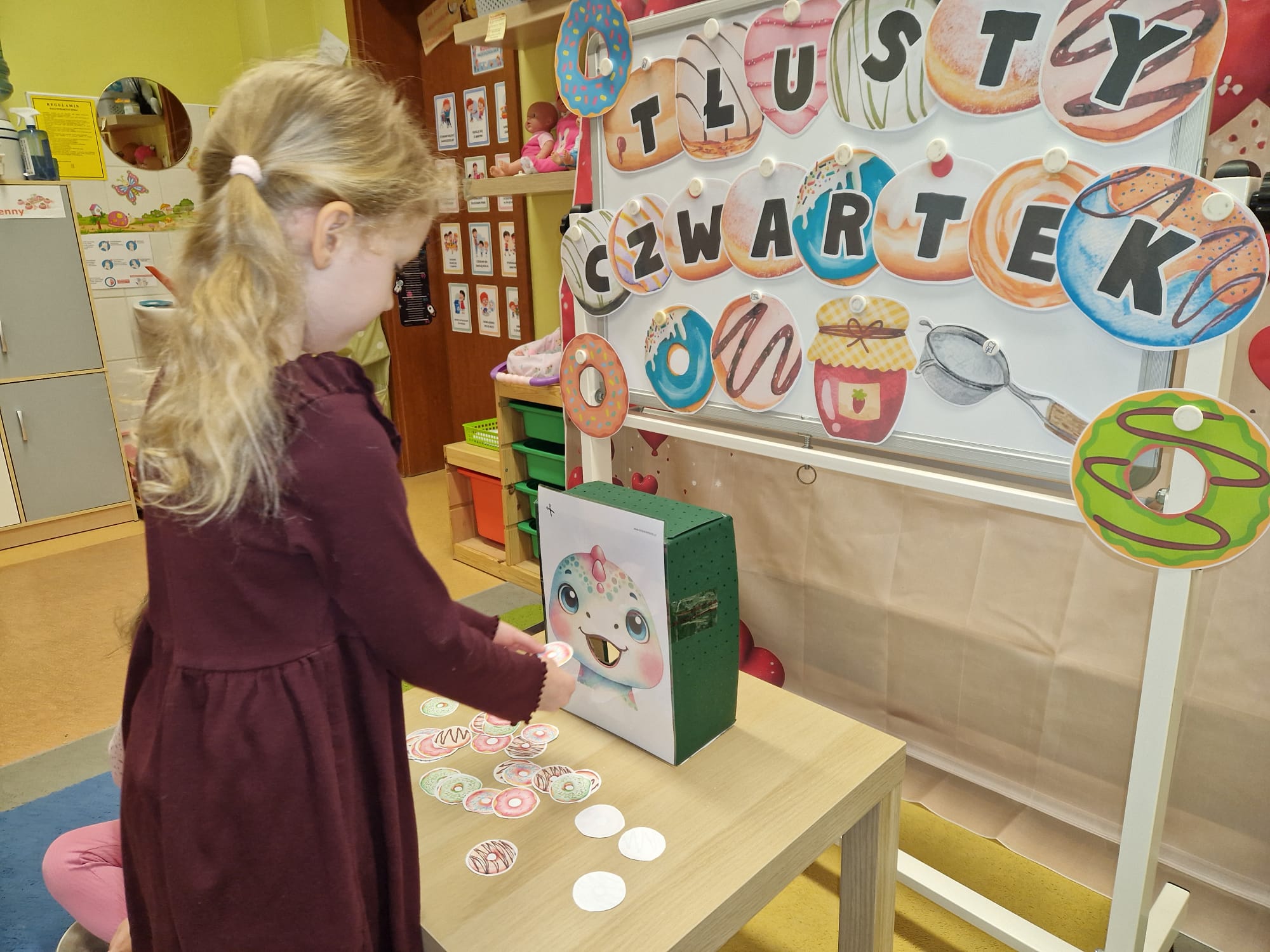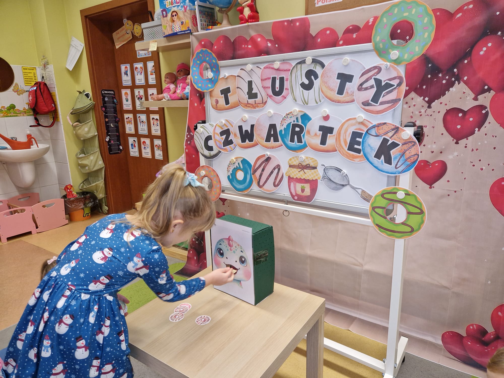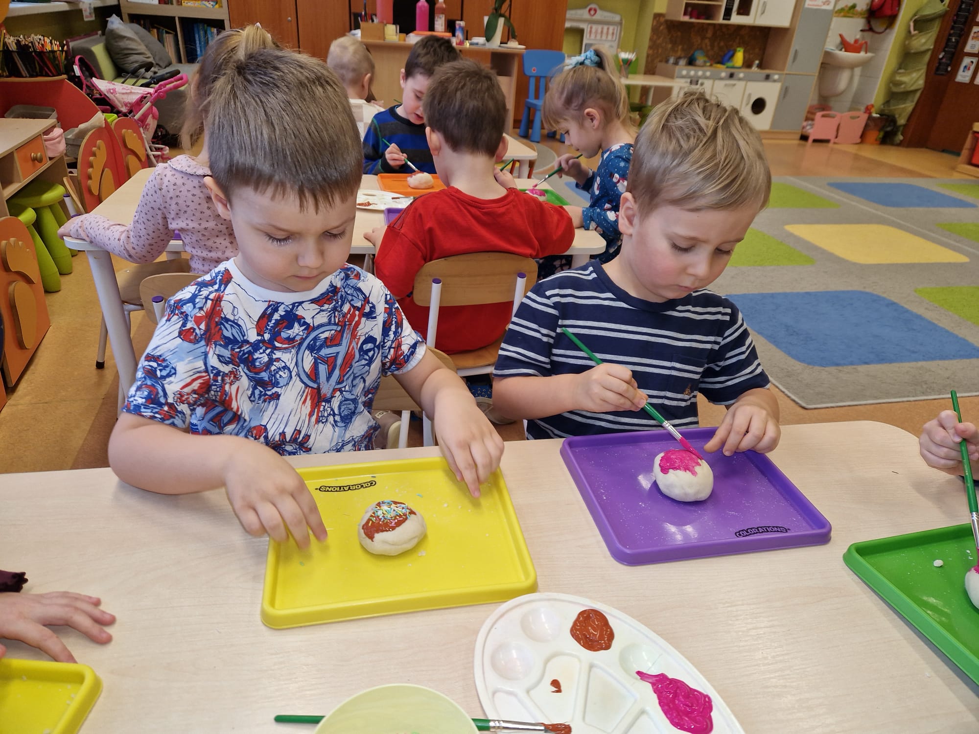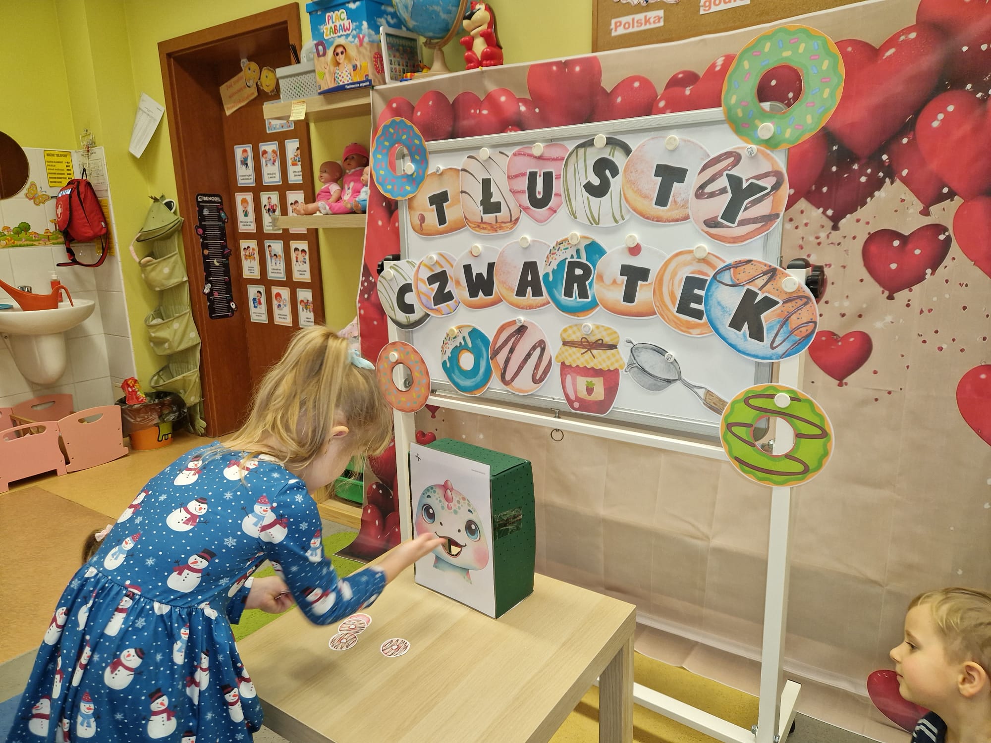 „ Pączki i pączusie swe brzuszki wypinają, przymilając się – o Tłustym Czwartku nam przypominają!” … taką oto rymowanką, 12. 02. 2026 średniaki z grupy X rozpoczęły celebrowania najsłodszego dnia w roku - Tłustego Czwartku. Tego dnia wszystkim naszym działaniom patronował KRÓL PĄCZEK w wielu swoich odmianach, a wszystko po to, aby poprzez zabawę przybliżyć dzieciom staropolską tradycję Tłustego Czwartku. Nie zabrakło zatem pączkowych zajęć takich jak; słodka zgaduj- zgadula, zabawa matematyczna, sprawnościowa i taneczna. Zwieńczeniem zaaranżowanych aktywności edukacyjnych była zabawy sensoryczna, podczas której dzieci z masy solnej wykonały swojego wymarzonego pączka … w polewie malinowej lub czekoladowej - do wyboru. Na koniec przedszkolaki ozdobiły swego pączka kolorową, cukierkową posypką, Pączusie wyglądały baaardzo realistycznie, aż szkoda, że były tylko dziełem plastycznym. A prawdziwego, słodziutkiego pączusia średniaki degustowały podczas podwieczorku.... To był naprawdę słodki dzień.