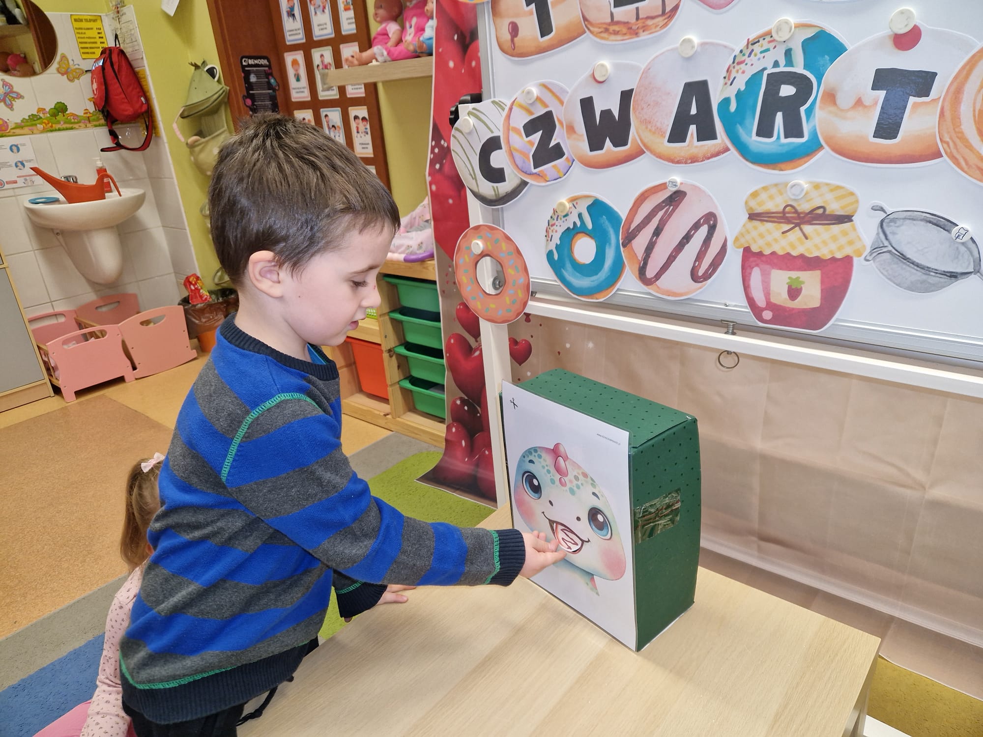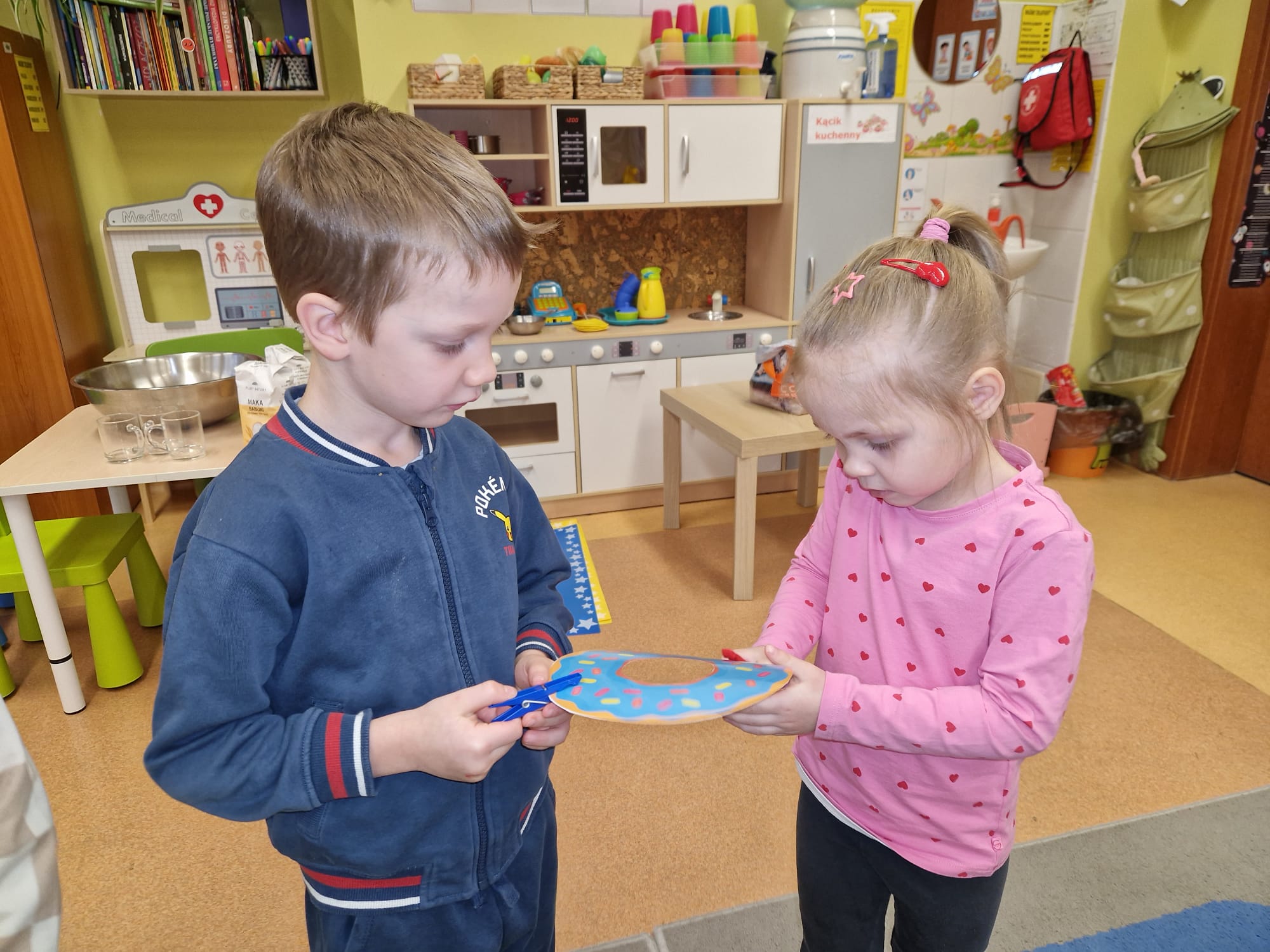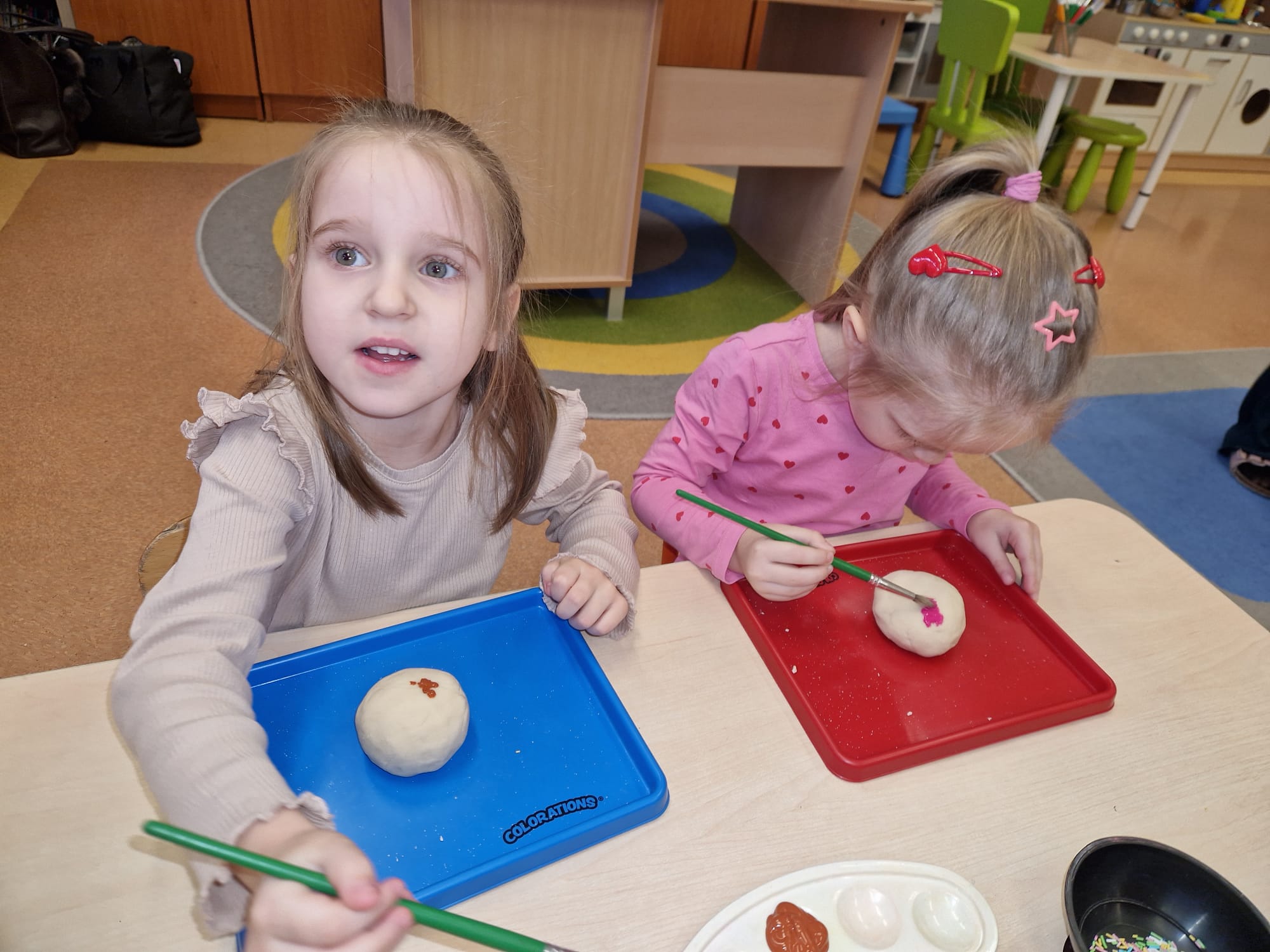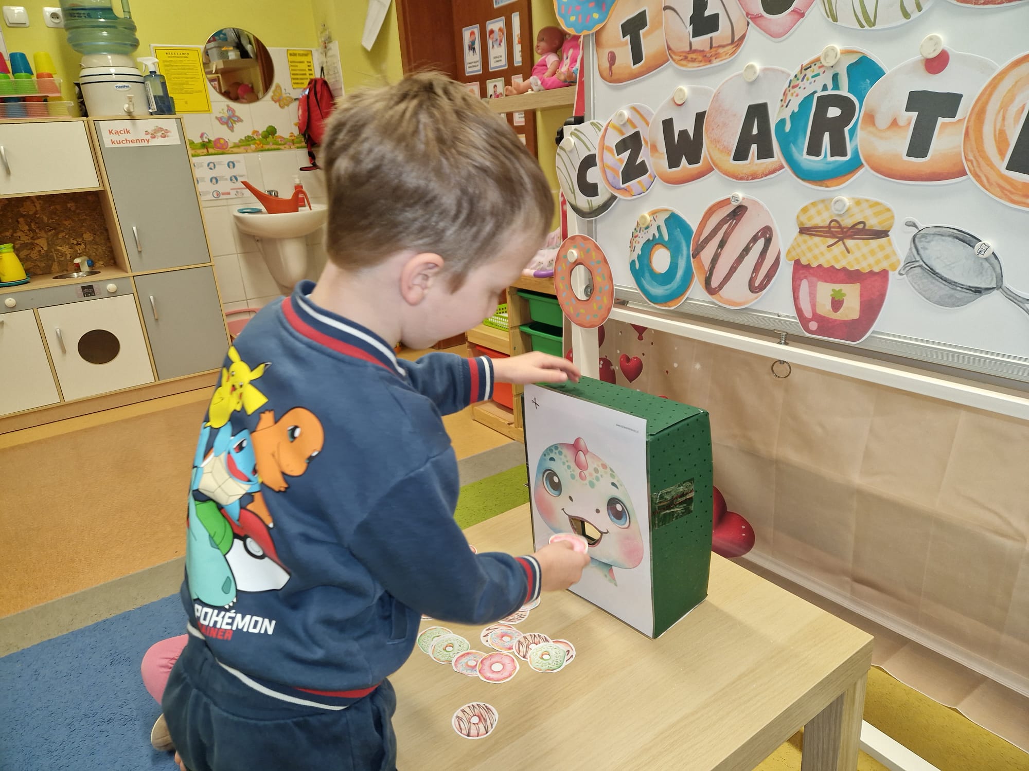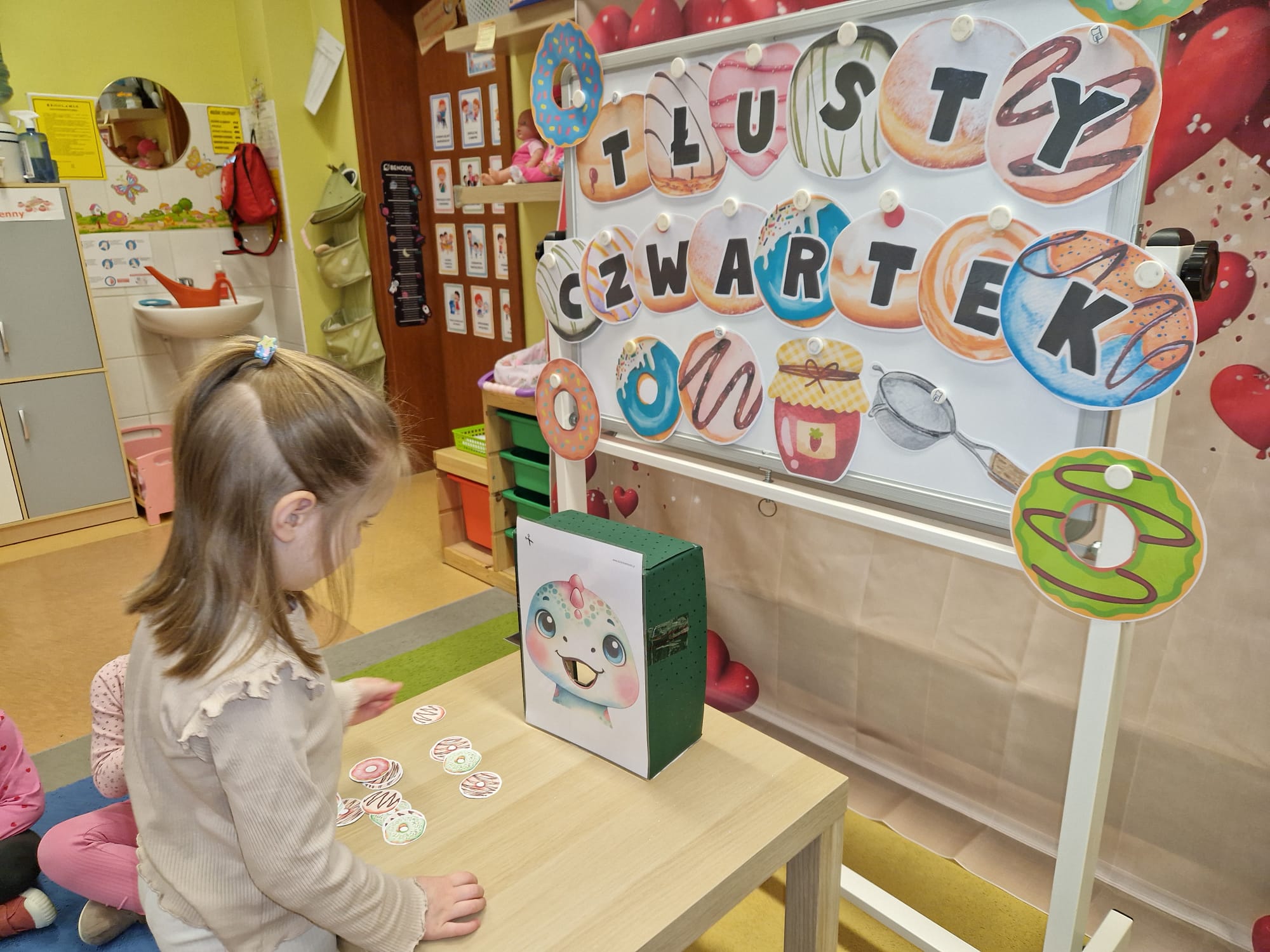 „ Pączki i pączusie swe brzuszki wypinają, przymilając się – o Tłustym Czwartku nam przypominają!” … taką oto rymowanką, 12. 02. 2026 średniaki z grupy X rozpoczęły celebrowania najsłodszego dnia w roku - Tłustego Czwartku. Tego dnia wszystkim naszym działaniom patronował KRÓL PĄCZEK w wielu swoich odmianach, a wszystko po to, aby poprzez zabawę przybliżyć dzieciom staropolską tradycję Tłustego Czwartku. Nie zabrakło zatem pączkowych zajęć takich jak; słodka zgaduj- zgadula, zabawa matematyczna, sprawnościowa i taneczna. Zwieńczeniem zaaranżowanych aktywności edukacyjnych była zabawy sensoryczna, podczas której dzieci z masy solnej wykonały swojego wymarzonego pączka … w polewie malinowej lub czekoladowej - do wyboru. Na koniec przedszkolaki ozdobiły swego pączka kolorową, cukierkową posypką, Pączusie wyglądały baaardzo realistycznie, aż szkoda, że były tylko dziełem plastycznym. A prawdziwego, słodziutkiego pączusia średniaki degustowały podczas podwieczorku.... To był naprawdę słodki dzień.