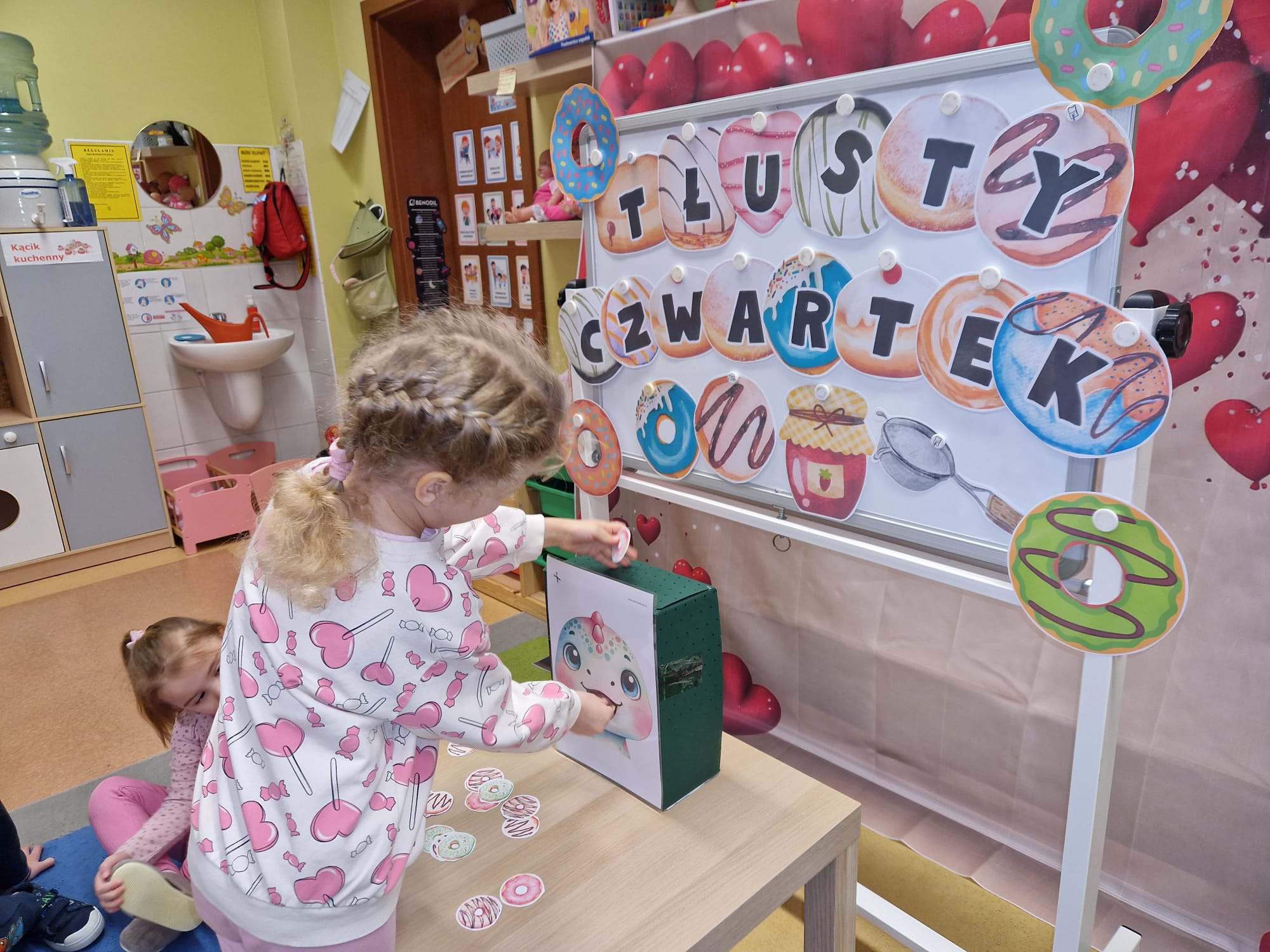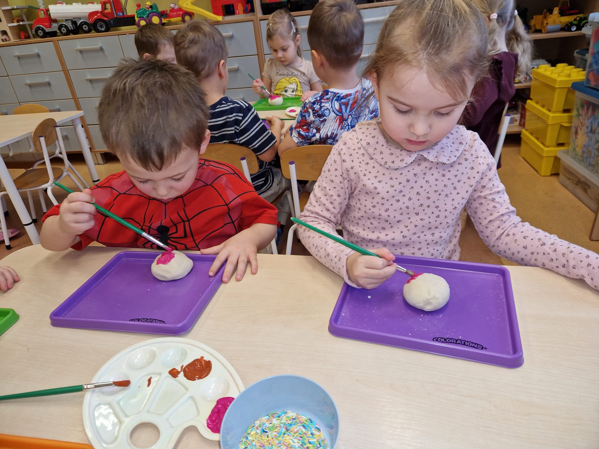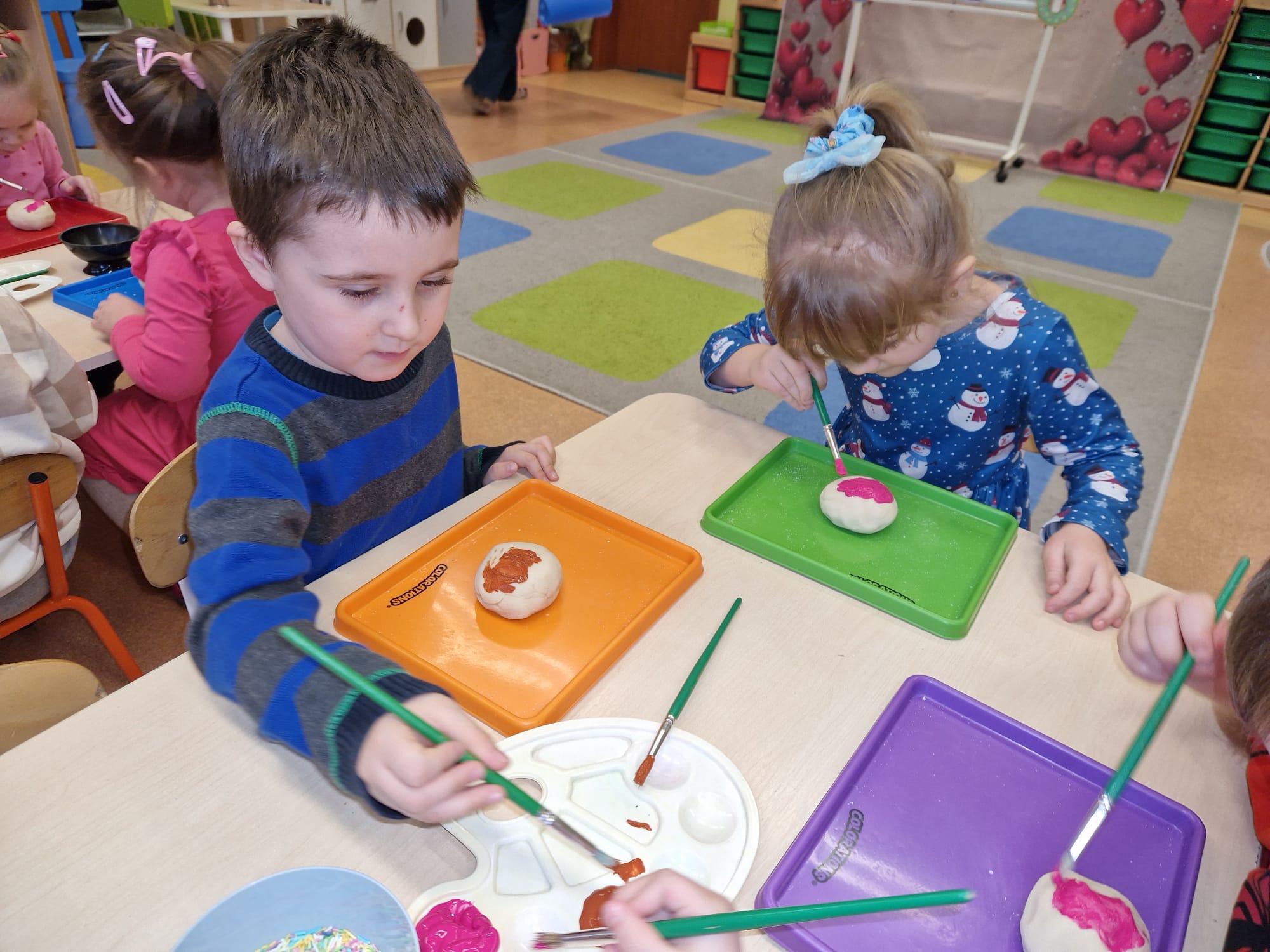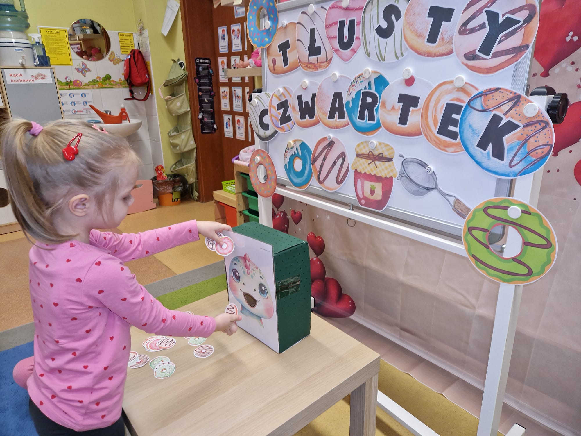 „ Pączki i pączusie swe brzuszki wypinają, przymilając się – o Tłustym Czwartku nam przypominają!” … taką oto rymowanką, 12. 02. 2026 średniaki z grupy X rozpoczęły celebrowania najsłodszego dnia w roku - Tłustego Czwartku. Tego dnia wszystkim naszym działaniom patronował KRÓL PĄCZEK w wielu swoich odmianach, a wszystko po to, aby poprzez zabawę przybliżyć dzieciom staropolską tradycję Tłustego Czwartku. Nie zabrakło zatem pączkowych zajęć takich jak; słodka zgaduj- zgadula, zabawa matematyczna, sprawnościowa i taneczna. Zwieńczeniem zaaranżowanych aktywności edukacyjnych była zabawy sensoryczna, podczas której dzieci z masy solnej wykonały swojego wymarzonego pączka … w polewie malinowej lub czekoladowej - do wyboru. Na koniec przedszkolaki ozdobiły swego pączka kolorową, cukierkową posypką, Pączusie wyglądały baaardzo realistycznie, aż szkoda, że były tylko dziełem plastycznym. A prawdziwego, słodziutkiego pączusia średniaki degustowały podczas podwieczorku.... To był naprawdę słodki dzień.