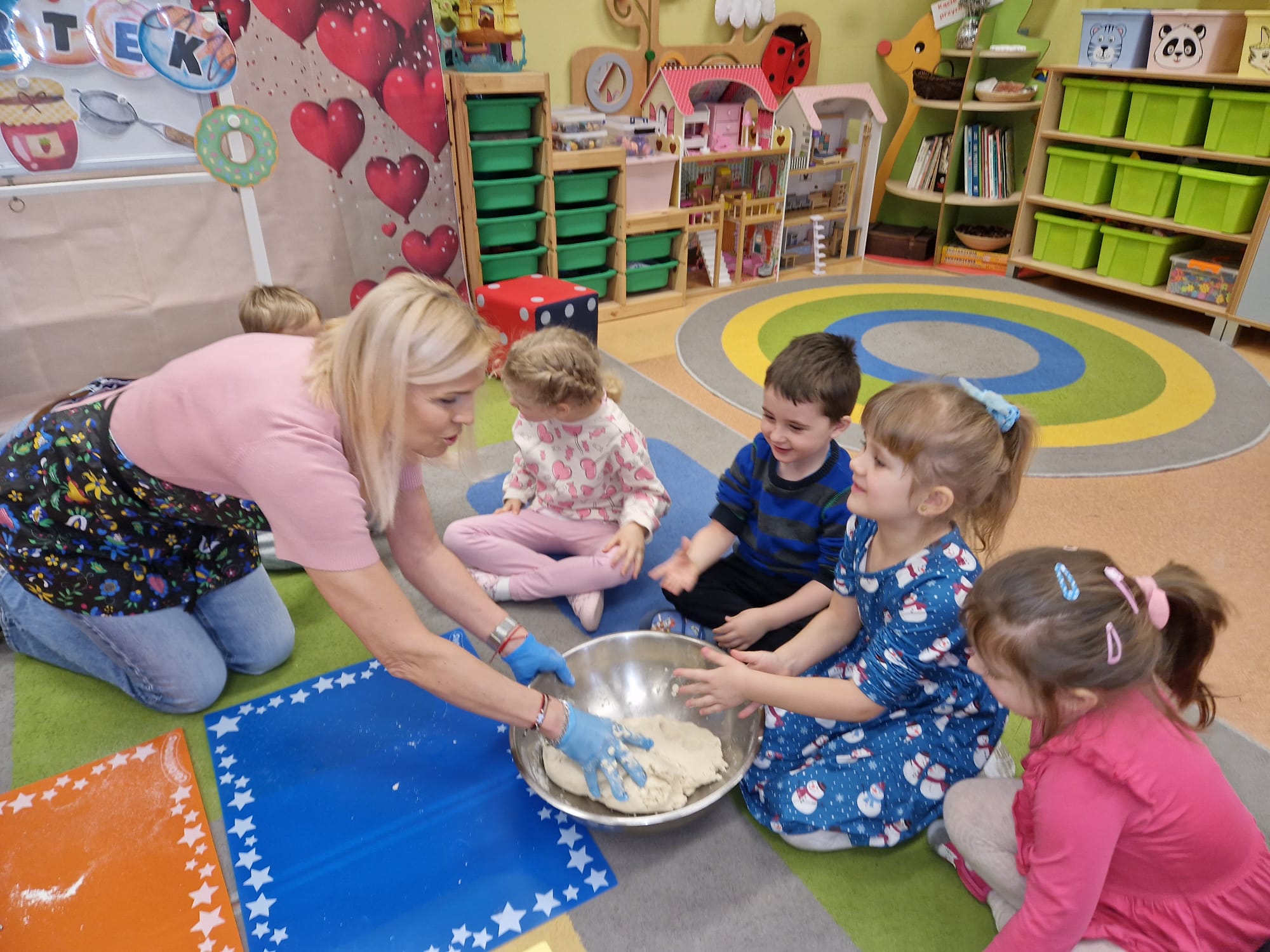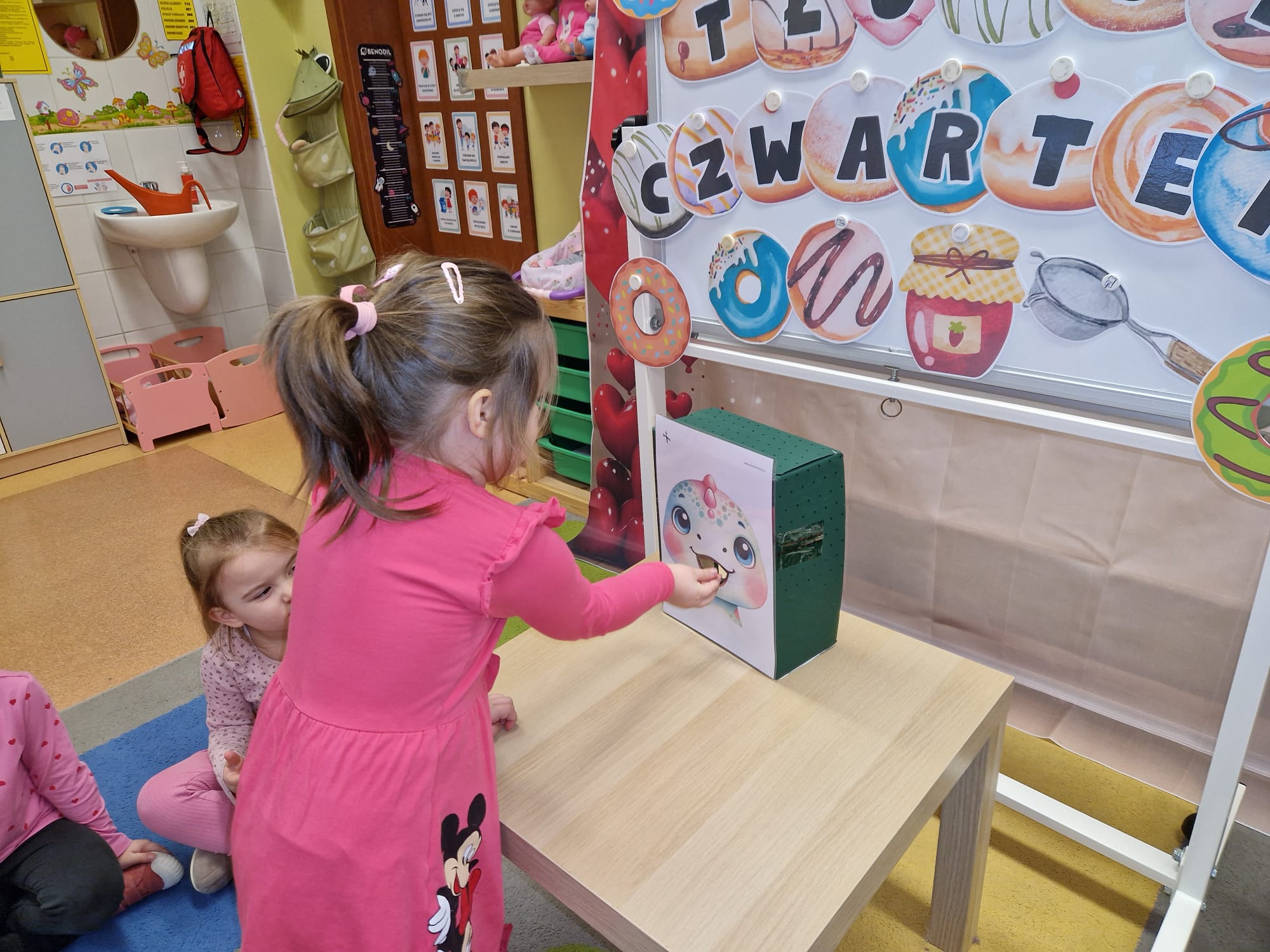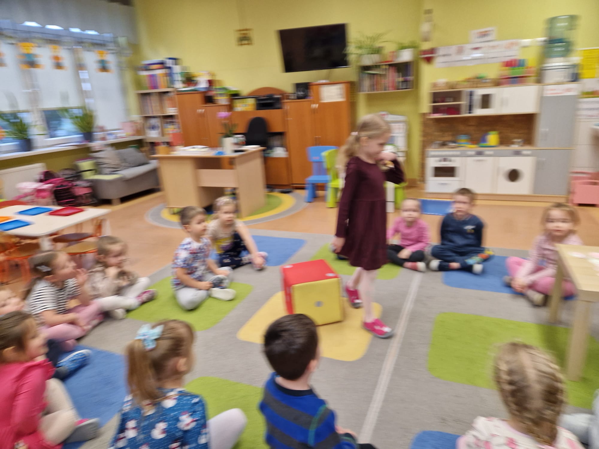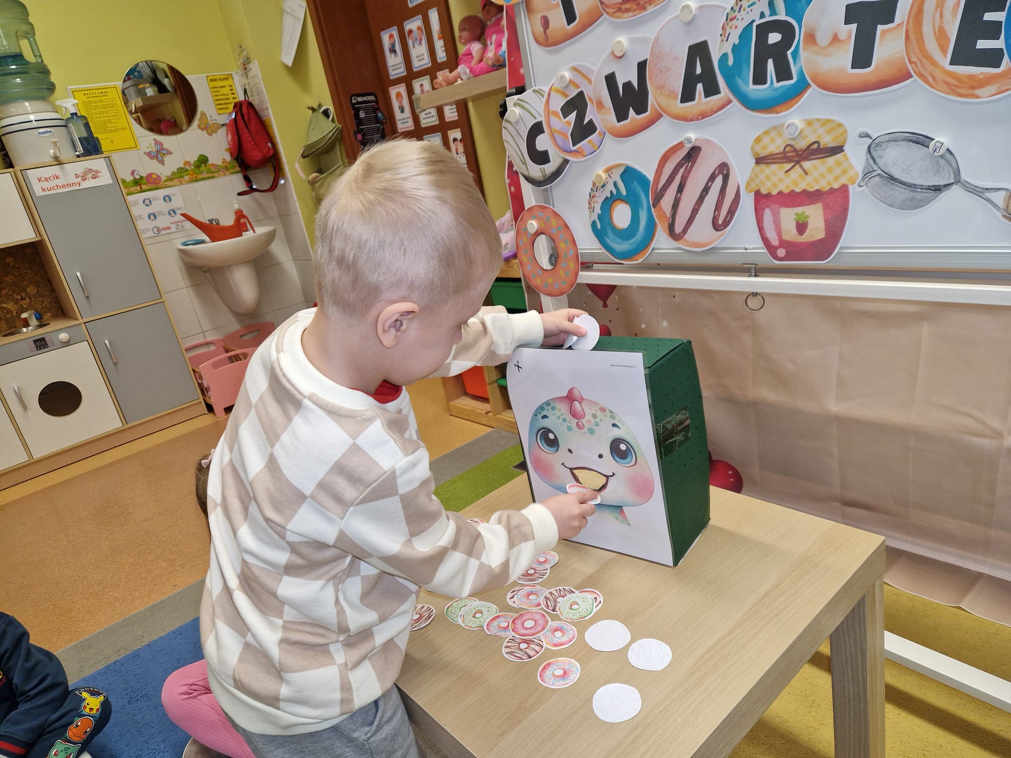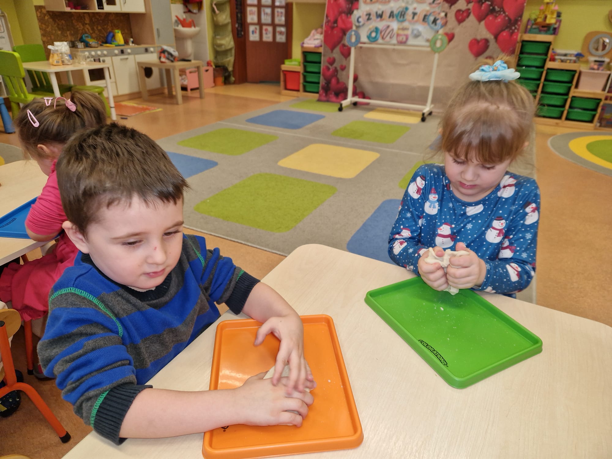 „ Pączki i pączusie swe brzuszki wypinają, przymilając się – o Tłustym Czwartku nam przypominają!” … taką oto rymowanką, 12. 02. 2026 średniaki z grupy X rozpoczęły celebrowania najsłodszego dnia w roku - Tłustego Czwartku. Tego dnia wszystkim naszym działaniom patronował KRÓL PĄCZEK w wielu swoich odmianach, a wszystko po to, aby poprzez zabawę przybliżyć dzieciom staropolską tradycję Tłustego Czwartku. Nie zabrakło zatem pączkowych zajęć takich jak; słodka zgaduj- zgadula, zabawa matematyczna, sprawnościowa i taneczna. Zwieńczeniem zaaranżowanych aktywności edukacyjnych była zabawy sensoryczna, podczas której dzieci z masy solnej wykonały swojego wymarzonego pączka … w polewie malinowej lub czekoladowej - do wyboru. Na koniec przedszkolaki ozdobiły swego pączka kolorową, cukierkową posypką, Pączusie wyglądały baaardzo realistycznie, aż szkoda, że były tylko dziełem plastycznym. A prawdziwego, słodziutkiego pączusia średniaki degustowały podczas podwieczorku.... To był naprawdę słodki dzień.