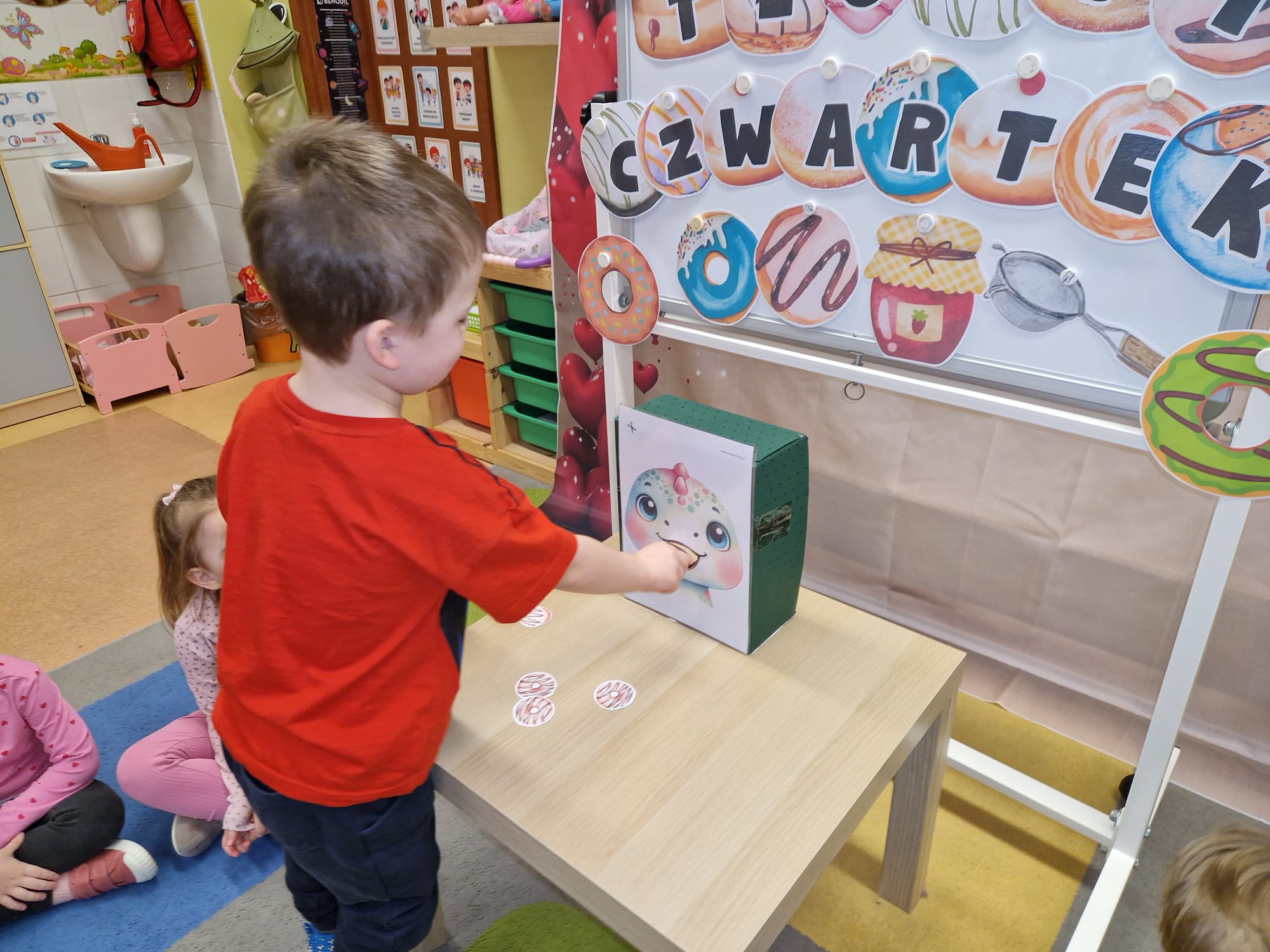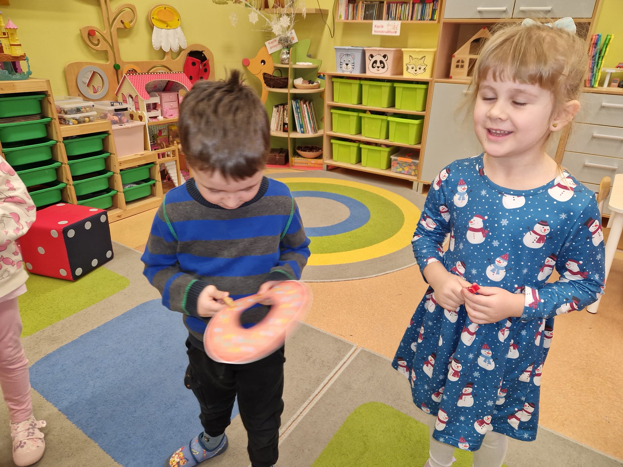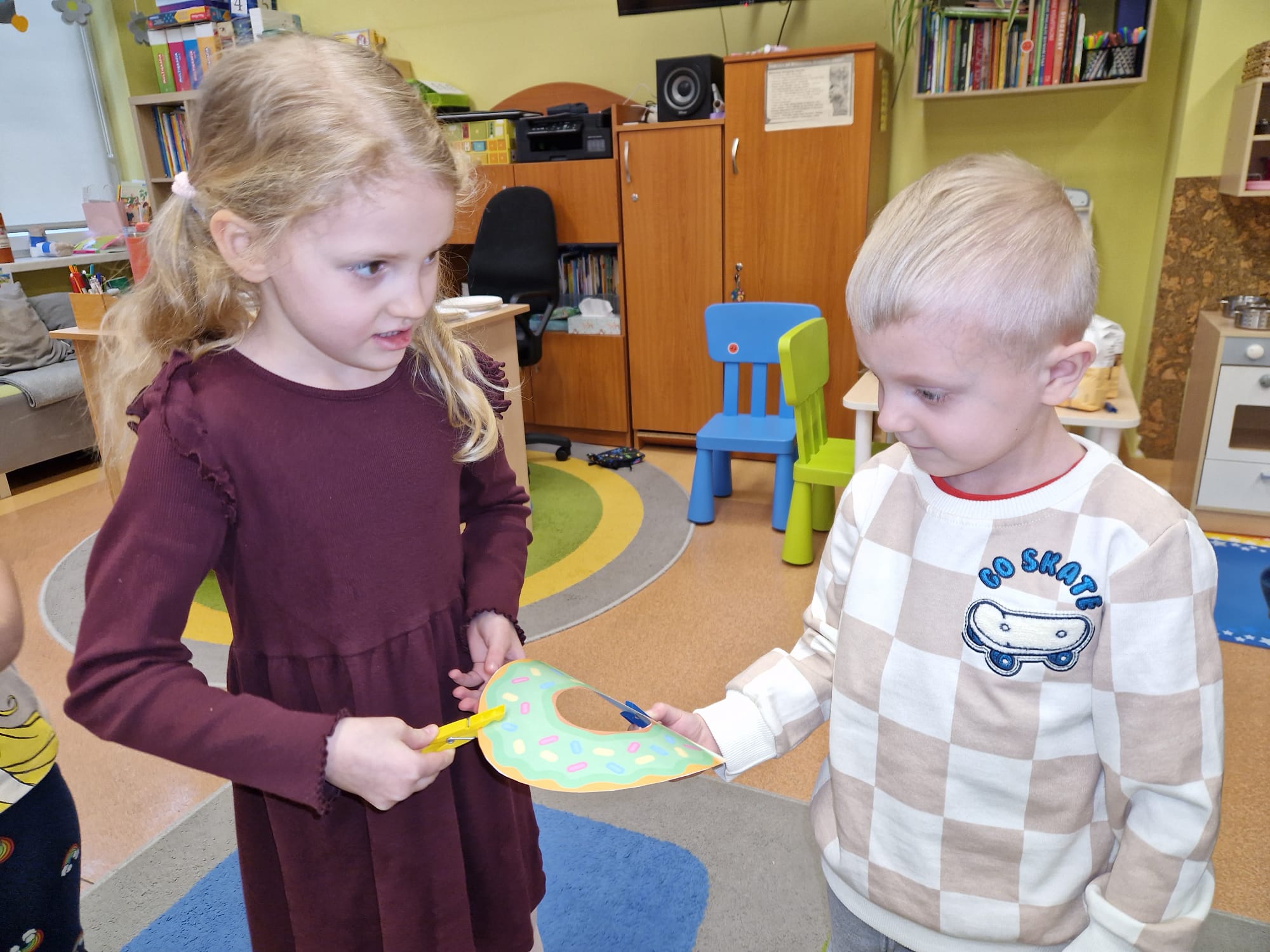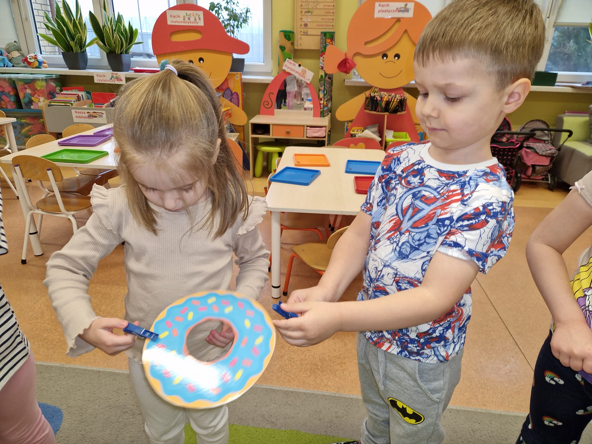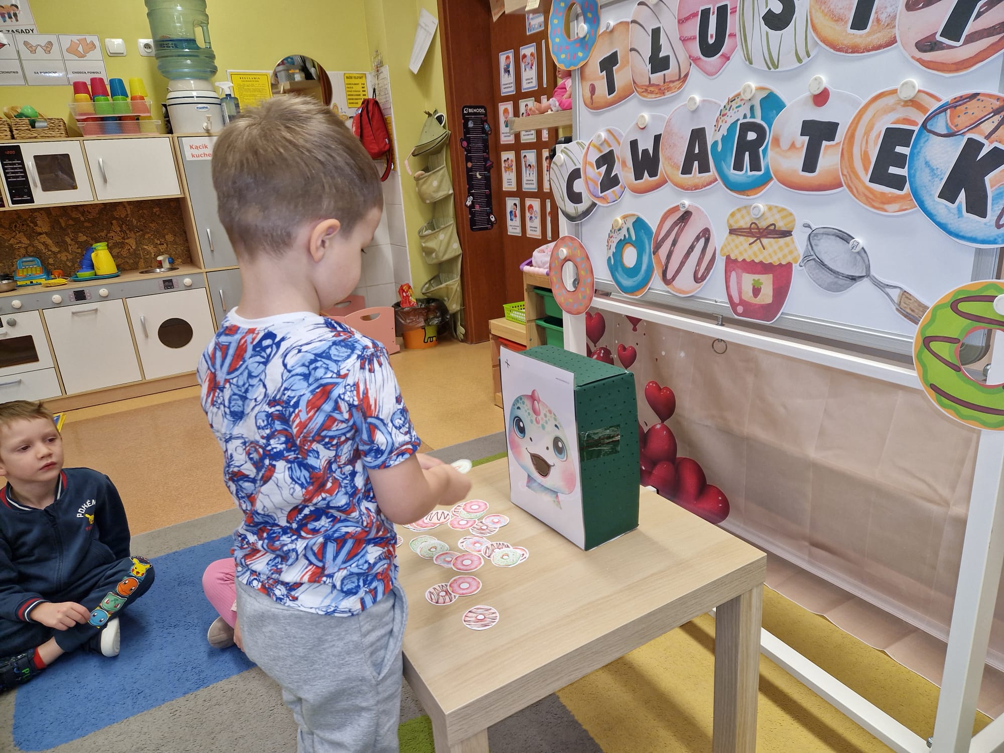„ Pączki i pączusie swe brzuszki wypinają, przymilając się – o Tłustym Czwartku nam przypominają!” … taką oto rymowanką, 12. 02. 2026 średniaki z grupy X rozpoczęły celebrowania najsłodszego dnia w roku - Tłustego Czwartku. Tego dnia wszystkim naszym działaniom patronował KRÓL PĄCZEK w wielu swoich odmianach, a wszystko po to, aby poprzez zabawę przybliżyć dzieciom staropolską tradycję Tłustego Czwartku. Nie zabrakło zatem pączkowych zajęć takich jak; słodka zgaduj- zgadula, zabawa matematyczna, sprawnościowa i taneczna. Zwieńczeniem zaaranżowanych aktywności edukacyjnych była zabawy sensoryczna, podczas której dzieci z masy solnej wykonały swojego wymarzonego pączka … w polewie malinowej lub czekoladowej - do wyboru. Na koniec przedszkolaki ozdobiły swego pączka kolorową, cukierkową posypką, Pączusie wyglądały baaardzo realistycznie, aż szkoda, że były tylko dziełem plastycznym. A prawdziwego, słodziutkiego pączusia średniaki degustowały podczas podwieczorku.... To był naprawdę słodki dzień.