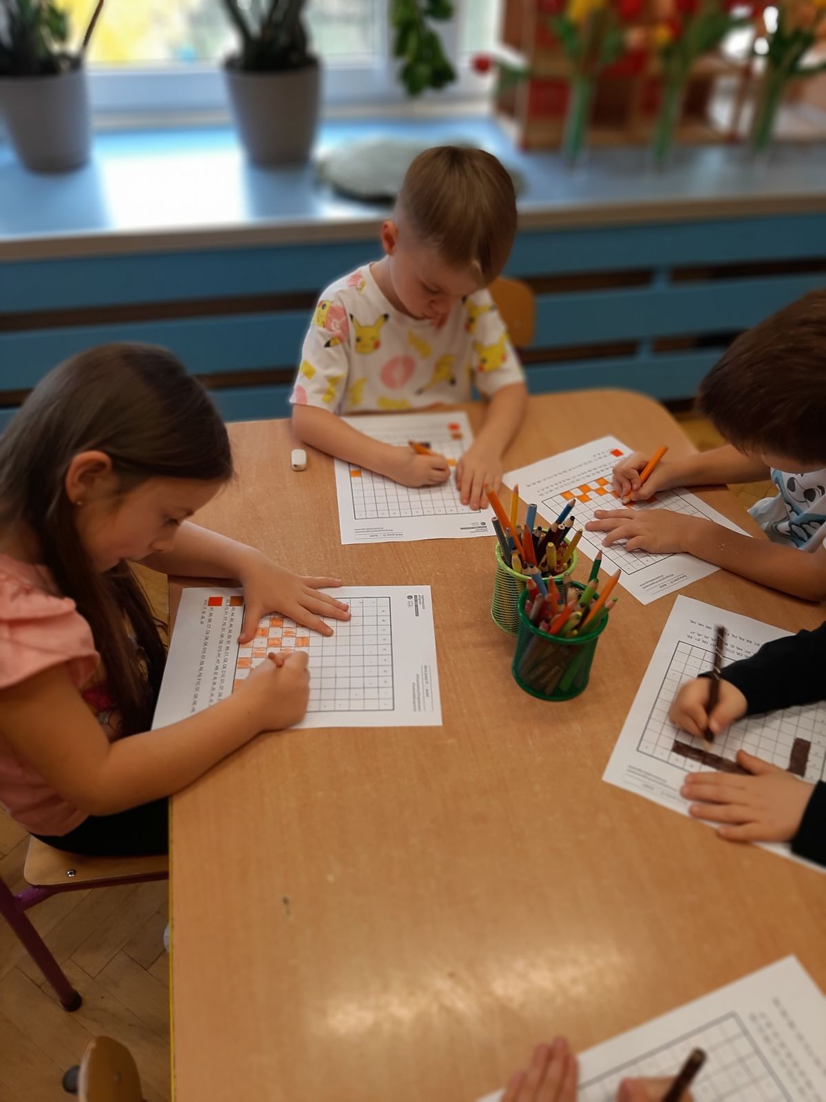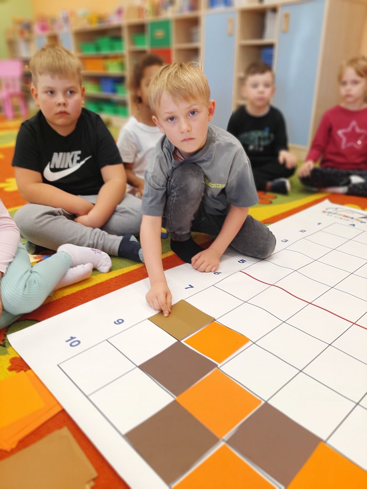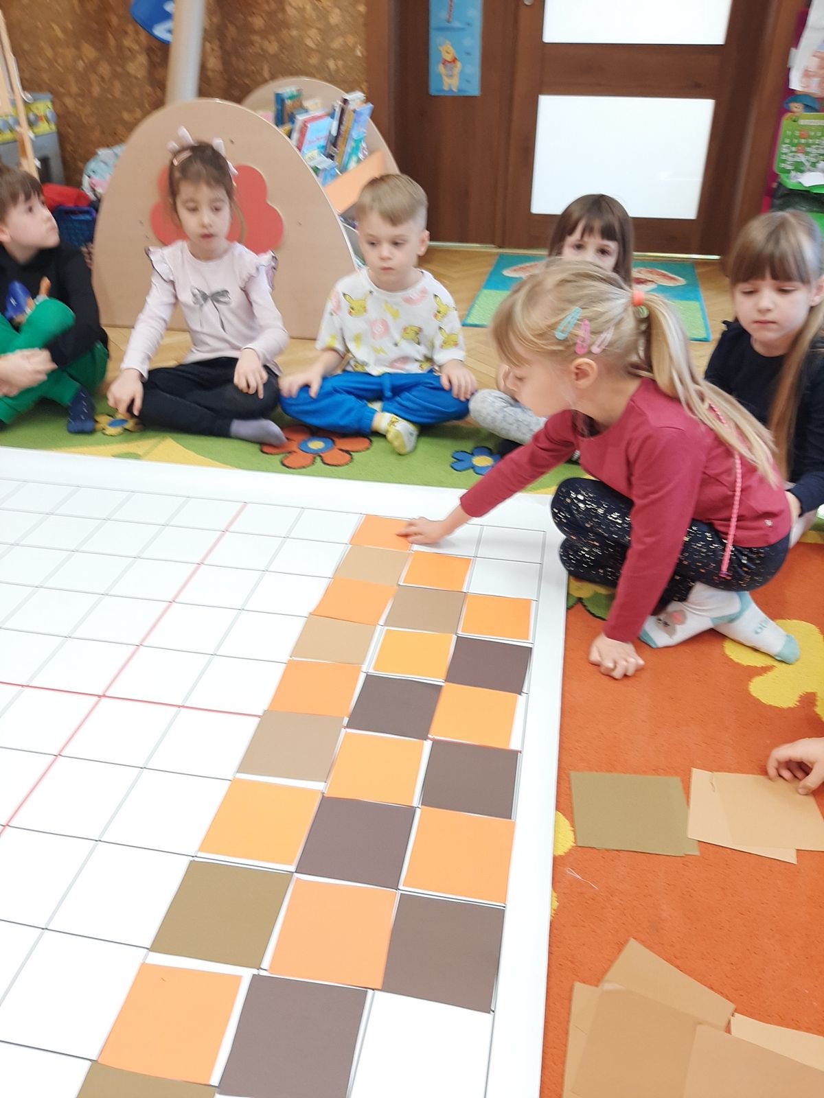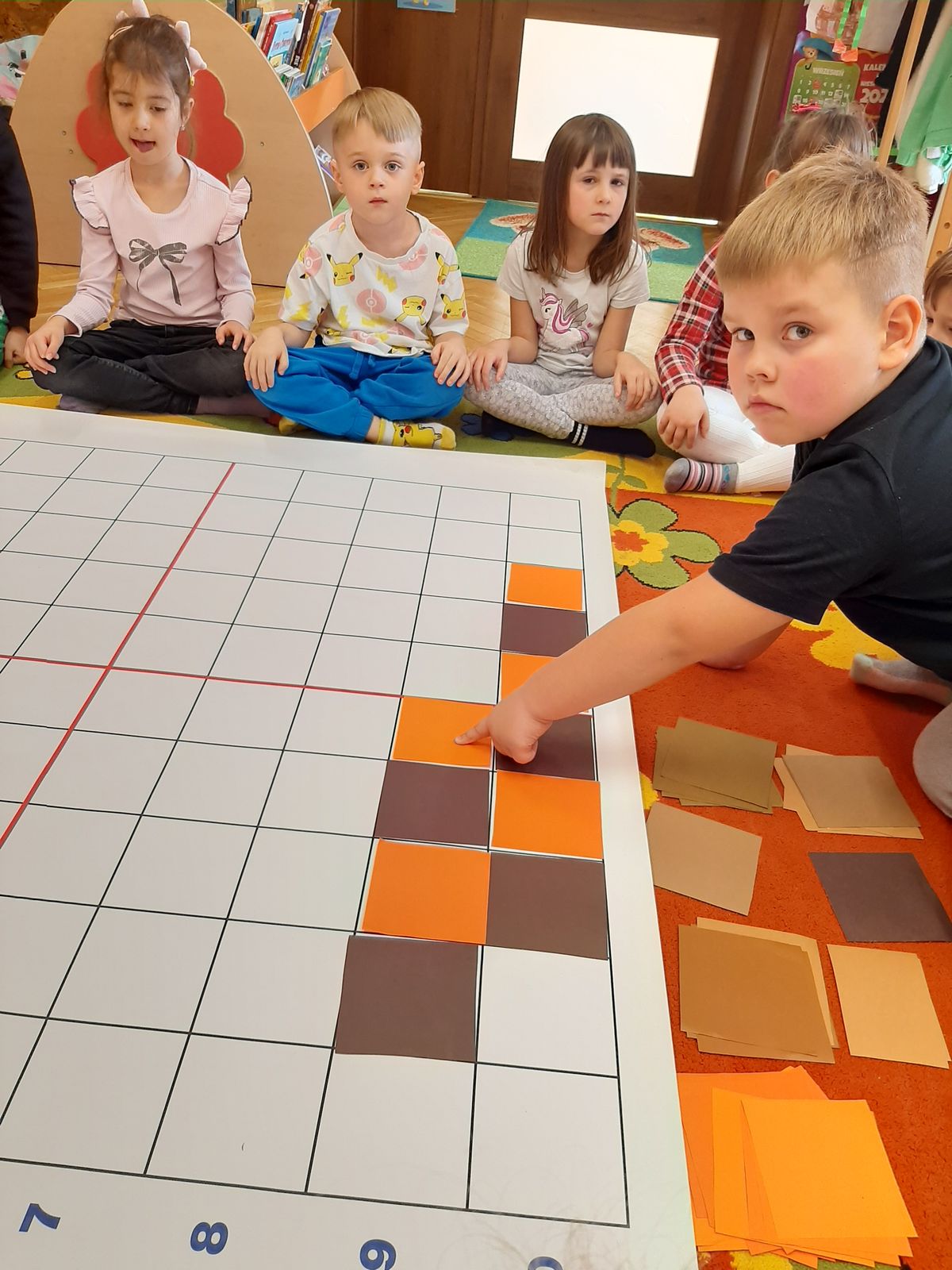 W tym tygodniu dzieci z grupy V uczestniczyły w europejskiej inicjatywie promującej programowanie „Code Week”. Tematem przewodnim zajęć z kodowania była Jesień. Dzieci bawiły się w kodowanie poprzez odczytywanie współrzędnych poszczególnych pól i układanie kartoników w odpowiednich kolorach. Efektem końcowym było ułożenie kosza na jesienne dary. Zabawy z wykorzystaniem maty, kolorowych obrazków , świetnie sprawdzają się przy wszelkiego rodzaju zabawach rozwijających logiczne myślenie.