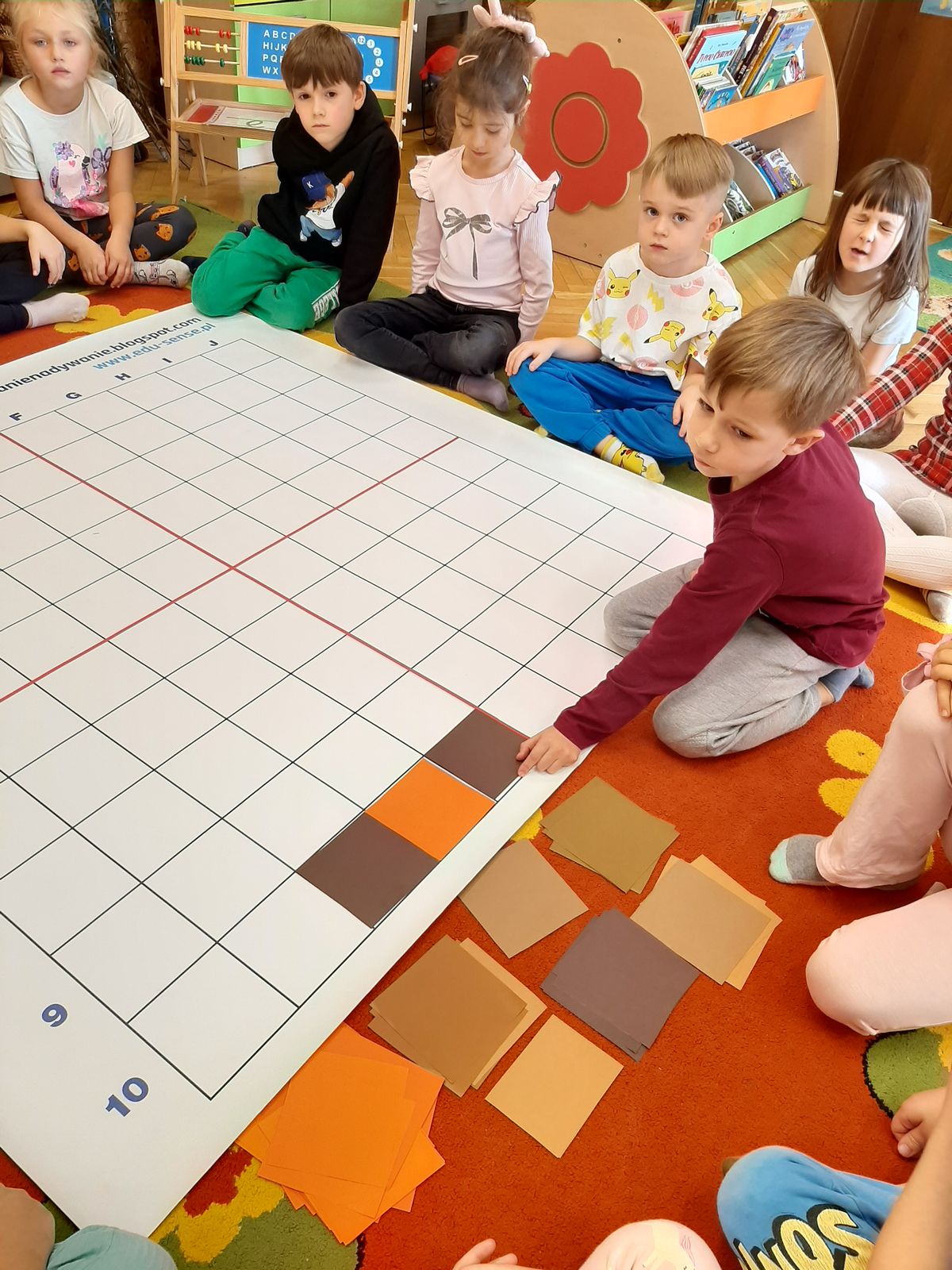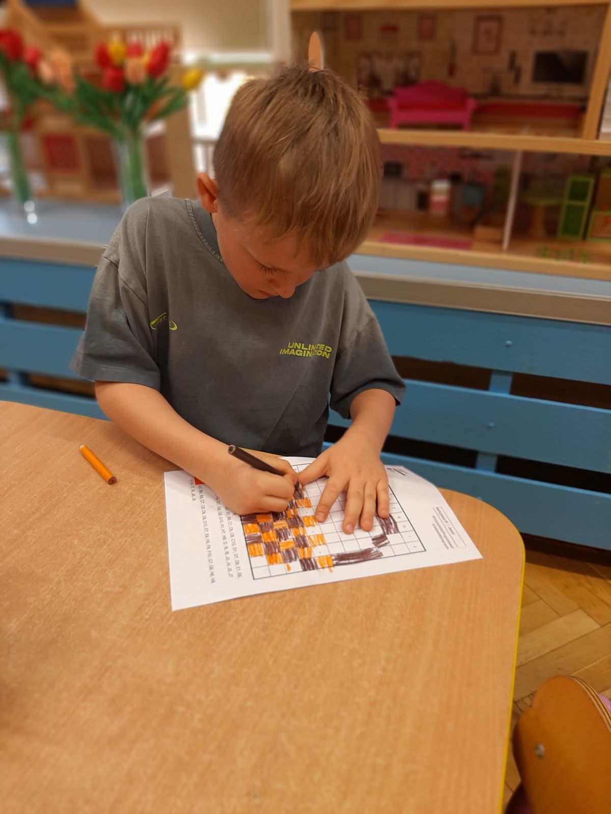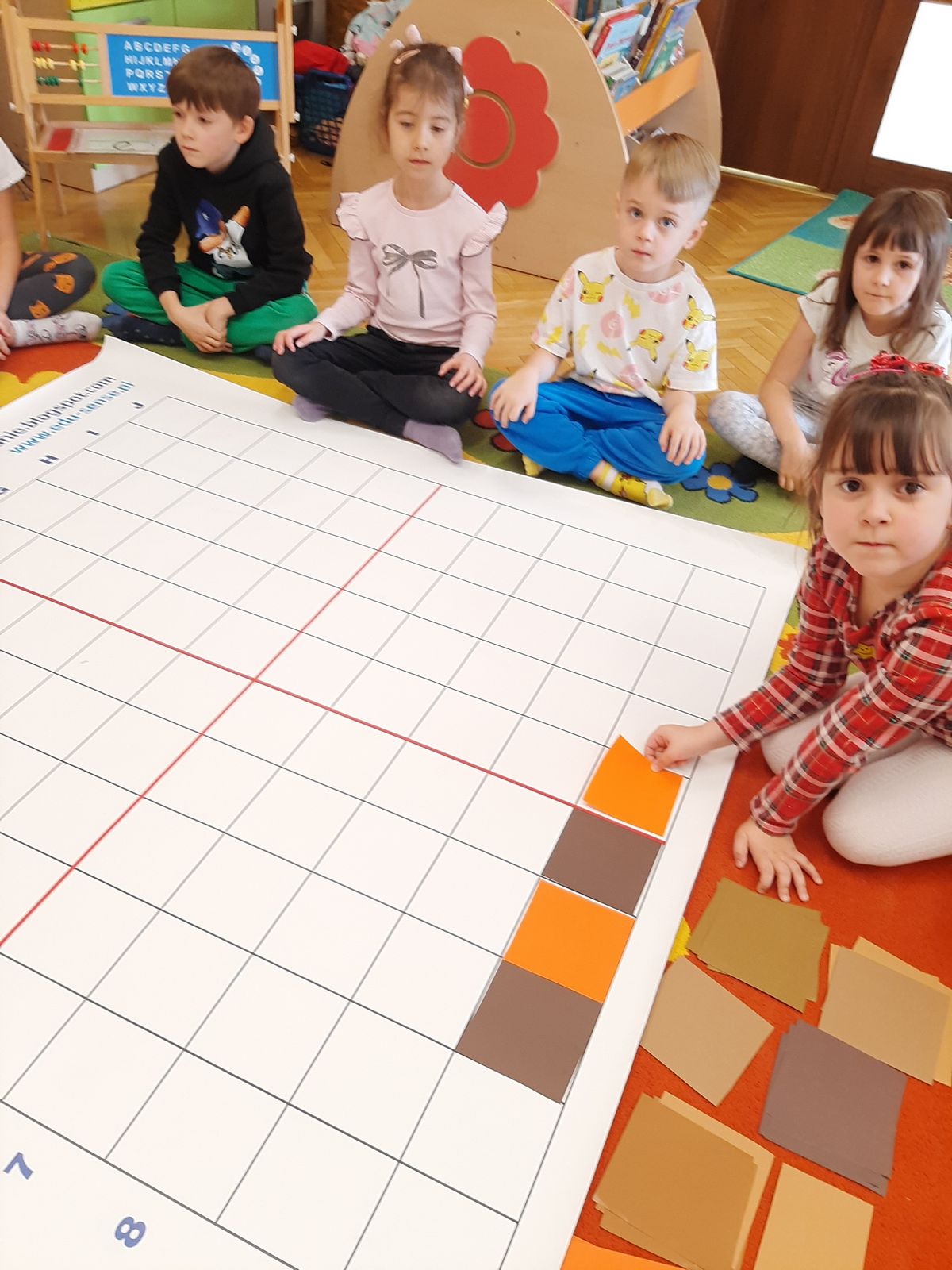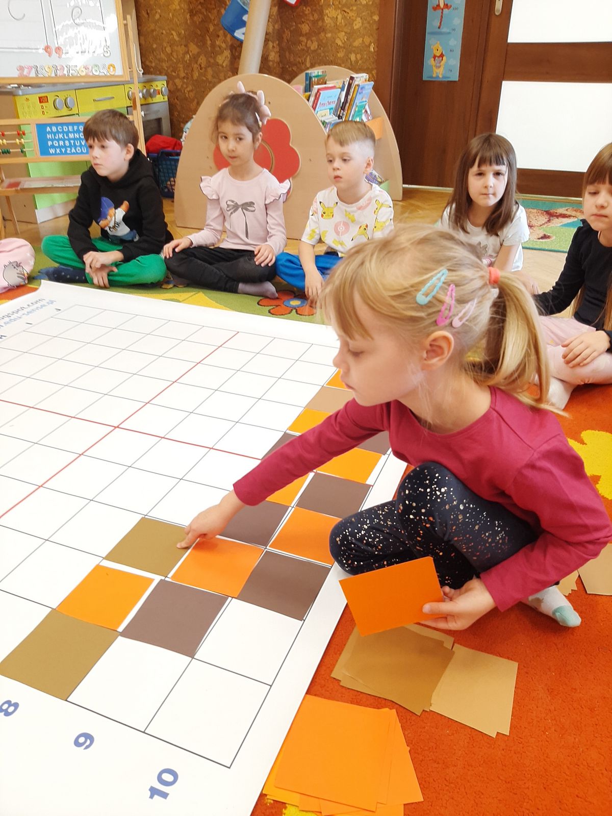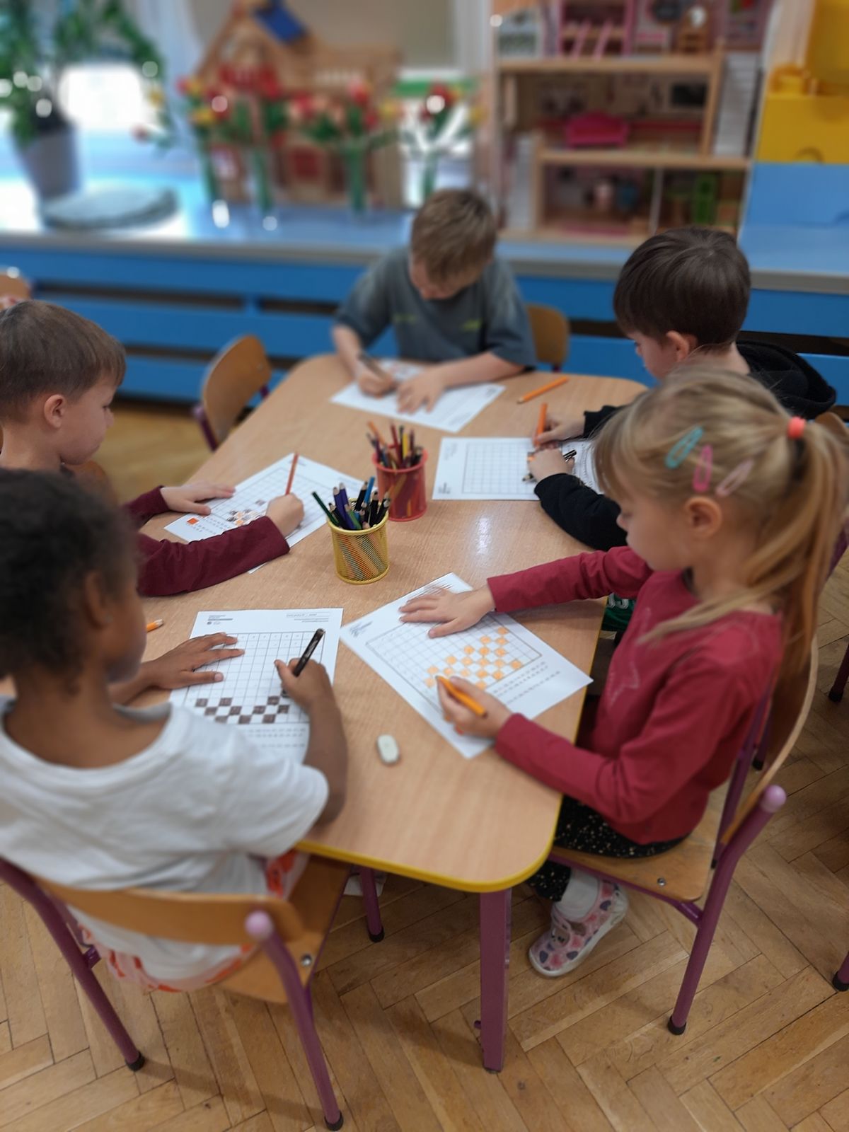 W tym tygodniu dzieci z grupy V uczestniczyły w europejskiej inicjatywie promującej programowanie „Code Week”. Tematem przewodnim zajęć z kodowania była Jesień. Dzieci bawiły się w kodowanie poprzez odczytywanie współrzędnych poszczególnych pól i układanie kartoników w odpowiednich kolorach. Efektem końcowym było ułożenie kosza na jesienne dary. Zabawy z wykorzystaniem maty, kolorowych obrazków , świetnie sprawdzają się przy wszelkiego rodzaju zabawach rozwijających logiczne myślenie.