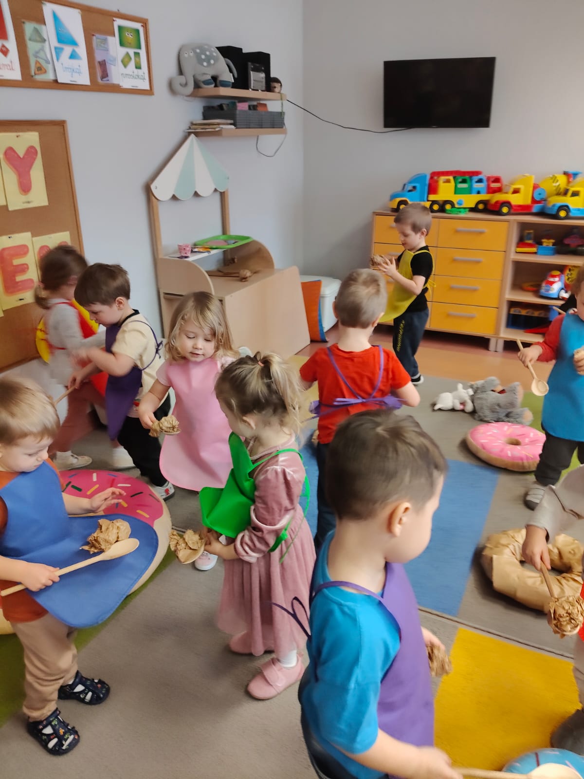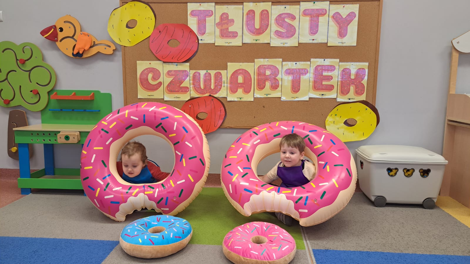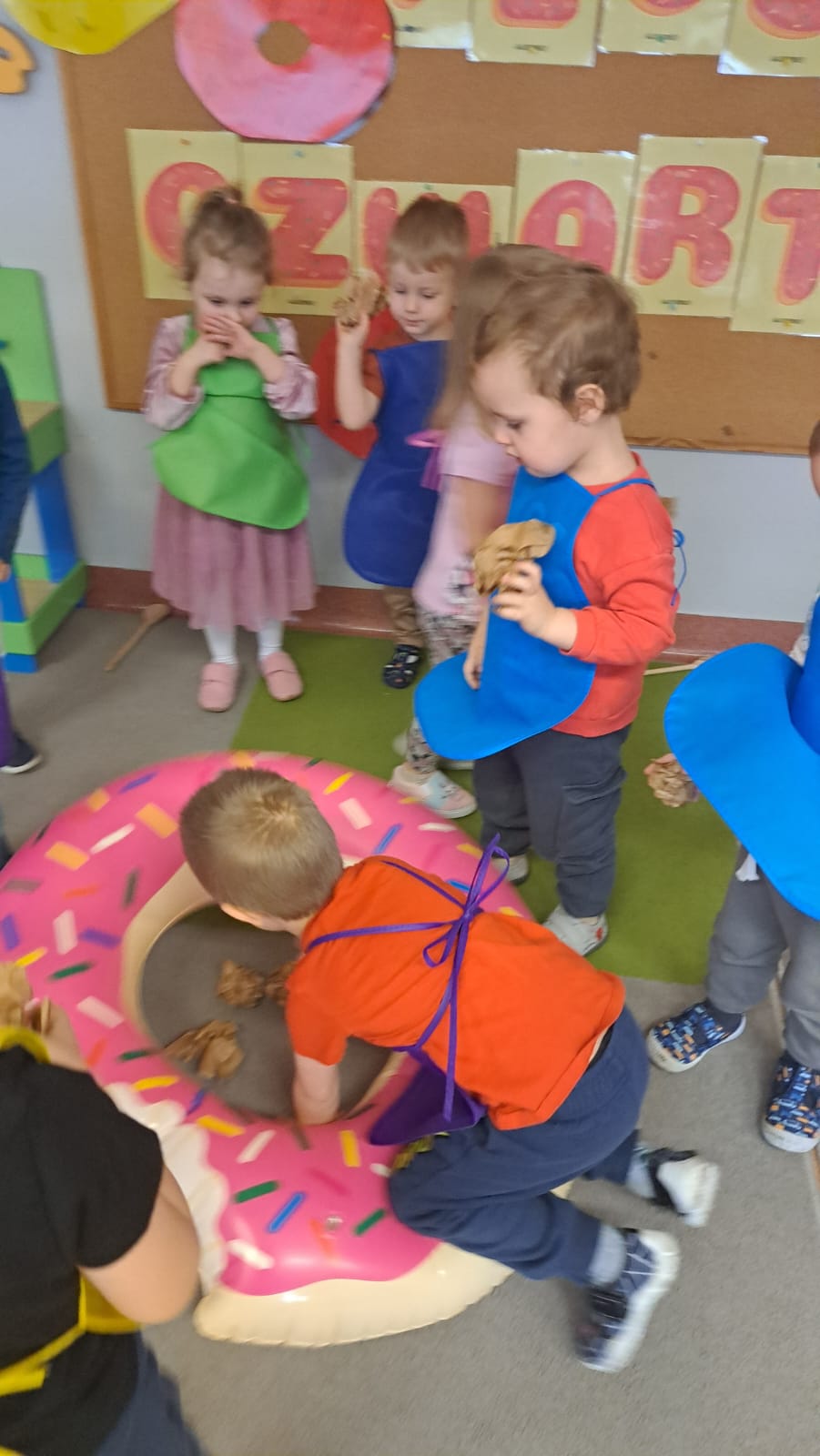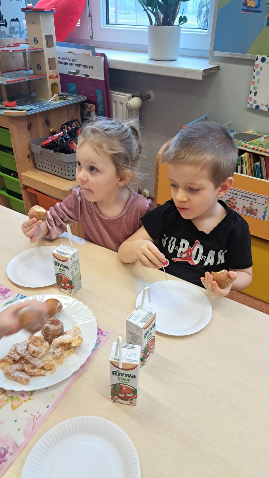 Maluszki z grupy IX zgodnie z tradycją, świętowały dziś TŁUSTY CZWARTEK przy słodkościach, muzyczce i wesołych zabawach z pączkiem w roli głównej :)