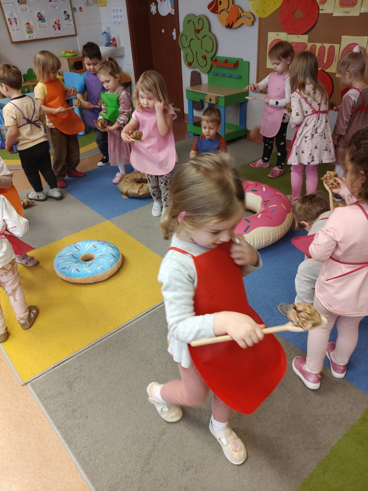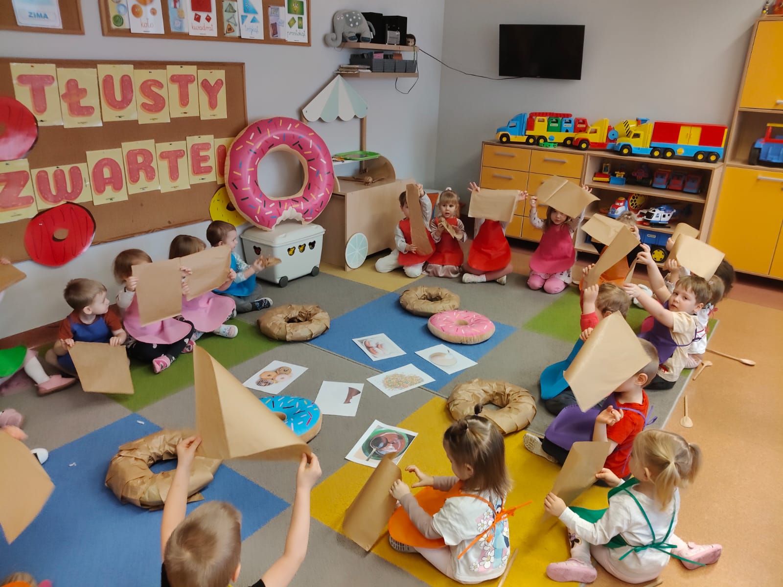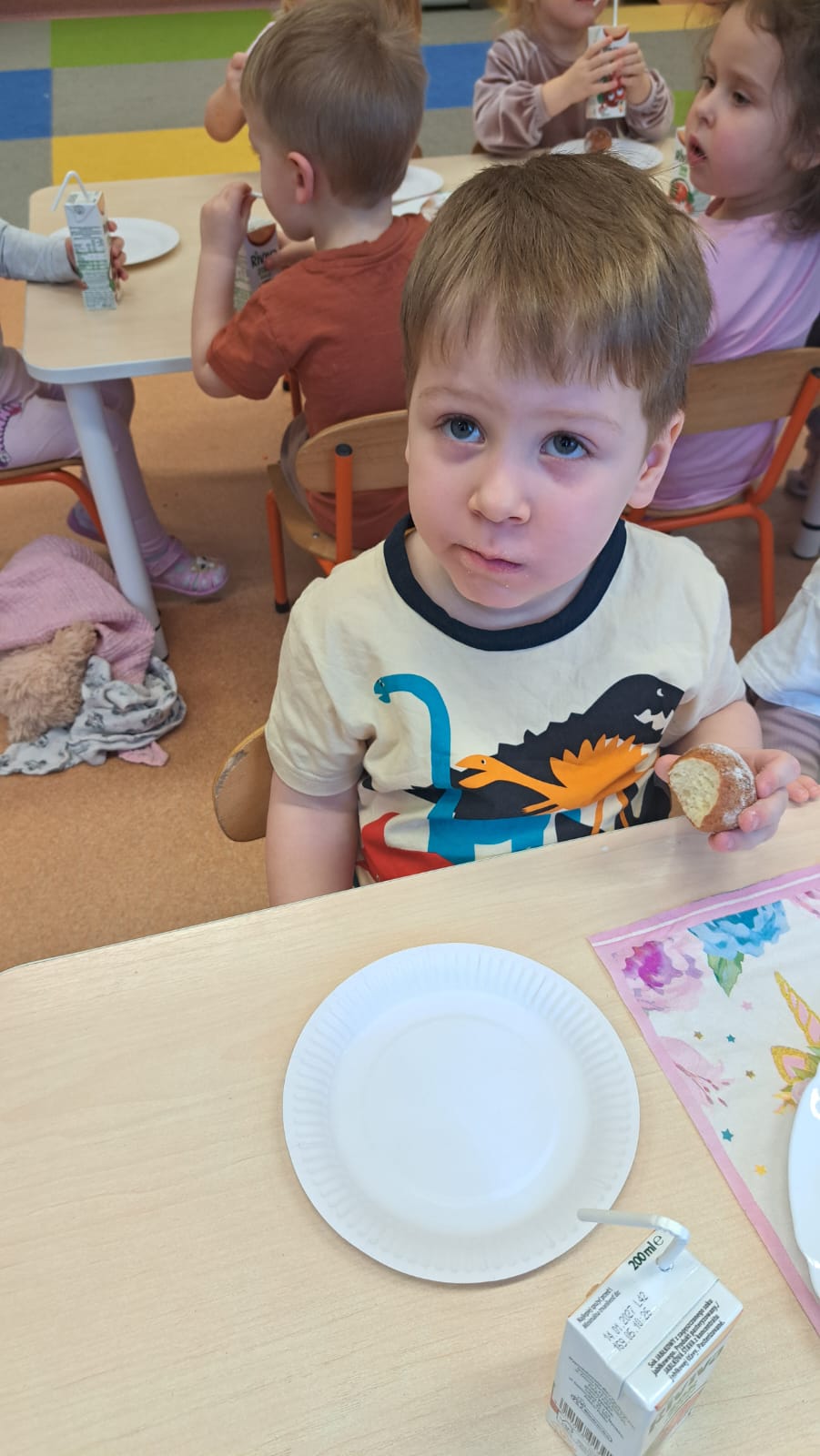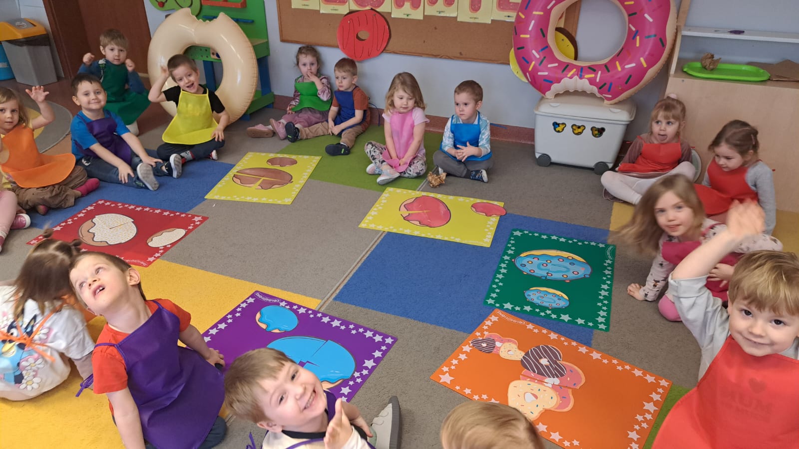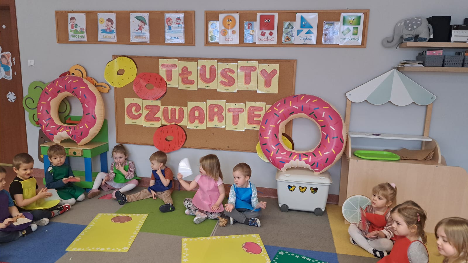 Maluszki z grupy IX zgodnie z tradycją, świętowały dziś TŁUSTY CZWARTEK przy słodkościach, muzyczce i wesołych zabawach z pączkiem w roli głównej :)