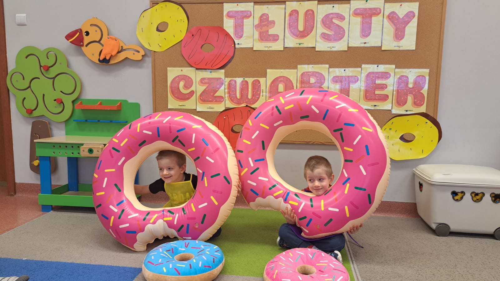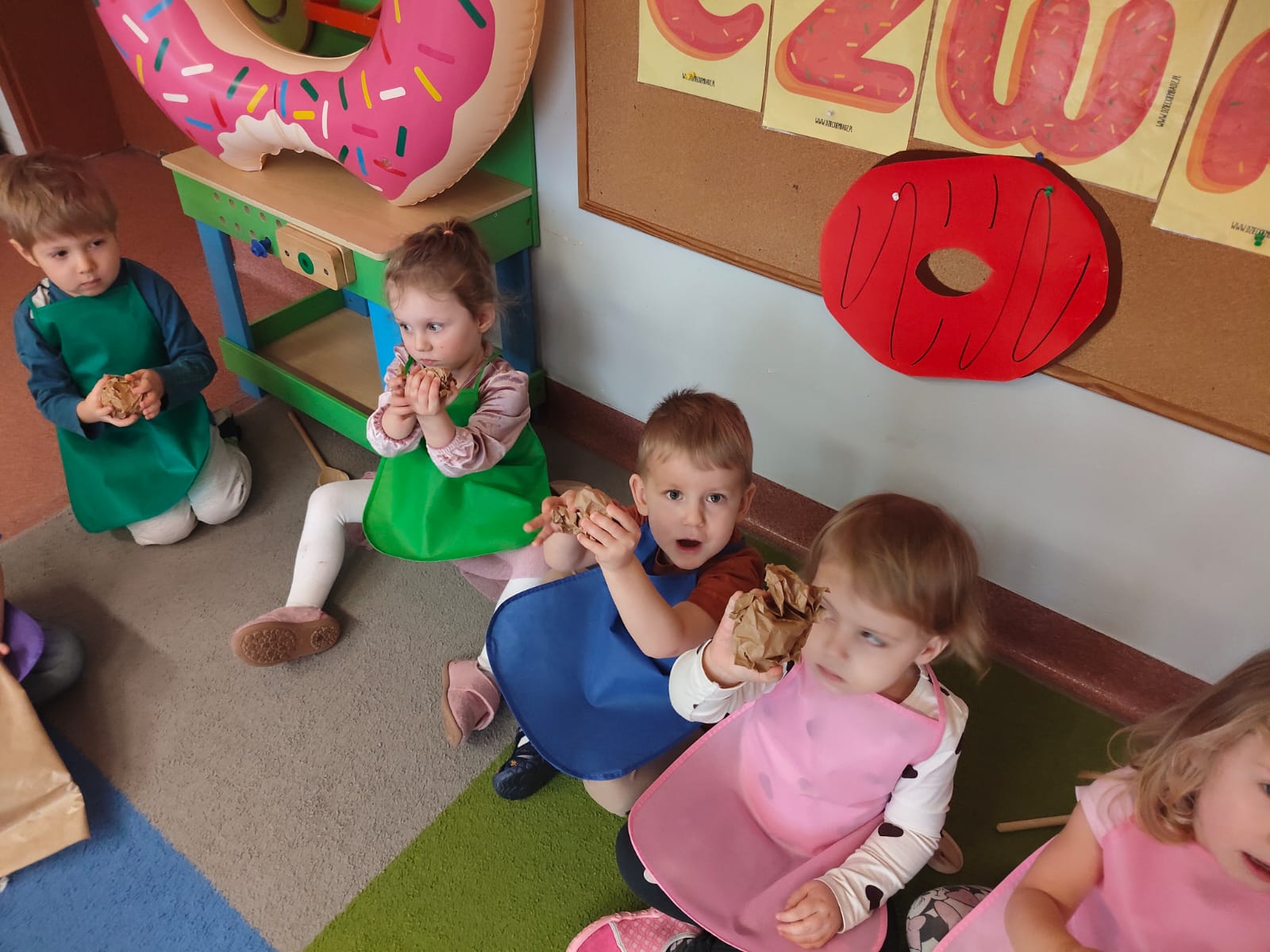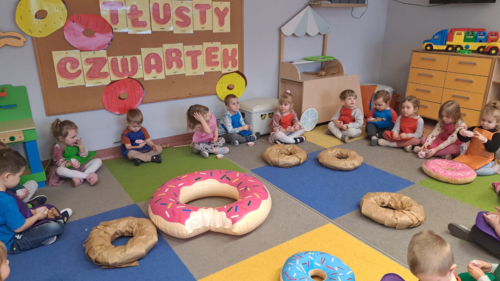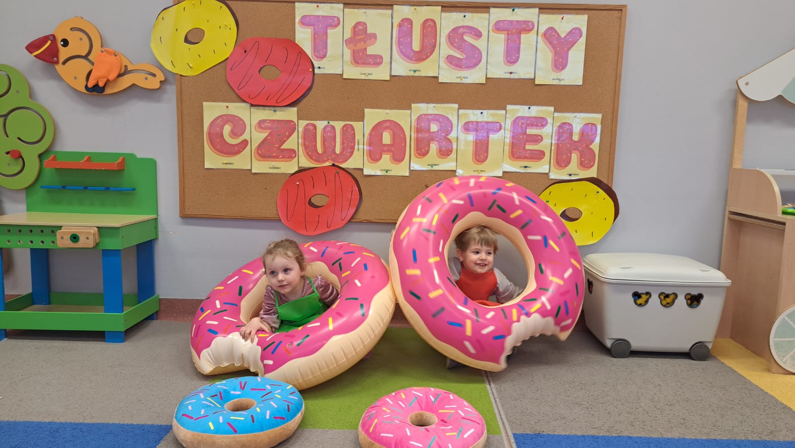 Maluszki z grupy IX zgodnie z tradycją, świętowały dziś TŁUSTY CZWARTEK przy słodkościach, muzyczce i wesołych zabawach z pączkiem w roli głównej :)
