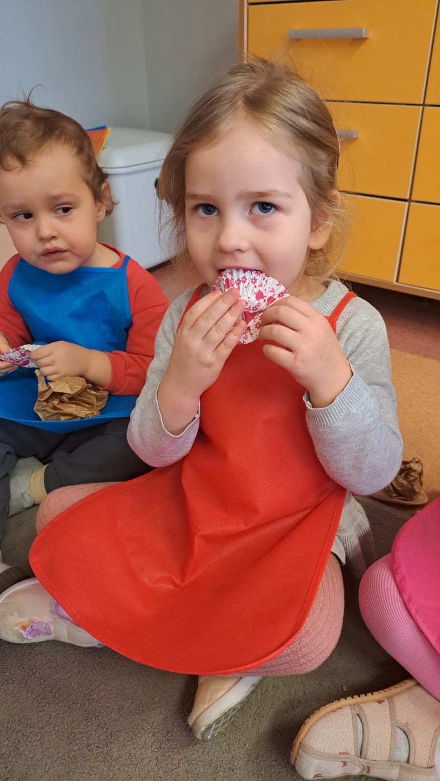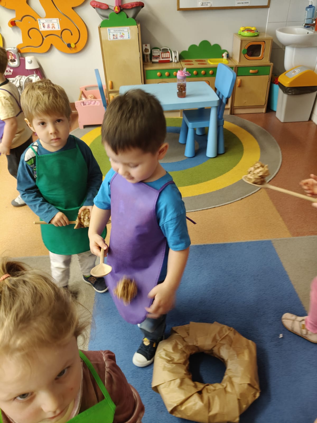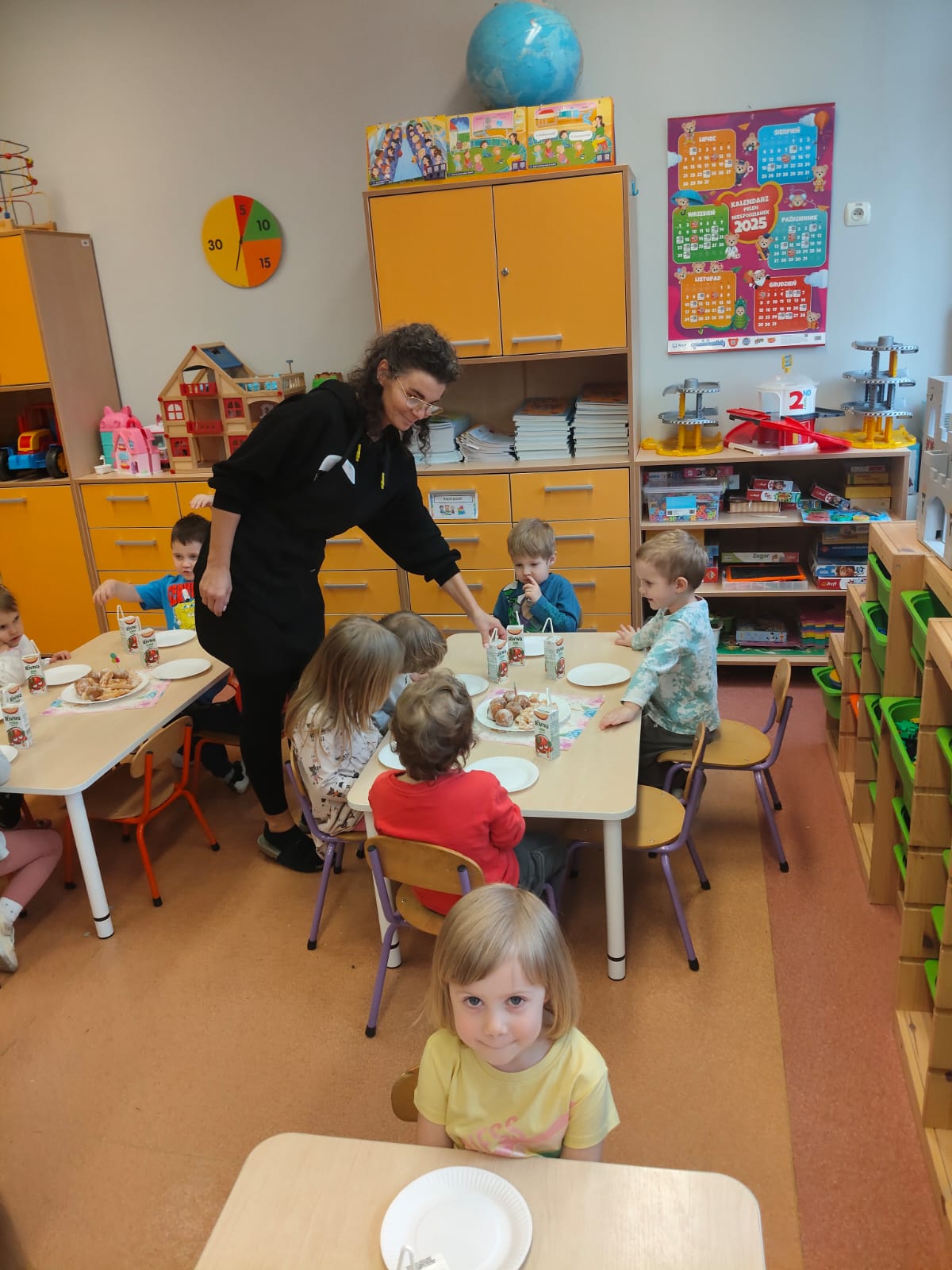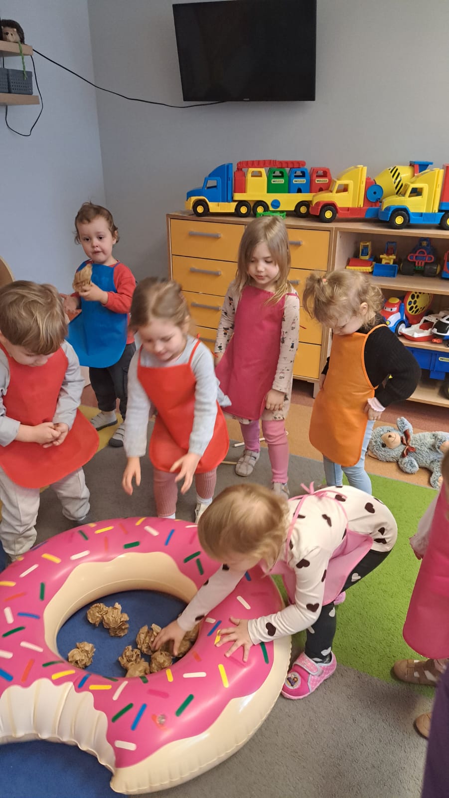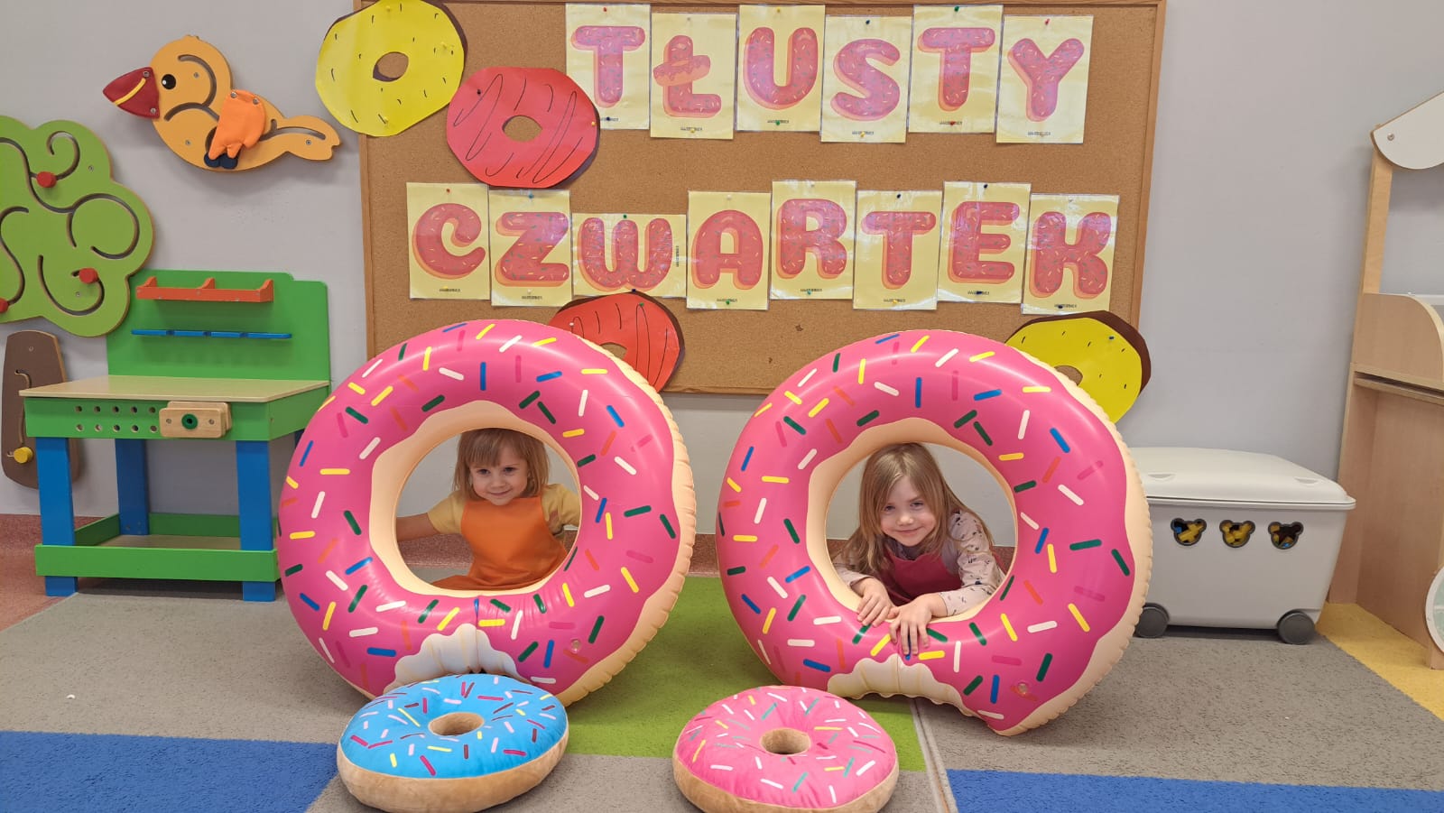 Maluszki z grupy IX zgodnie z tradycją, świętowały dziś TŁUSTY CZWARTEK przy słodkościach, muzyczce i wesołych zabawach z pączkiem w roli głównej :)