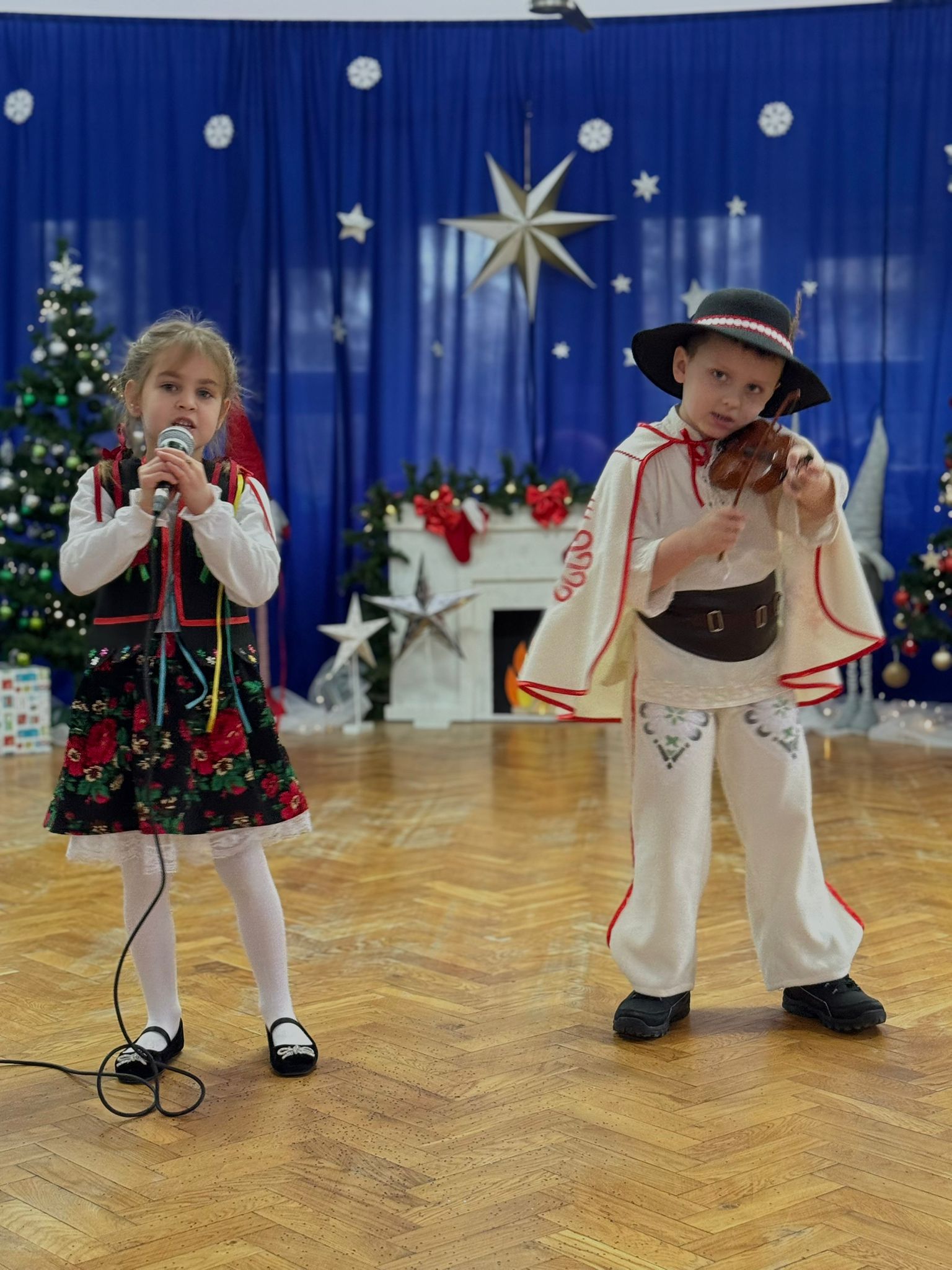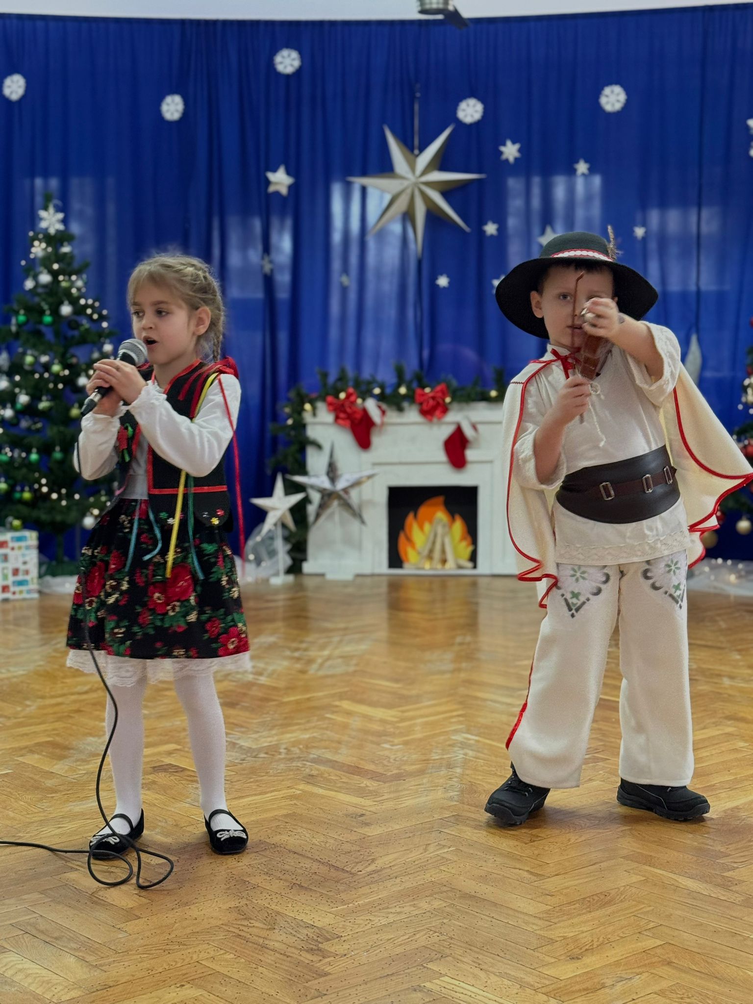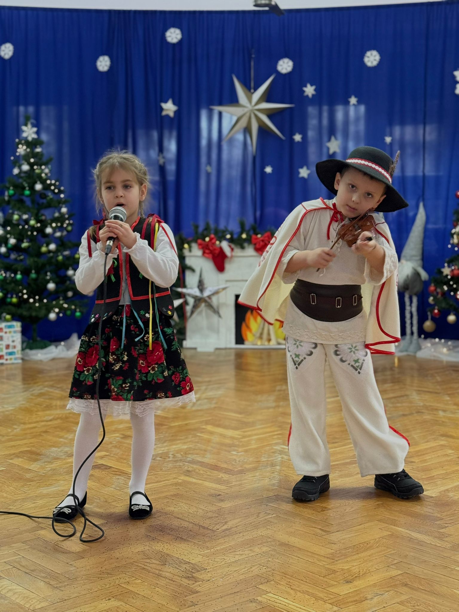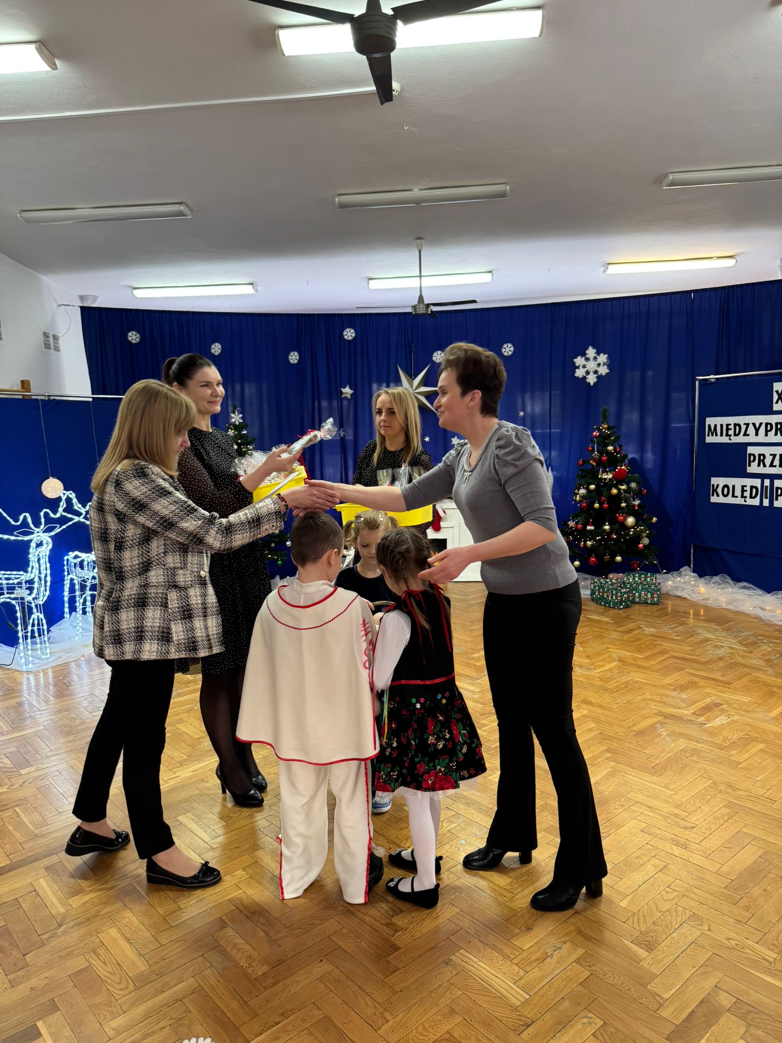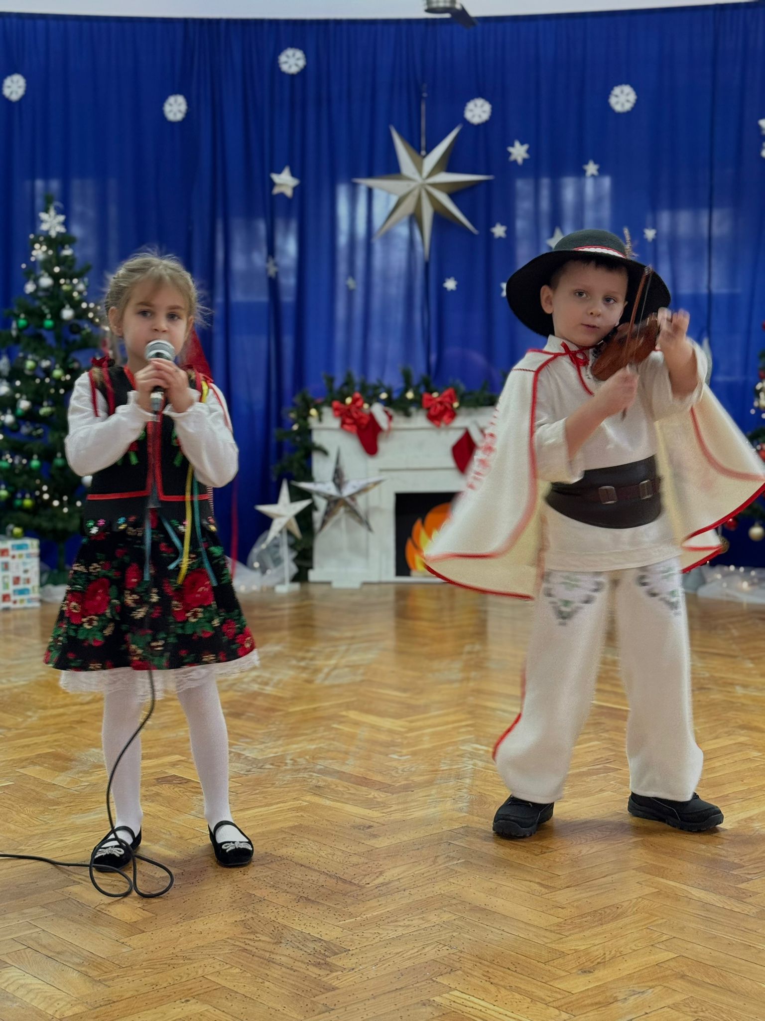 W dniu dzisiejszym dzieci z grupy IV wzięły udział w XVIII Międzyprzedszkolnym Przeglądzie Kolęd i Pastorałek, który odbył się w Przedszkolu nr 8 w Koninie. Celem przeglądu była m.in. prezentacja umiejętności wokalnych dzieci w wieku przedszkolnym, promowanie aktywności twórczej wśród dzieci, promocja nowych talentów, podtrzymanie w młodym pokoleniu tradycji śpiewania kolęd i pastorałek, poszerzenie wiedzy na temat tradycji bożonarodzeniowych, popularyzacja śpiewu wśród dzieci jako jednej z przyjemniejszych form spędzania wolnego czasu. Podczas przeglądu Antosia S. zachwyciła publiczność kolędą „Tylko jedna jest taka noc”, a Marcelek B. „grą” na skrzypcach niczym prawdziwy wirtuoz. Dzieci wystąpiły w pięknych strojach góralskich, co dodatkowo podkreśliło wyjątkowy charakter występu. Wykonanie naszych przedszkolaków spotkało się z ogromnym uznaniem i aplauzem. Dzieci nie tylko zaprezentowały swoje umiejętności, ale również wniosły do wspólnego świętowania prawdziwy, świąteczny klimat.