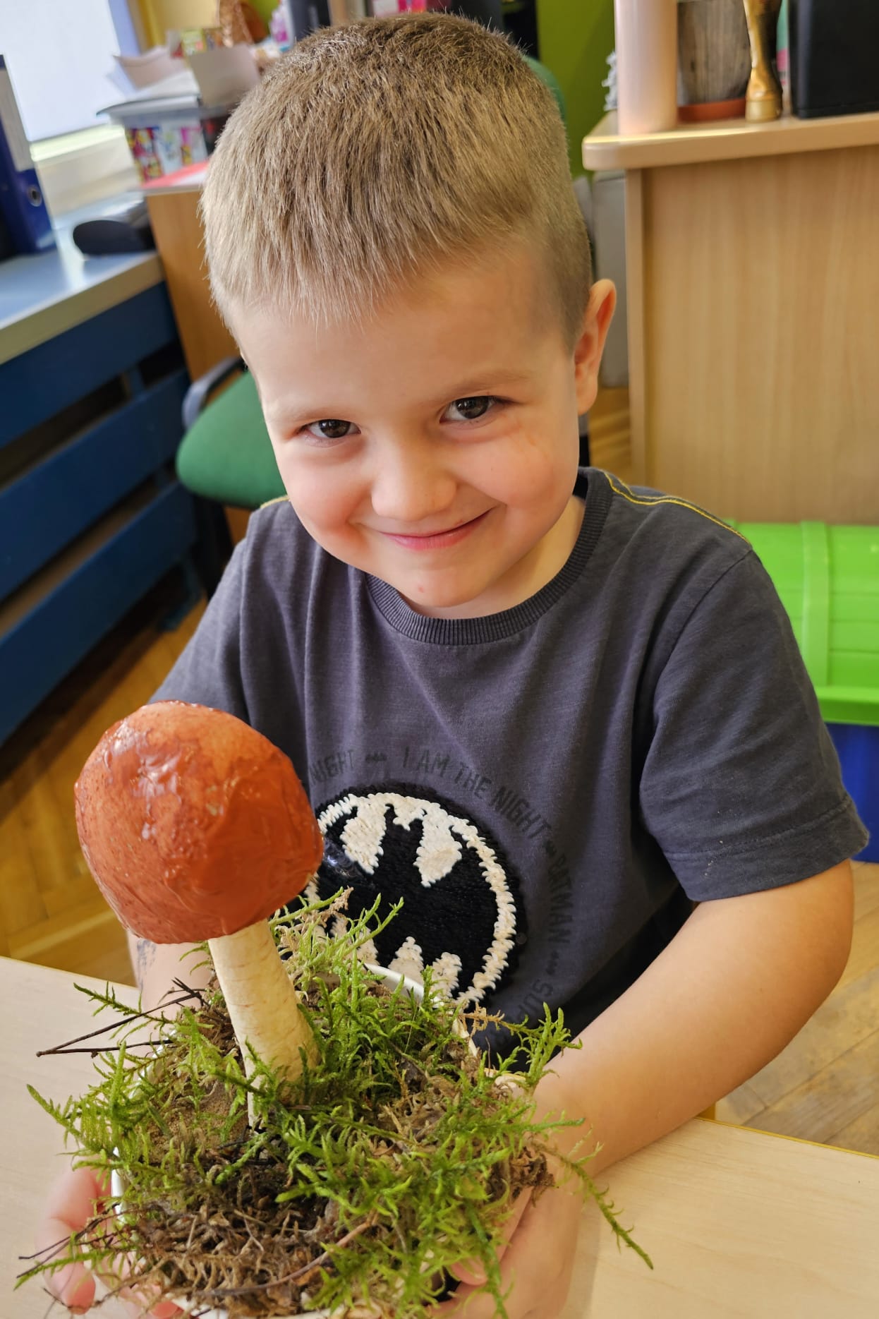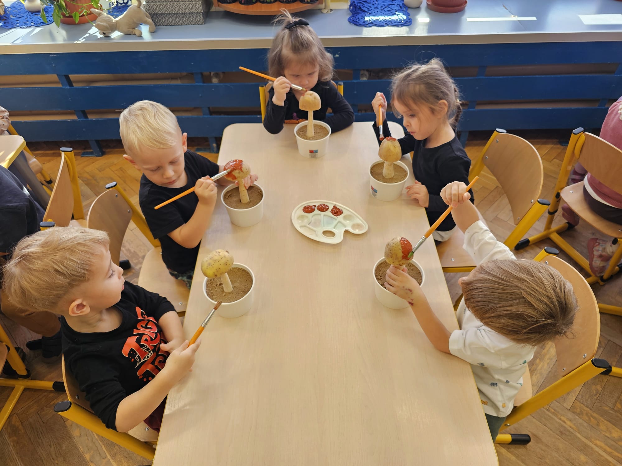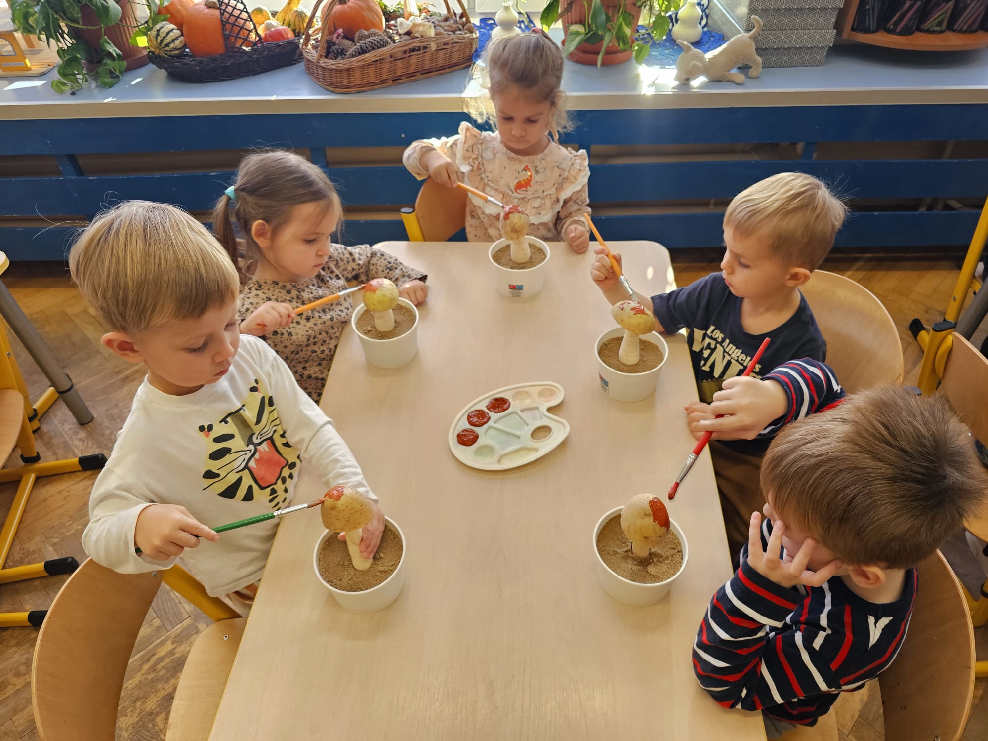Przedszkolaki z grupy I wyruszyły w niezwykłą podróż do „Królestwa grzybów”. Maluchy poznały różne gatunki grzybów, dowiedziały się , gdzie rosną i które z nich można spotkać w lesie. Z wielkim zaangażowaniem układały grzybowe puzzle, a później tworzyły własne grzybki z ziemniaka i pietruszki- było dużo śmiechu, radości i pomysłowych prac. Zajęcia były doskonałą okazją do rozwijania ciekawości przyrodniczej , wyobraźni oraz zdolności manualnych. Nasze przedszkolaki po raz kolejny udowodniły, że nauka przez zabawę to najlepszy sposób poznawania świata.
