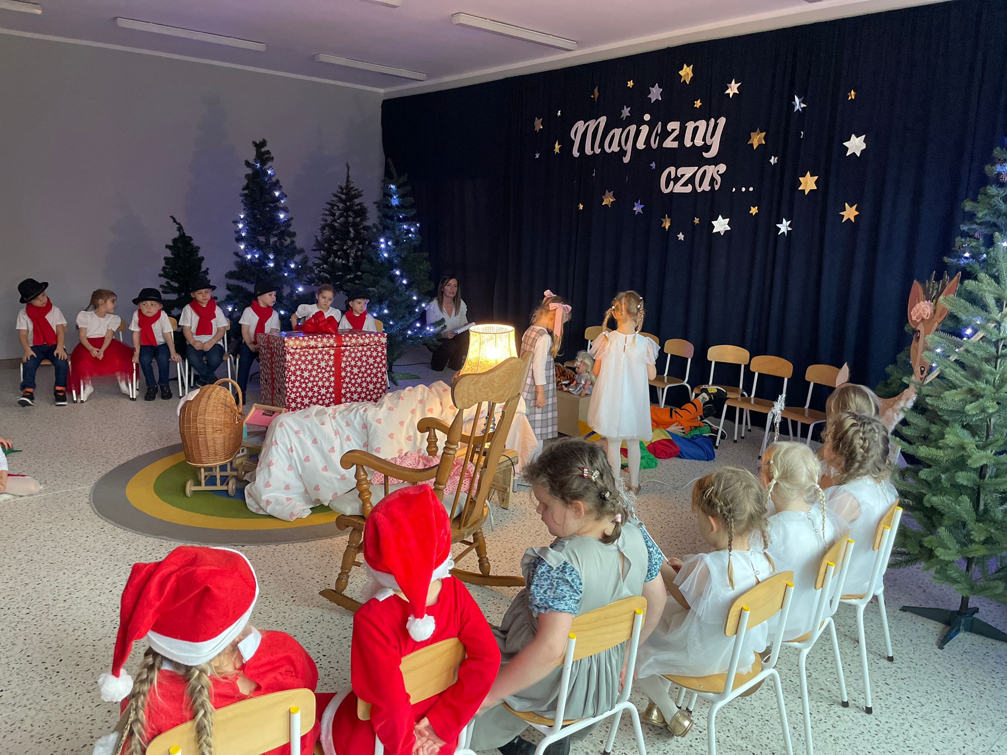 Okres świąteczny skłania nas do refleksji nad własnym życiem. Powinniśmy doceniać obecność drugiego człowieka. Każdy powinien być obdarowany ciepłem i dobrym słowem. Takie jest najważniejsze przesłanie Świąt Bożego Narodzenia. I to przesłanie dzieci przekazały wszystkim obecnym podczas przedstawienia bożonarodzeniowego pt. „Gwiazdkowy prezent”. Było pełno radości, uśmiechu i wzruszeń. Wszyscy ulegli magii występów przedszkolaków.