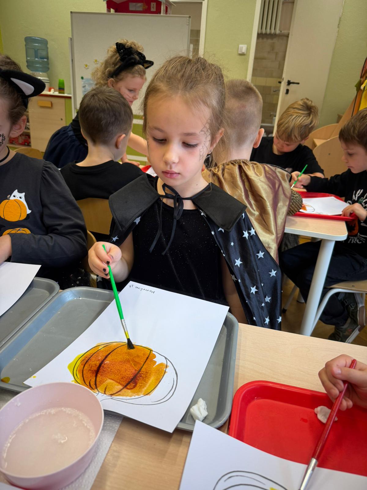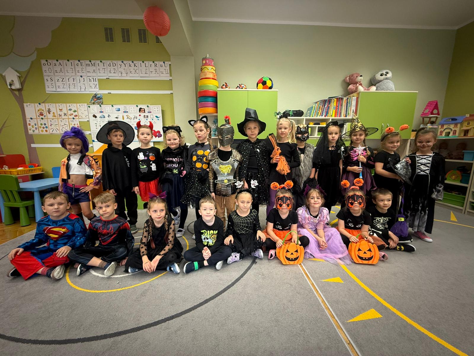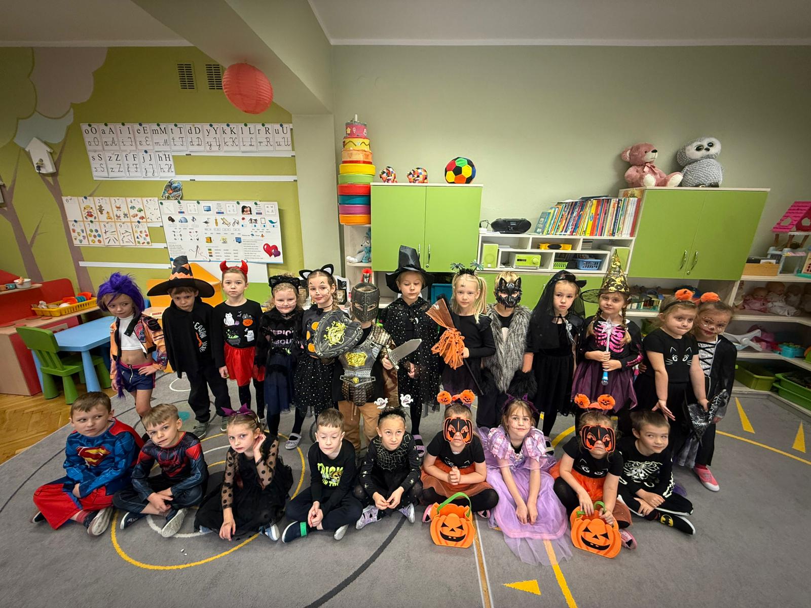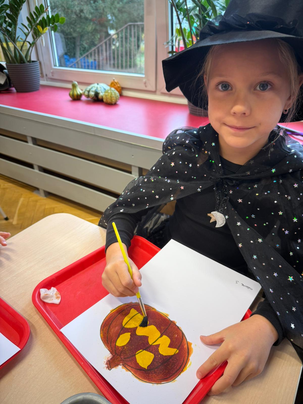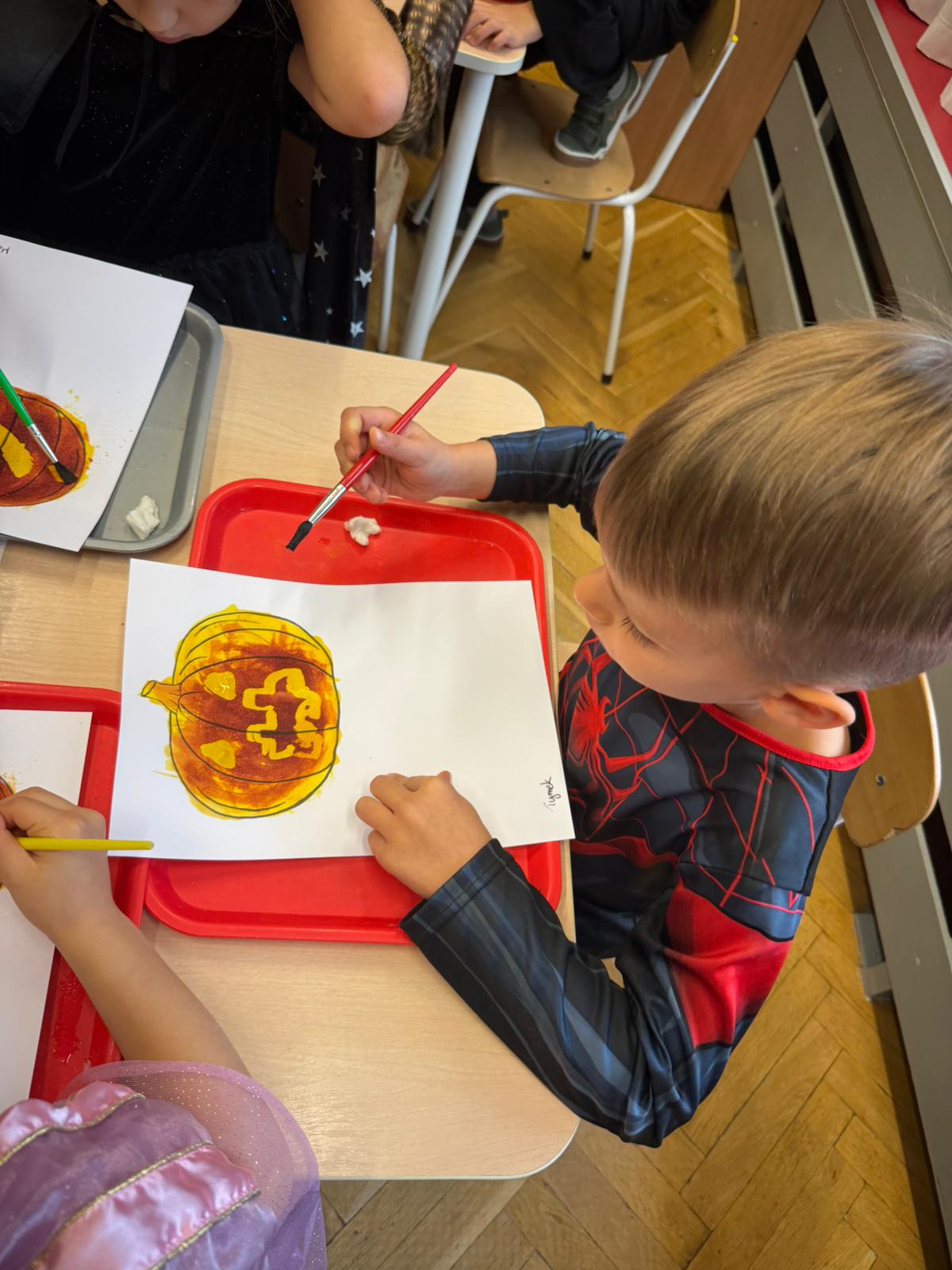 Dziś w naszej grupie odbyły się niesamowite „czary – mary” w świecie nauki! Dzieci miały okazję wziąć udział w różnych eksperymentach, które zachwyciły małych badaczy. Pierwszym z eksperymentów było połączenie nadtlenku wodoru z nadmanganianem potasu, co spowodowało efekt cieplny i powstanie dymu, przywodzącego na myśl duchowe postaci Halloween. Kolejne doświadczenie to eksperyment z sodą i wodą, podczas którego dzieci najpierw oczyszczały narysowane już dynie na białej kartce papieru za pomocą wacika nasączonego roztworem sody. Następnie, używając pędzelków zanurzonych w kurkumie i alkoholu, mali laboranci malowali oczyszczone dynie, które zmieniały kolory na czerwień i żółć, w zależności od ilości sody. W dalszej kolejności dodanie roztworu kwasku cytrynowego połączonego z sodą pozwoliło na ozdabianie dyni w różnorodne wzory. Ostatnim eksperymentem, nazwanym „światła drogowe”, było mieszanie różnych substancji w słoiczkach (woda, wodorotlenek sodu, indygo karmin oraz glukoza), co skutkowało spektakularną zmianą kolorów na czerwony, zielony i żółty. Przedszkolaki były zachwycone rezultatami, które nie tylko rozwijały ich ciekawość i kreatywność, ale również uczyły podstaw chemii w zabawny i interaktywny sposób.
