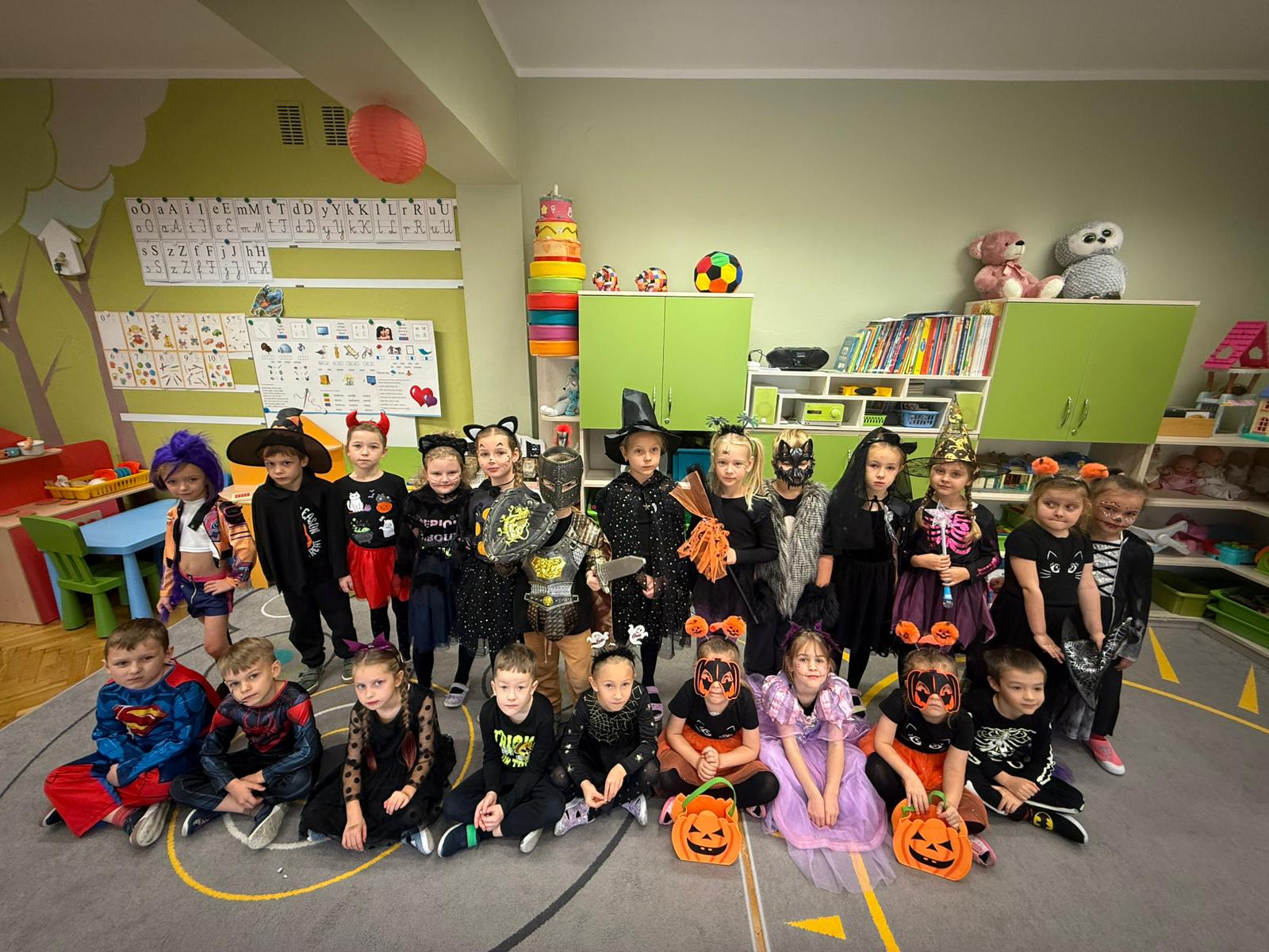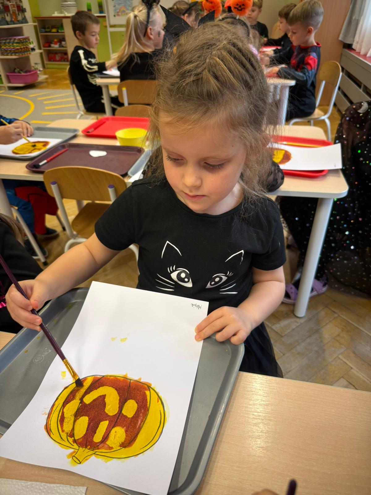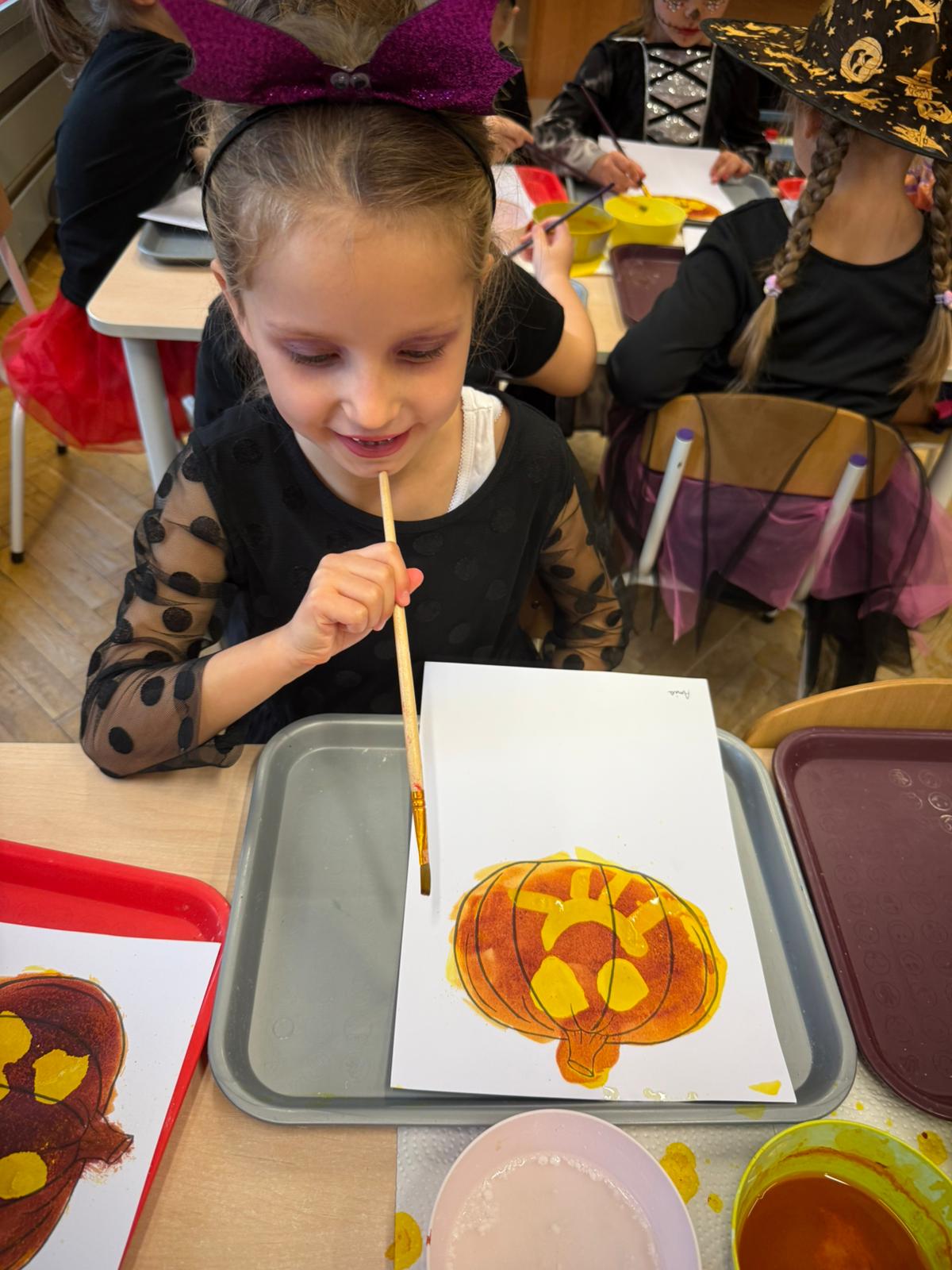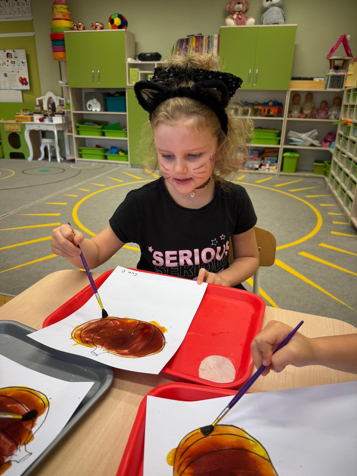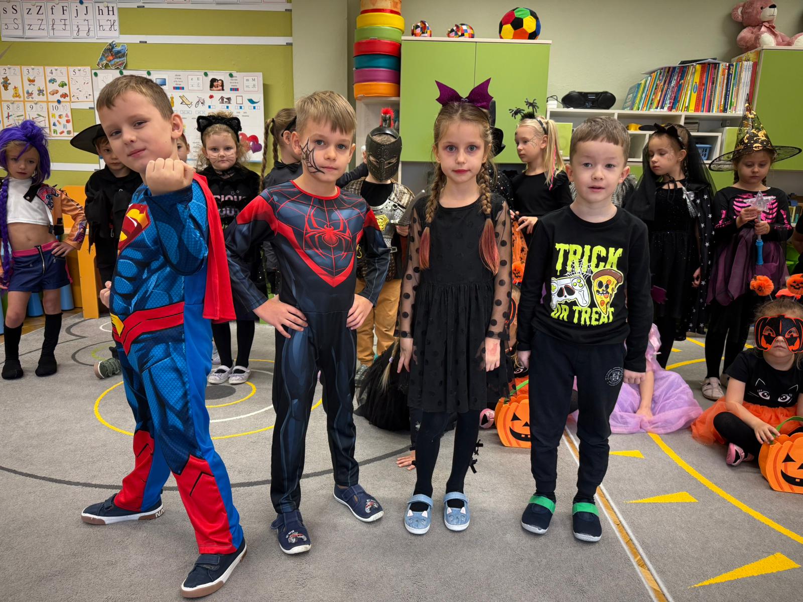 Dziś w naszej grupie odbyły się niesamowite „czary – mary” w świecie nauki! Dzieci miały okazję wziąć udział w różnych eksperymentach, które zachwyciły małych badaczy. Pierwszym z eksperymentów było połączenie nadtlenku wodoru z nadmanganianem potasu, co spowodowało efekt cieplny i powstanie dymu, przywodzącego na myśl duchowe postaci Halloween. Kolejne doświadczenie to eksperyment z sodą i wodą, podczas którego dzieci najpierw oczyszczały narysowane już dynie na białej kartce papieru za pomocą wacika nasączonego roztworem sody. Następnie, używając pędzelków zanurzonych w kurkumie i alkoholu, mali laboranci malowali oczyszczone dynie, które zmieniały kolory na czerwień i żółć, w zależności od ilości sody. W dalszej kolejności dodanie roztworu kwasku cytrynowego połączonego z sodą pozwoliło na ozdabianie dyni w różnorodne wzory. Ostatnim eksperymentem, nazwanym „światła drogowe”, było mieszanie różnych substancji w słoiczkach (woda, wodorotlenek sodu, indygo karmin oraz glukoza), co skutkowało spektakularną zmianą kolorów na czerwony, zielony i żółty. Przedszkolaki były zachwycone rezultatami, które nie tylko rozwijały ich ciekawość i kreatywność, ale również uczyły podstaw chemii w zabawny i interaktywny sposób.