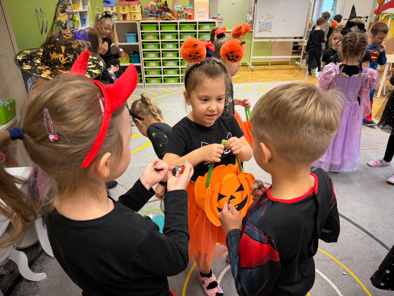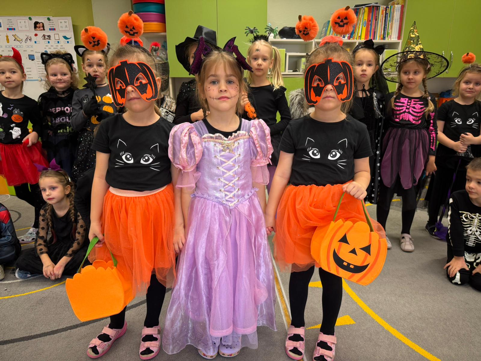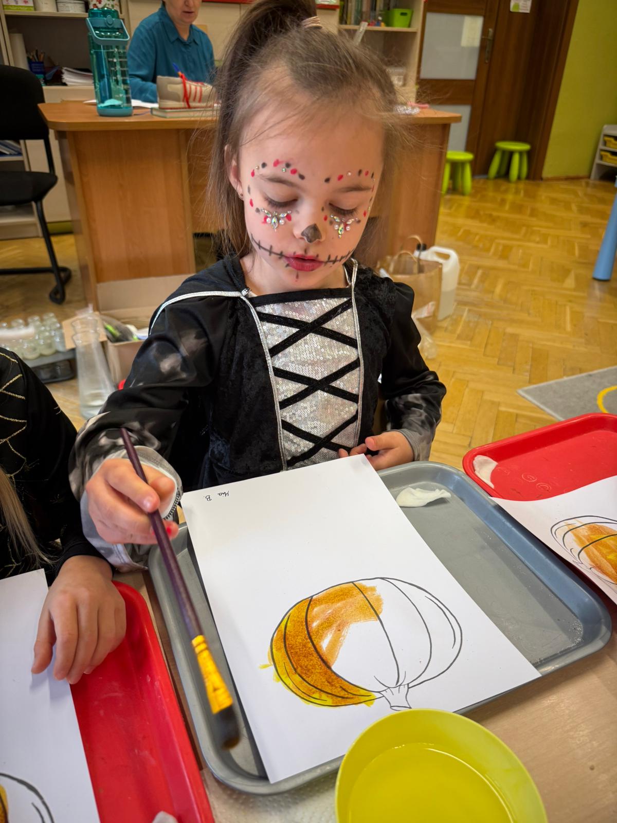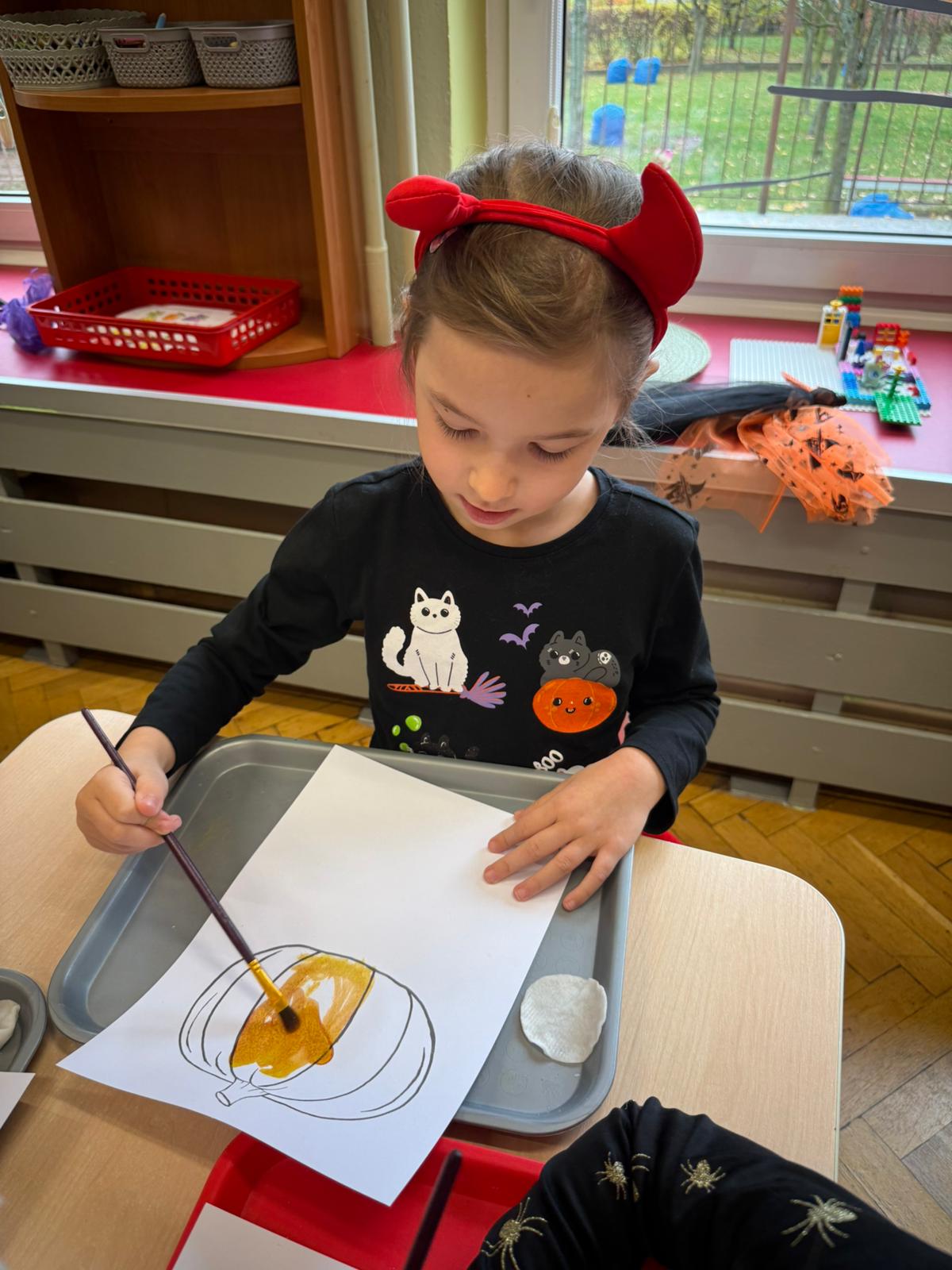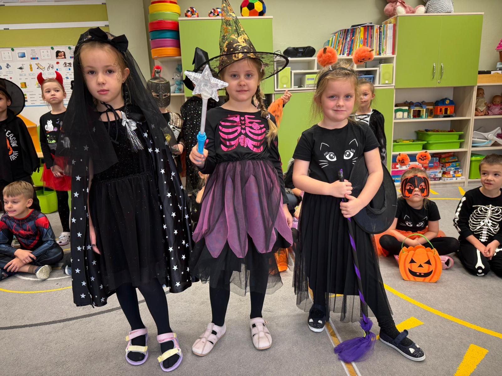 Dziś w naszej grupie odbyły się niesamowite „czary – mary” w świecie nauki! Dzieci miały okazję wziąć udział w różnych eksperymentach, które zachwyciły małych badaczy. Pierwszym z eksperymentów było połączenie nadtlenku wodoru z nadmanganianem potasu, co spowodowało efekt cieplny i powstanie dymu, przywodzącego na myśl duchowe postaci Halloween. Kolejne doświadczenie to eksperyment z sodą i wodą, podczas którego dzieci najpierw oczyszczały narysowane już dynie na białej kartce papieru za pomocą wacika nasączonego roztworem sody. Następnie, używając pędzelków zanurzonych w kurkumie i alkoholu, mali laboranci malowali oczyszczone dynie, które zmieniały kolory na czerwień i żółć, w zależności od ilości sody. W dalszej kolejności dodanie roztworu kwasku cytrynowego połączonego z sodą pozwoliło na ozdabianie dyni w różnorodne wzory. Ostatnim eksperymentem, nazwanym „światła drogowe”, było mieszanie różnych substancji w słoiczkach (woda, wodorotlenek sodu, indygo karmin oraz glukoza), co skutkowało spektakularną zmianą kolorów na czerwony, zielony i żółty. Przedszkolaki były zachwycone rezultatami, które nie tylko rozwijały ich ciekawość i kreatywność, ale również uczyły podstaw chemii w zabawny i interaktywny sposób.