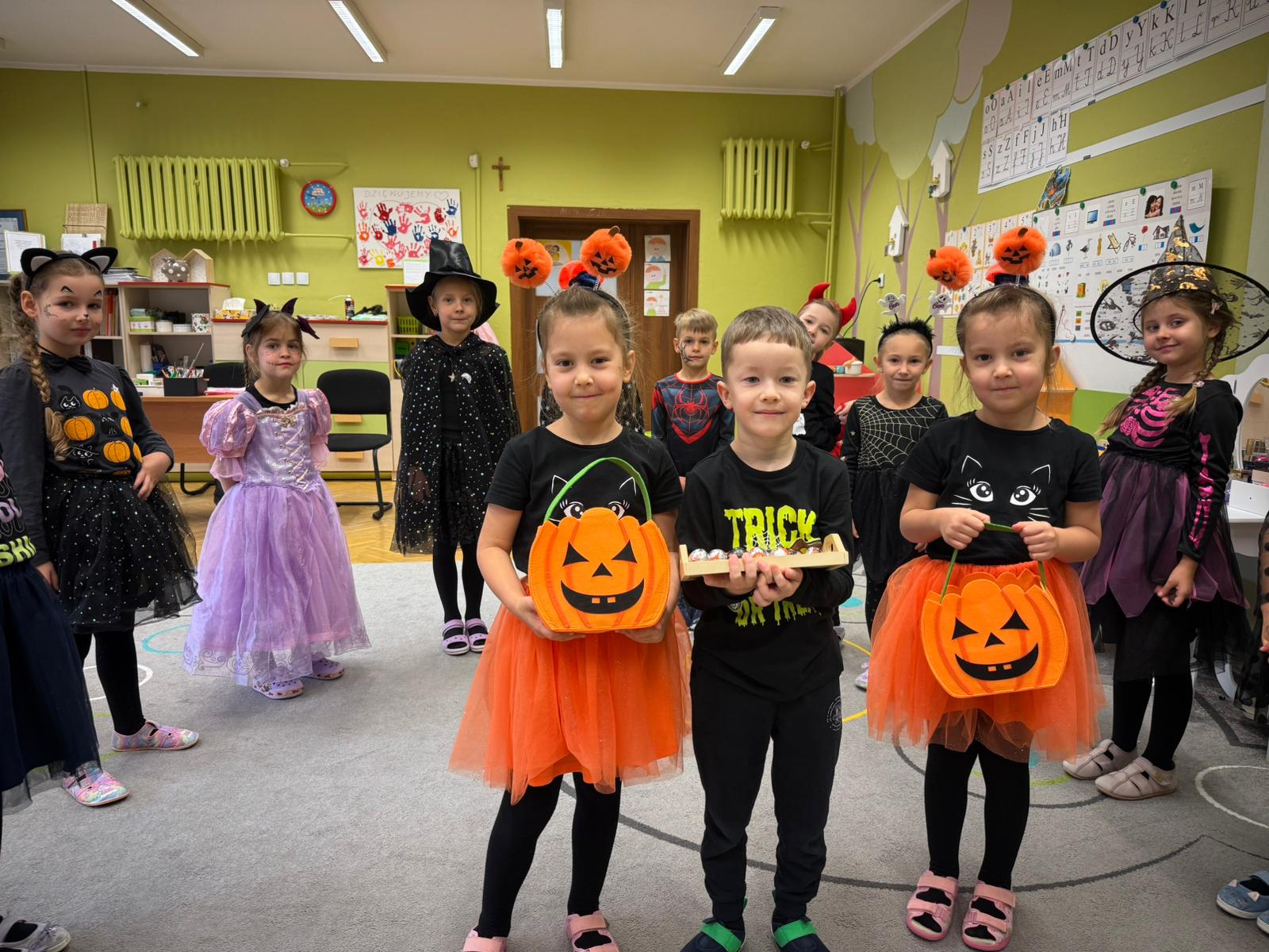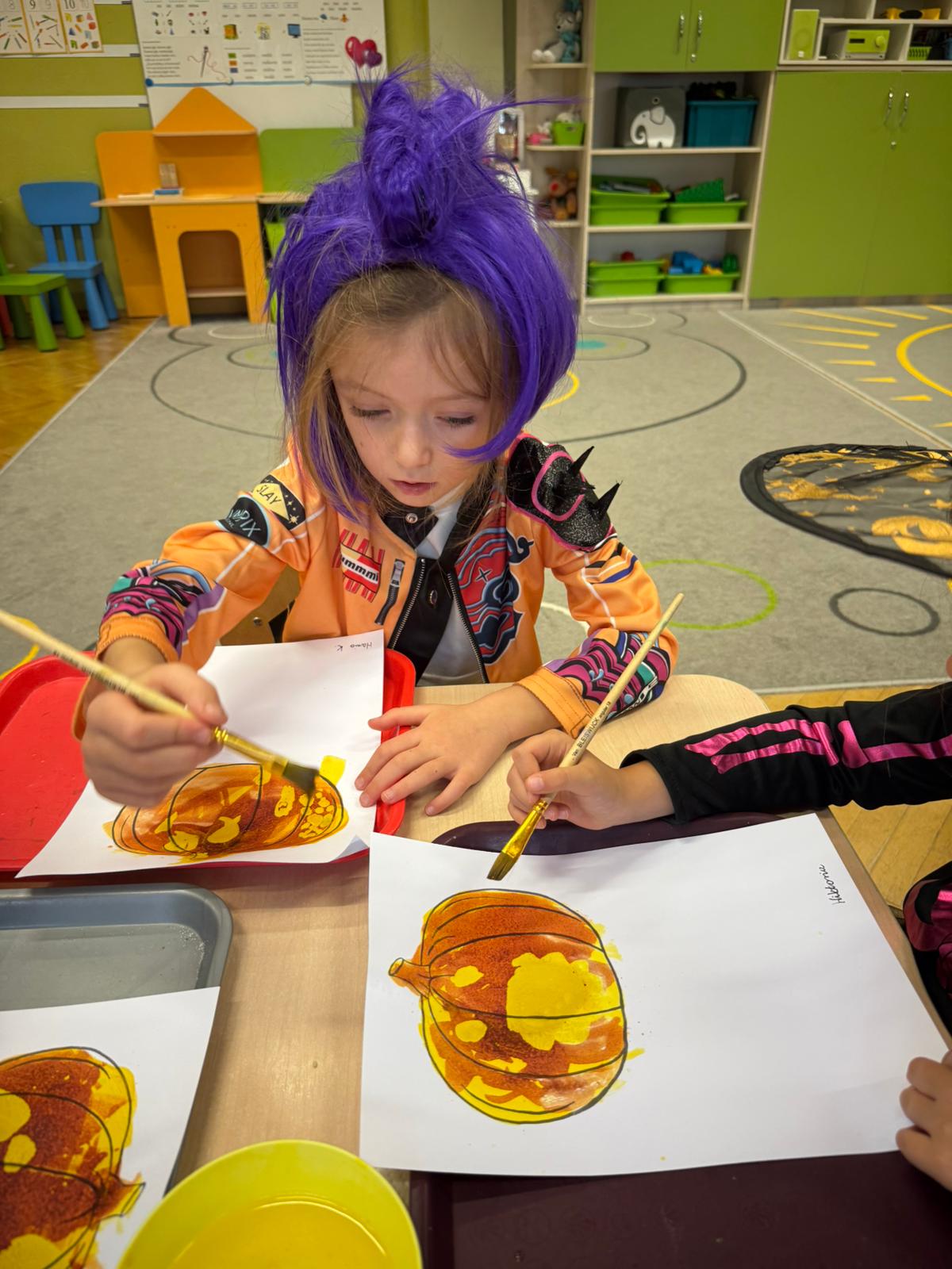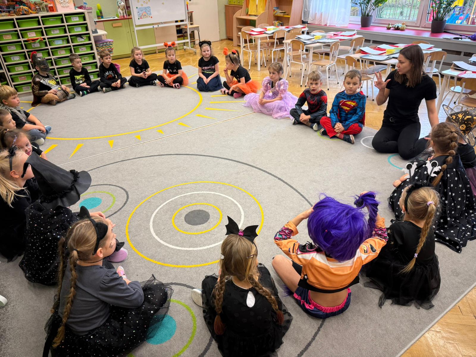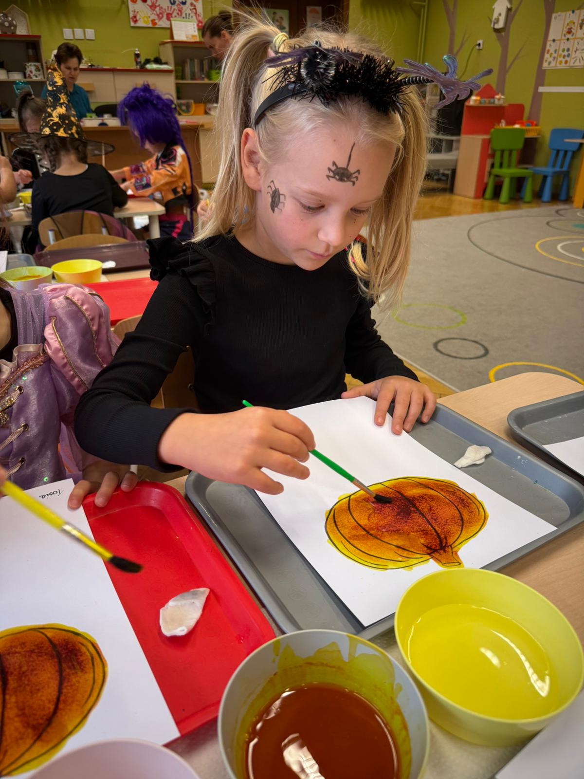 Dziś w naszej grupie odbyły się niesamowite „czary – mary” w świecie nauki! Dzieci miały okazję wziąć udział w różnych eksperymentach, które zachwyciły małych badaczy. Pierwszym z eksperymentów było połączenie nadtlenku wodoru z nadmanganianem potasu, co spowodowało efekt cieplny i powstanie dymu, przywodzącego na myśl duchowe postaci Halloween. Kolejne doświadczenie to eksperyment z sodą i wodą, podczas którego dzieci najpierw oczyszczały narysowane już dynie na białej kartce papieru za pomocą wacika nasączonego roztworem sody. Następnie, używając pędzelków zanurzonych w kurkumie i alkoholu, mali laboranci malowali oczyszczone dynie, które zmieniały kolory na czerwień i żółć, w zależności od ilości sody. W dalszej kolejności dodanie roztworu kwasku cytrynowego połączonego z sodą pozwoliło na ozdabianie dyni w różnorodne wzory. Ostatnim eksperymentem, nazwanym „światła drogowe”, było mieszanie różnych substancji w słoiczkach (woda, wodorotlenek sodu, indygo karmin oraz glukoza), co skutkowało spektakularną zmianą kolorów na czerwony, zielony i żółty. Przedszkolaki były zachwycone rezultatami, które nie tylko rozwijały ich ciekawość i kreatywność, ale również uczyły podstaw chemii w zabawny i interaktywny sposób.