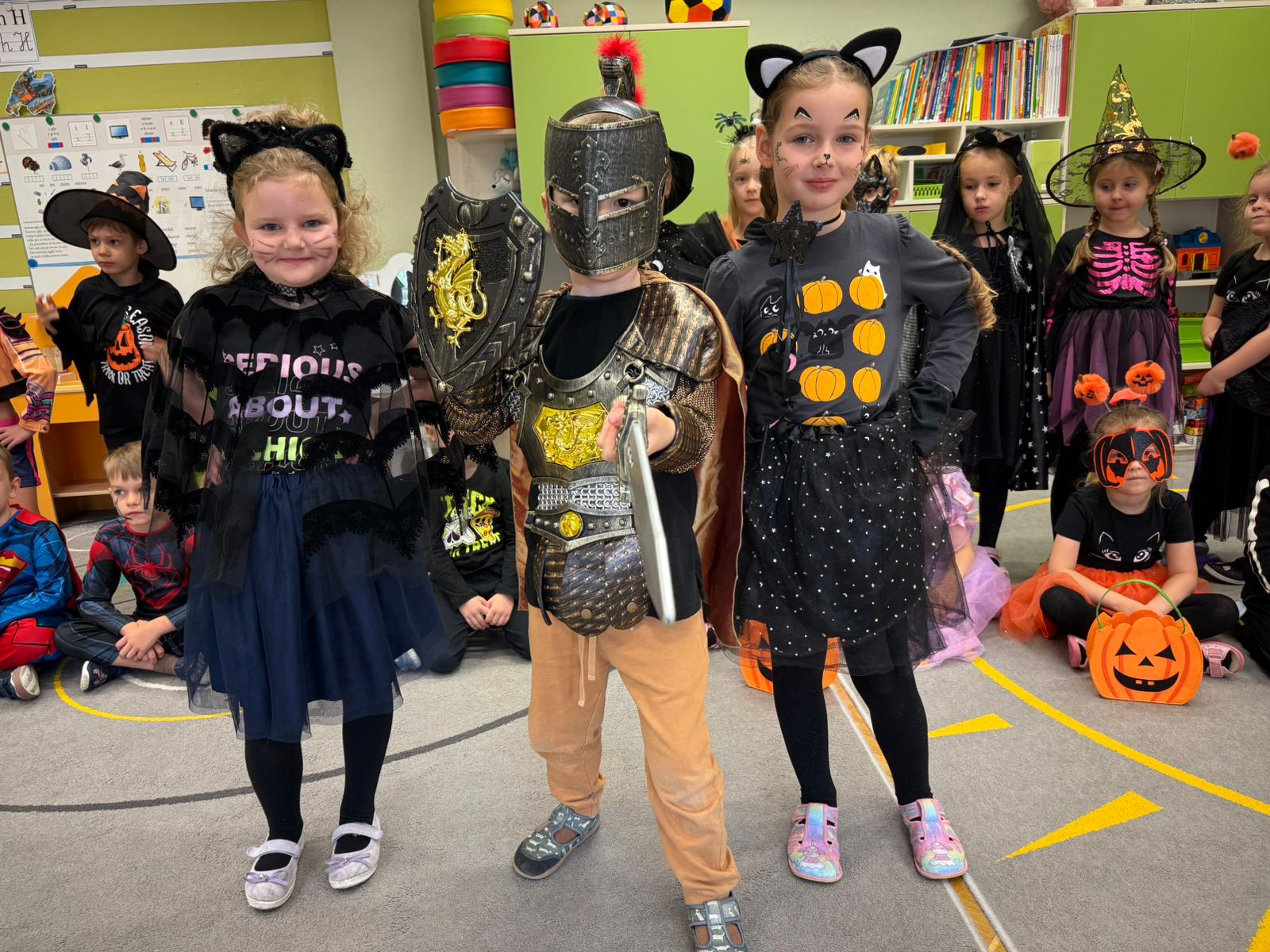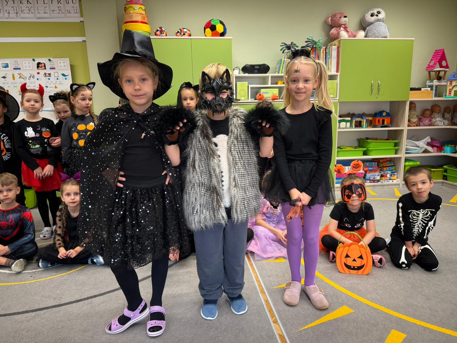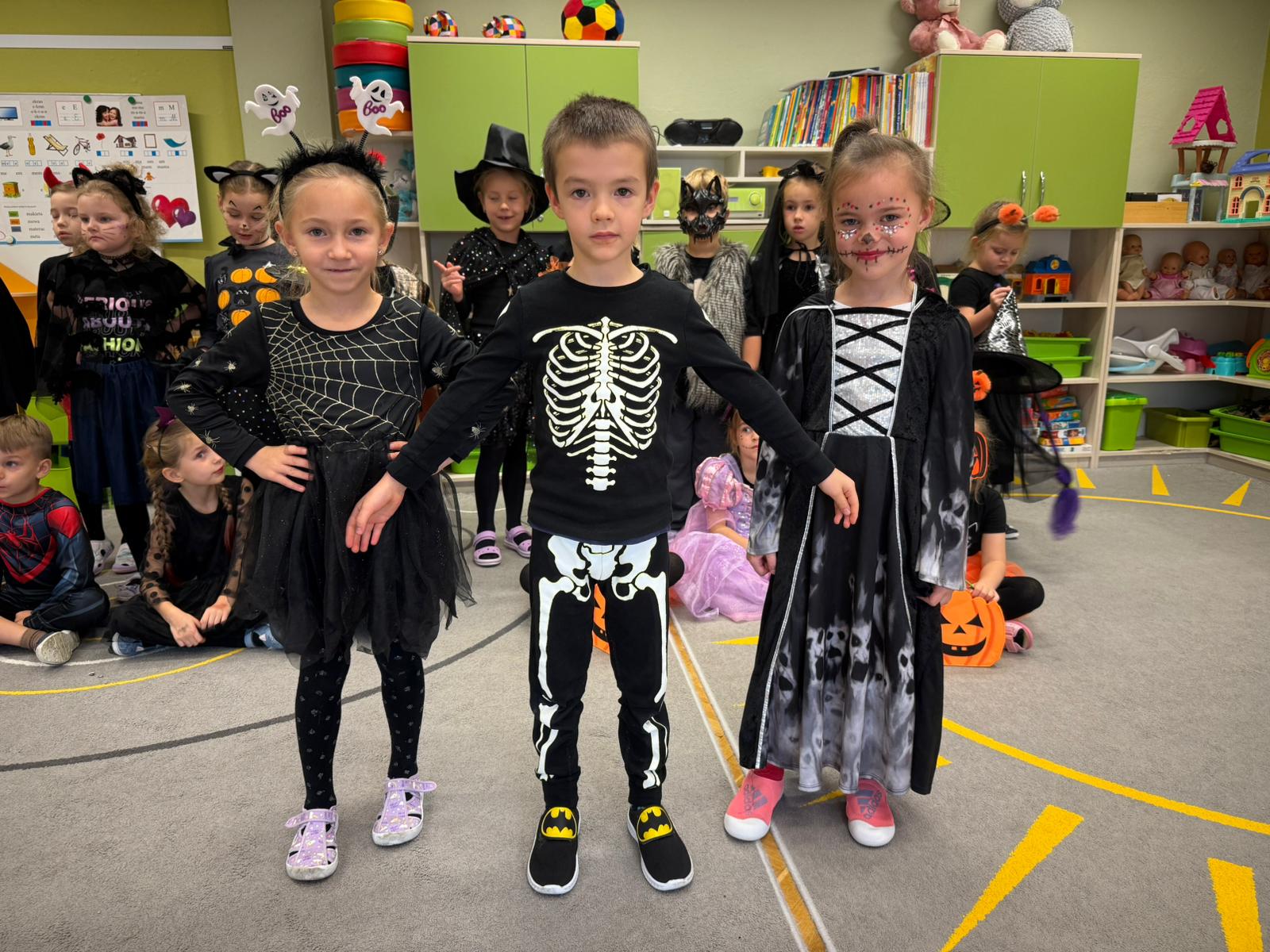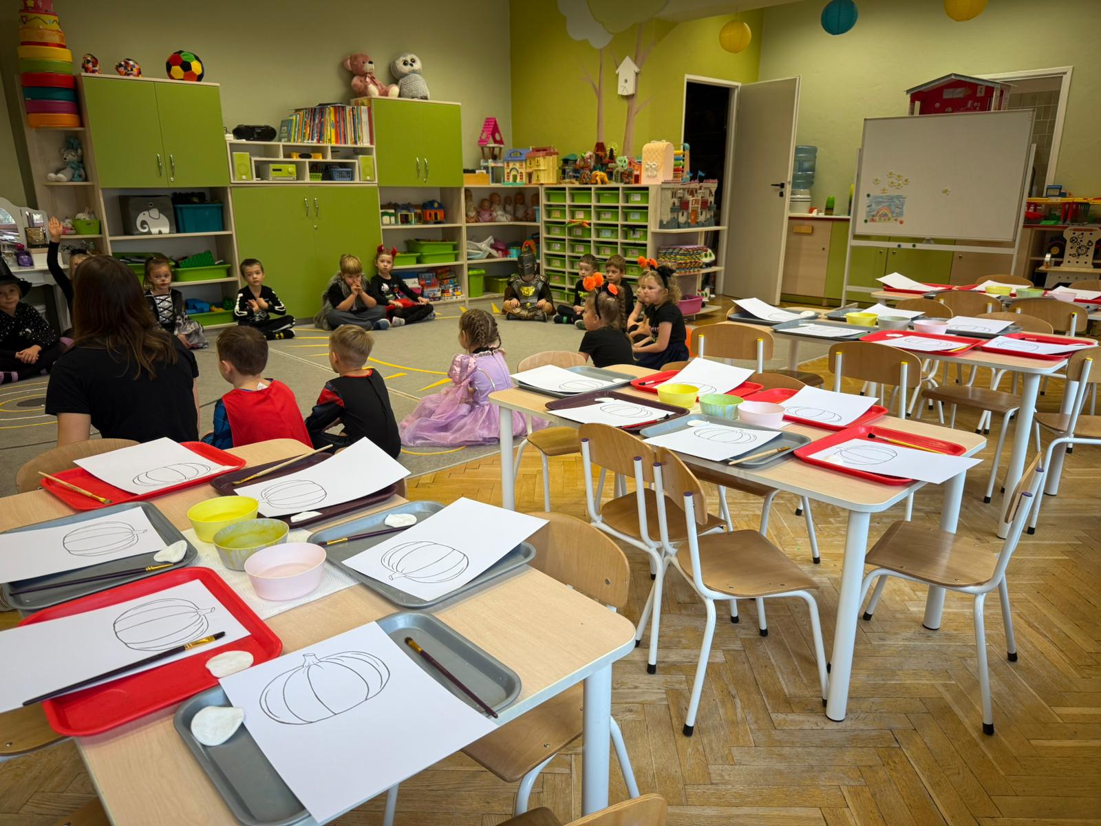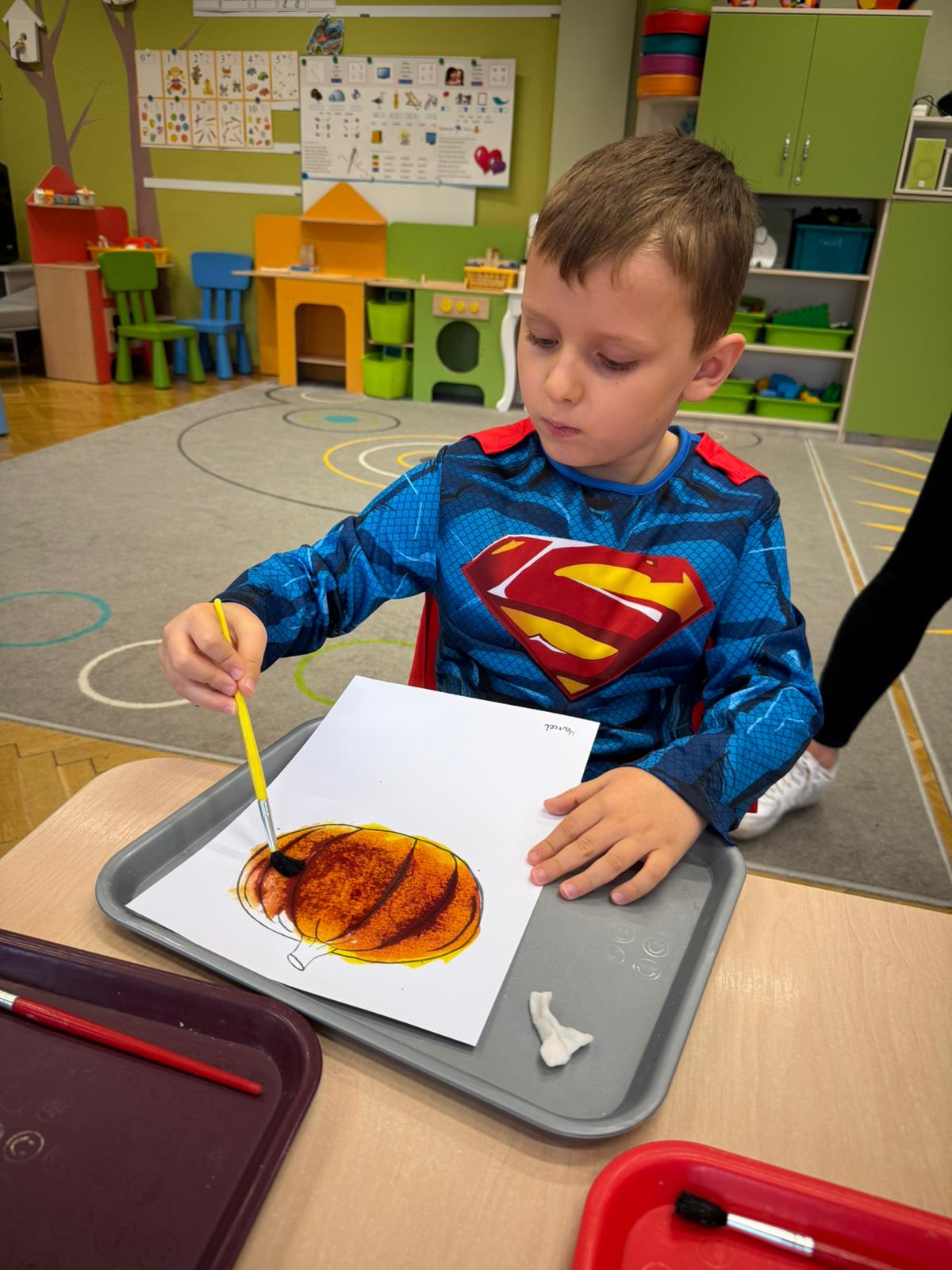 Dziś w naszej grupie odbyły się niesamowite „czary – mary” w świecie nauki! Dzieci miały okazję wziąć udział w różnych eksperymentach, które zachwyciły małych badaczy. Pierwszym z eksperymentów było połączenie nadtlenku wodoru z nadmanganianem potasu, co spowodowało efekt cieplny i powstanie dymu, przywodzącego na myśl duchowe postaci Halloween. Kolejne doświadczenie to eksperyment z sodą i wodą, podczas którego dzieci najpierw oczyszczały narysowane już dynie na białej kartce papieru za pomocą wacika nasączonego roztworem sody. Następnie, używając pędzelków zanurzonych w kurkumie i alkoholu, mali laboranci malowali oczyszczone dynie, które zmieniały kolory na czerwień i żółć, w zależności od ilości sody. W dalszej kolejności dodanie roztworu kwasku cytrynowego połączonego z sodą pozwoliło na ozdabianie dyni w różnorodne wzory. Ostatnim eksperymentem, nazwanym „światła drogowe”, było mieszanie różnych substancji w słoiczkach (woda, wodorotlenek sodu, indygo karmin oraz glukoza), co skutkowało spektakularną zmianą kolorów na czerwony, zielony i żółty. Przedszkolaki były zachwycone rezultatami, które nie tylko rozwijały ich ciekawość i kreatywność, ale również uczyły podstaw chemii w zabawny i interaktywny sposób.