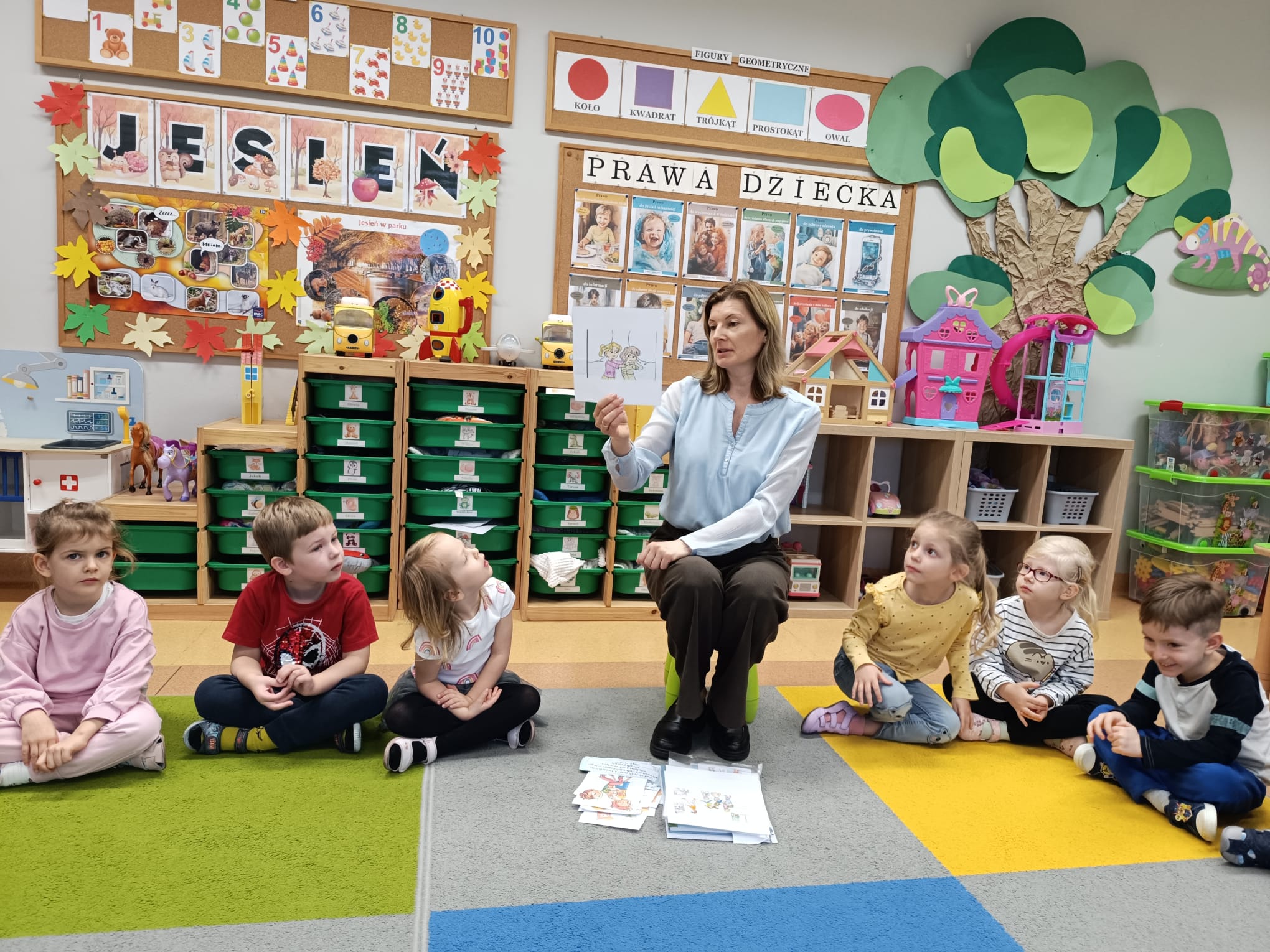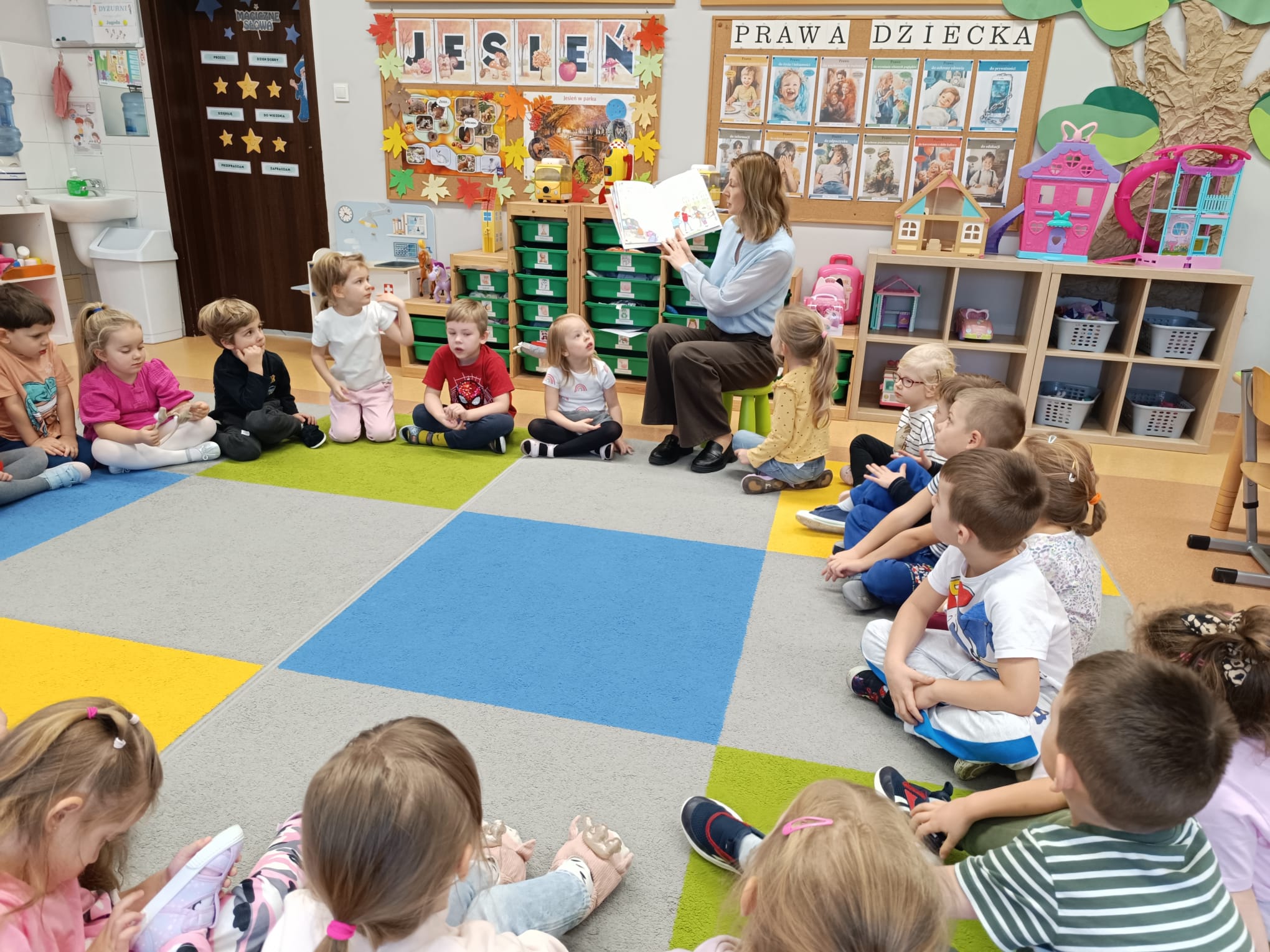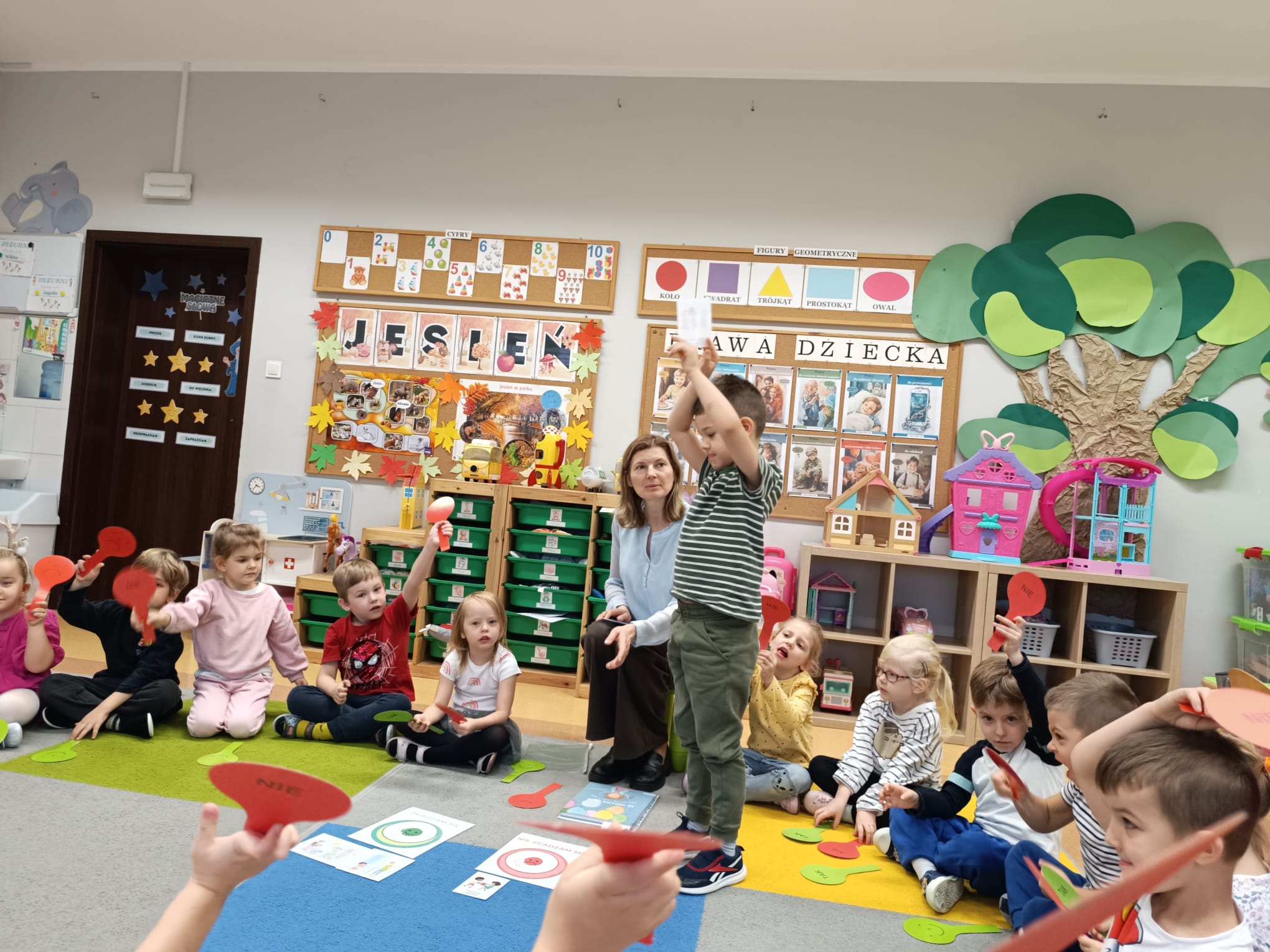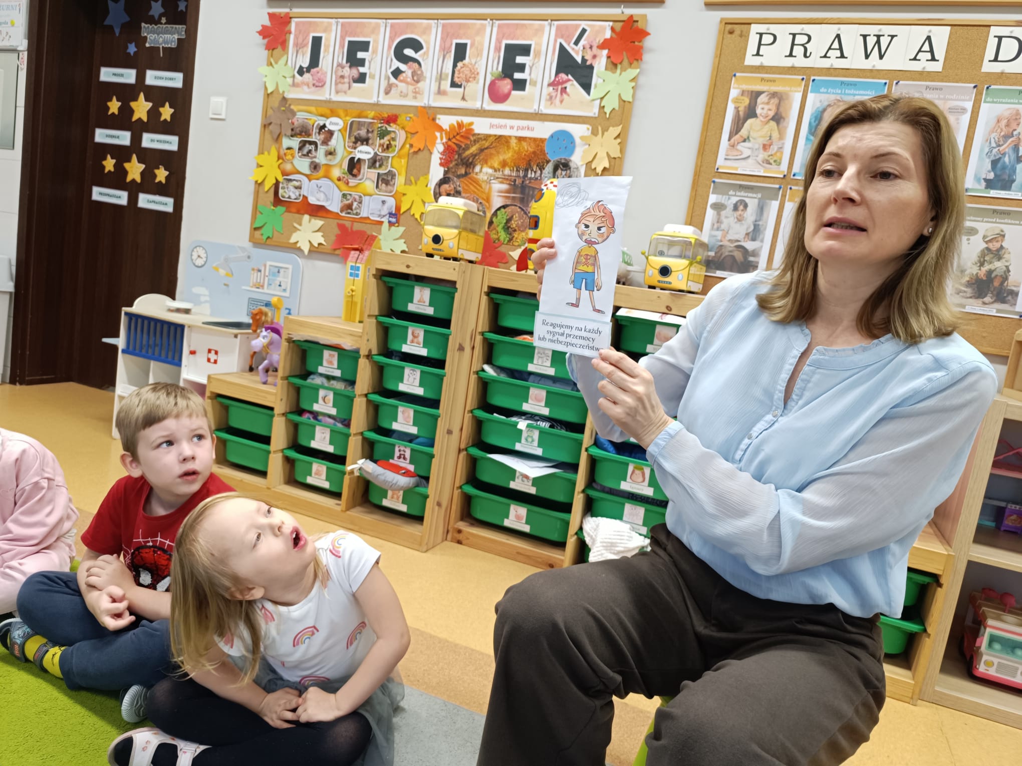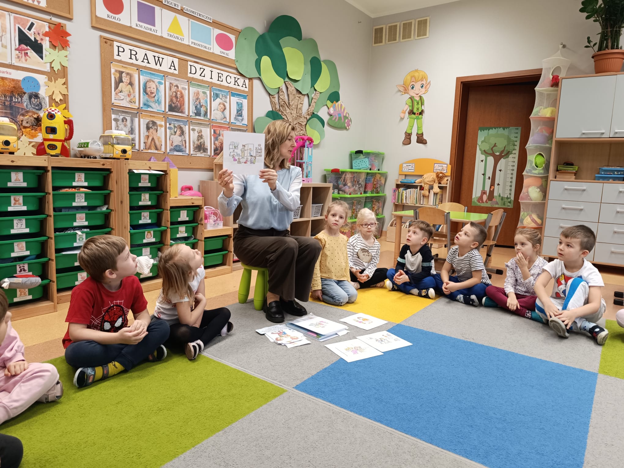 W dzisiejszym dniu dzieci z grupy XII uczestniczyły w zajęciach podczas których wysłuchały opowiadań z książki „12 ważnych praw – polscy autorzy o prawach dzieci” w ramach społecznej kampanii CPCD. Zajęcia, oparte na standardach ochrony małoletnich, pozwoliły dzieciom zrozumieć, jak reagować w sytuacjach niebezpiecznych oraz jak dbać o dobre relacje z rówieśnikami. Dzieci bardzo aktywnie uczestniczyły w zajęciach i chętnie dzieliły się swoimi doświadczeniami. Szczególnie dobrze zareagowały na historyjki, które pomogły im lepiej zrozumieć omawiane zasady. Na zakończenie zajęć dzieci wspólnie wykonały plakat, który zawierał najważniejsze zasady dotyczące ochrony małoletnich.