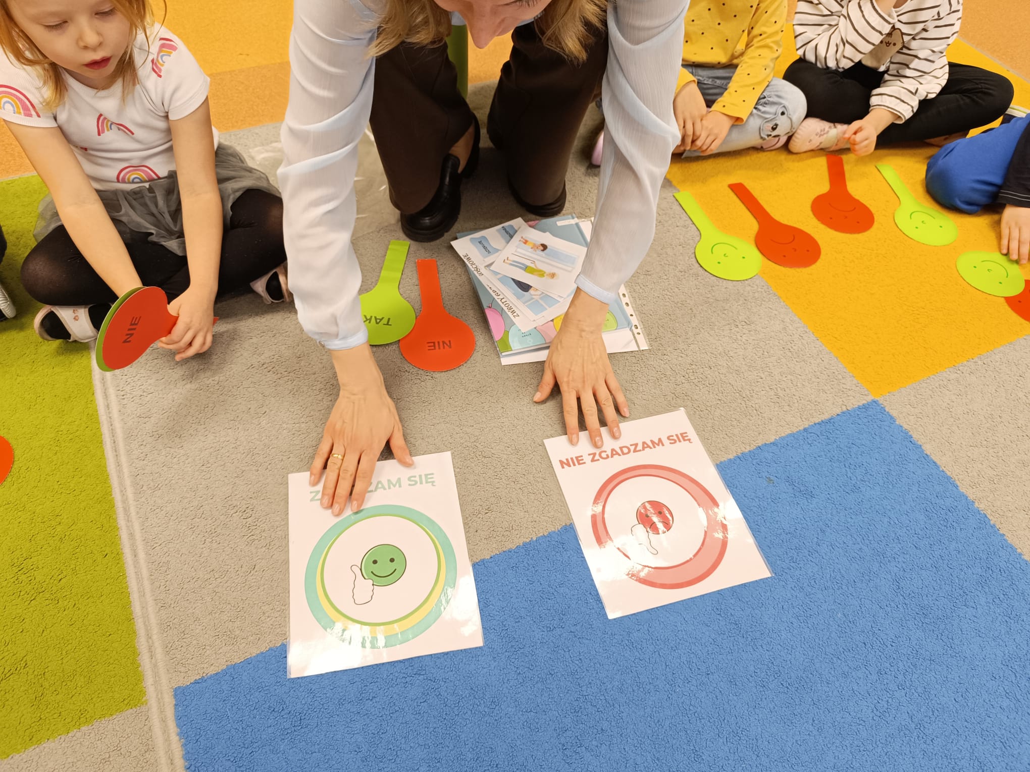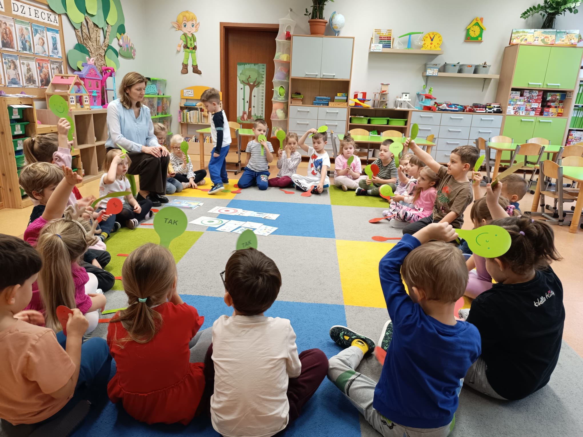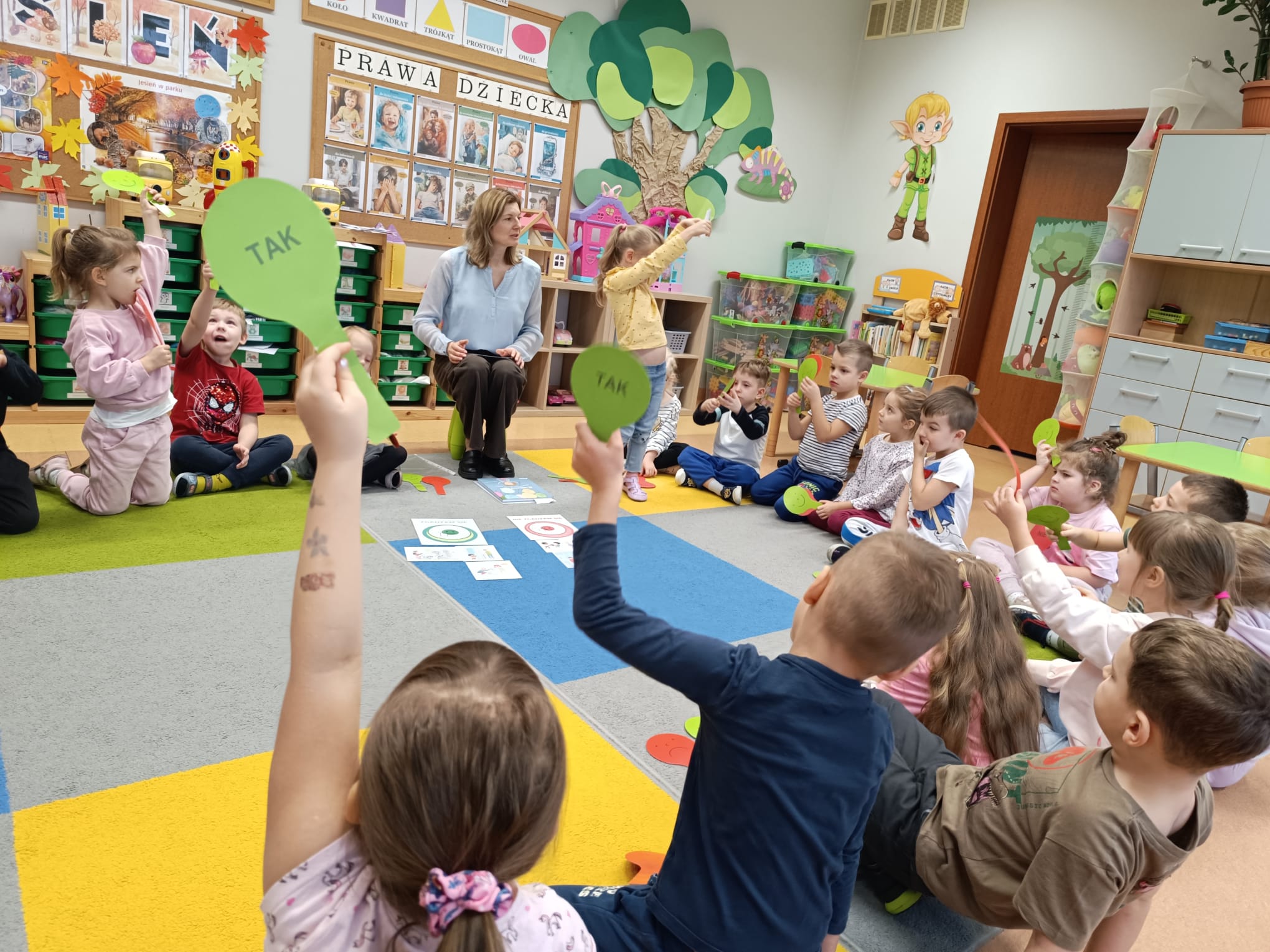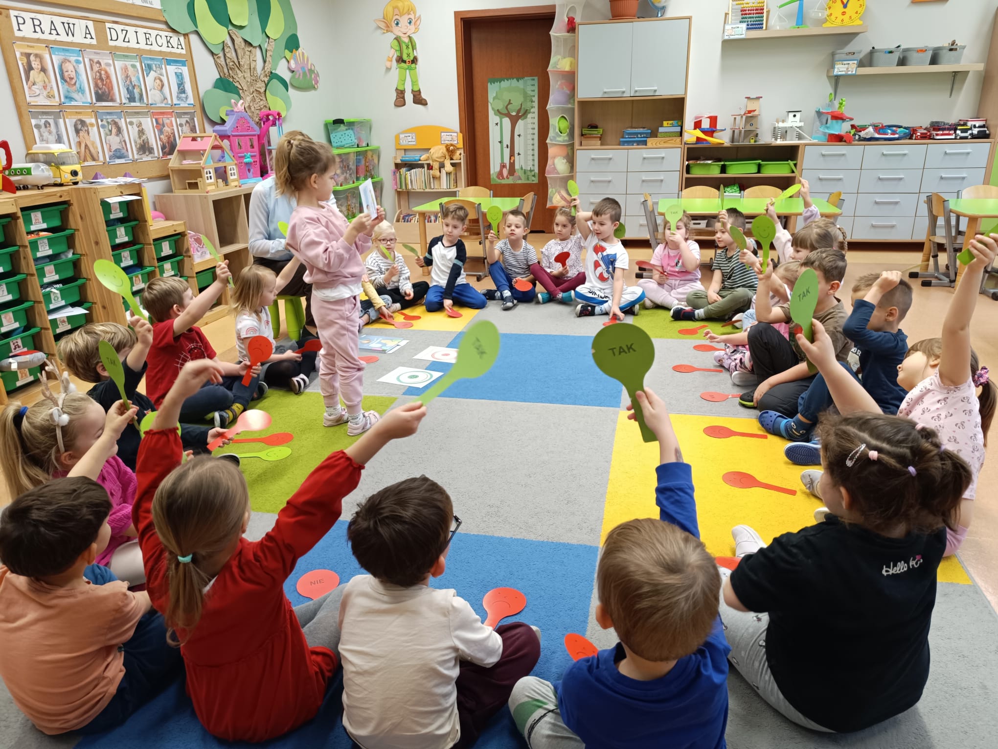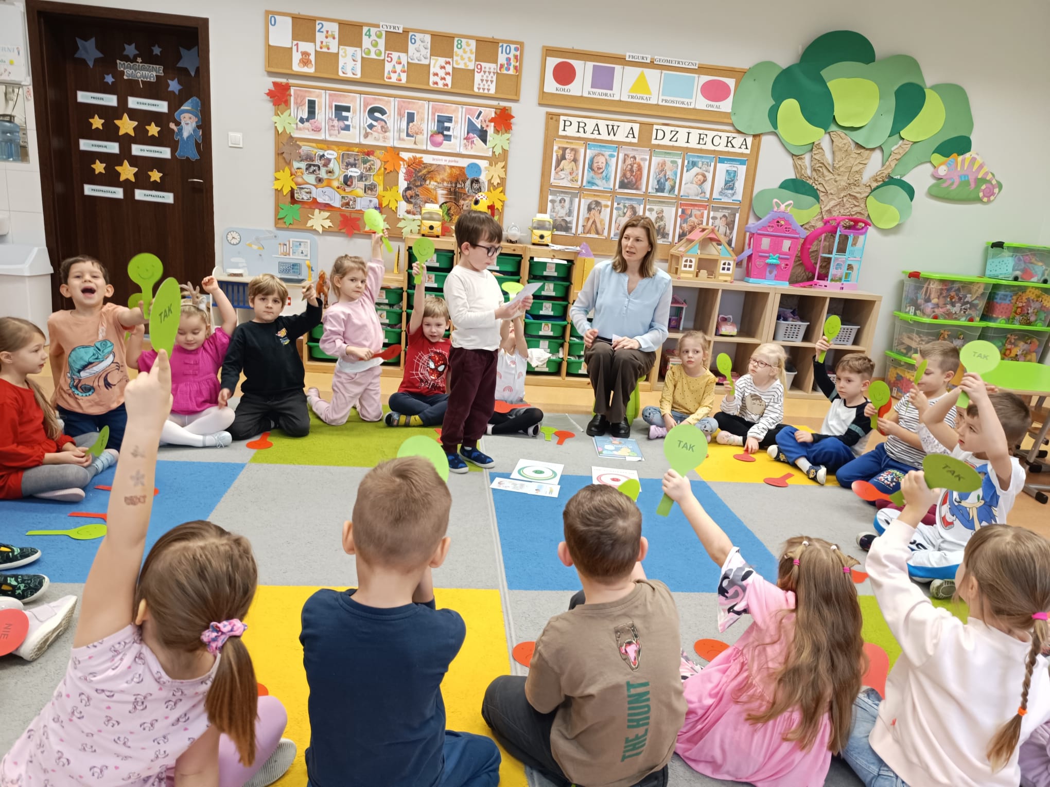W dzisiejszym dniu dzieci z grupy XII uczestniczyły w zajęciach podczas których wysłuchały opowiadań z książki „12 ważnych praw – polscy autorzy o prawach dzieci” w ramach społecznej kampanii CPCD. Zajęcia, oparte na standardach ochrony małoletnich, pozwoliły dzieciom zrozumieć, jak reagować w sytuacjach niebezpiecznych oraz jak dbać o dobre relacje z rówieśnikami. Dzieci bardzo aktywnie uczestniczyły w zajęciach i chętnie dzieliły się swoimi doświadczeniami. Szczególnie dobrze zareagowały na historyjki, które pomogły im lepiej zrozumieć omawiane zasady. Na zakończenie zajęć dzieci wspólnie wykonały plakat, który zawierał najważniejsze zasady dotyczące ochrony małoletnich.